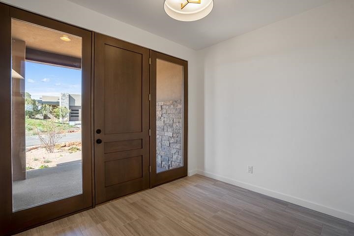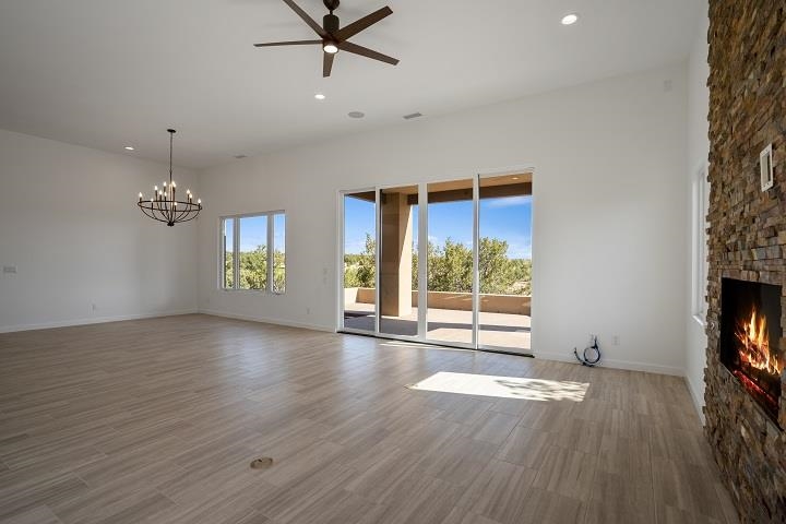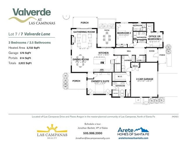 We Have Broken Ground! Right on the Sunset Golf Course Valverde's Sunrise Contemporary floor plan, Elevation A, has 2,732 SF, and is designed for comfort and easy livability. This single-level home has three bedrooms, 3 bathrooms and an open living space. The gourmet kitchen includes solid wood cabinets, stainless-steel Viking appliances, quartz countertops, a huge pantry, and opens to the dining area and great room with 12-foot ceilings, and a low-profile gas fireplace with stone surround. A courtyard connects to the kitchen and great room for outdoor dining. A third portal captures the mountain views. The large master suite has a portal, master bathroom with curbless, walk-in shower, soaking tub, dual sinks, and walk-in closet. The guest bedrooms are on the opposite side of the home, each with their own bathroom. The large two-car garage has plenty of storage. Choose your interior finishes, color choices and other options. A low-maintenance landscape package is included and can be expanded with water features, fire pit, outdoor kitchen/BBQ. HOA fees include road and common area maintenance, 24-hour roaming security, and 24-hour EMTs on site. Membership to The Club at Las Campanas is optional. Amenities include indoor and outdoor swimming, tennis, fitness facility, equestrian, fine dining, and two Jack Nicklaus Signature Golf Courses. (Photos are representational only.)