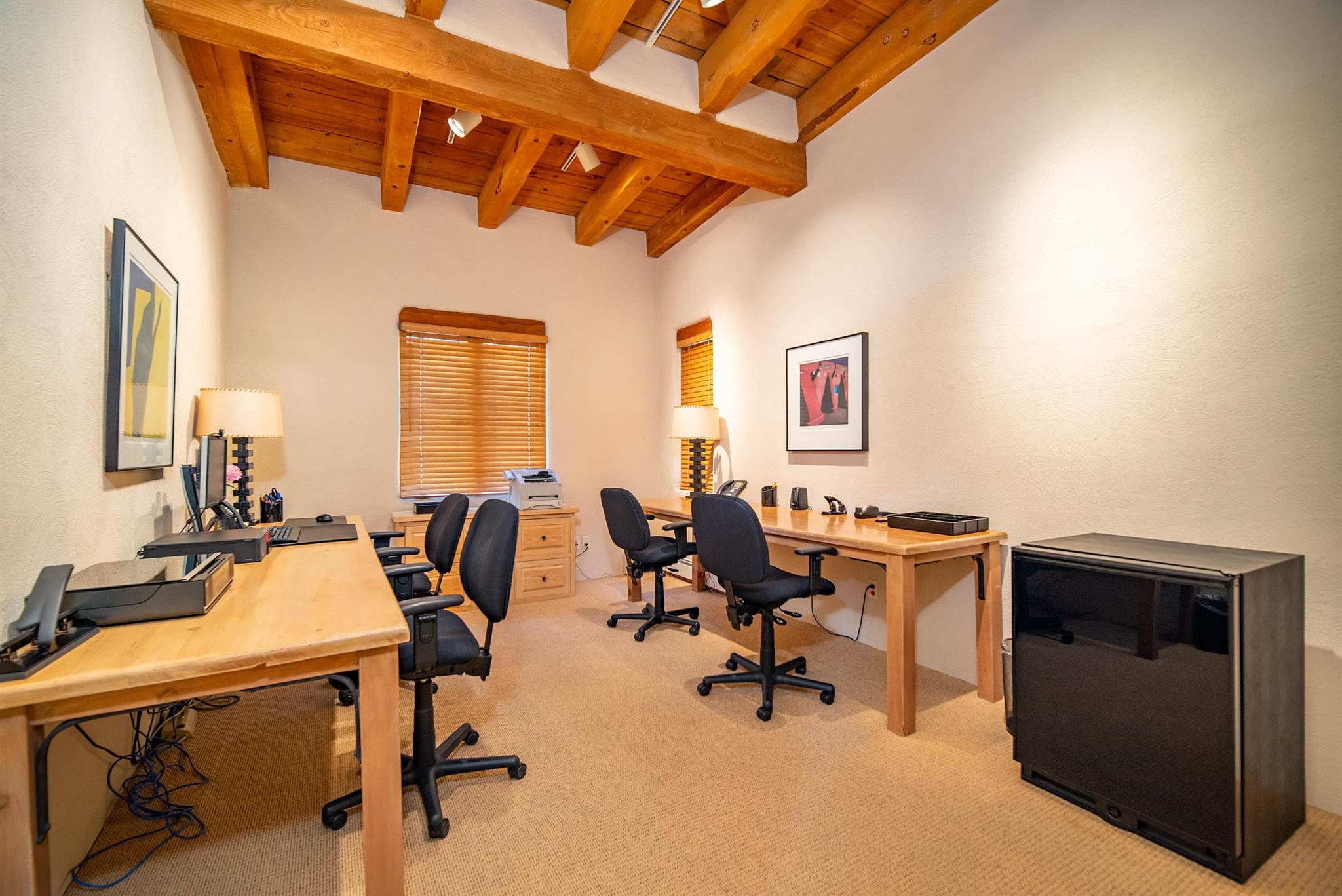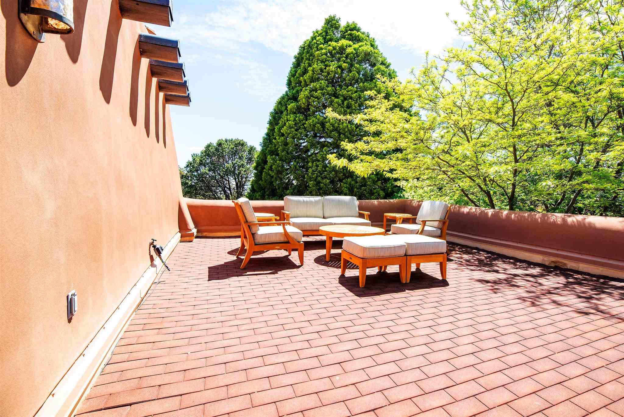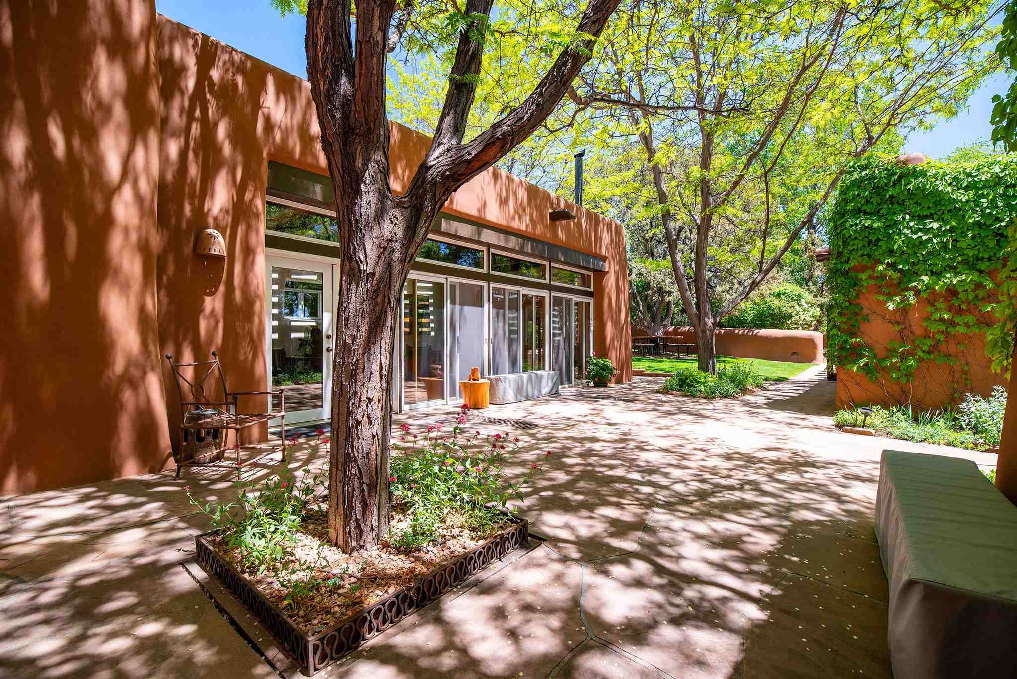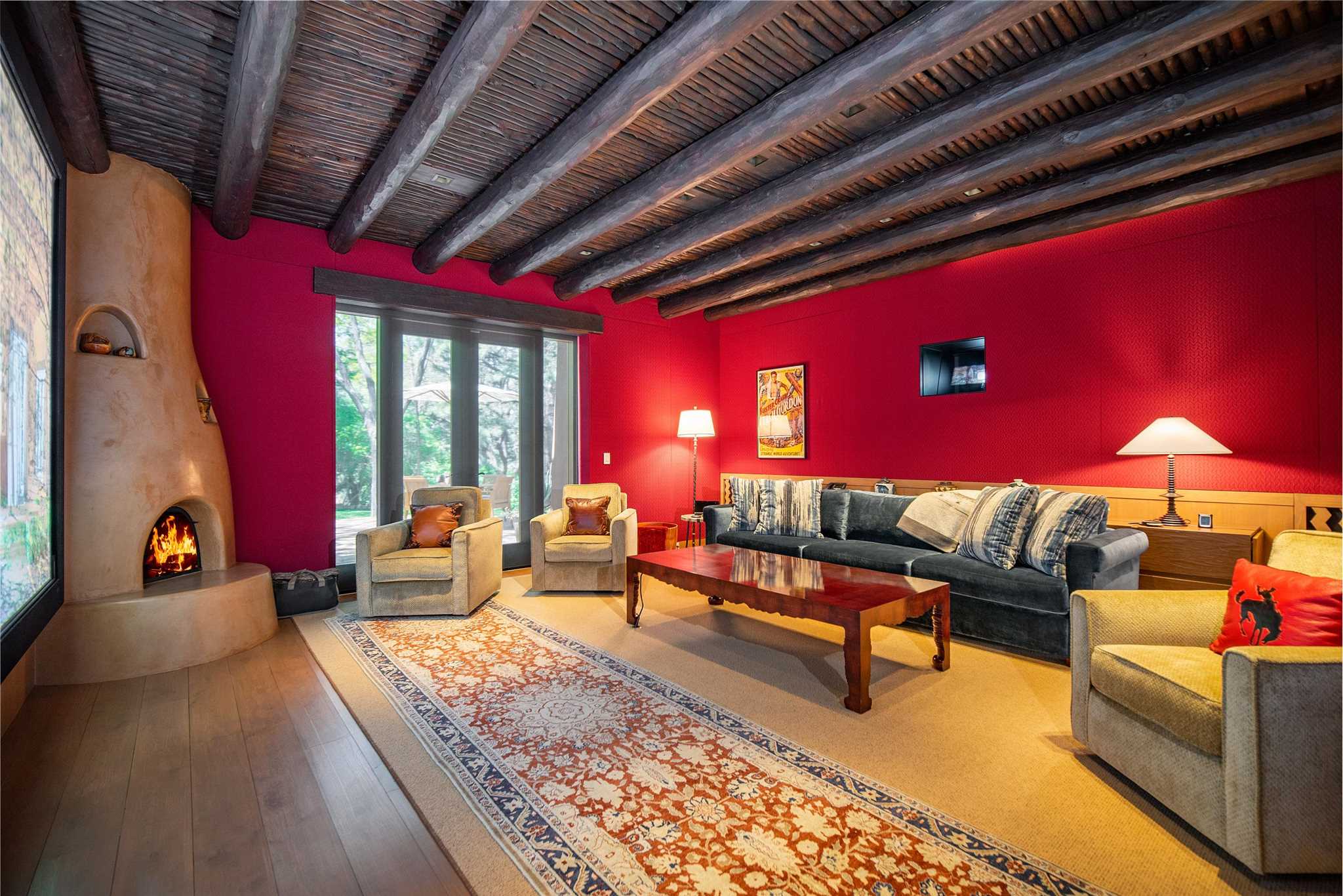 Home to iconic artist Georgia O'Keeffe and later, philanthropist Paul G. Allen, co-founder of Microsoft, Sol Y Sombra is the essence of Southwestern graciousness. The Main House perfectly represents 1930s Pueblo-style architecture and elegance with 6 bedrooms, inviting gathering spaces, and wide portals opening to lush lawns. The main floor hosts formal living and dining rooms, a library, and game room, along with a chef's kitchen and solarium. Upstairs living areas offer a privacy gate atop the stairs and access via elevator. Adjoined by a covered walkway, the Cinema with kitchen, bedrooms, and patio hosts intimate movie nights. A wisteria covered grill area provides casual entertaining space while the Grand Portal offers a large fireplace and views of the aspen grove and rose garden. Two guest houses and a lodge offer overnight accommodations for guests. The Conference Center provides private space for business and the Event Center with catering kitchen and panoramic rooftop views sets the stage for unforgettable events. The Greenhouse showcases a Bodhi tree grown from a seed of the tree the Buddha sat beneath to attain enlightenment, a gift from the Dalai Lama after visiting the property, as well as Allen's impressive botanical collection. This rare and storied estate offers the comfort, elegance and ease of a truly unique home in an inspirational setting. This extensive residence includes a business license for conference and learning center with overnight accommodations.