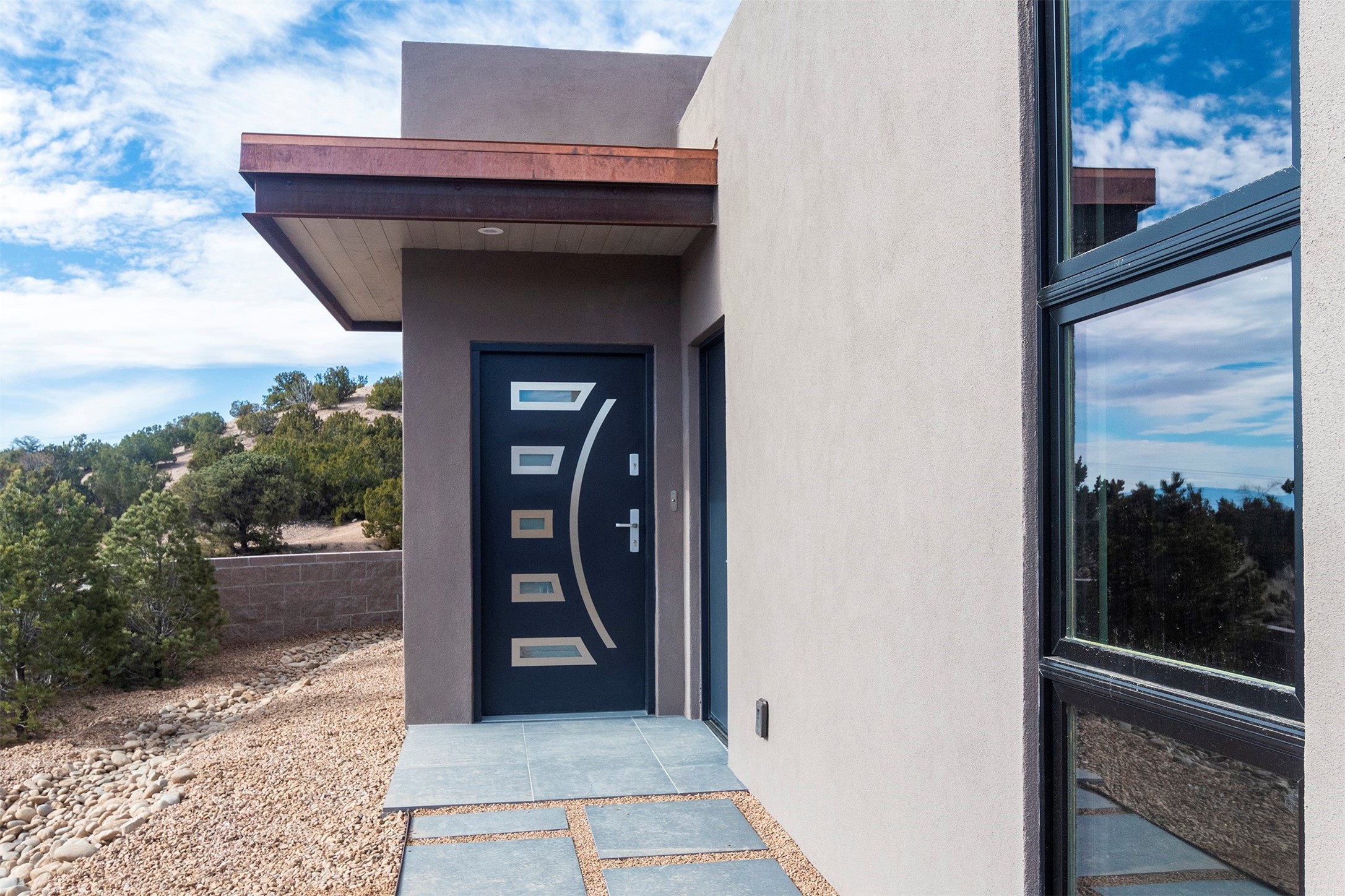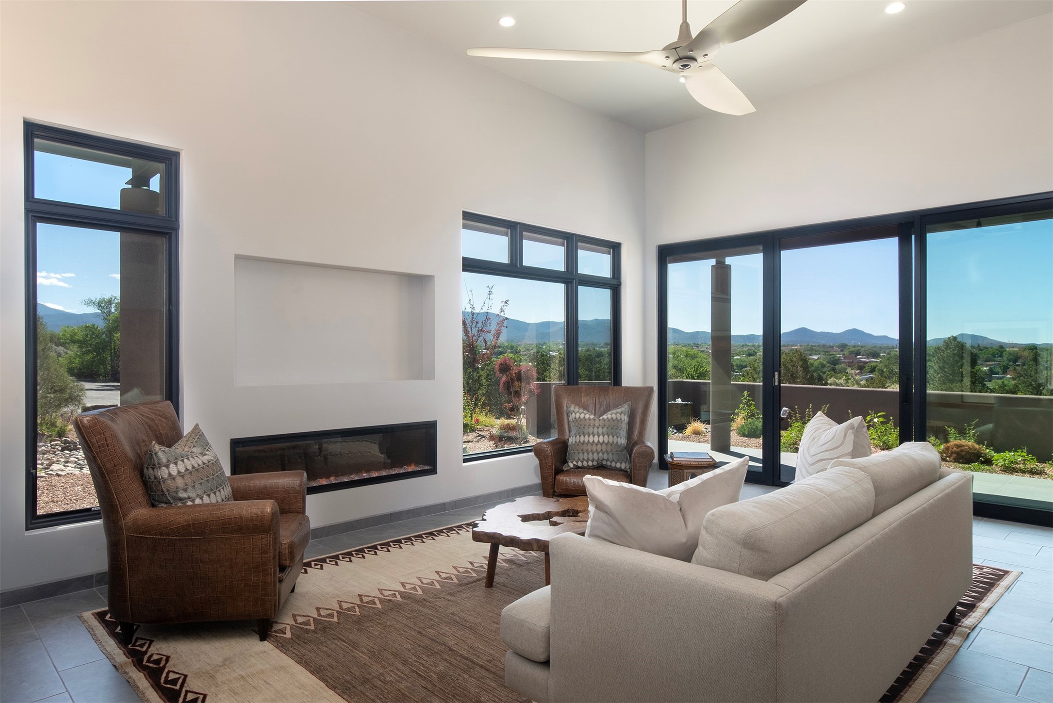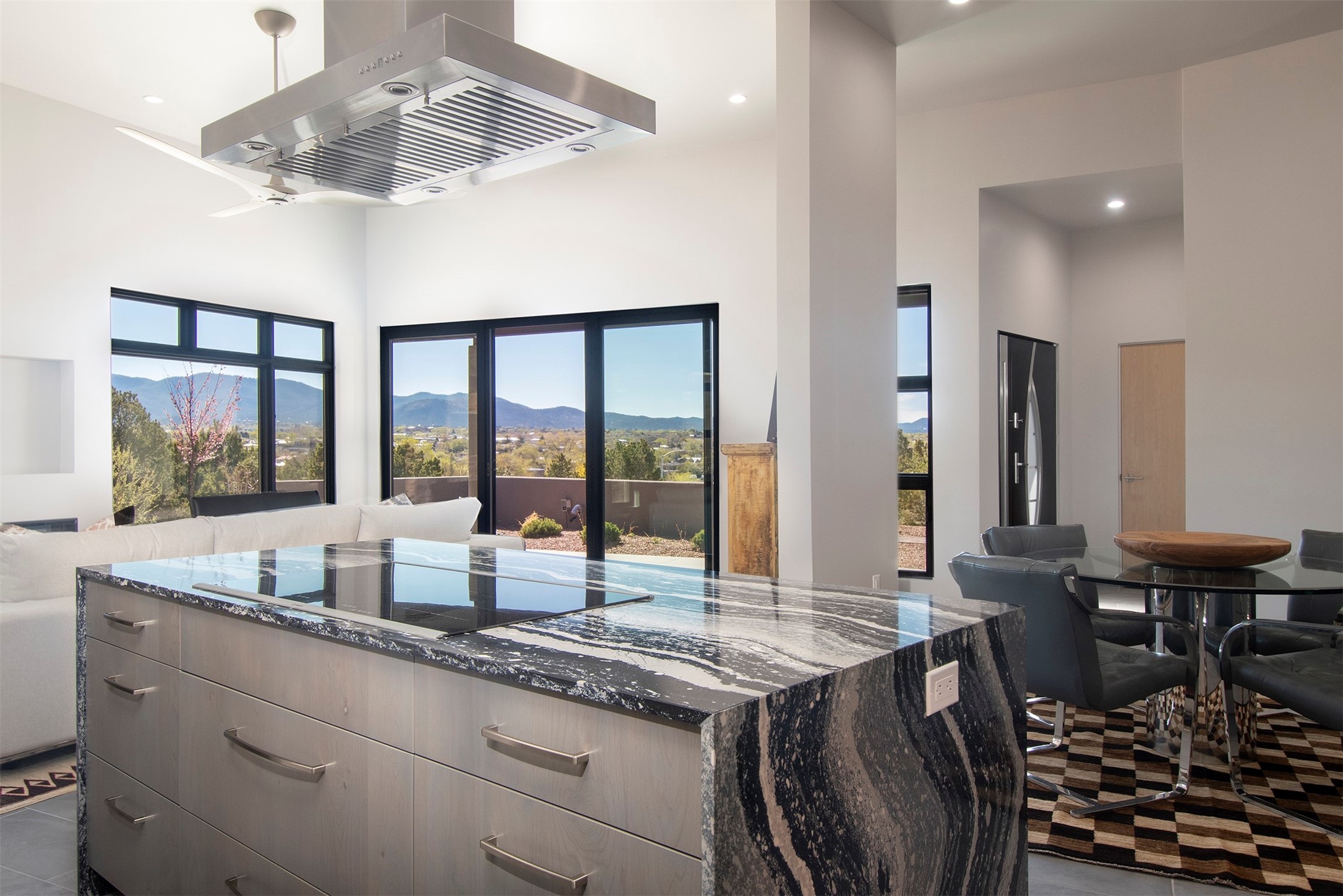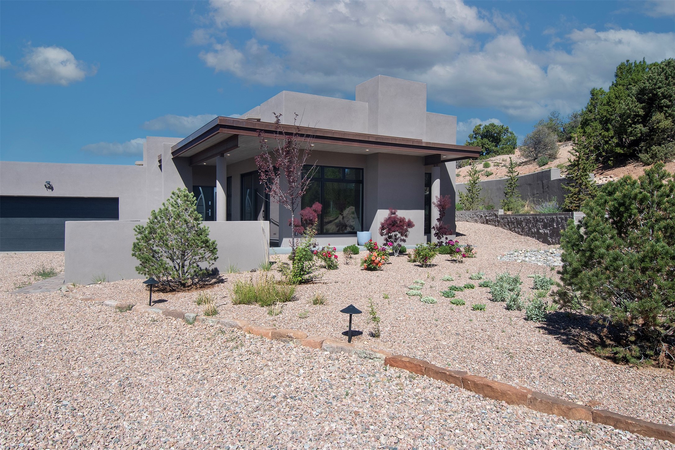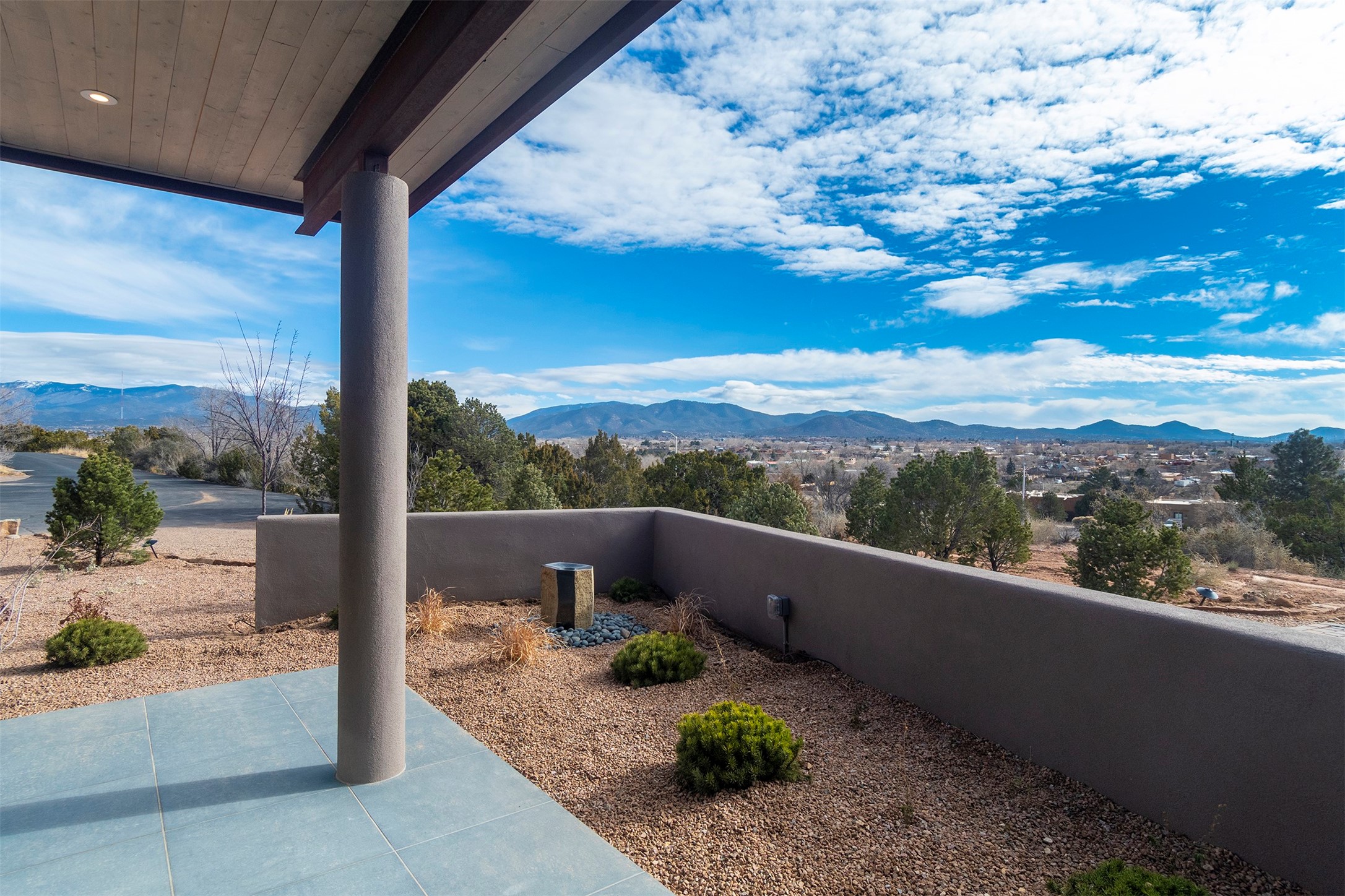 IMPRESSIVE NEWLY CONSTRUCTED LAS LOMAS CONTEMPORARY. LIVE PEACEFULLYRIGHT IN THE HEART OF TOWN. Thisnew west sidebuild has all the wonderof today's Santa Fe central city living.AmazingViews!New Construction! Great Location!Private Neighborhood Cul de Sac!Access to Amenities! Enjoy the beauty of the westside River Valley. Located in the respected Las Lomas neighborhood, perched on a foothill giving180 degree Mountain and City views includingthe Sangre de Cristos, Santa Fe Village, Ortiz Mountains,Sandia Mountainsand more. Surroundyourself with Santa Fe'sHistory, Natural Beauty, Arts & Culture.The Great Room withOpen Concept featuresgrand windows that frame spectacular viewsanda chicDimplexfireplace. Elegant porcelain tile floorsand radiant in-floor heating throughout provide comfort.TheContemporary Kitchen boastsa fantastic open floor plan with Center WaterfallIsland, Quartz Countertops, Stainless SteelBocsch& LG Appliances. The Primary Bedroom features an en suiteBath, Walk-in Closet, andoffice area. Alarge flexibleStudio/Den withseparate entrancemakes for a great home office,entertainment room, or artist studio. The2car parking garage and private access in back make for flexible multi-function living. Domadeco German entrydoors,metal clad woodPella casement windows and more. All this and some of the best views in town. Book an appointmenttoday!