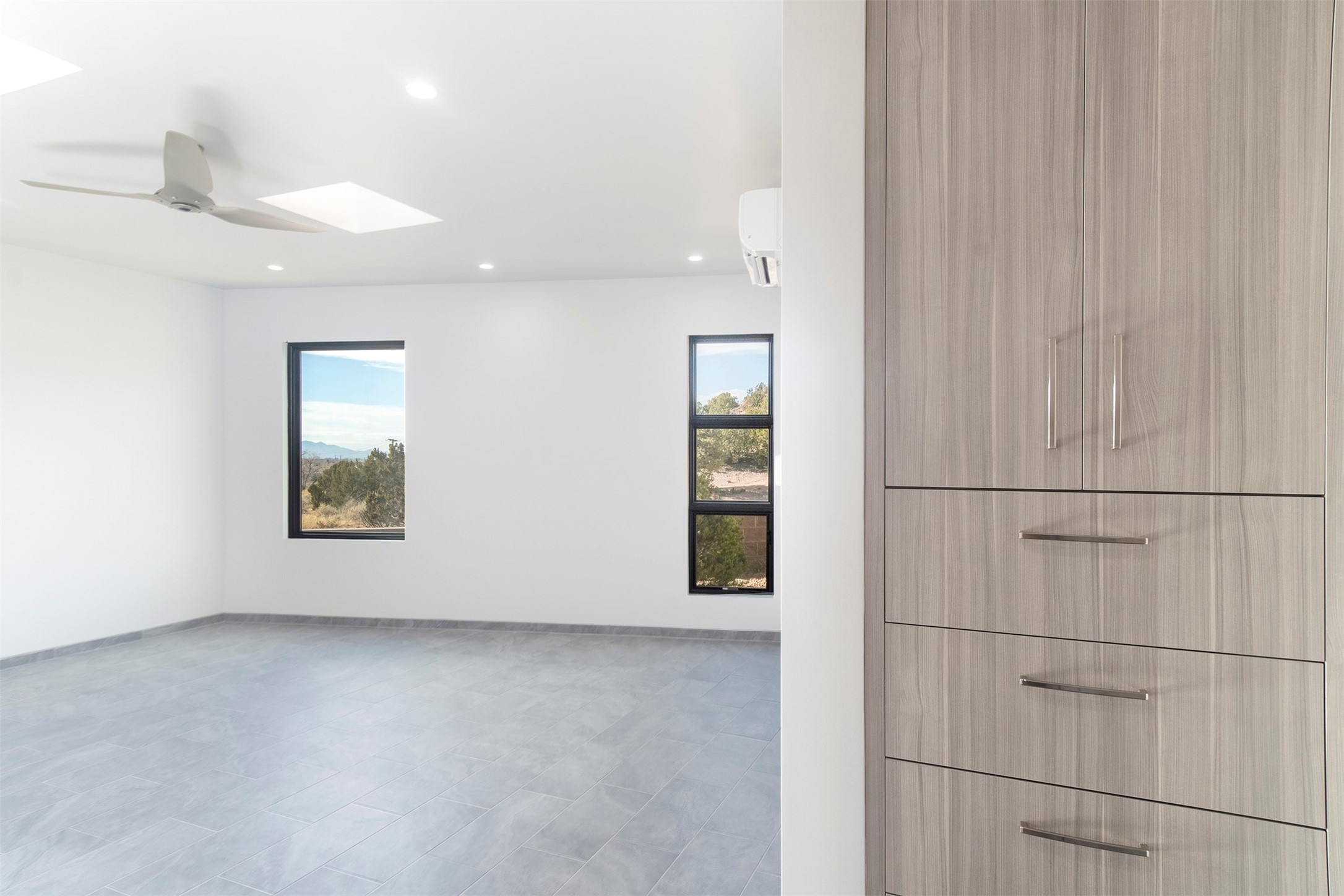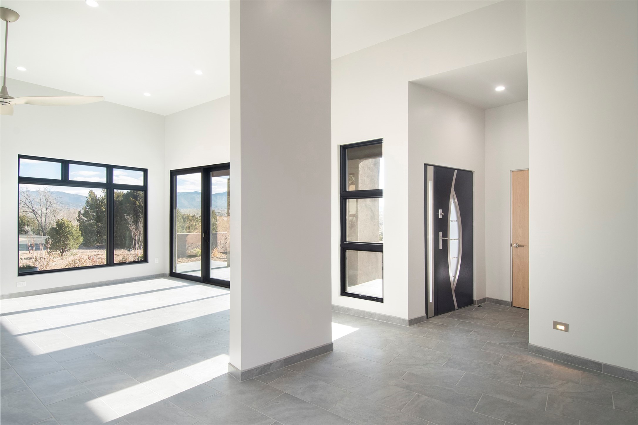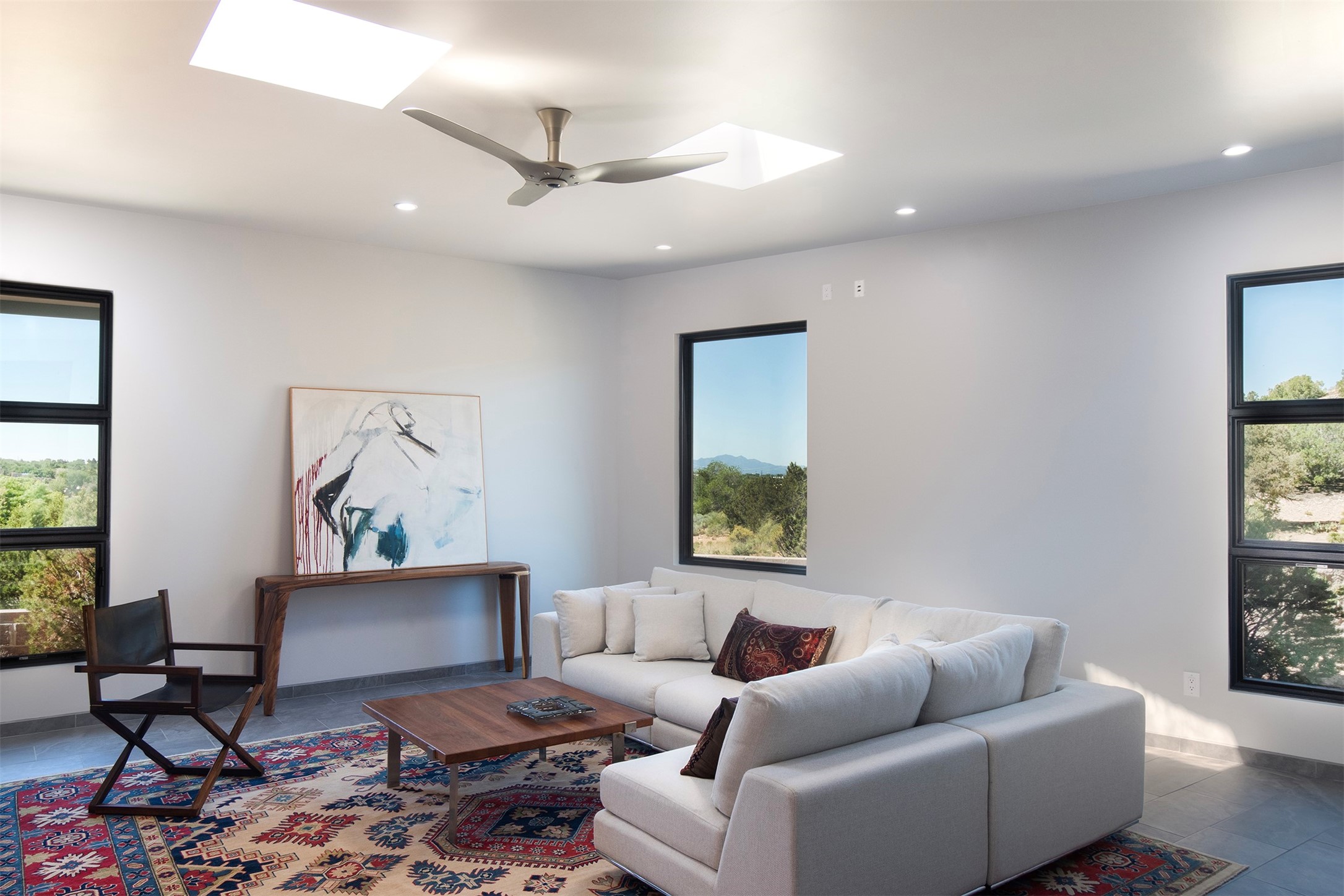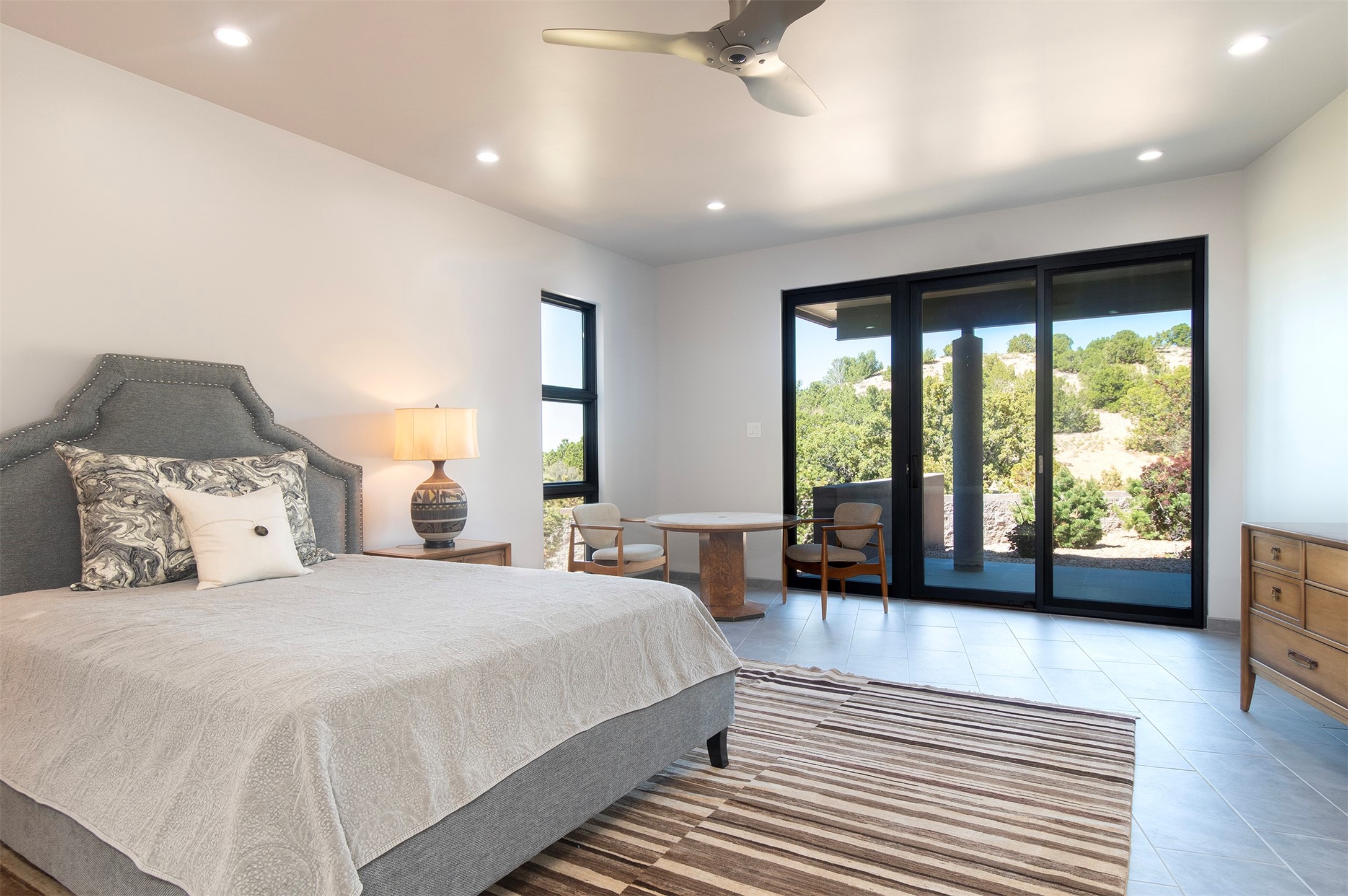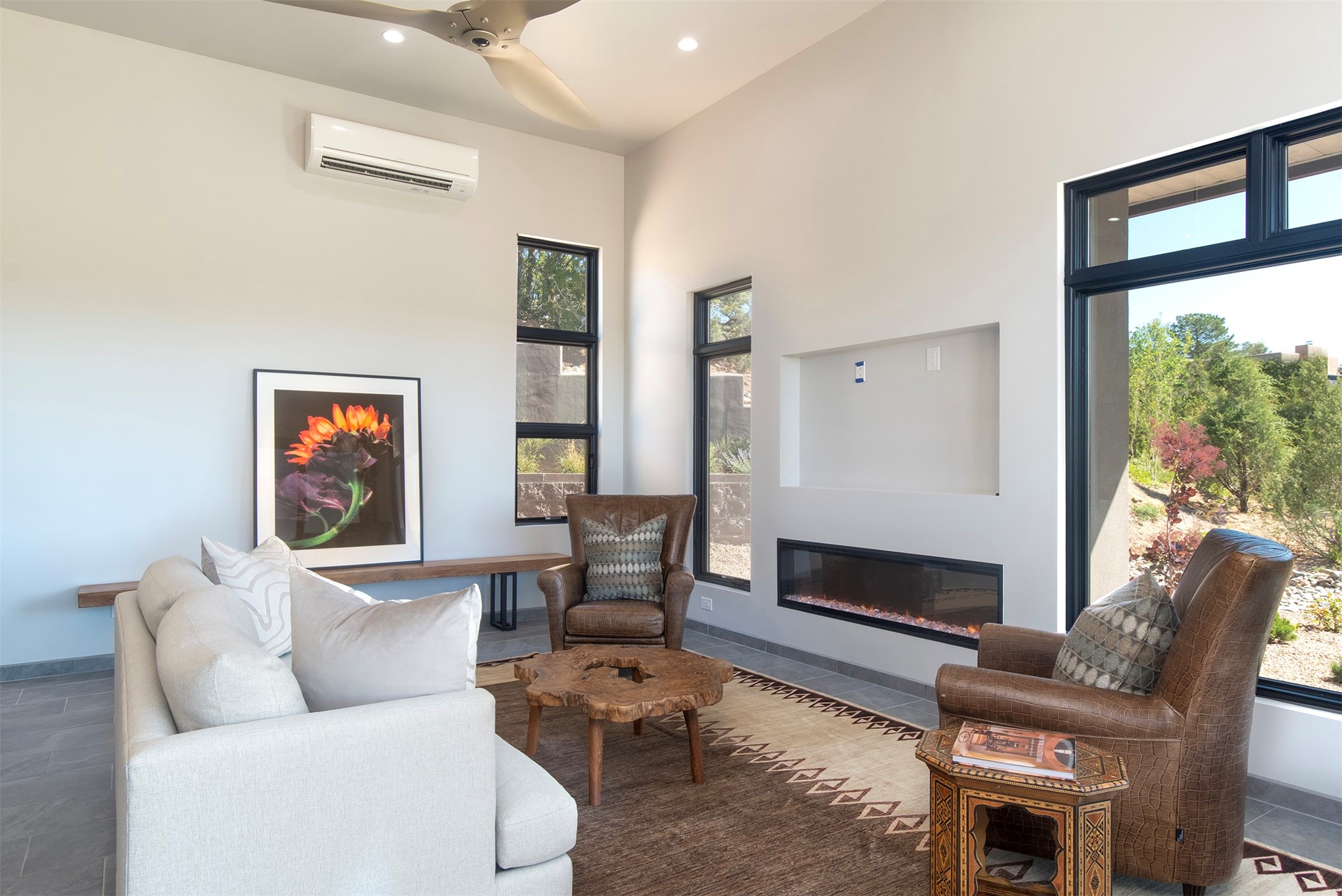 IMPRESSIVE NEWLY CONSTRUCTED LAS LOMAS CONTEMPORARY. LIVE PEACEFULLYRIGHT IN THE HEART OF TOWN. Thisnew west sidebuild has all the wonderof today's Santa Fe central city living.AmazingViews!New Construction! Great Location!Private Neighborhood Cul de Sac!Access to Amenities! Enjoy the beauty of the westside River Valley. Located in the respected Las Lomas neighborhood, perched on a foothill giving180 degree Mountain and City views includingthe Sangre de Cristos, Santa Fe Village, Ortiz Mountains,Sandia Mountainsand more. Surroundyourself with Santa Fe'sHistory, Natural Beauty, Arts & Culture.The Great Room withOpen Concept featuresgrand windows that frame spectacular viewsanda chicDimplexfireplace. Elegant porcelain tile floorsand radiant in-floor heating throughout provide comfort.TheContemporary Kitchen boastsa fantastic open floor plan with Center WaterfallIsland, Quartz Countertops, Stainless SteelBocsch& LG Appliances. The Primary Bedroom features an en suiteBath, Walk-in Closet, andoffice area. Alarge flexibleStudio/Den withseparate entrancemakes for a great home office,entertainment room, or artist studio. The2car parking garage and private access in back make for flexible multi-function living. Domadeco German entrydoors,metal clad woodPella casement windows and more. All this and some of the best views in town. Book an appointmenttoday!