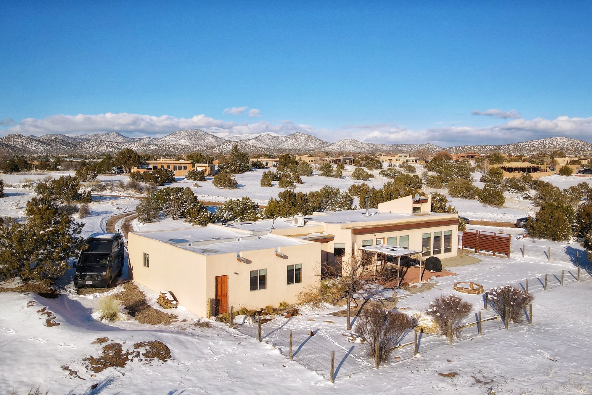One of the best values in Eldorado with everything already done for you. New TPO roof with 10-year warranty! Other improvements in recent past include new windows, updated bathroom, new appliances, new flooring and exterior stucco! Plus, this well-maintained has three living areas providing the perfect opportunity for a separate home office, kids playroom or studio. Stay cozy with a wood burning stove in the principal living area and enjoy lots of Santa Fe style touches with vigas and woodwork. Spacious open kitchen features electric range and plenty of counter space. This home offers three bedrooms with two full baths, one of which is an ensuite to the primary bedroom. Nicely-sized two car garage offers plenty of storage and a large fenced-in back yard. See documents for list of recent home improvements.