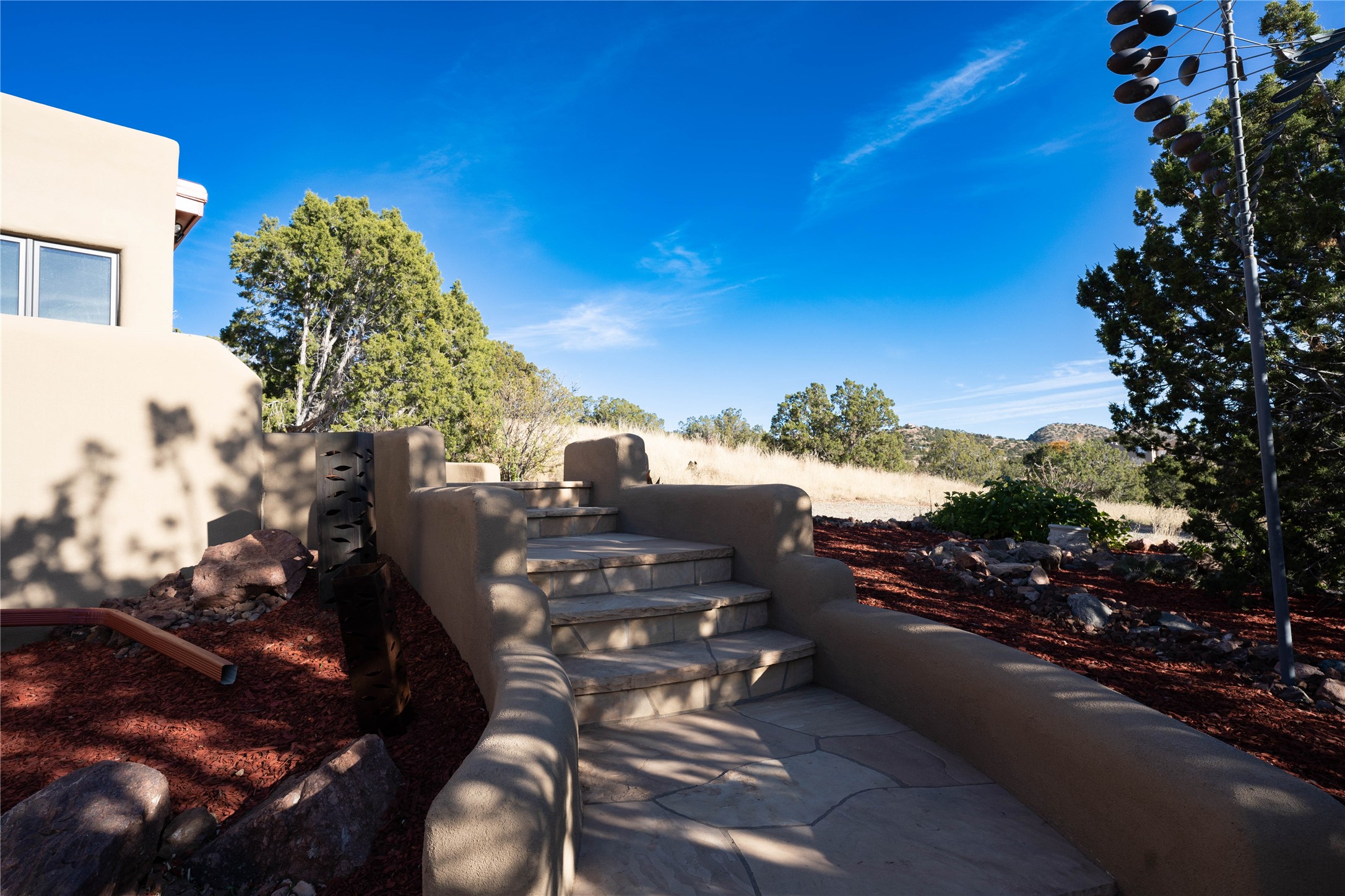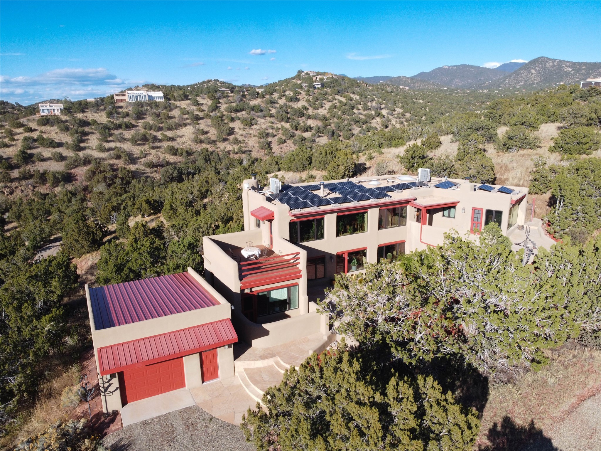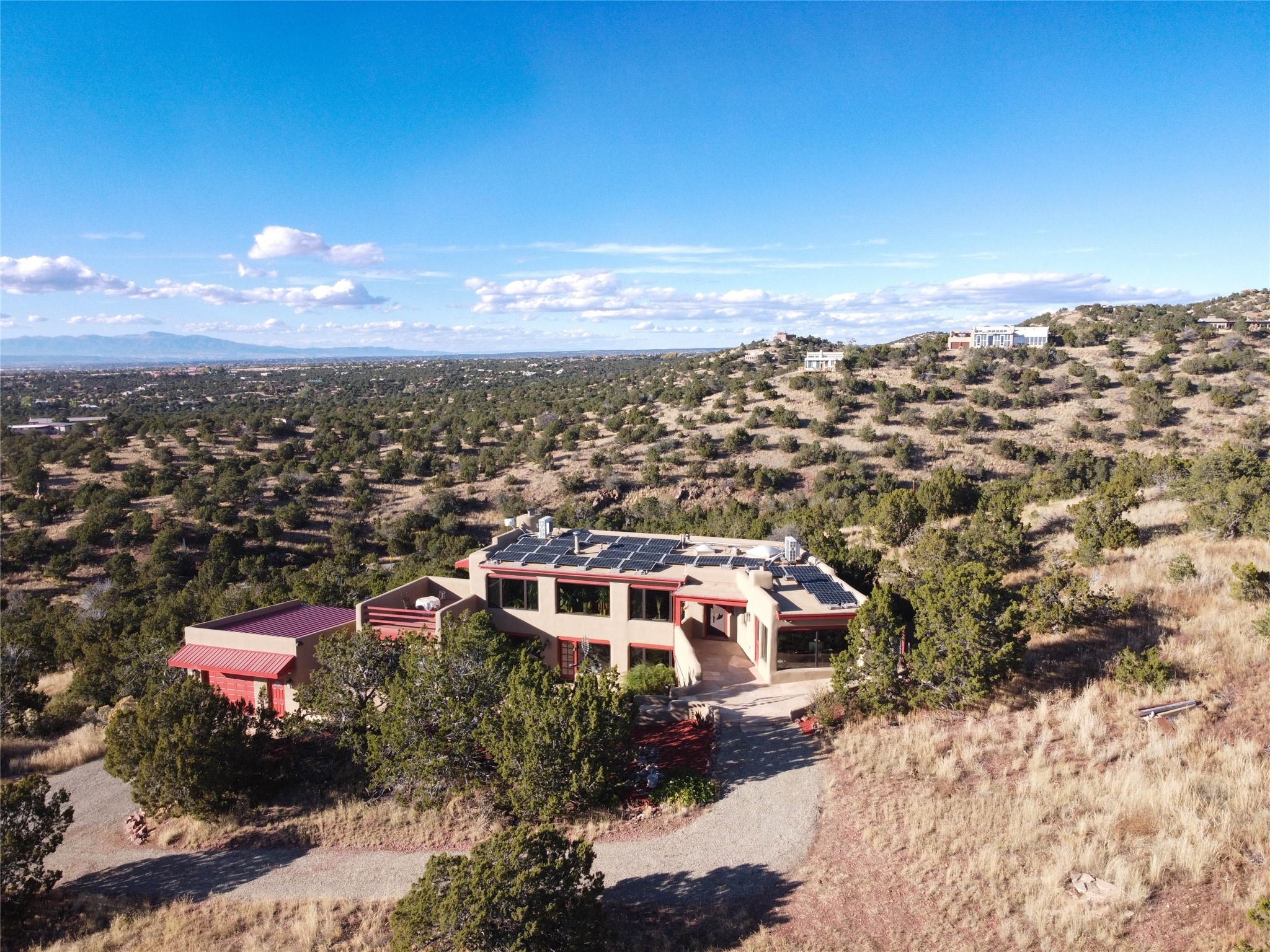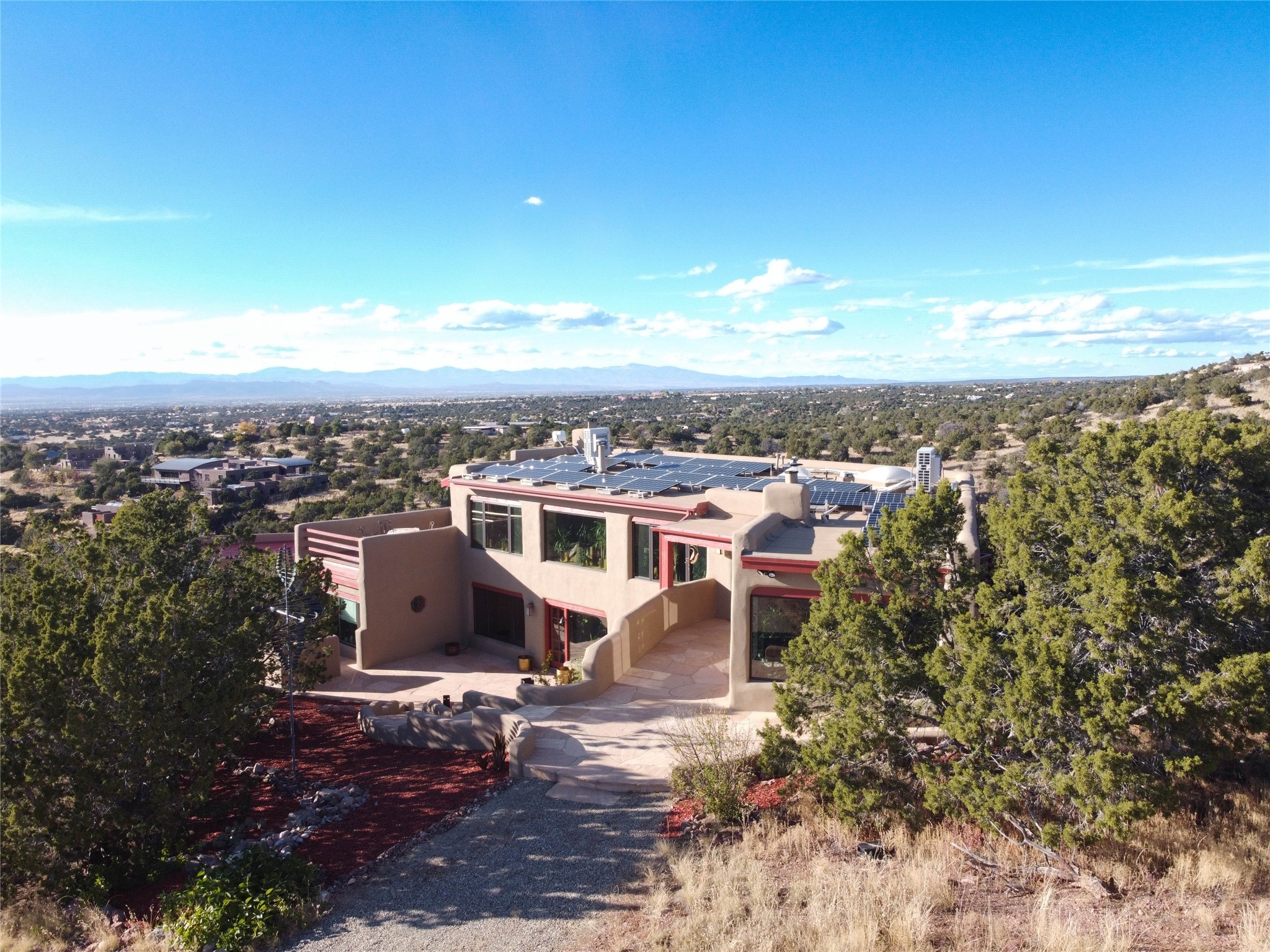 Majestically situated on Santa Fe's southeast foothills atop a private prestigious lot in Seton Village is this artistic custom adobe southwestern 5-acre estate. These are next level views that immerse you in the Enchantment of New Mexico. This home has character, style, and flare with an extensive list of upgrades. Featuring remodeled chefs' kitchen, updated gorgeous bathrooms, designer touches throughout, newer roof, stucco, windows and more. The active and passive solar system design makes the home ultra-efficient coupled with updated heating and ventilation systems and tankless water heater, solar is paid off. Beaming with pride of ownership, do not miss an opportunity to live in one of Santa Fe's finest places only 15 minutes to the famous Plaza.