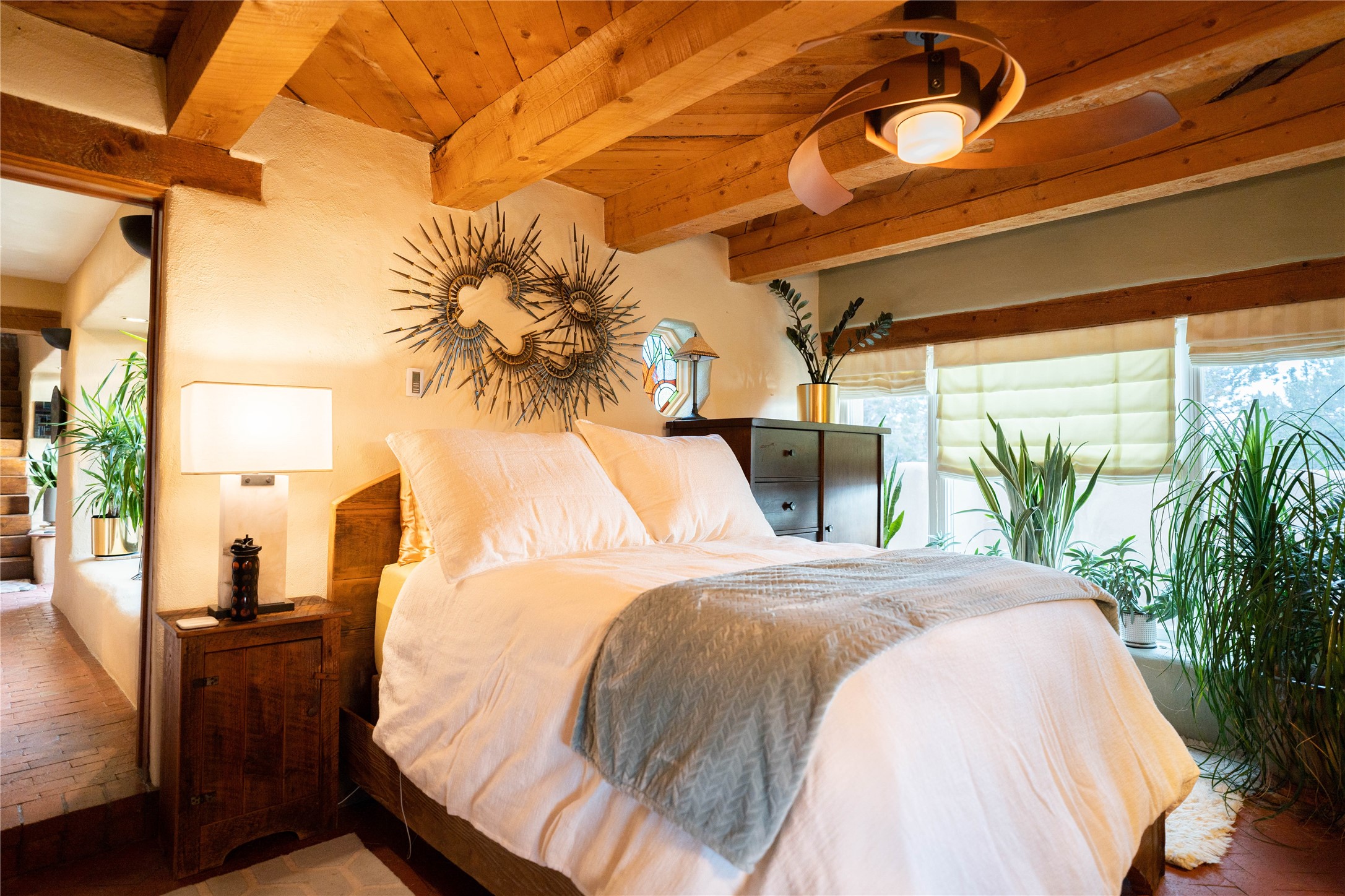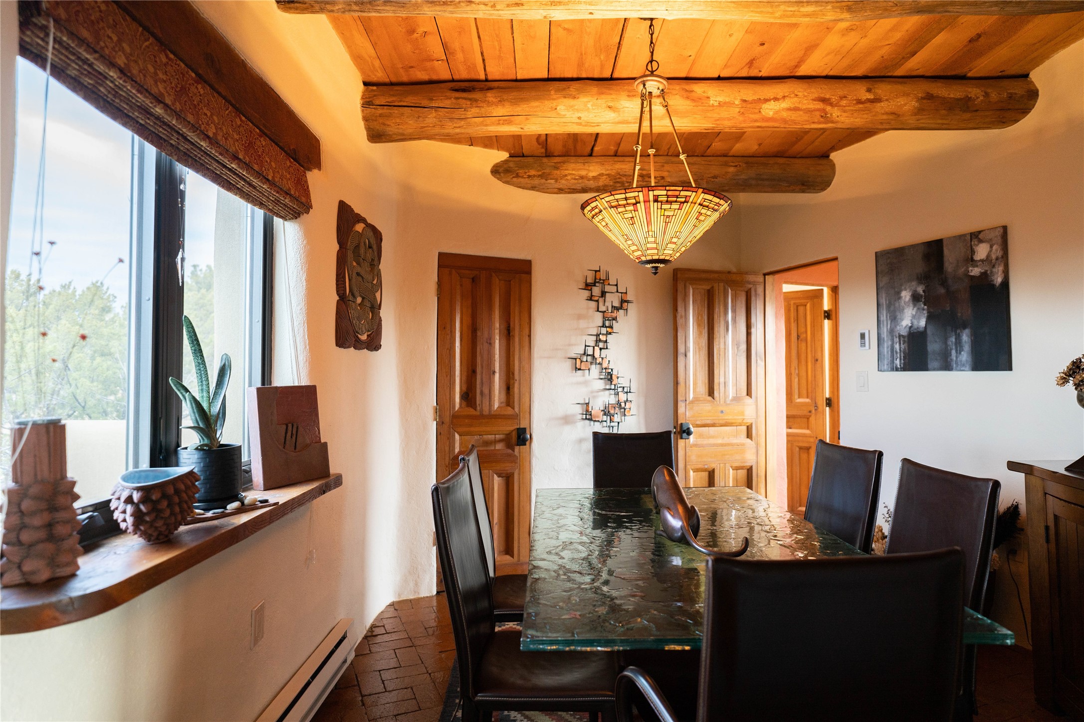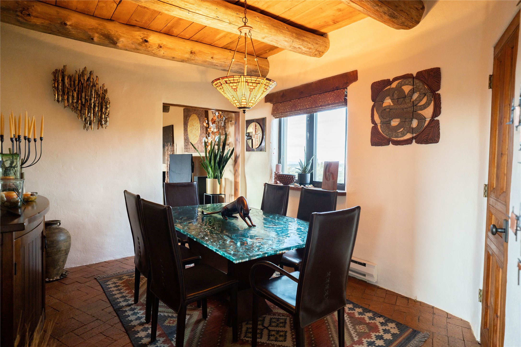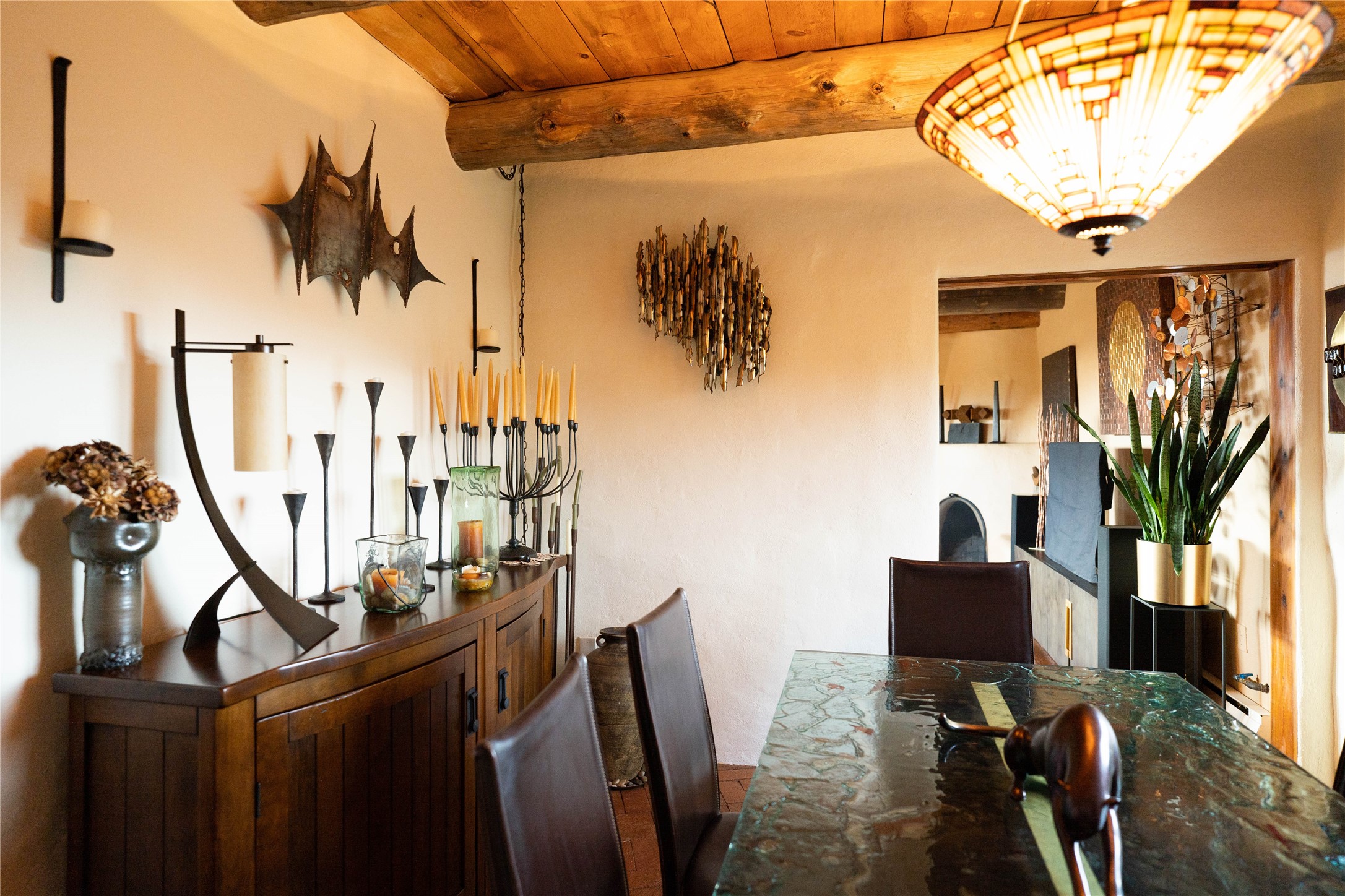 Majestically situated on Santa Fe's southeast foothills atop a private prestigious lot in Seton Village is this artistic custom adobe southwestern 5-acre estate. These are next level views that immerse you in the Enchantment of New Mexico. This home has character, style, and flare with an extensive list of upgrades. Featuring remodeled chefs' kitchen, updated gorgeous bathrooms, designer touches throughout, newer roof, stucco, windows and more. The active and passive solar system design makes the home ultra-efficient coupled with updated heating and ventilation systems and tankless water heater, solar is paid off. Beaming with pride of ownership, do not miss an opportunity to live in one of Santa Fe's finest places only 15 minutes to the famous Plaza.