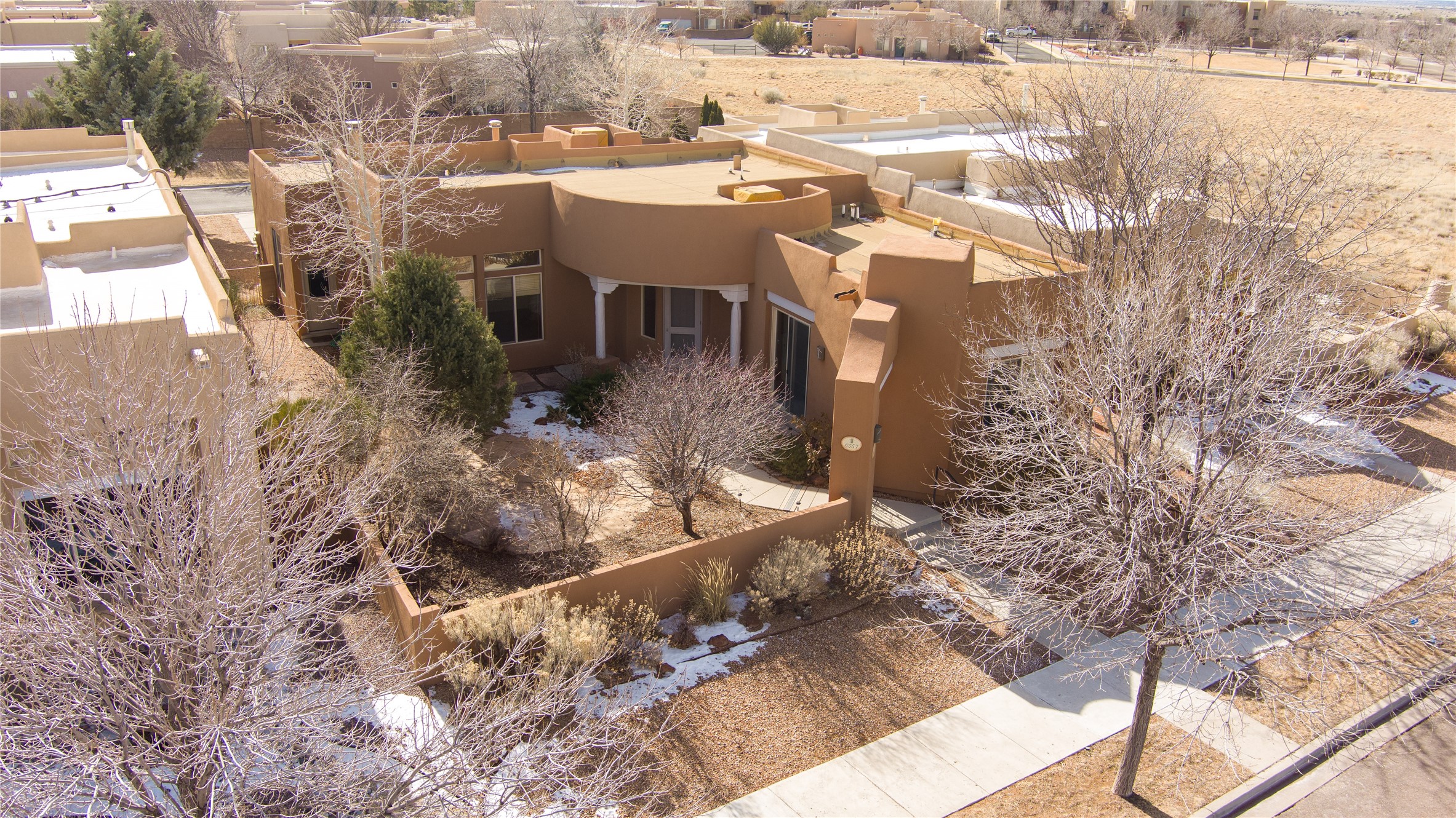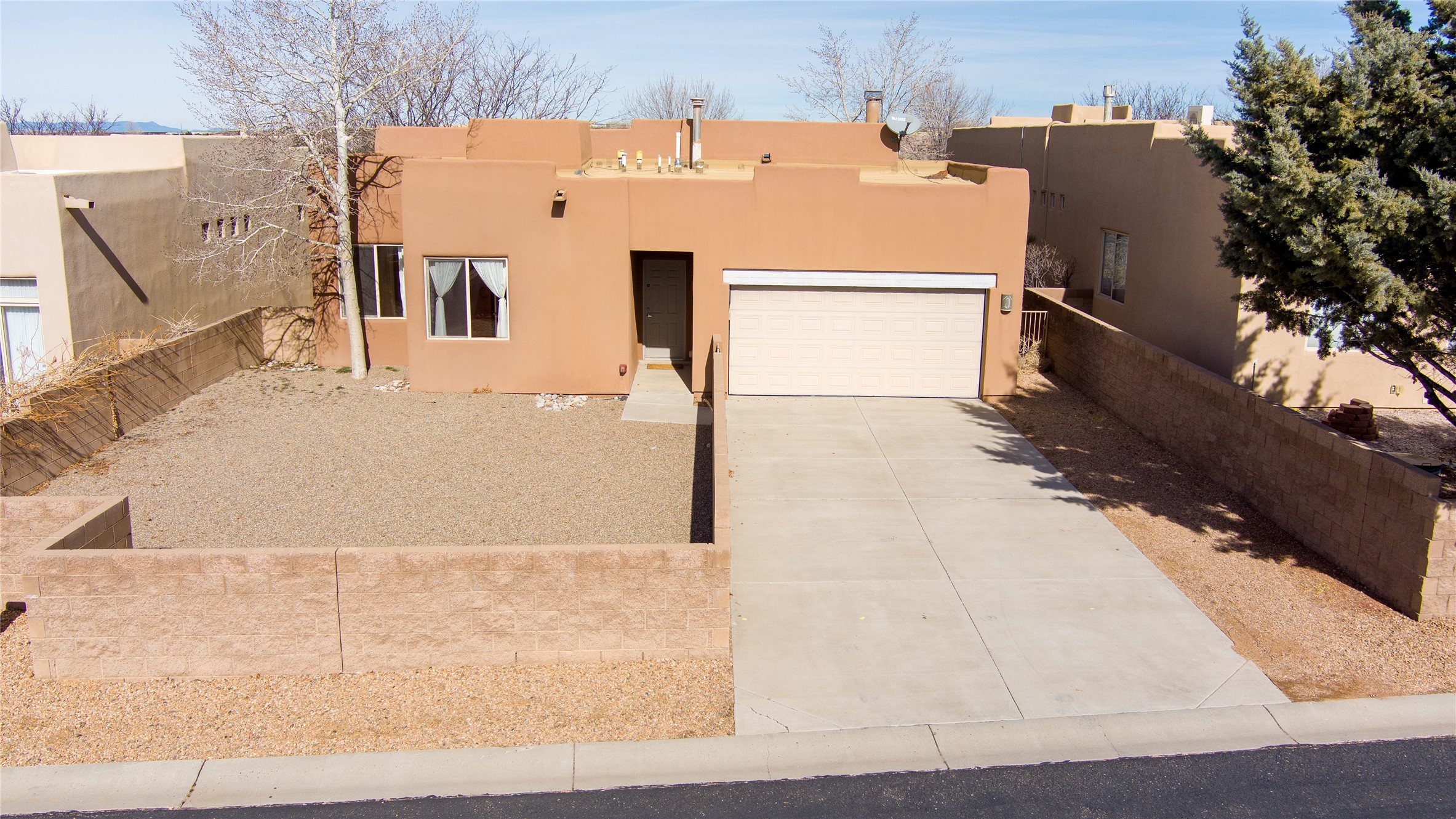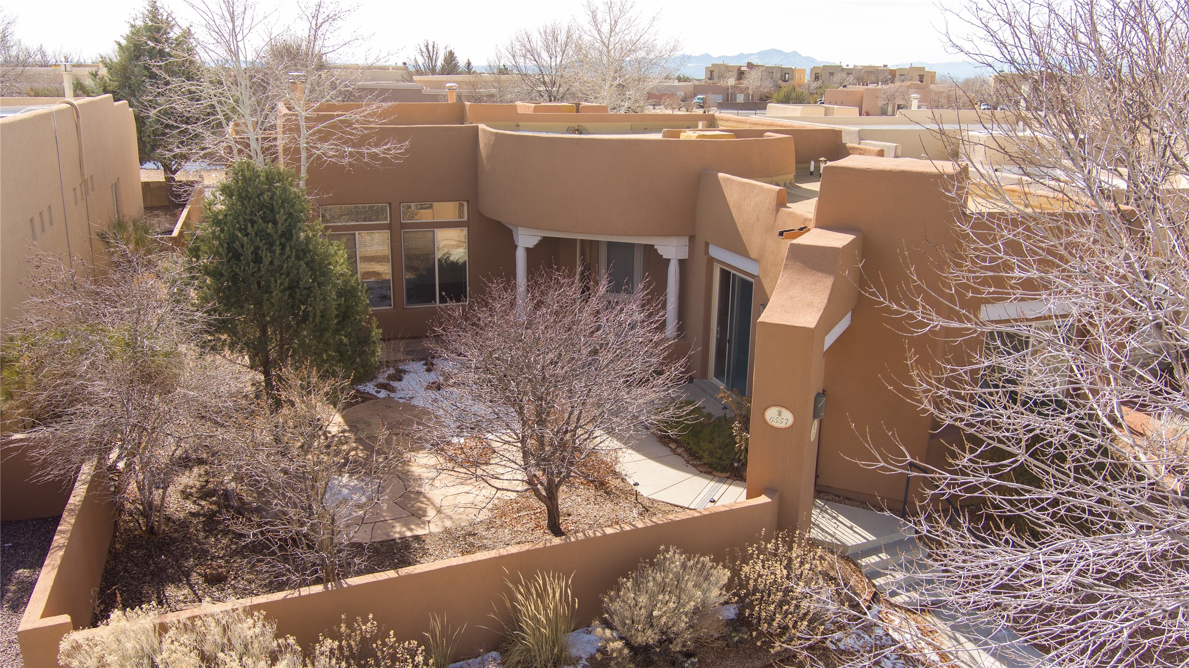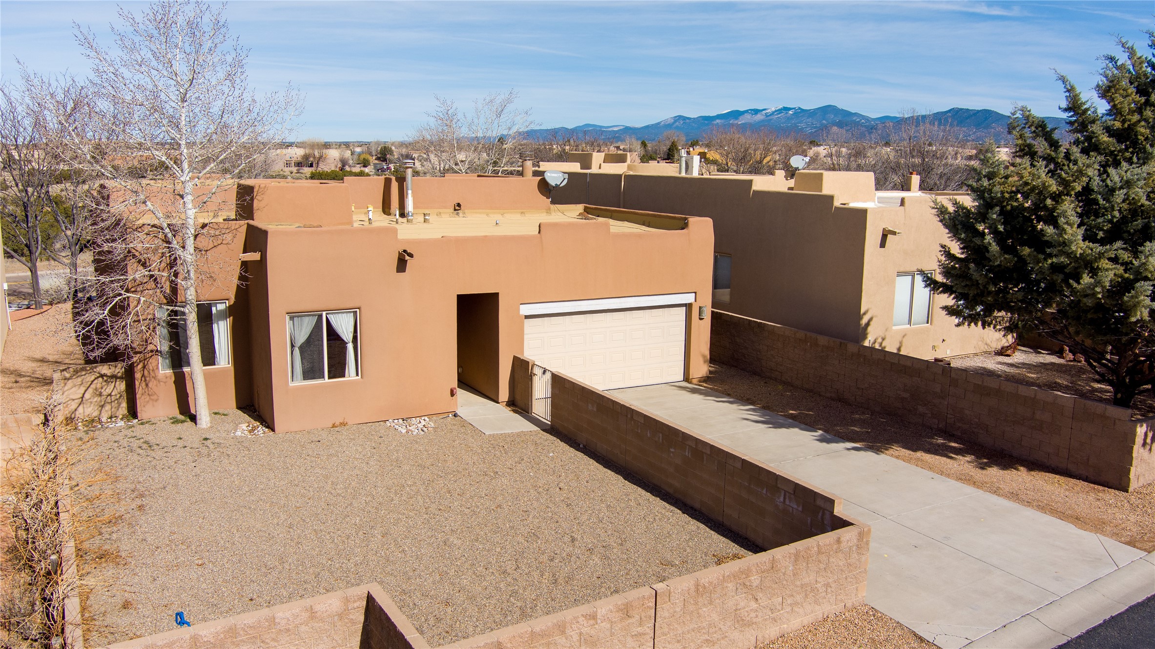 This well maintained Rancho Viejo home boasts mature landscaping with views of the Jemez Mountain Range from the front yard and primary. The primary suite has great separation from the two guest rooms for added privacy. Tall Ceilings coupled with an open concept generate fantastic natural light throughout the home. A Lochinvar boiler was recenlty installed and annual roof maintenance was recently completed.