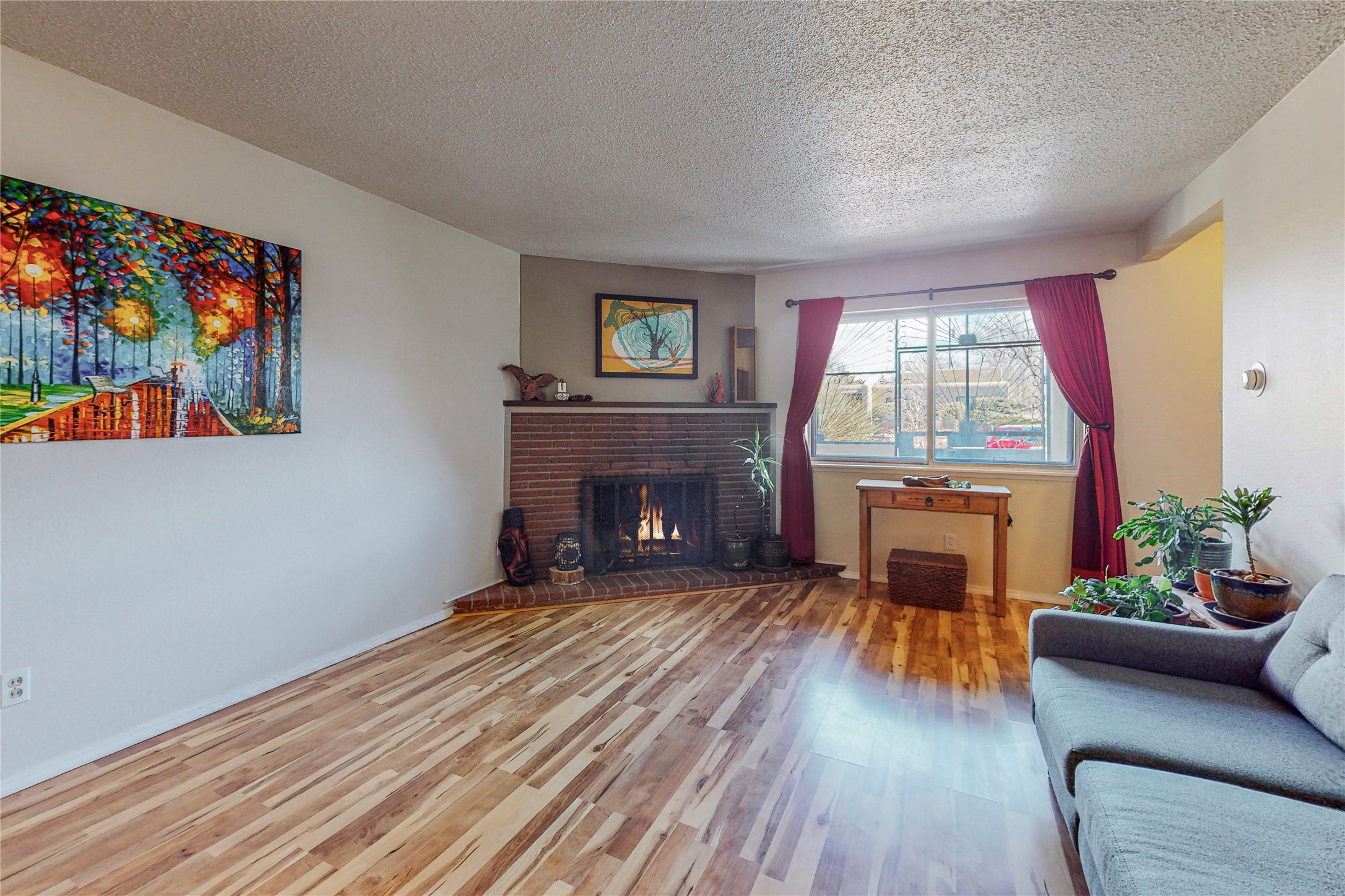 Come see this lovely well-maintained home in the Barrio La Canada neighborhood just minutes from the Plaza before it's gone! Solar panels and a pitched metal roof! Two great things you love to hear about homes in New Mexico. Light, bright, and spacious updated home! Upon stepping inside the front door you're greeted by the first of two living areas that boasts a wonderful fireplace against a brick wall. In one direction you can head towards the hallway to find one of the guest bedrooms, guest bathroom, and primary bedroom with ensuite and french doors opening to an outdoor patio. Heading the other direction you'll find yourself entering an open concept kitchen with lots of cabinet and pantry space, which opens up to the dining area, and second living room with the perfect wood burning fireplace also against a brick wall to set the mood. A third bedroom/office off the dining area as well as a mud room/bike room/workshop. This area could also be perfect to close off into an at-home office or possibly a rental as it has it's own separate entrance. Out back you have an outbuilding for gardening supplies, workshop, or storage. A covered patio, plenty of space to entertain, relax, garden. There is a second driveway to park an RV if you'd like. This home is in a convenient location, minutes to the Plaza and Railyard. The W Alameda river walk is very close by to hop on with your bike or walking. Have a look at the clean inspection report, the ultra low electric bill due to the solar panels, and schedule your appointment today!
