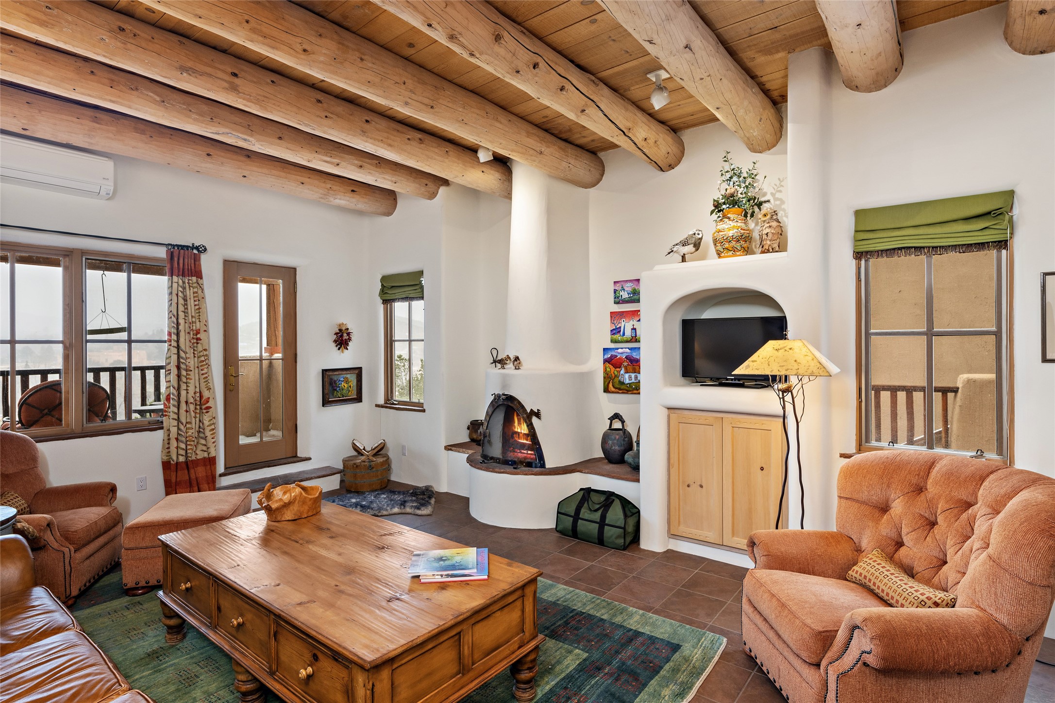 If you want mountain and city views, with a great location, you have it all at this superb Eastside home with spectacular views of Atalaya & Picacho Peaks and the historic Eastside of Santa Fe and Cristo Rey Church, within walking distance to Canyon Road! Great outdoor living spaces with 3 separate decks and two additional flagstone patios. Gorgeous, complete kitchen remodel in 2020. New mini-splits were installed in 2019. New high efficiency heating and mechanical systems installed in 2022. New Roof & Stucco in 2019; Roof is under warranty until 2035! Spacious primary bedroom suite offers a jacuzzi tub, separate shower, double vanity, a large walk-in closet and a private outdoor deck for spectacular East mountain and city views. The upper-level Library/Den has a cozy Kiva fireplace and a West facing deck for spectacular Sunsets. Living Room has a Kiva fireplace and an East facing view deck. The spacious dining area and fabulous new kitchen provide for comfortable and elegant entertaining. There are two guest bedrooms on the lower level that share a full bath. Quintessential Santa Fe charm and character throughout this wonderful home. An oversized two car garage with plenty of storage space completes this spectacular offering.