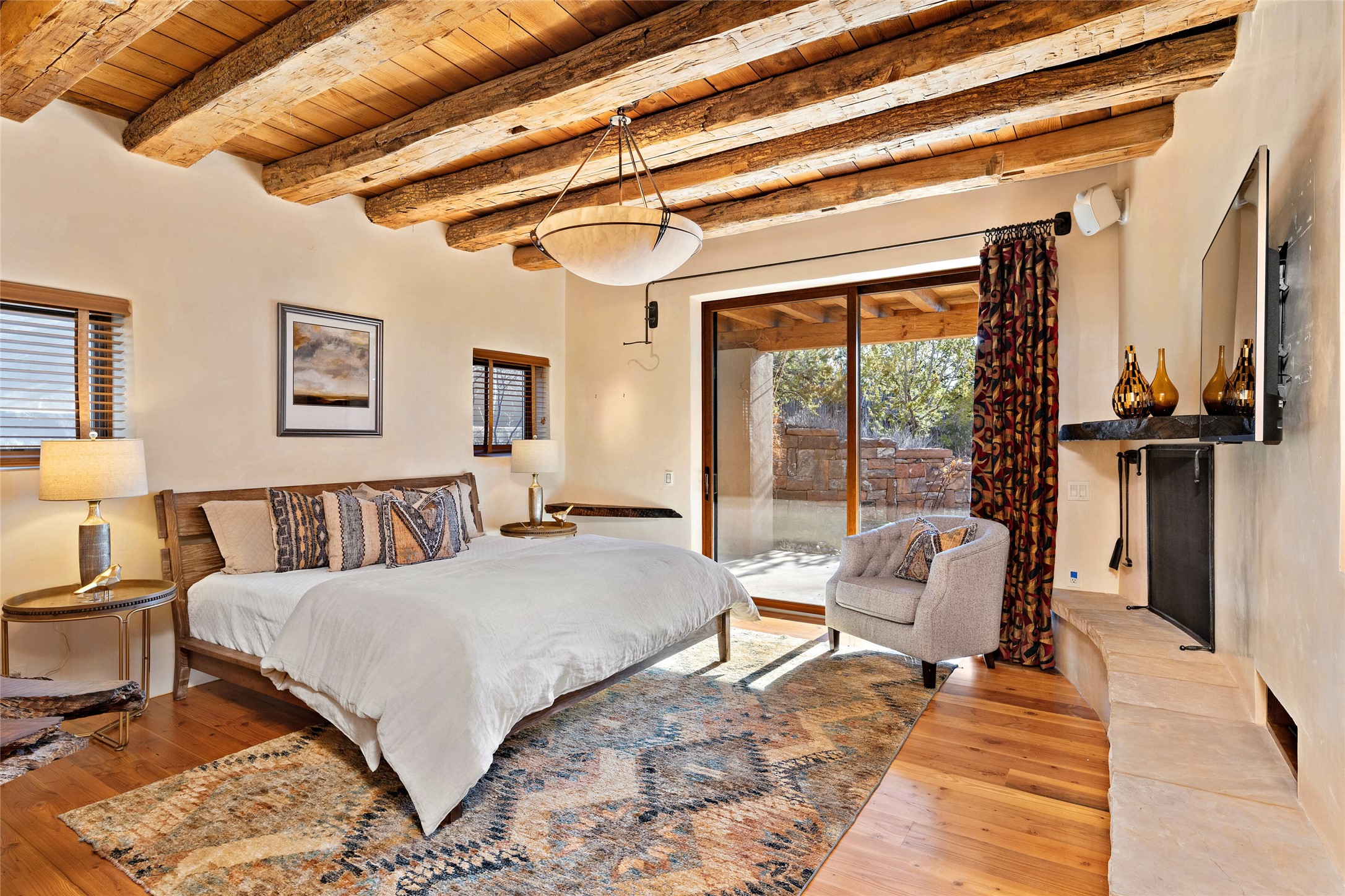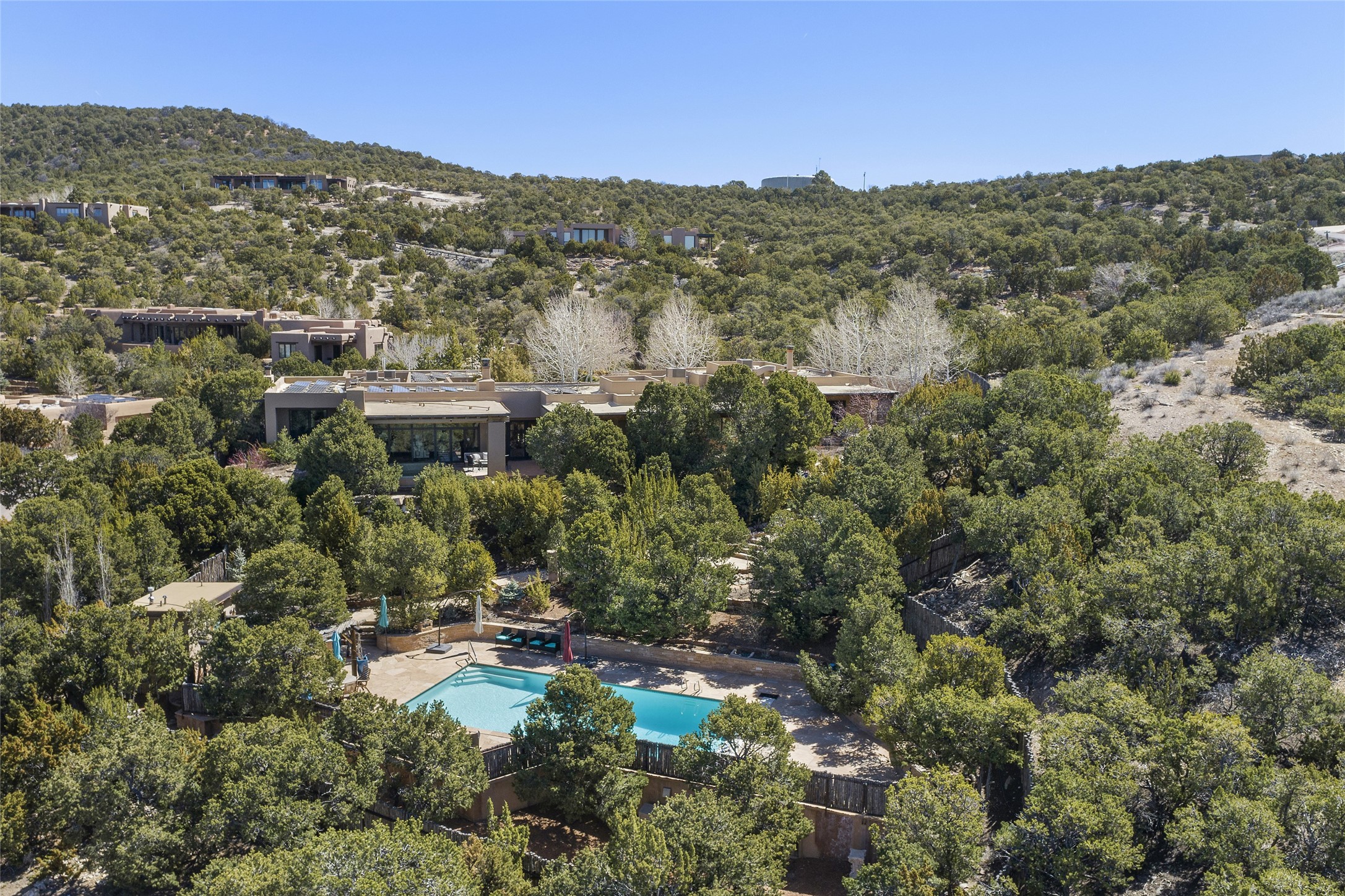 Spectacular top of Sierra del Norte gem with stunning views, contemporary architecture, premier builders (Prull & Boniface), and graceful living spaces. The open floor plan concept flows from the kitchen through to the living room and dining room, out through the over-sized portal, and off to the mountain range views in the distance. Enjoy true picturesque sunsets from this private estate, replete with generous pool and new cabana area, anchored by a private owner's suite (with work out room), two guest bedrooms with en suite baths, separate guest quarters with wet bar & stacked stone fireplace, state-of-the art home theatre, double attached garage, and mature landscaping. The cook's kitchen features warming trays, six-burner Viking range, wood-burning pizza oven, built in refrigerator, separate high temperature wok burner, and massive center island - which is great for food prep and casual kitchen entertaining. The in ground heated pool and cabana area are separated from the main house, and create a private escape from the world - all with expansive views of the Jemez Mountain range, yet loaded with on-site entertaining and with stainless steel outdoor kitchen and barbecue area - with outdoor shower and bath/shower area. The over-sized rear portal area flows off of the living room/dining room, and invites guests to enjoy the impressive outdoor spaces. The entire property is extensively landscaped for year around enjoyment.