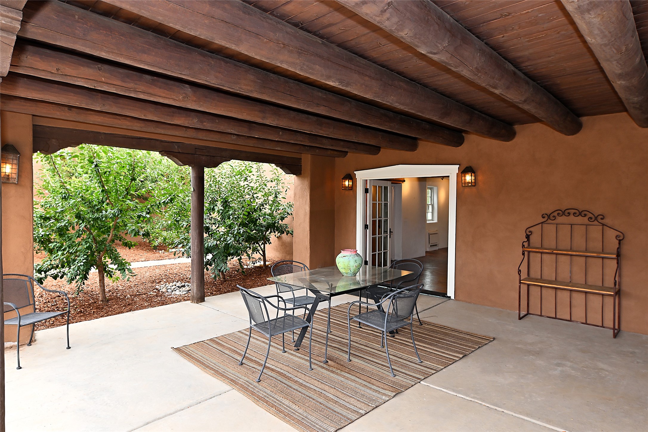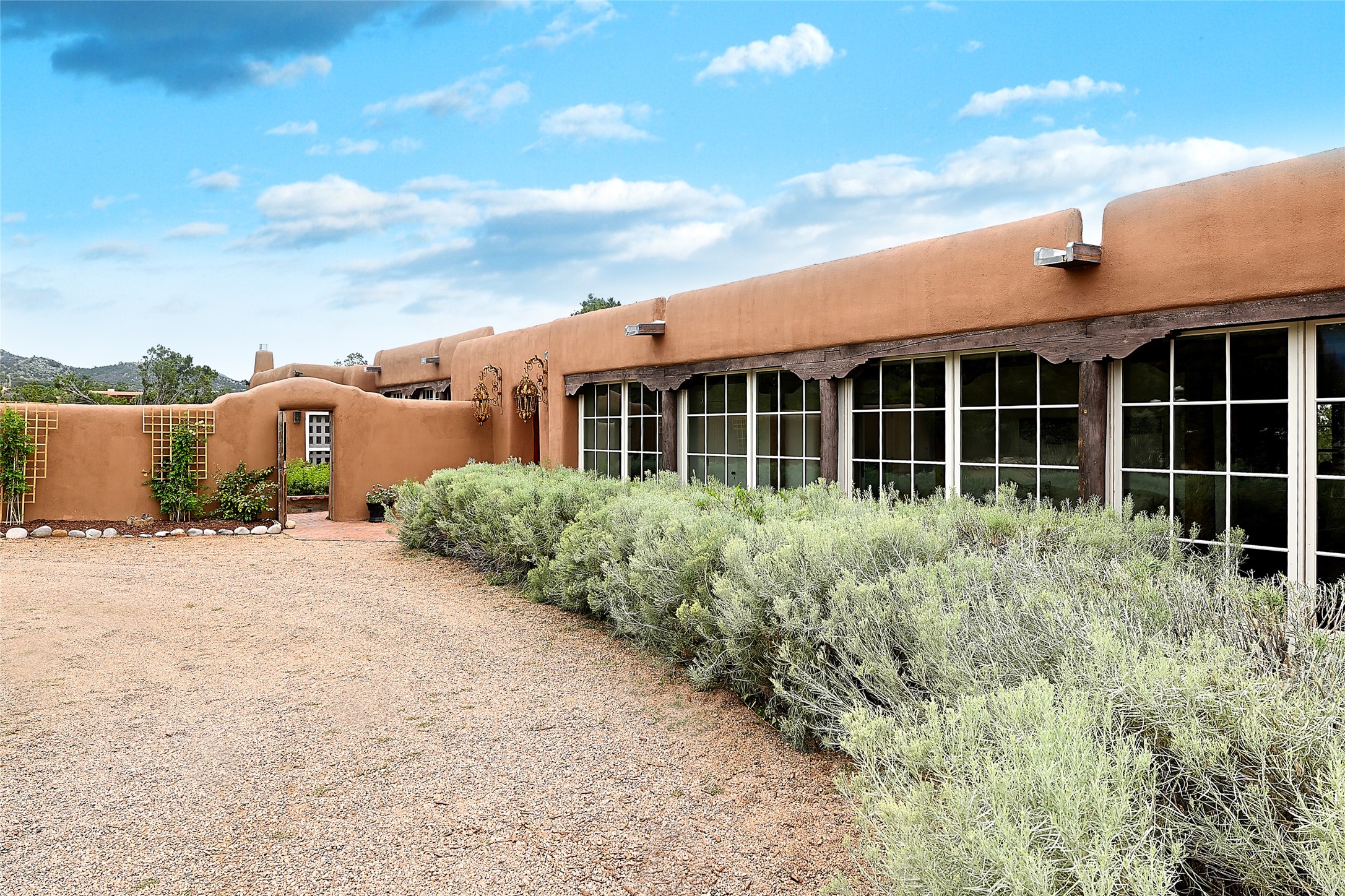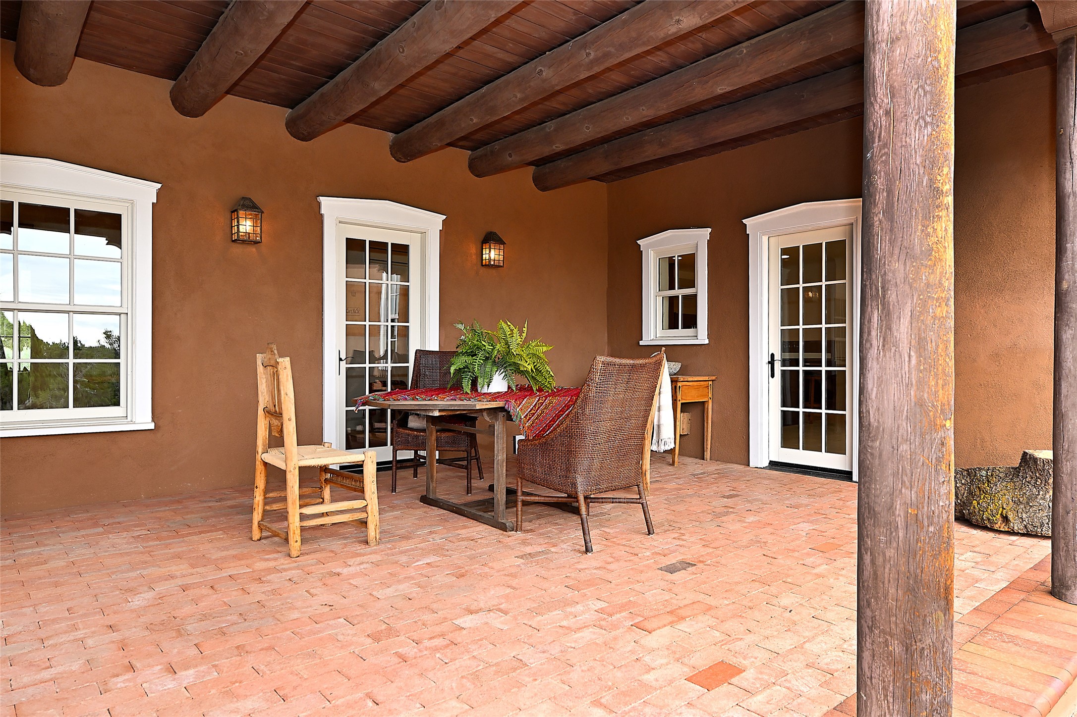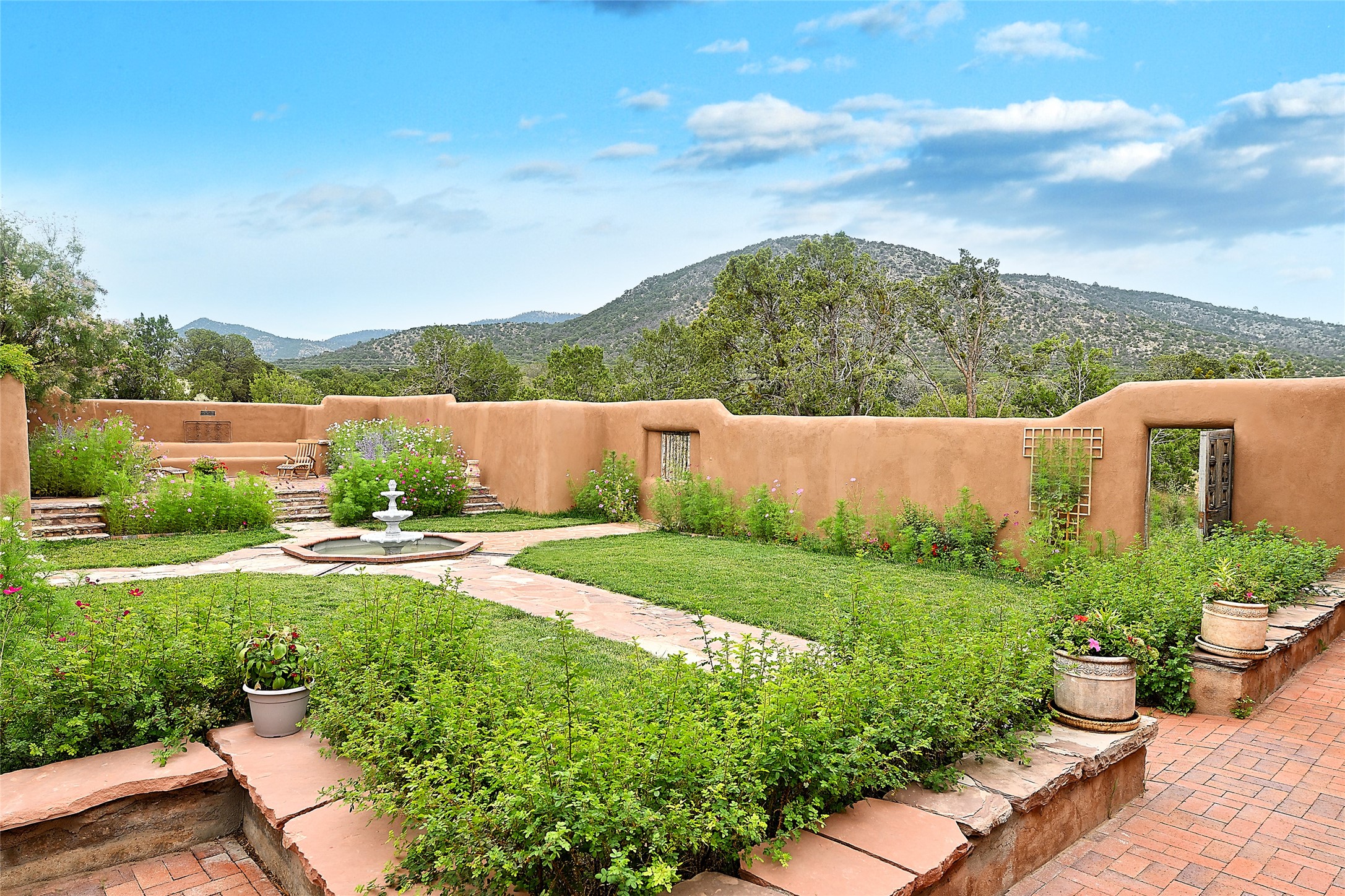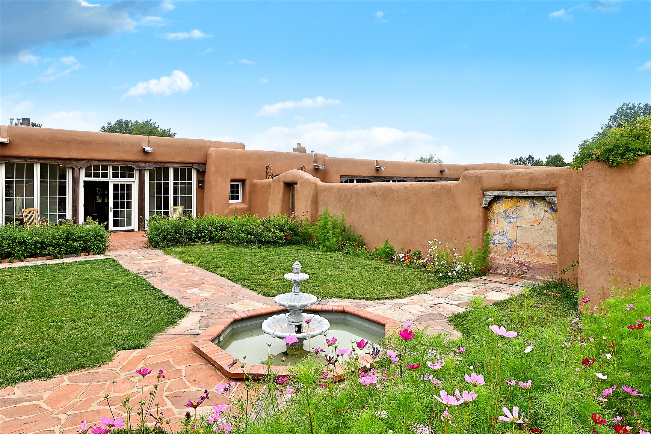 Designed by renowned architect John Gaw Meem and built in 1929, the historic Proctor Compound is sited on two acres in Sun Mountain Estates, on the edge of Museum Hill, and comprises a primary residence, a two-bedroom casita, and a spacious studio. The approximately 6,500-square-foot home is introduced by a courtyard with a classical fountain, a vintage fresco, flagstone terraces, and stunning mountain views. It features four bedrooms, six baths, five portals, a media room, a grand sala, formal dining room, spacious kitchen with superior appliances, a breakfast area, and two offices, laundry rooms, and sunrooms. The two-bedroom casita--which provides two baths, laundry facilities, a private courtyard, and the studio--which offers a full bath, a kitchen, and laundry facilities--lie across a second courtyard with fruit trees. While retaining the 1929 Pueblo Revival design elements and understated elegance for which Meem was known, the property has been carefully rejuvenated with updated systems: plumbing, electrical--including an 11.5 kilowatt solar array--heating, and cooling as well as a new roof, stucco, and windows. Contributing to the distinctive aesthetic are eight fireplaces, bancos, hand-carved doors, oak floors, vigas, beams, corbels, and replastered interior walls with original contours and soft edges. The skylit three-car garage could also serve as a workshop or studio. This is a rare opportunity not to be missed.