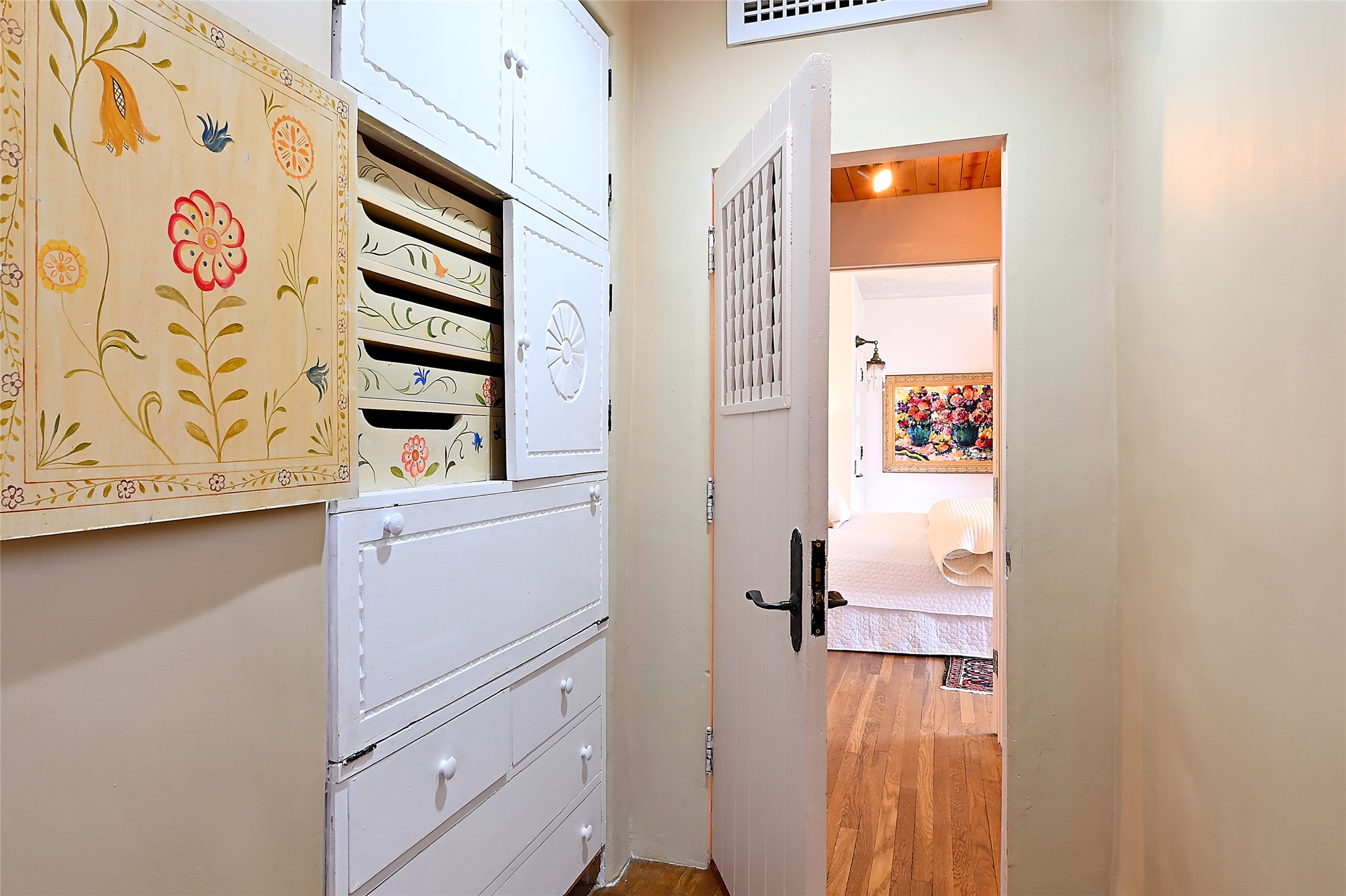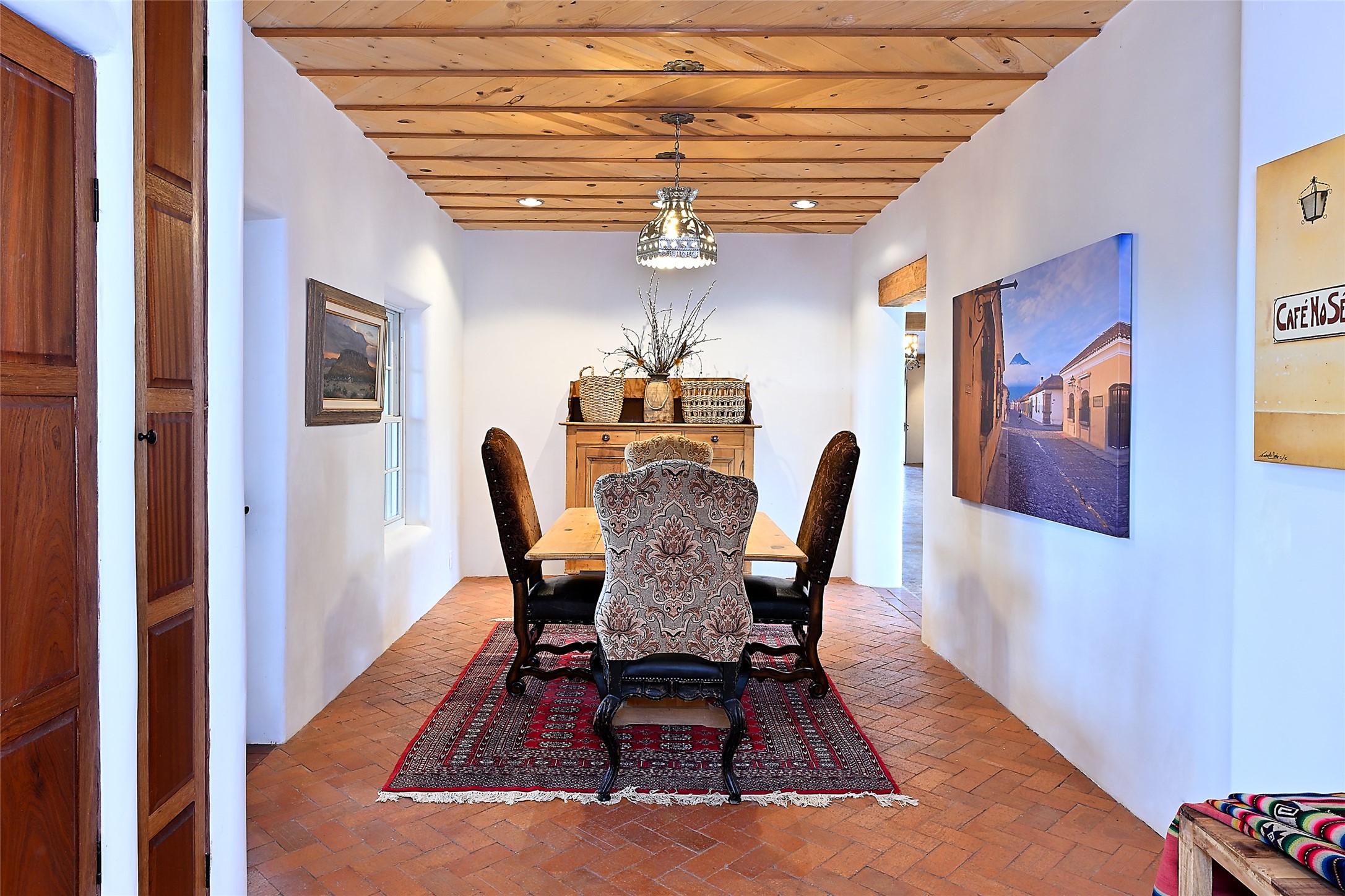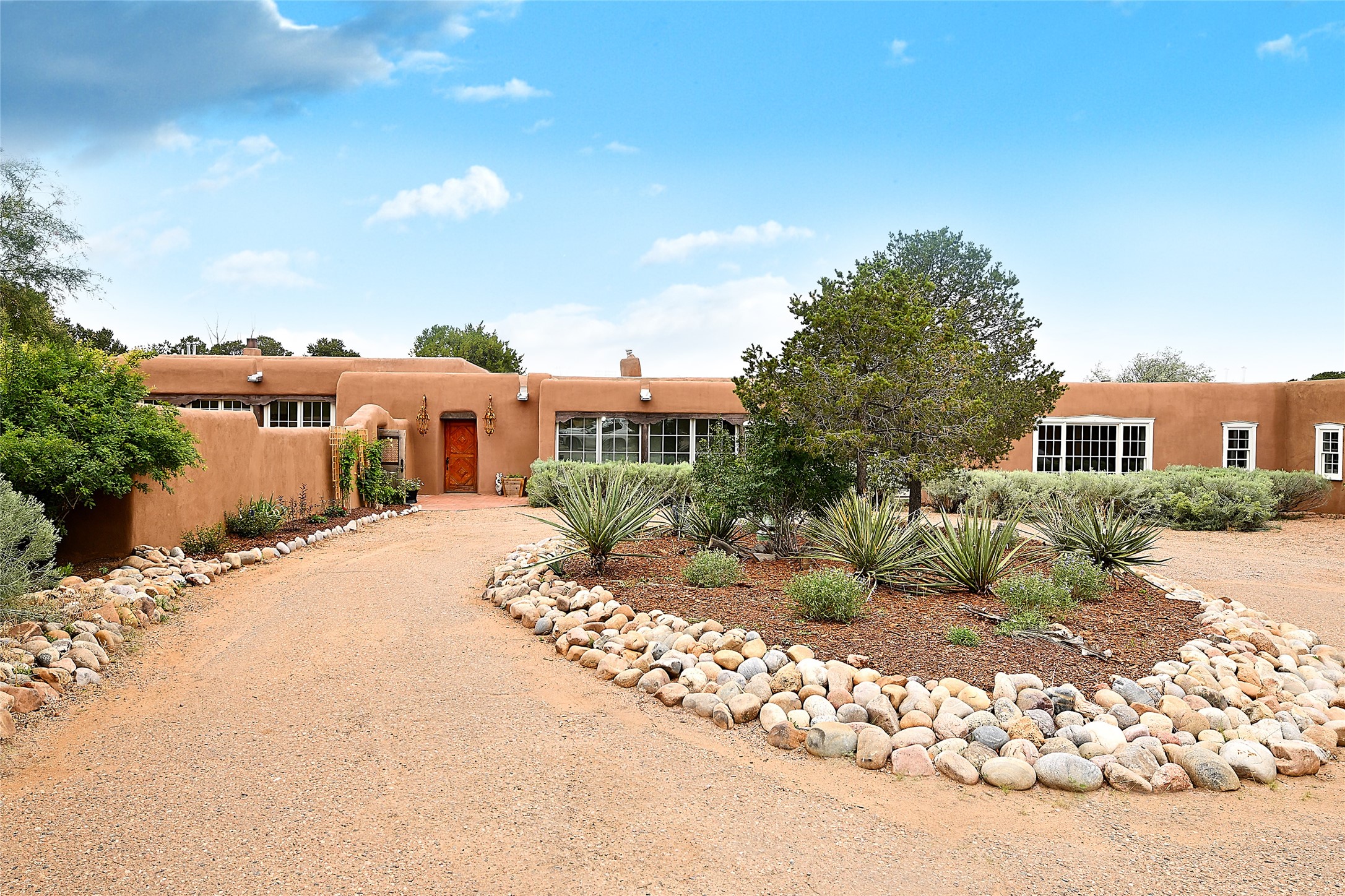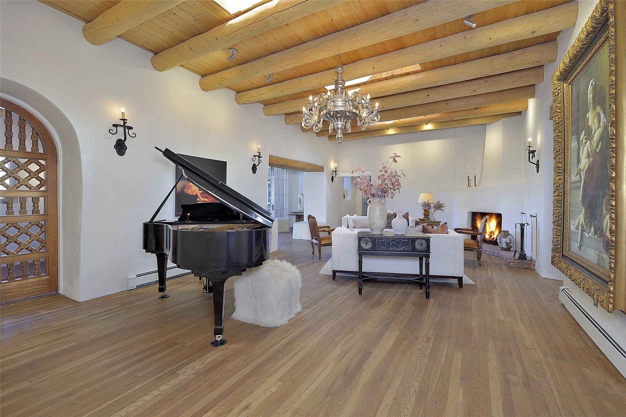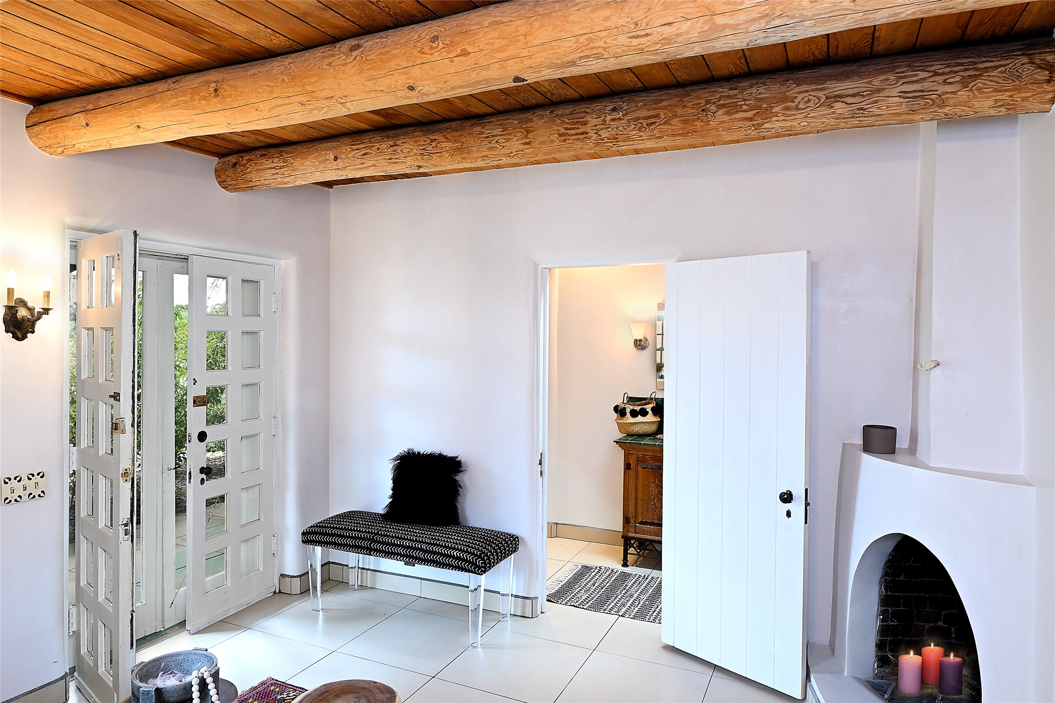 Designed by renowned architect John Gaw Meem and built in 1929, the historic Proctor Compound is sited on two acres in Sun Mountain Estates, on the edge of Museum Hill, and comprises a primary residence, a two-bedroom casita, and a spacious studio. The approximately 6,500-square-foot home is introduced by a courtyard with a classical fountain, a vintage fresco, flagstone terraces, and stunning mountain views. It features four bedrooms, six baths, five portals, a media room, a grand sala, formal dining room, spacious kitchen with superior appliances, a breakfast area, and two offices, laundry rooms, and sunrooms. The two-bedroom casita--which provides two baths, laundry facilities, a private courtyard, and the studio--which offers a full bath, a kitchen, and laundry facilities--lie across a second courtyard with fruit trees. While retaining the 1929 Pueblo Revival design elements and understated elegance for which Meem was known, the property has been carefully rejuvenated with updated systems: plumbing, electrical--including an 11.5 kilowatt solar array--heating, and cooling as well as a new roof, stucco, and windows. Contributing to the distinctive aesthetic are eight fireplaces, bancos, hand-carved doors, oak floors, vigas, beams, corbels, and replastered interior walls with original contours and soft edges. The skylit three-car garage could also serve as a workshop or studio. This is a rare opportunity not to be missed.