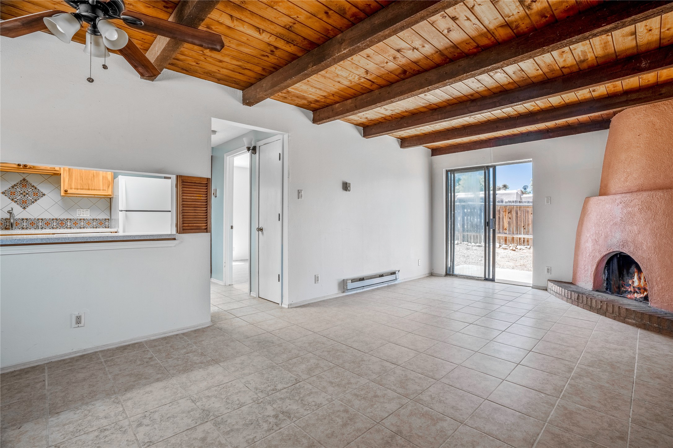 Santa Fe Investors! Fantastic four-plex opportunity with (1) 2 bed/1.75 bath unit and (3) 1 bed/ 1 bath units. Move into the 2 bed/1.75 bath yourself ( vacant as of Dec. 2023) or start a fresh lease with a new tenant. All kitchen counters, tile work and cabinetry have been renovated along with the bathrooms. Each unit has a cosy kiva fireplace, washer/dryer and access to private fenced yards. They're well laid-out, with open living rooms, beamed wooden ceilings and kitchens with skylights and plenty of counter space. Check photo of the roof with the 10 year roof warranty that's transferable to the next owner. Utilities are separately metered, except for water which is billed by the owner. Fabulous central location:12 minutes to the Santa Fe Plaza, supermarket shopping just across St. Francis Drive, and Target andTrader Joe's only 7 min. The Chavez Community Center, with community and fitness programs, pools and ice rink is even closer. Great location for commuters with easy access to St. Francis Drive and I-25.