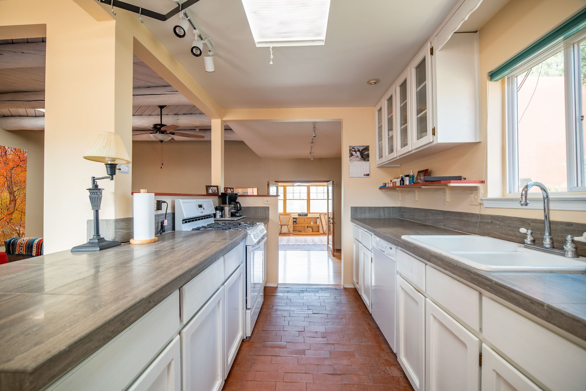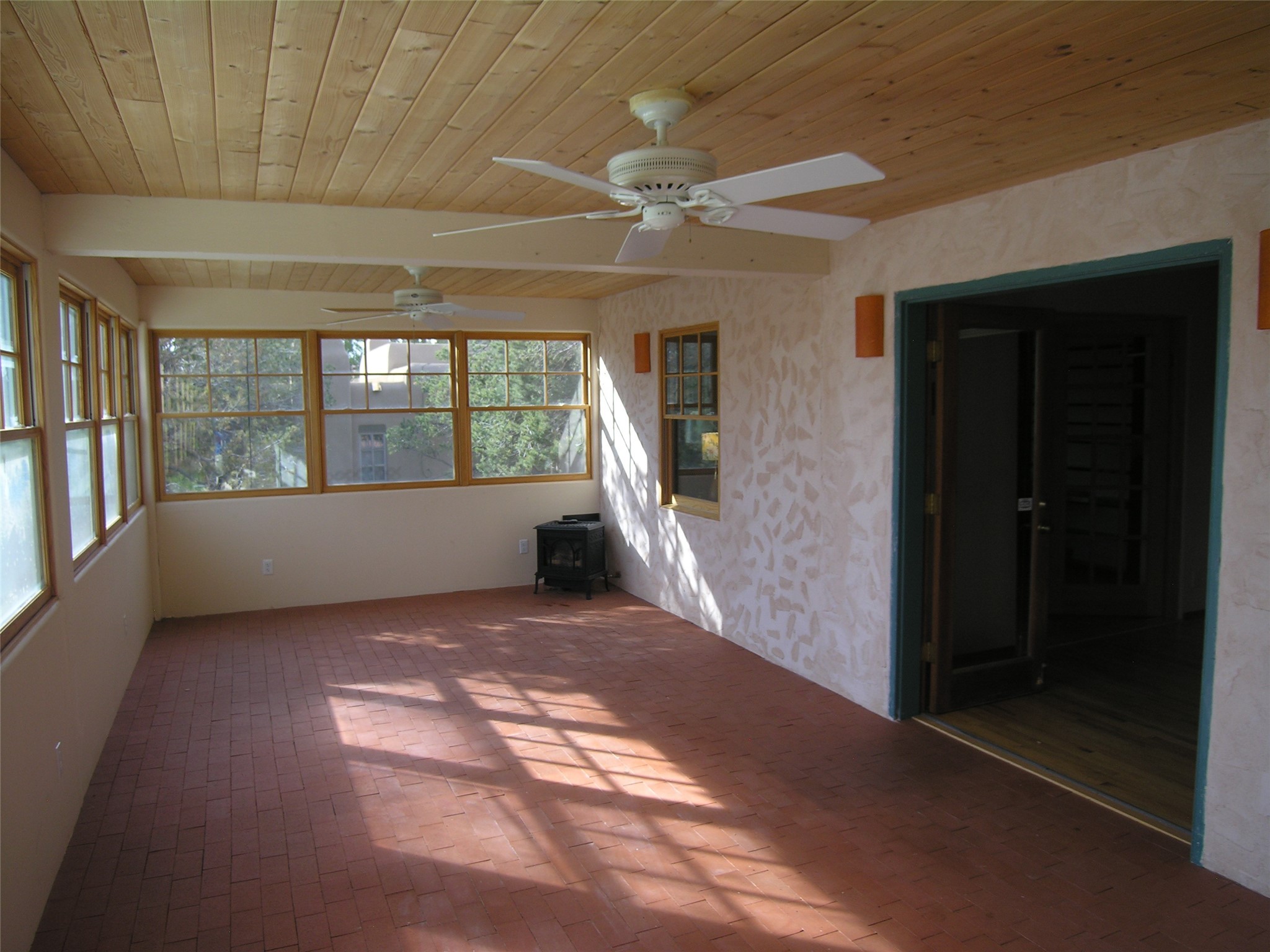 This lovely 2BR 2Ba residence with an in-home office is waiting for a new owner to make it their own. The home needs renovation work, has some condition concerns, but has character, with vigas, a kiva fireplace, a step-down living room with wood floors, opening to a large and airy enclosed sunroom. The kitchen has been modified to create a more open floorplan and there's central AC throughout the house. The lot is almost 1/3 acre of tree covered privacy with an open front entry courtyard and views of sun and moon mountains. The rear yard area offers a custom storage shed and a large, covered brick patio with lighting and power for outdoor seating and entertaining. A 2 car direct entry garage completes the package.An estate sale with NO seller disclosure statement. Seller acknowledges the property condition and has priced the property accordingly.