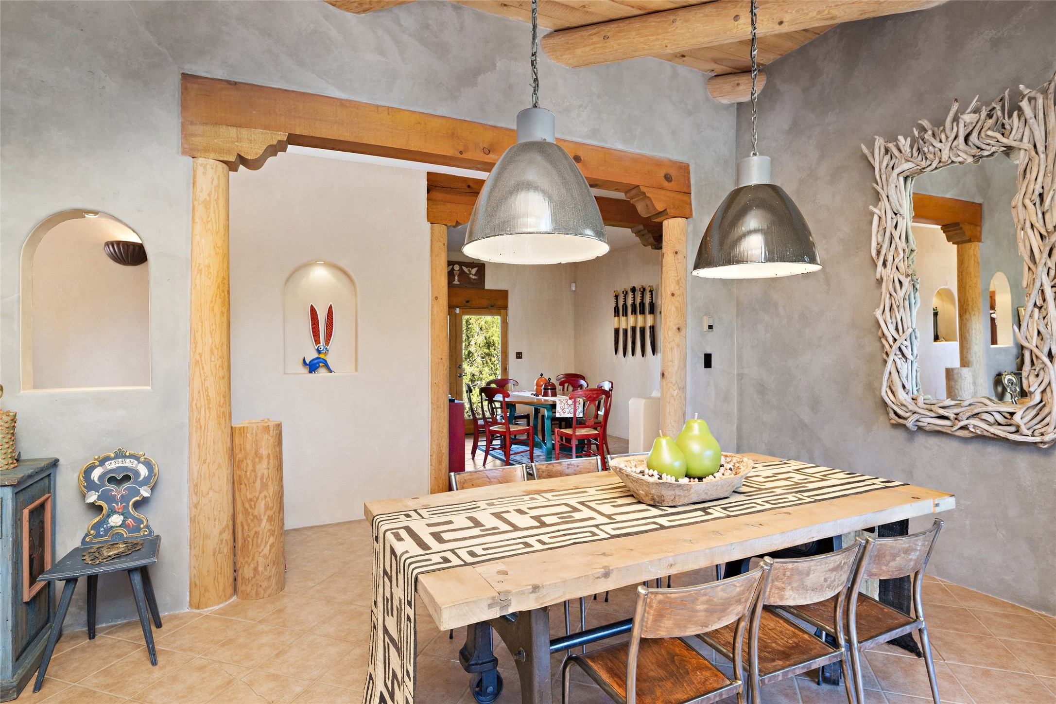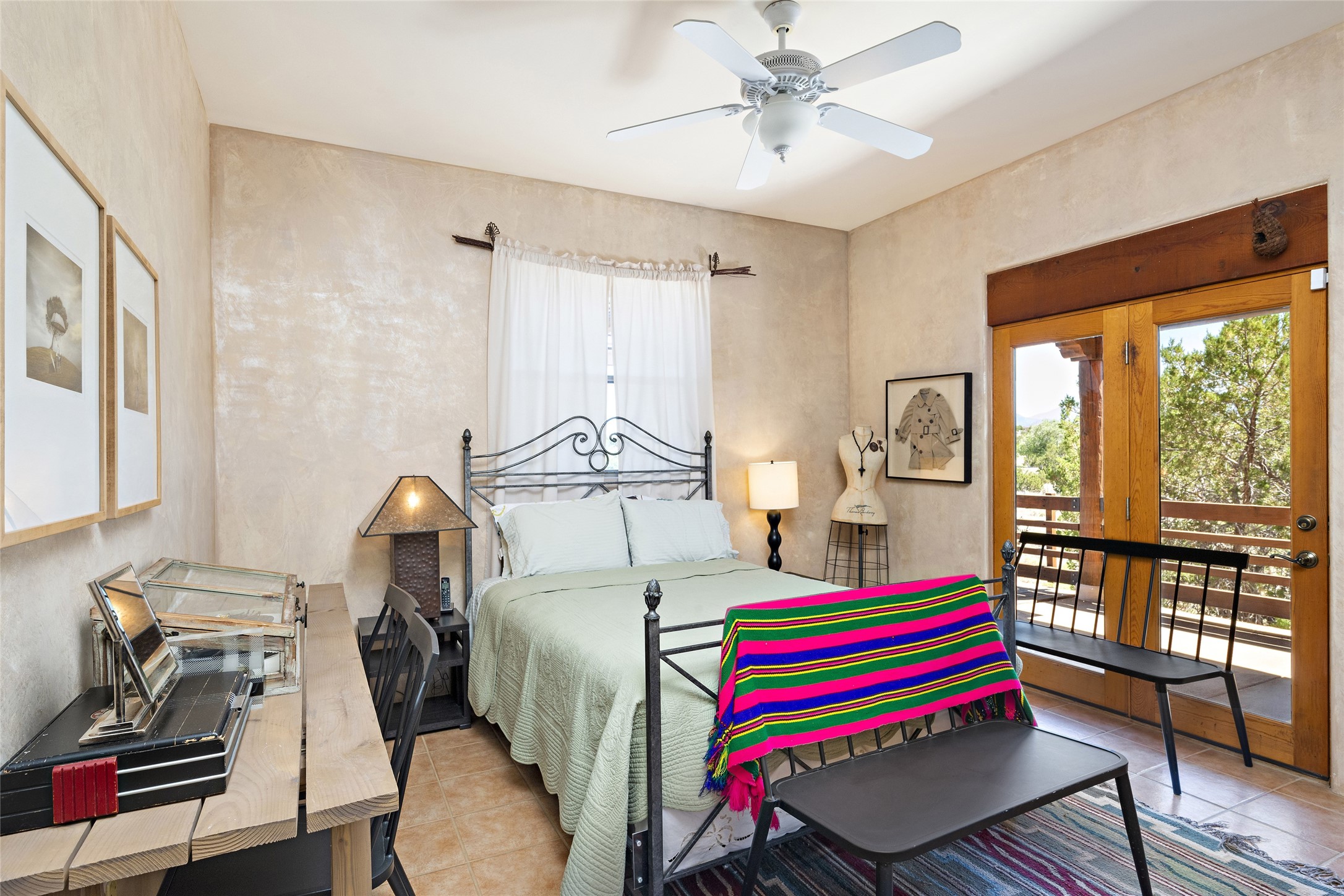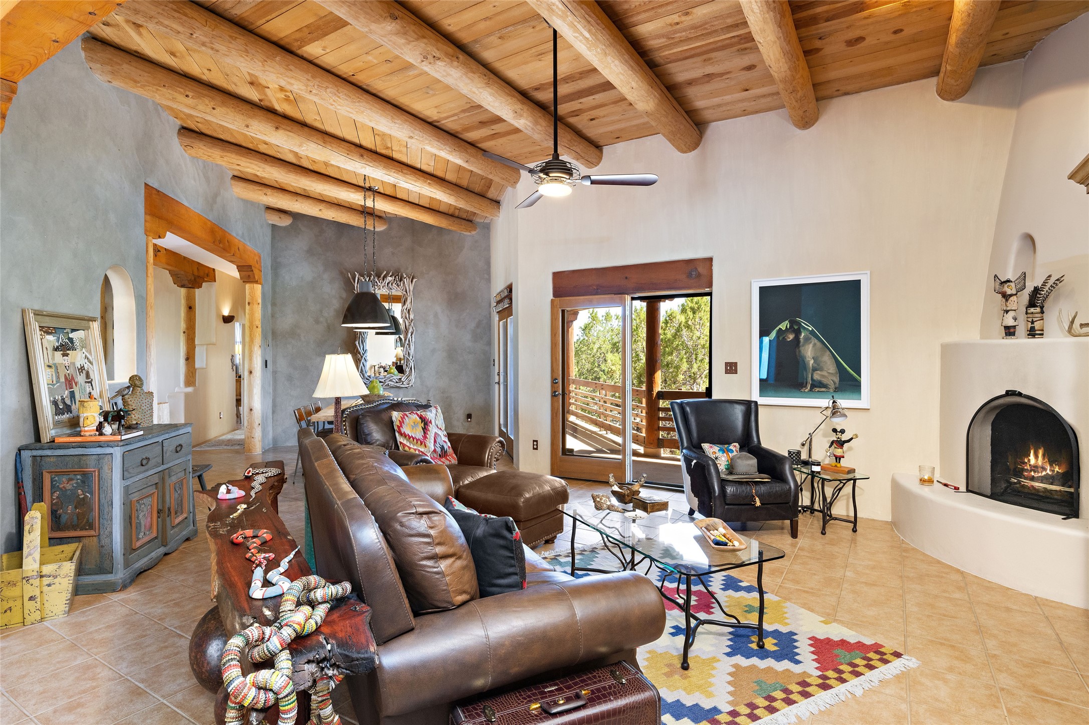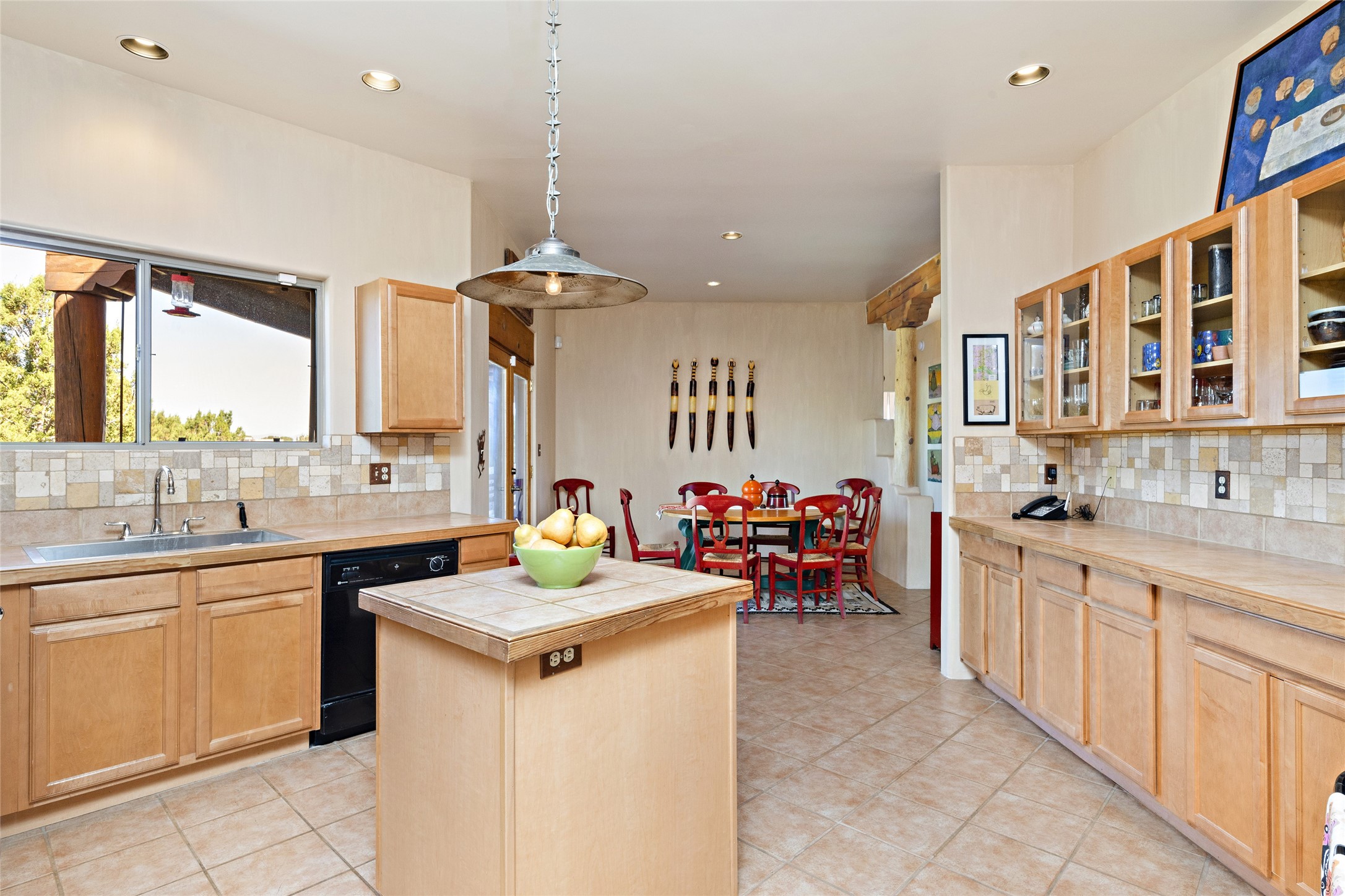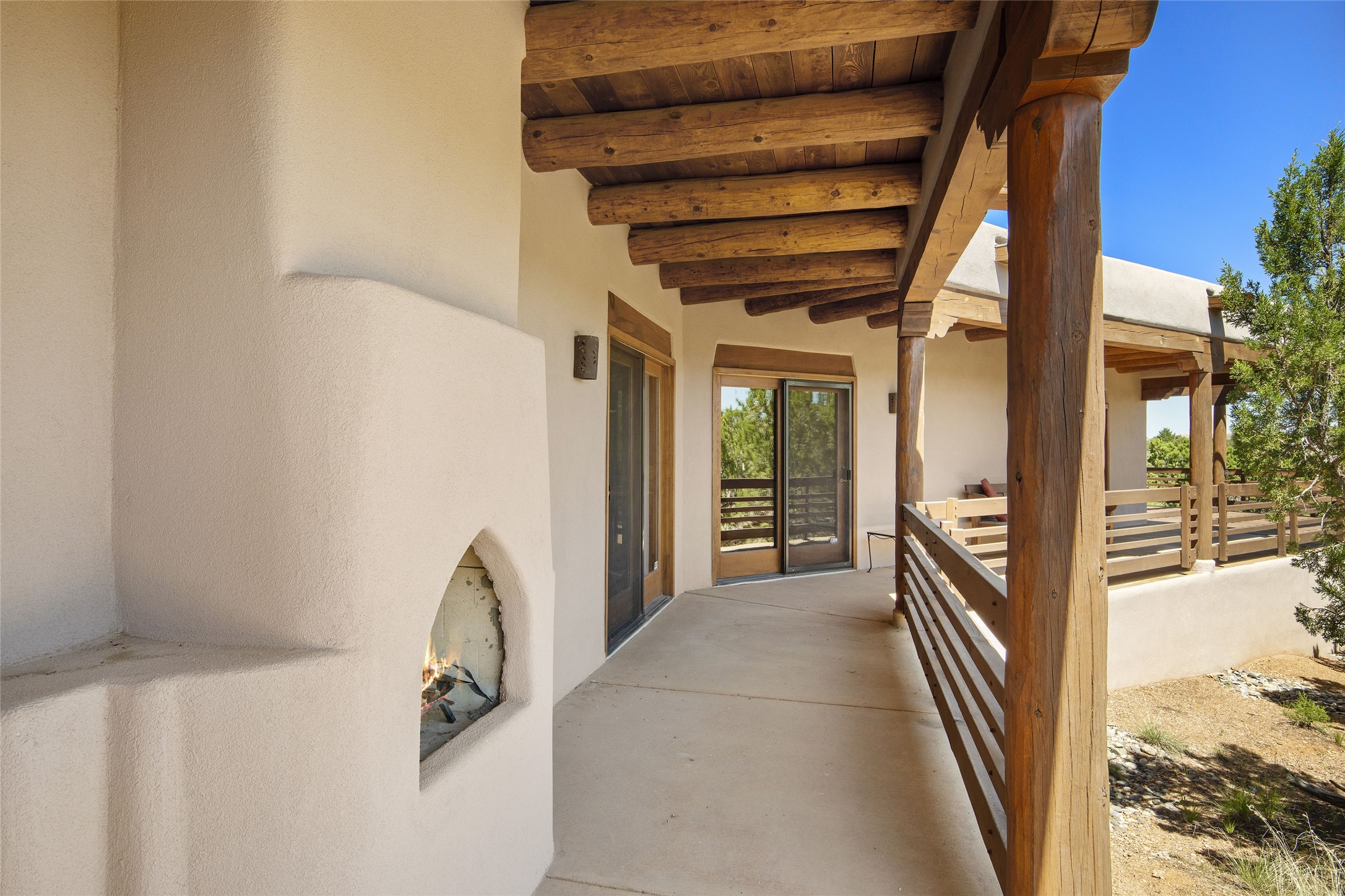 Beautiful custom Eldorado home on a cul-de-sac with separate working artist studio and mountain and foothill views! ***This home has been reduced 95K due to the presence of Kitec in the walls and the radiant heat tubing. Original price 870K. Estimate for $62,754 is in the supplements from Reliable-Tech to replumb and install 5 more splits - two already exist.*** The remaining 27K+ should cover drywall repairs. ***This single-level property has in-floor natural gas radiant heat and mini-splits in the primary bedroom and studio for air conditioning. Dramatic high viga ceilings in spacious living room. Three wood burning kiva fireplaces - primary bedroom, living room and rear covered portal. This happy and sunny home has a deck and covered portal surrounding 2/3 of the home and overlooks the greenbelt with amazing sunset views. Kitchen opens to dining area and has it's own breakfast area and lots of counter space and storage. Primary bedroom has walk-in closet and separate bathtub and shower. Each of the 4 bedrooms has exterior access. New modified bitumen roof 2018 with 10-year warranty. New STO stucco 2018 with 7-year warranty. Deck refinished last summer. Each bedroom has exterior access. NO STEPS, NO CARPET. Proper laundry room with storge. Finished oversized 2-car garage. Custom-made vanities above bath sinks all convey. Property has a Leak Defense System to alert owner to any unusual water usage. Items which do not convey - two lights over dining table and entry light.