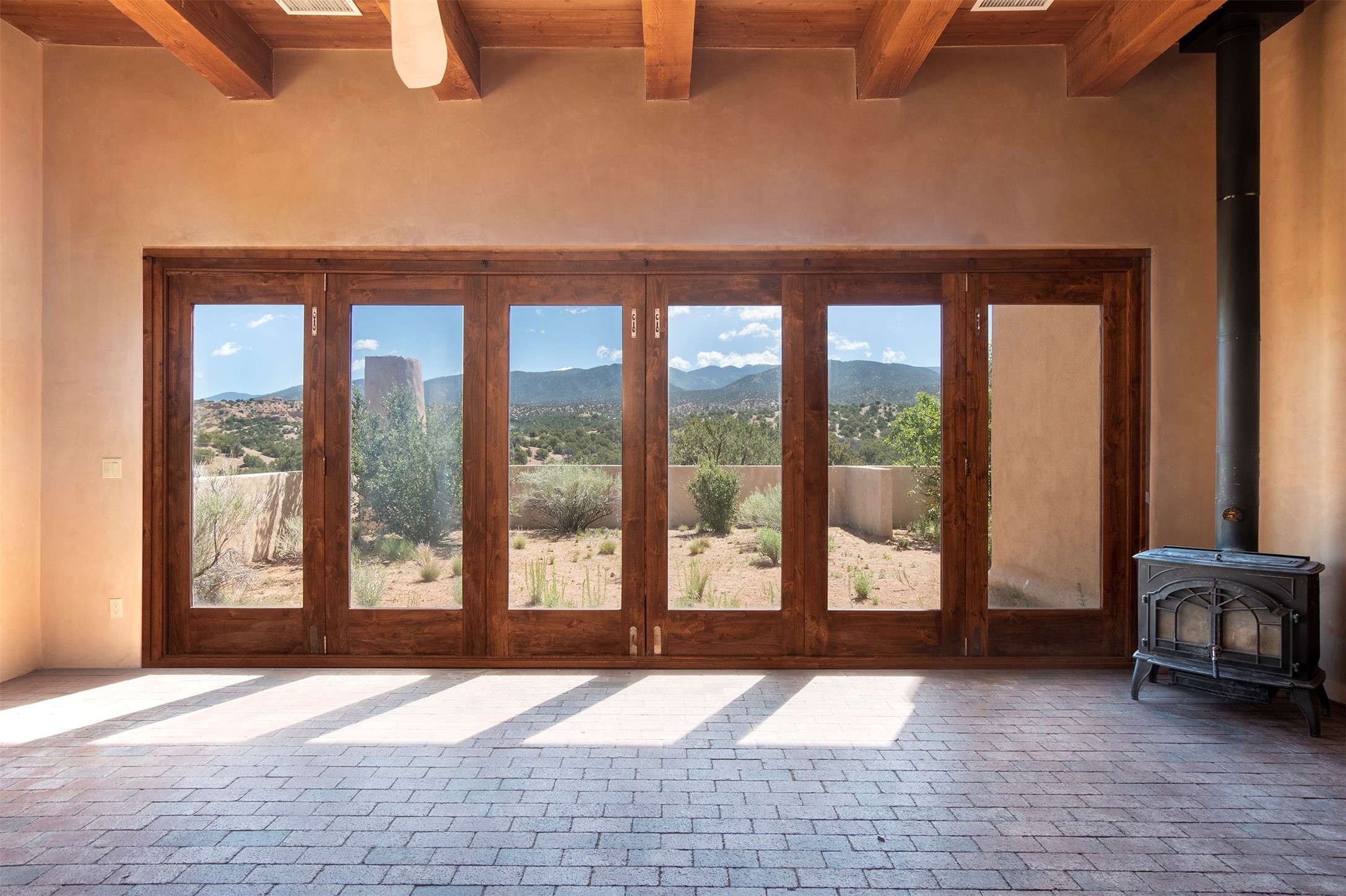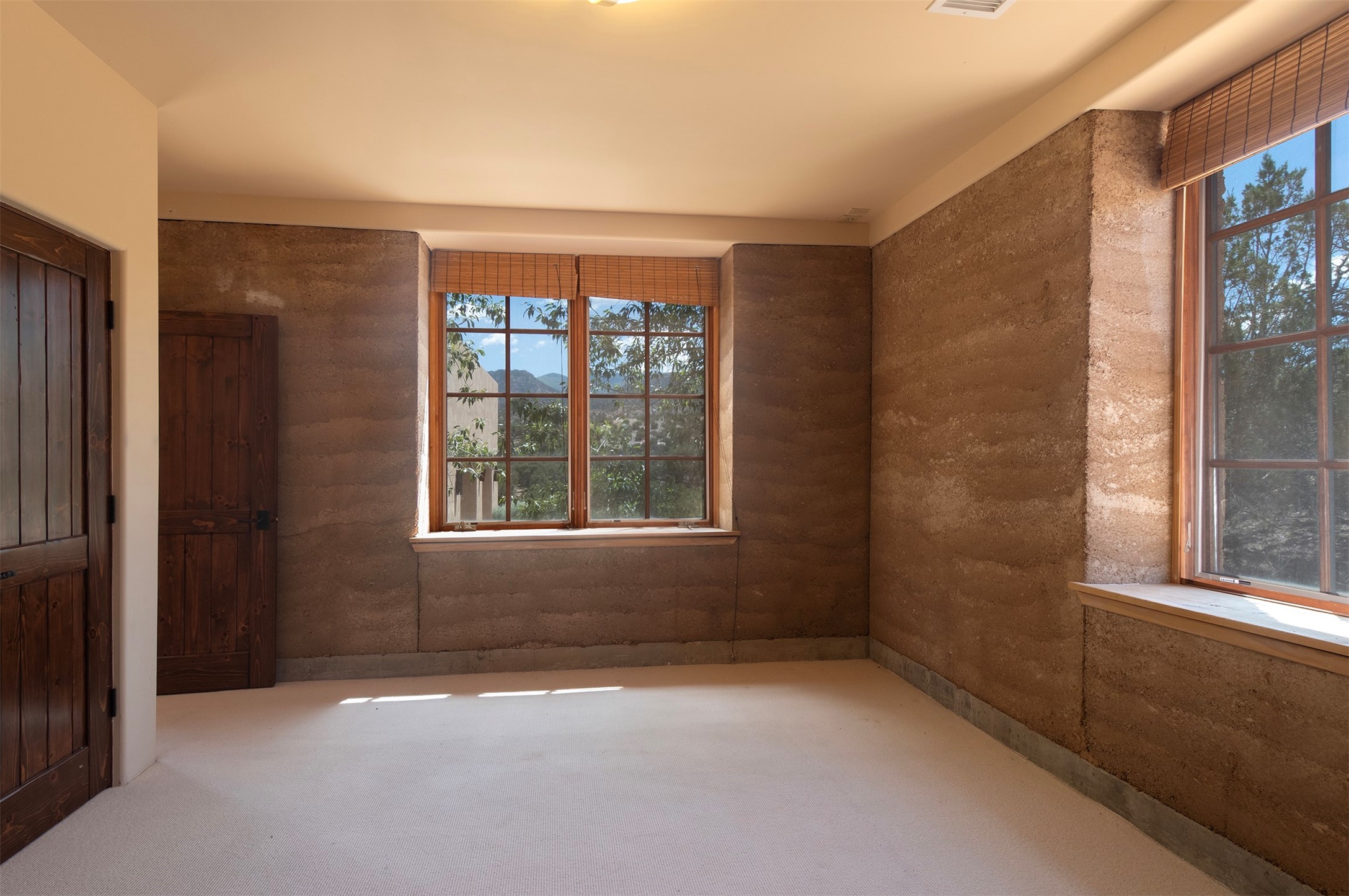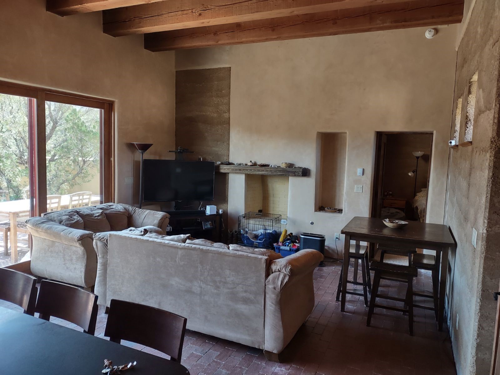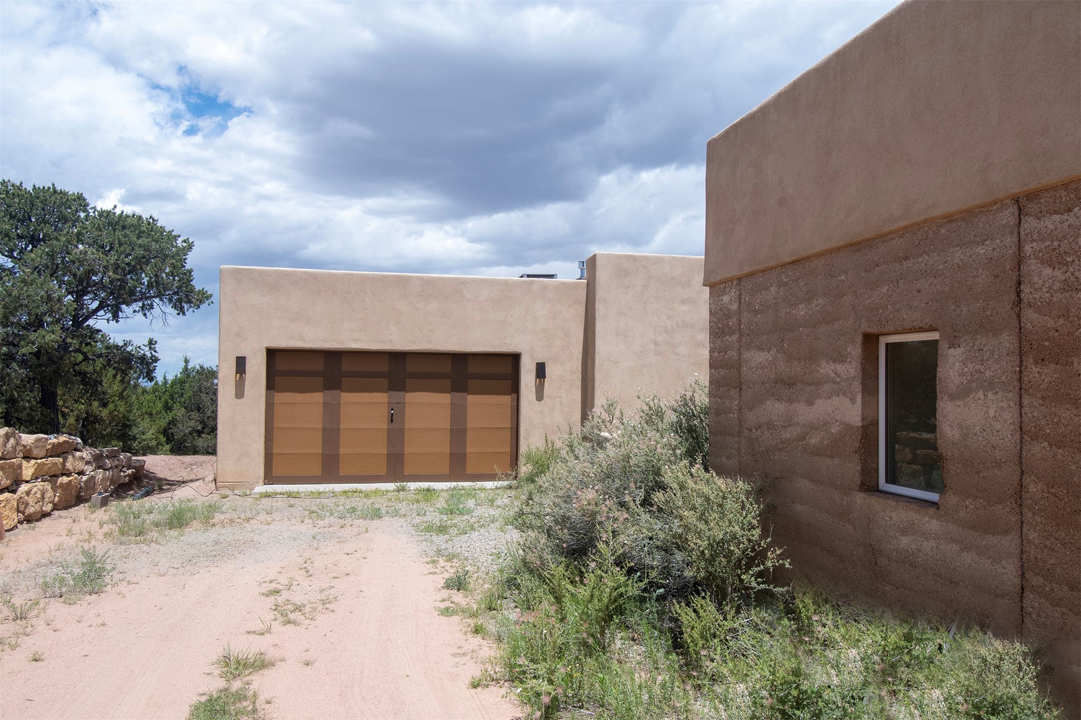 Introducing 23 Lavadero Rd, conveniently located in a neighborhood that offers a short commute to Los Alamos and Santa Fe, breathtaking views of the Sangre de Cristos and Jemez Mountains.Tucked behind Coyote Peak in the quaint hamlet of Tesuque is a stunning home and guest house, masterfully designed by the architect Efthimios Maniatis. One of the last rammed earth homes built with Chandler Huston in the Santa Fe area.As you walk the property, you'll be captivated by the custom garden walls constructed with stones sourced from Bishop's Lodge. Step inside, and you'll be greeted by the interior's exquisite craftsmanship, including steelwork by local metal artist Jeff Overlie. Notably, the basin sinks throughout the house, designed by Jeff, evoke the elegance of Tibetan prayer bowls.Adding to the allure, the mantles for the fireplaces were rescued from the home of the first territorial governor of New Mexico, a touch of local history into this exceptional residence. Furthermore, the home prioritizes nature-inspired living, employing materials with minimal volatile organics to ensure excellent interior air quality. The floors feature a combination of brick, strand-woven bamboo, and sustainable wool carpets. Many of the interior walls are custom diamond plaster.The main house comprises three or four bedrooms and two and a half baths, offering a comfortable and flexible living space, including a chef's kitchen. The guest house offers two bedrooms and two baths, with a strong rental history. It presents an ideal space for hosting guests, accommodating extended family, or generating rental income.Situated on 6.4 acres, this property features hiking trails perfect for dog walks that extend into the neighborhood and the National Forest. Explore the picturesque landscape, whether venturing into the Sangre de Cristos or strolling down to the Tesuque Village Market. Priced below market value so a special buyer can put the finishing touches on this one-of-a-kind home.