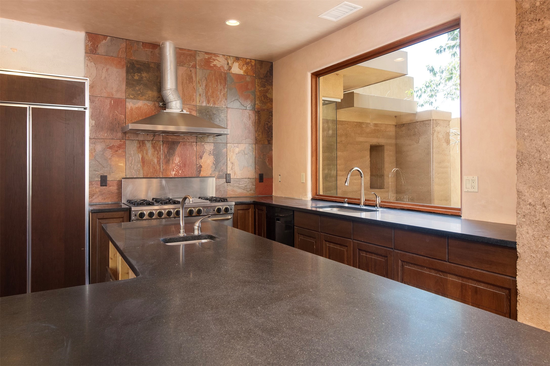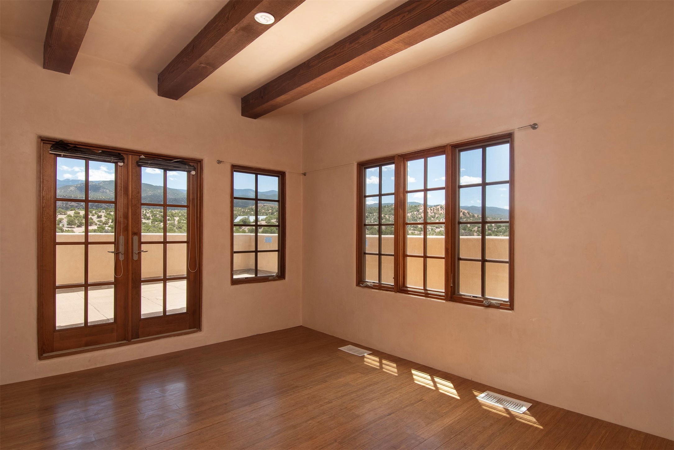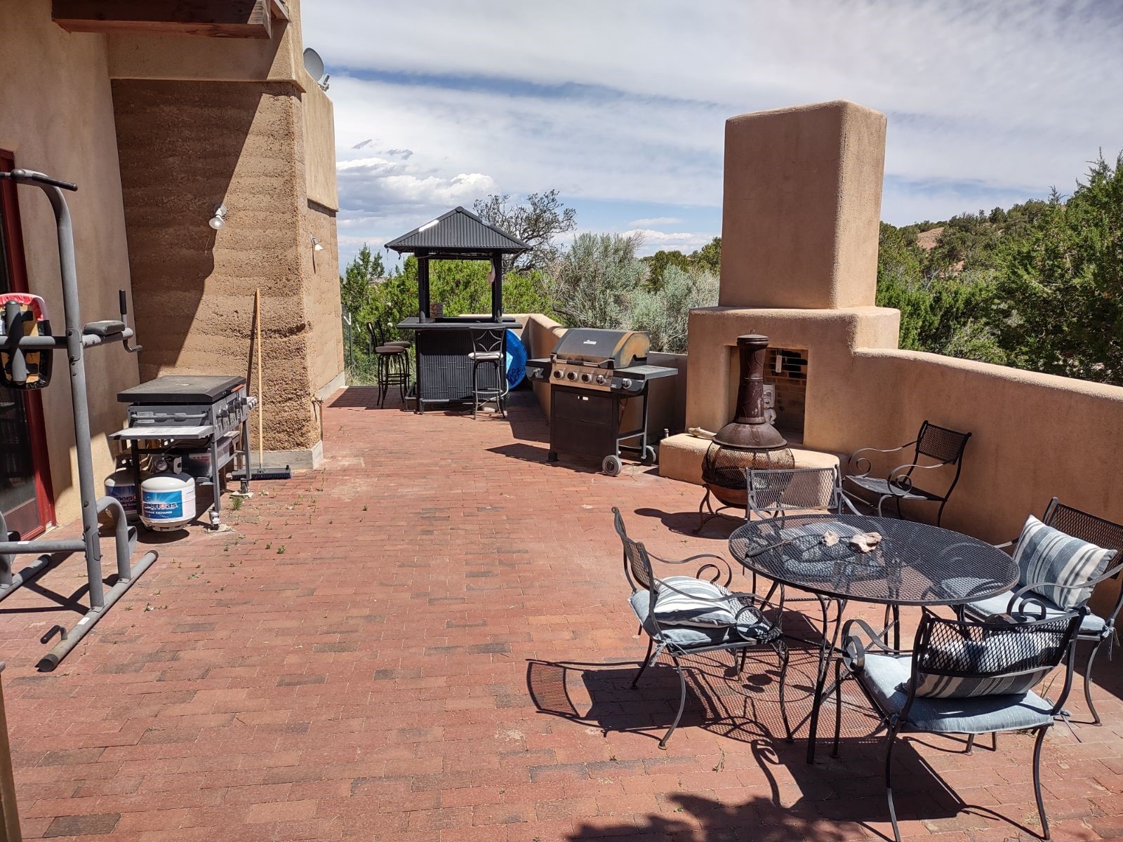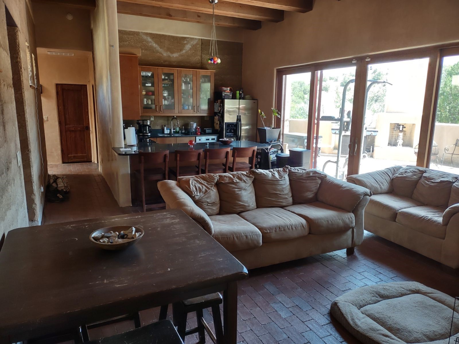 Introducing 23 Lavadero Rd, conveniently located in a neighborhood that offers a short commute to Los Alamos and Santa Fe, breathtaking views of the Sangre de Cristos and Jemez Mountains.Tucked behind Coyote Peak in the quaint hamlet of Tesuque is a stunning home and guest house, masterfully designed by the architect Efthimios Maniatis. One of the last rammed earth homes built with Chandler Huston in the Santa Fe area.As you walk the property, you'll be captivated by the custom garden walls constructed with stones sourced from Bishop's Lodge. Step inside, and you'll be greeted by the interior's exquisite craftsmanship, including steelwork by local metal artist Jeff Overlie. Notably, the basin sinks throughout the house, designed by Jeff, evoke the elegance of Tibetan prayer bowls.Adding to the allure, the mantles for the fireplaces were rescued from the home of the first territorial governor of New Mexico, a touch of local history into this exceptional residence. Furthermore, the home prioritizes nature-inspired living, employing materials with minimal volatile organics to ensure excellent interior air quality. The floors feature a combination of brick, strand-woven bamboo, and sustainable wool carpets. Many of the interior walls are custom diamond plaster.The main house comprises three or four bedrooms and two and a half baths, offering a comfortable and flexible living space, including a chef's kitchen. The guest house offers two bedrooms and two baths, with a strong rental history. It presents an ideal space for hosting guests, accommodating extended family, or generating rental income.Situated on 6.4 acres, this property features hiking trails perfect for dog walks that extend into the neighborhood and the National Forest. Explore the picturesque landscape, whether venturing into the Sangre de Cristos or strolling down to the Tesuque Village Market. Priced below market value so a special buyer can put the finishing touches on this one-of-a-kind home.