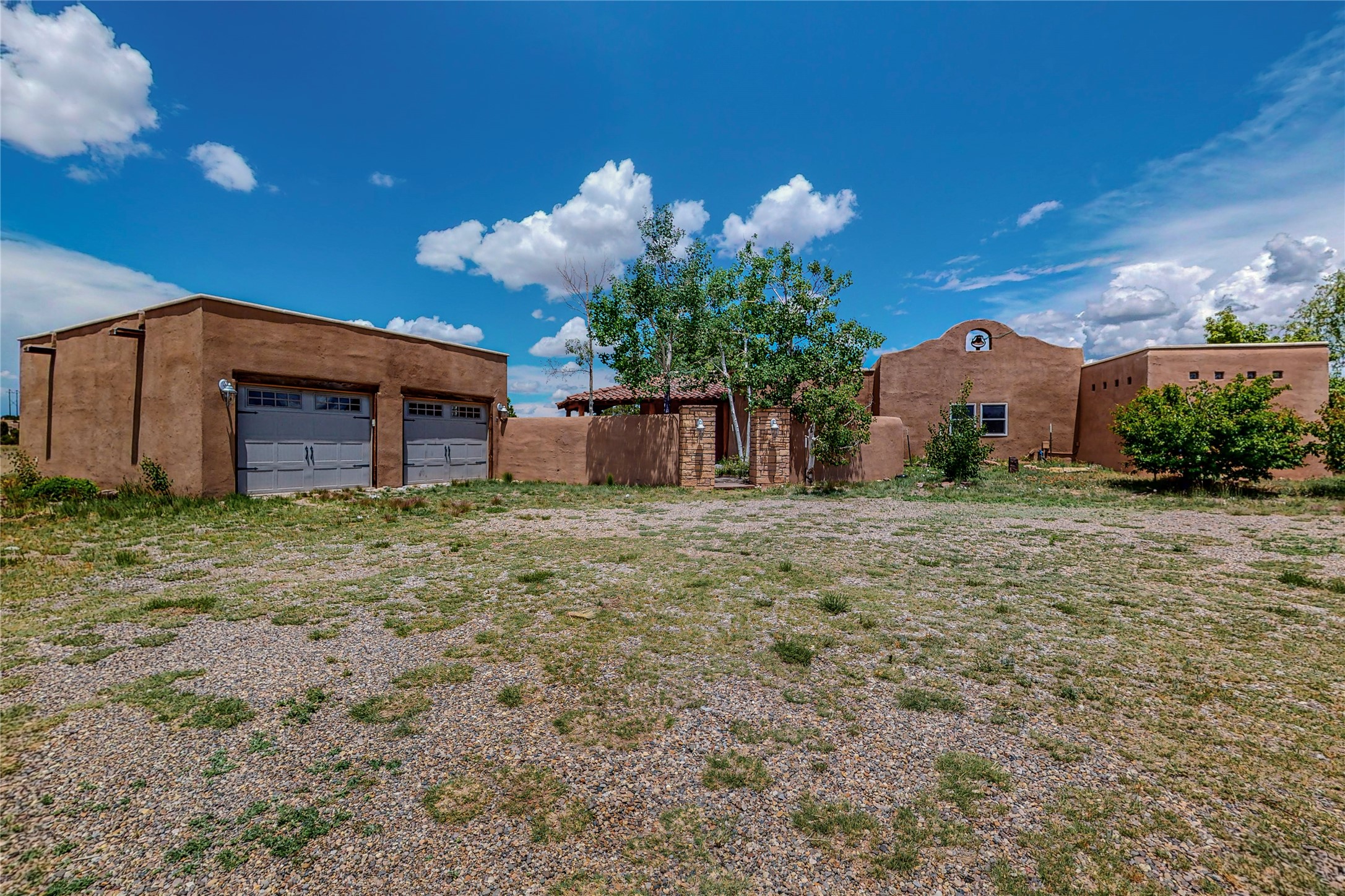 Welcome to an extraordinary slice of Southwestern serenity. This skillfully crafted ranch property is an impressive blend of rustic charm and modern amenities spread across over 4000 sq. ft. With three bedrooms and three bathrooms, this home is nestled on five private acres, rich in views, and boasts an additional room that makes a perfect office or flex room with a private entry. The home's distinctive character is marked by accents of 150-year-old reclaimed lumber and honed flagstone floors with tile inlay. Curved archways, charming details, and exquisite built-ins add to the home's unique aesthetic. Thirteen skylights throughout the house create a light-filled environment, while two fireplaces add warmth and ambiance.Cater to your culinary ambitions in the gourmet kitchen, featuring granite countertops, a spacious island, two refrigerators/freezers, a 6-burner Garland stove, and a large walk-in pantry. Entertain effortlessly indoors and out with two spacious portals equipped with a sound system, lushly landscaped gardens, and multiple flagstone patios offering panoramic mountain views. French Pella double doors lead from the dining room and family room to the great outdoors, facilitating a seamless indoor-outdoor lifestyle. The home's flexible floor plan accommodates both formal and casual living spaces. A formal dining room with limestone accents and an informal dining room with built-in shelves and counter complement the great room, replete with a kiva fireplace and 14-foot beamed ceilings. The primary suite, a true sanctuary, features a romantic bath with a vintage claw foot tub and travertine tile overlooking a private courtyard. The generously designed California Closet is not to be forgotten and is perfect for your wardrobe. Additional amenities include A/C, forced air heating, an oversized 2-car garage with four skylights and built-in storage, and a spacious laundry room equipped with a washer and dryer.