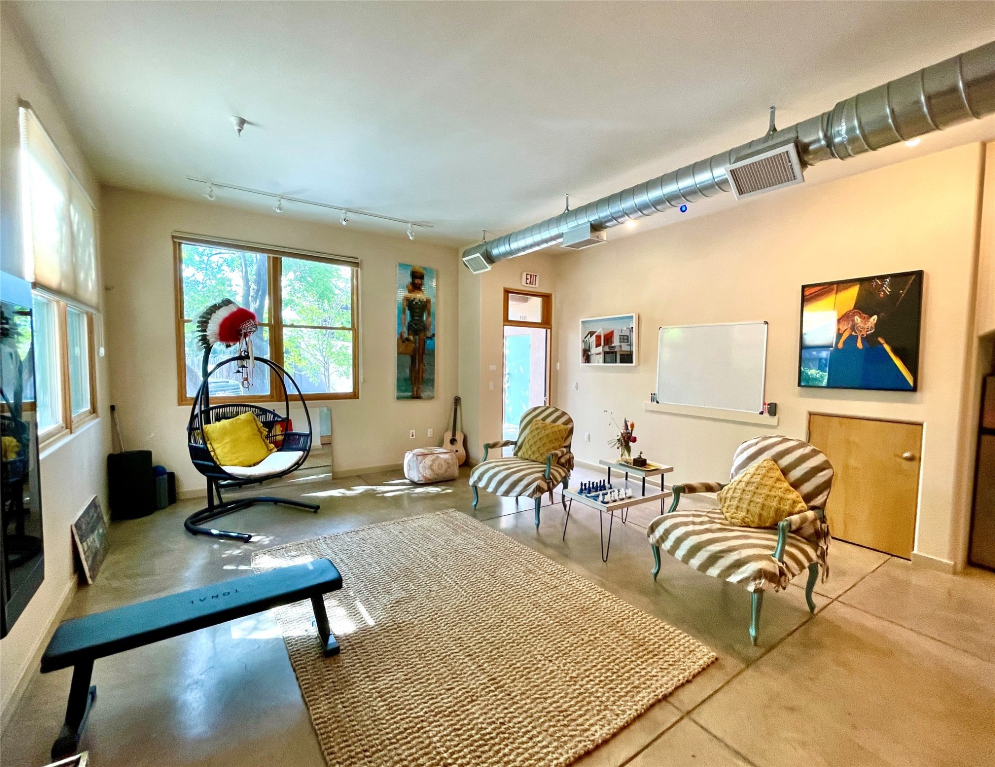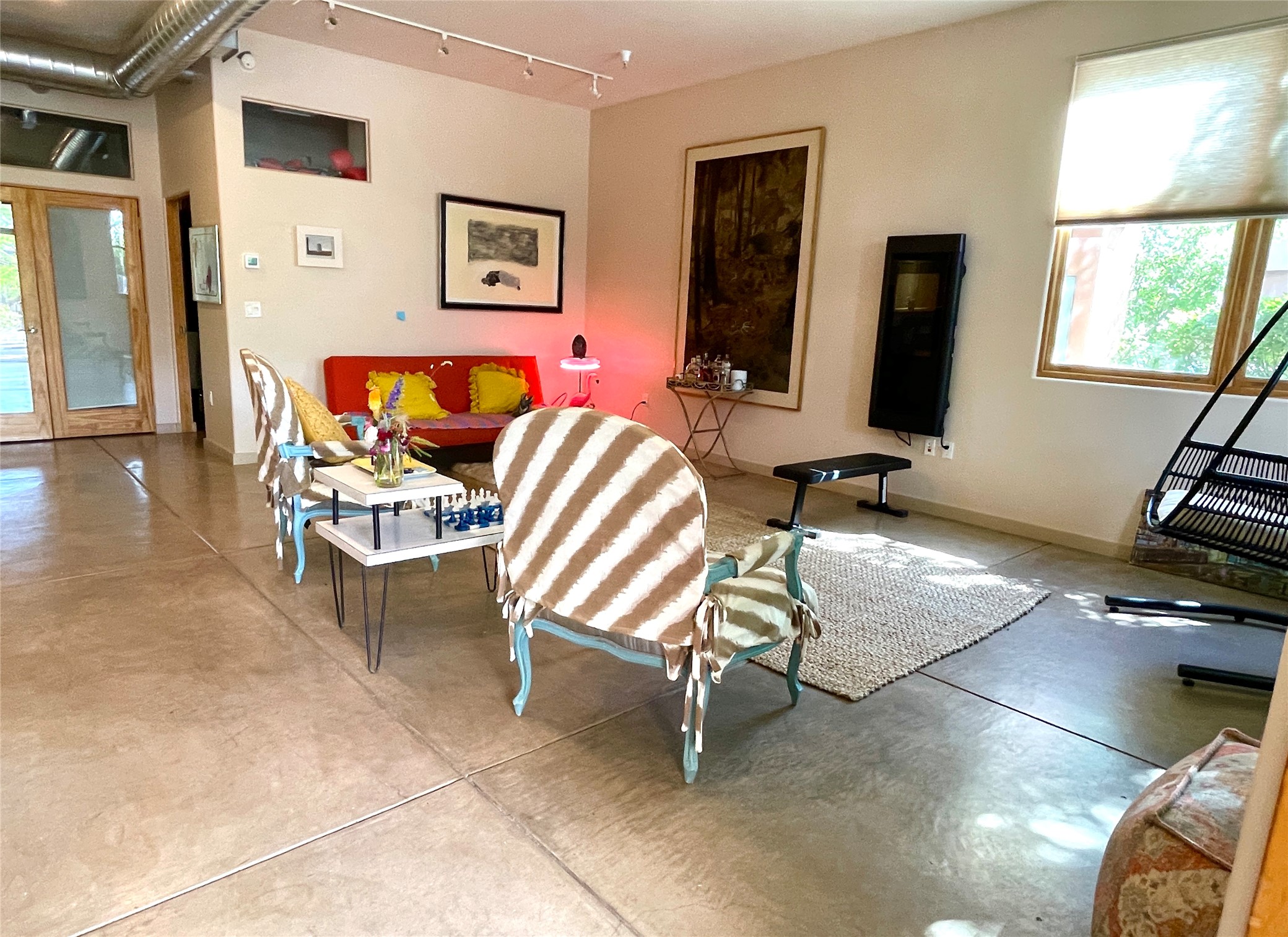 Stylish pied-a-terre, short term weekly rental, live /work, lock and leave, or a Santa Fe Rail Yard home. Quiet, end ground unit with high ceilings, lots of light, and a sense of privacy. Fantastic location.