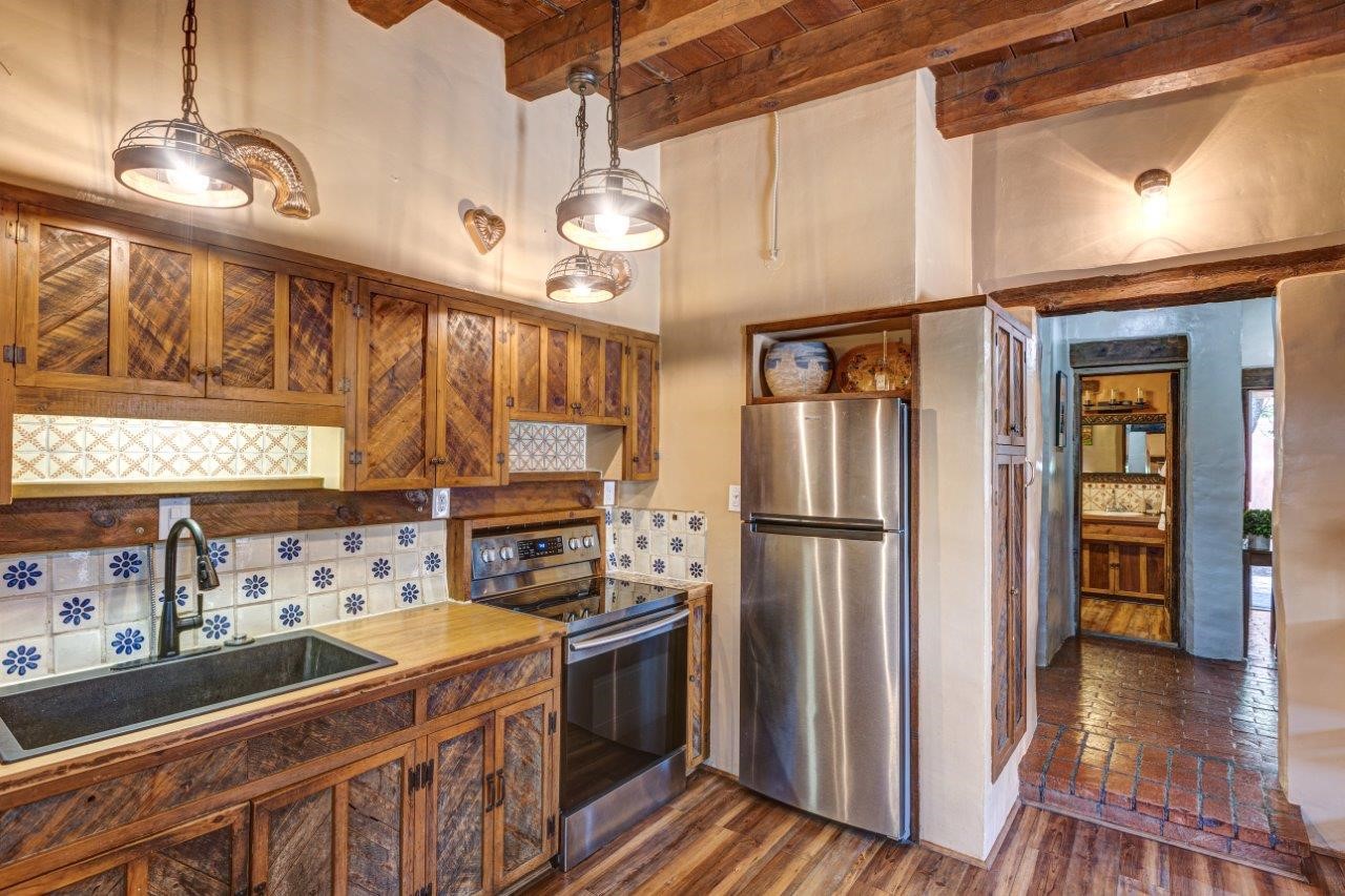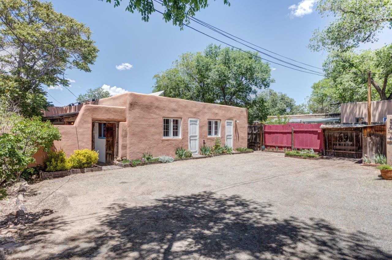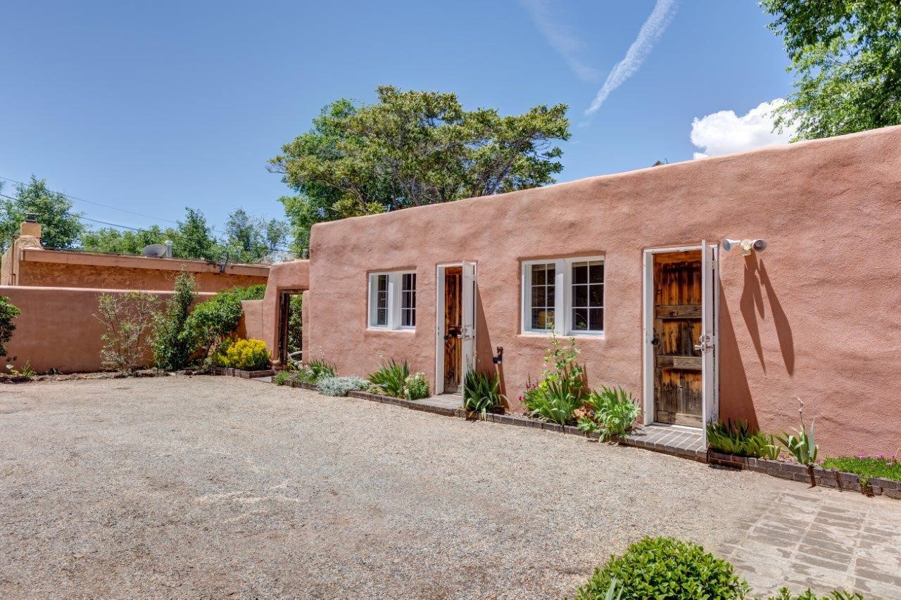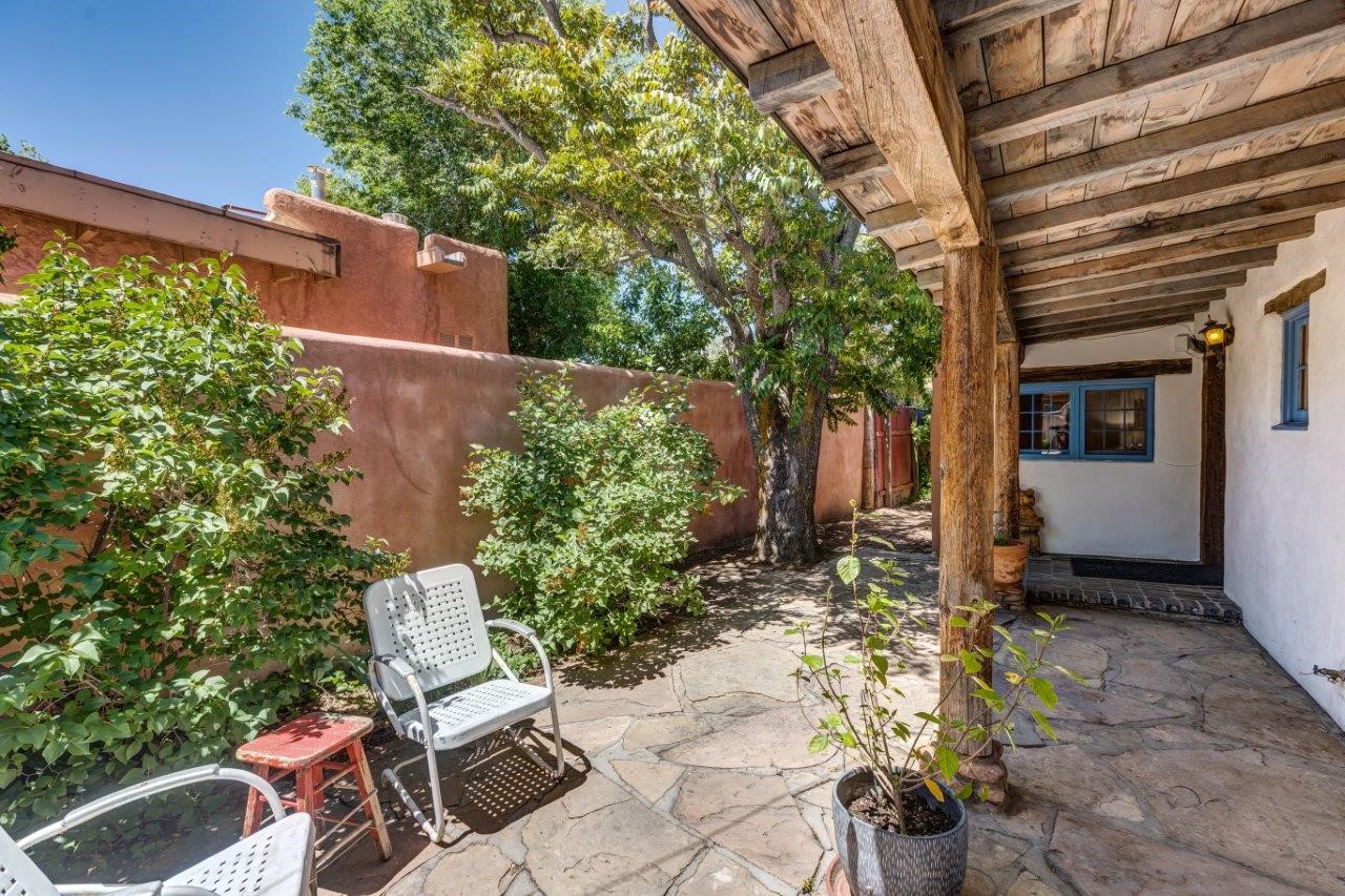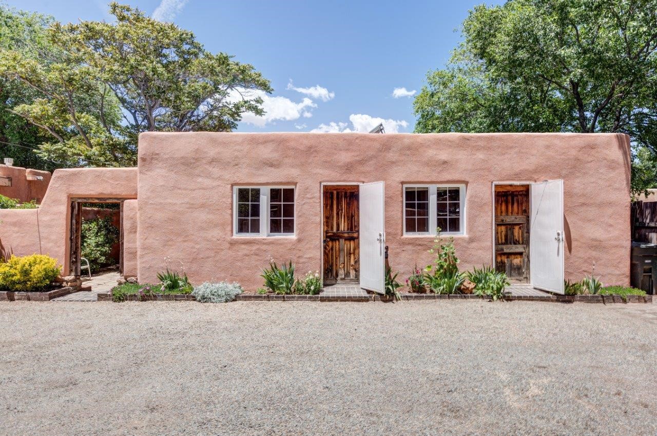 Quintessential adobe home within short proximity to the historic downtown Santa Fe plaza! Welcome to 534 1/2 West Alameda Street-a well-built home with a rustic flair that features many classic and attractive finishes throughout! From the hand crafted ceilings to the solid flagstone flooring, this home provides the ideal setting for the desirable living lifestyle you've been waiting for. Features include 3 bedrooms, 2 baths, 1,479 heated sqft, smooth plaster walls, custom built cabinetry, kiva fireplace, new wood stove, a ductless heating and cooling system and one of a kind hand-hewn, barn wood vigas/beams and lentils repurposed from a barn in Washington State circa early 1800's. There are several inviting and spacious outdoor spaces that are prime for entertaining and provide ideal areas for your future gardening desires. Some of the additional updates include new electric service meter panel and service line, reroofing in 2016, new stucco in 2018, stainless steel appliances and a complete renovation of the primary bathroom. Easy access to great walking/biking paths along the Santa Fe river. Pride of ownership abounds in this move-in-ready home!