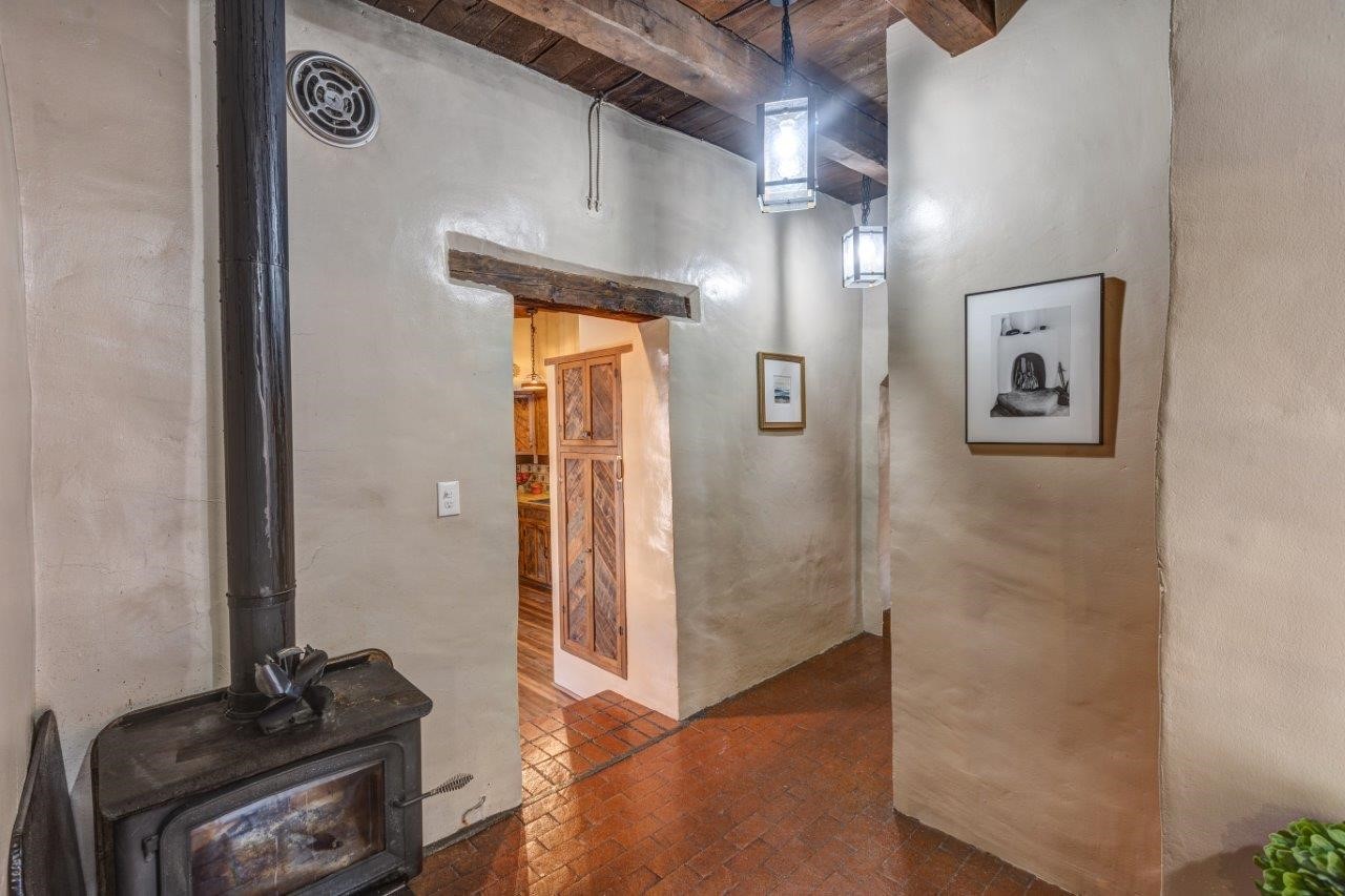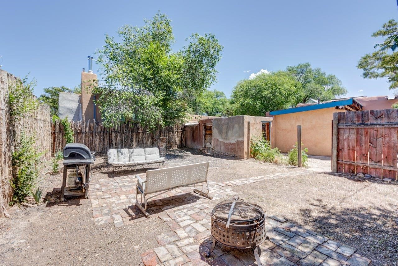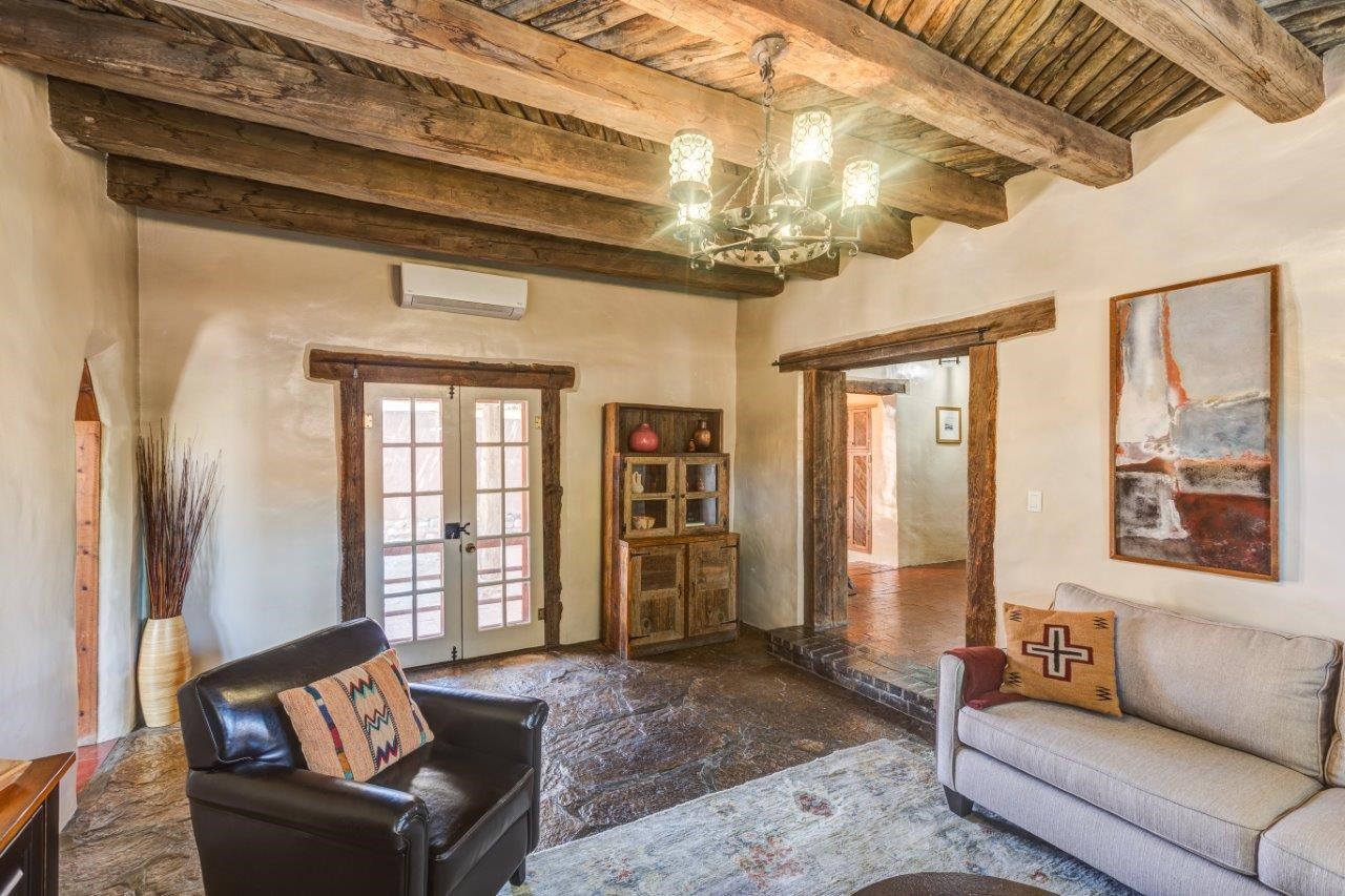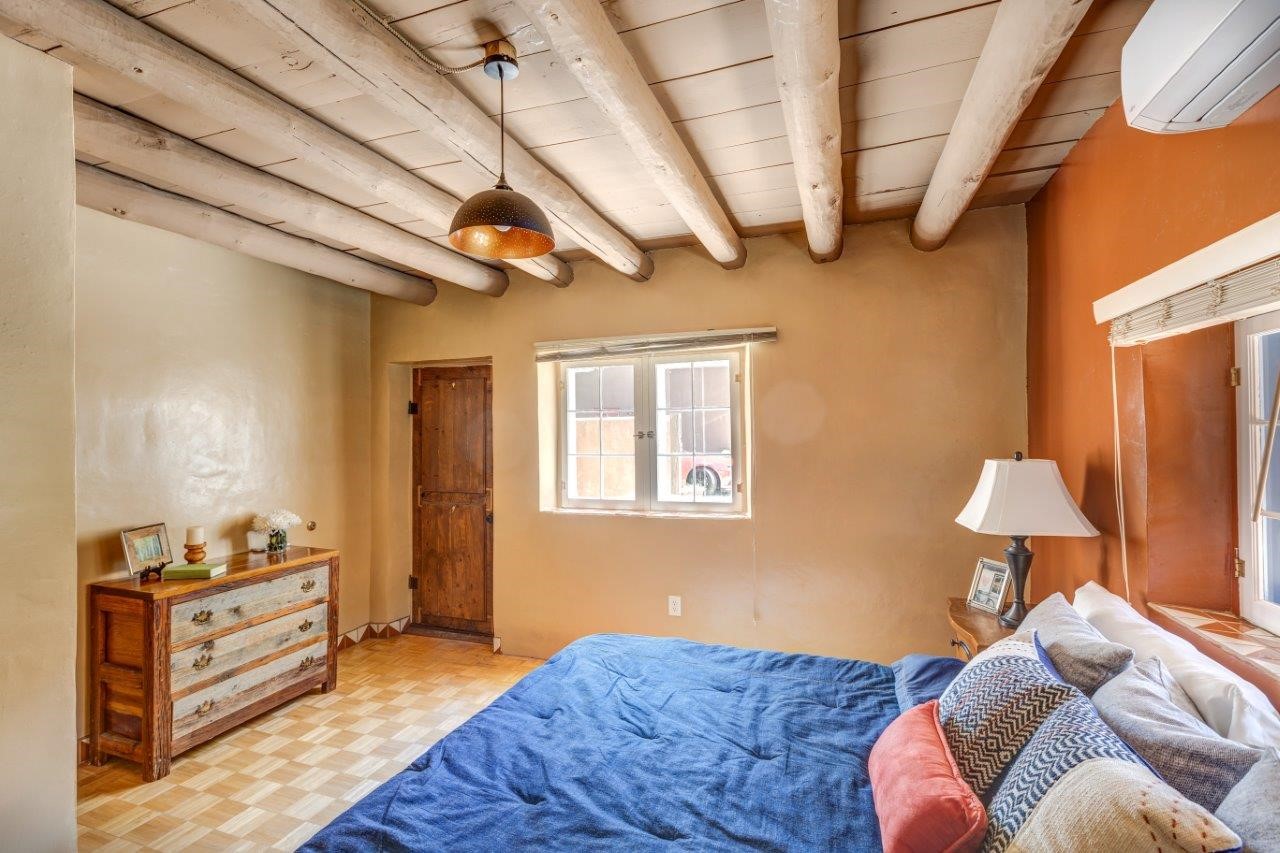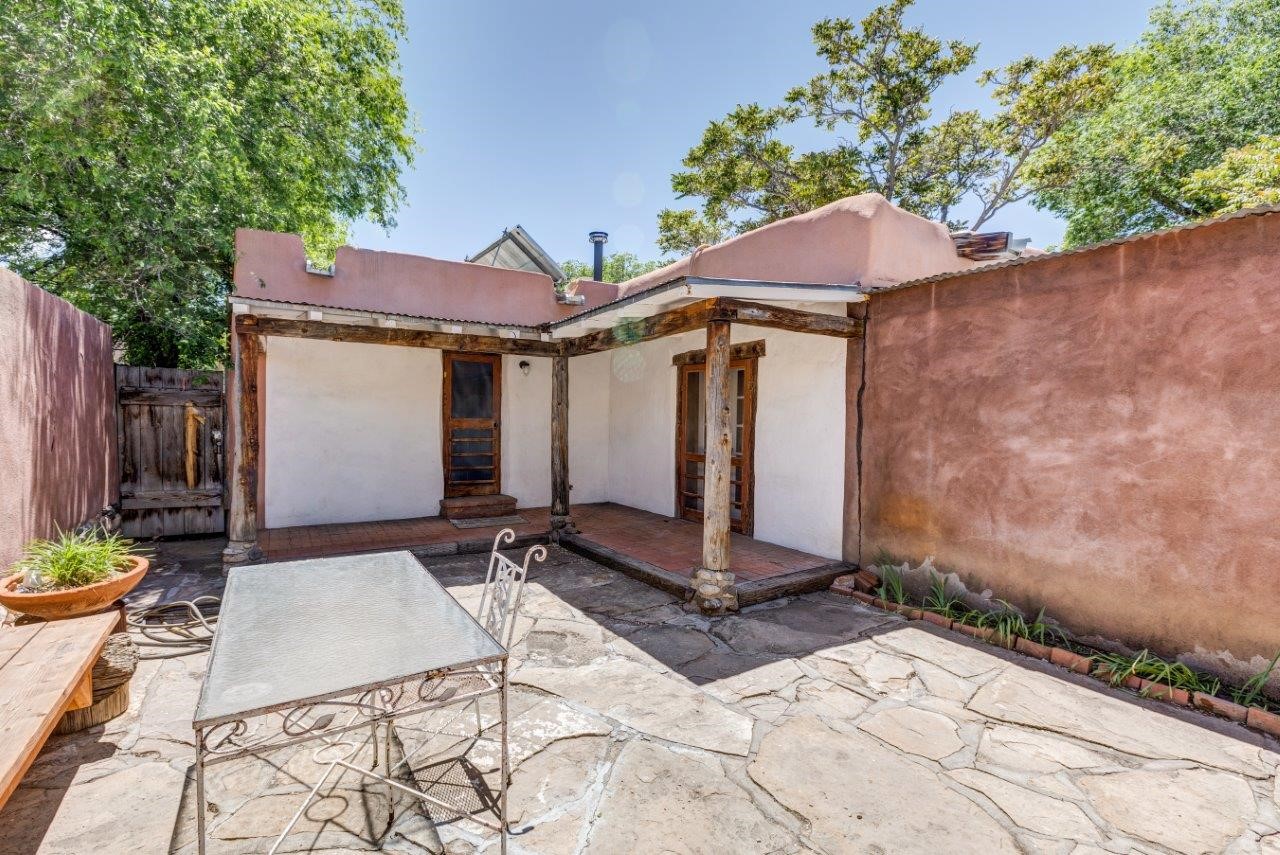 Quintessential adobe home within short proximity to the historic downtown Santa Fe plaza! Welcome to 534 1/2 West Alameda Street-a well-built home with a rustic flair that features many classic and attractive finishes throughout! From the hand crafted ceilings to the solid flagstone flooring, this home provides the ideal setting for the desirable living lifestyle you've been waiting for. Features include 3 bedrooms, 2 baths, 1,479 heated sqft, smooth plaster walls, custom built cabinetry, kiva fireplace, new wood stove, a ductless heating and cooling system and one of a kind hand-hewn, barn wood vigas/beams and lentils repurposed from a barn in Washington State circa early 1800's. There are several inviting and spacious outdoor spaces that are prime for entertaining and provide ideal areas for your future gardening desires. Some of the additional updates include new electric service meter panel and service line, reroofing in 2016, new stucco in 2018, stainless steel appliances and a complete renovation of the primary bathroom. Easy access to great walking/biking paths along the Santa Fe river. Pride of ownership abounds in this move-in-ready home!