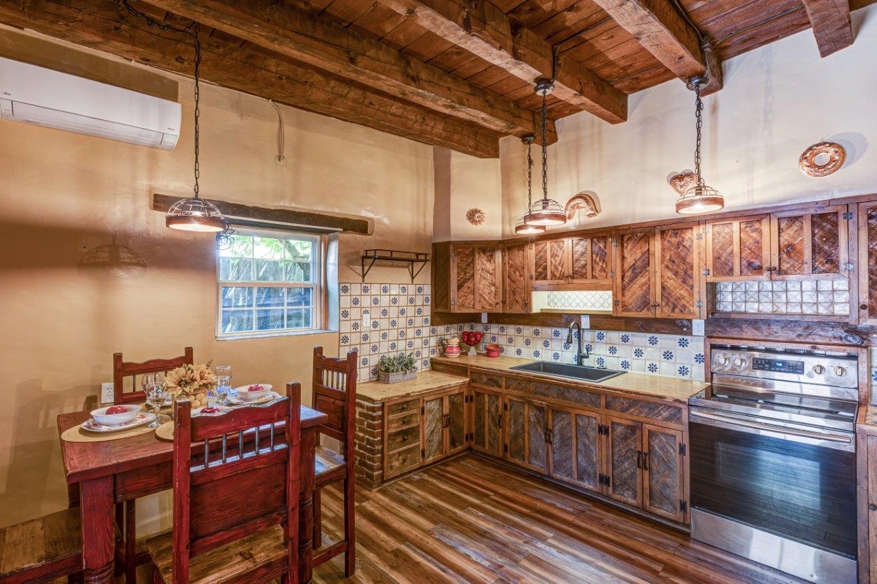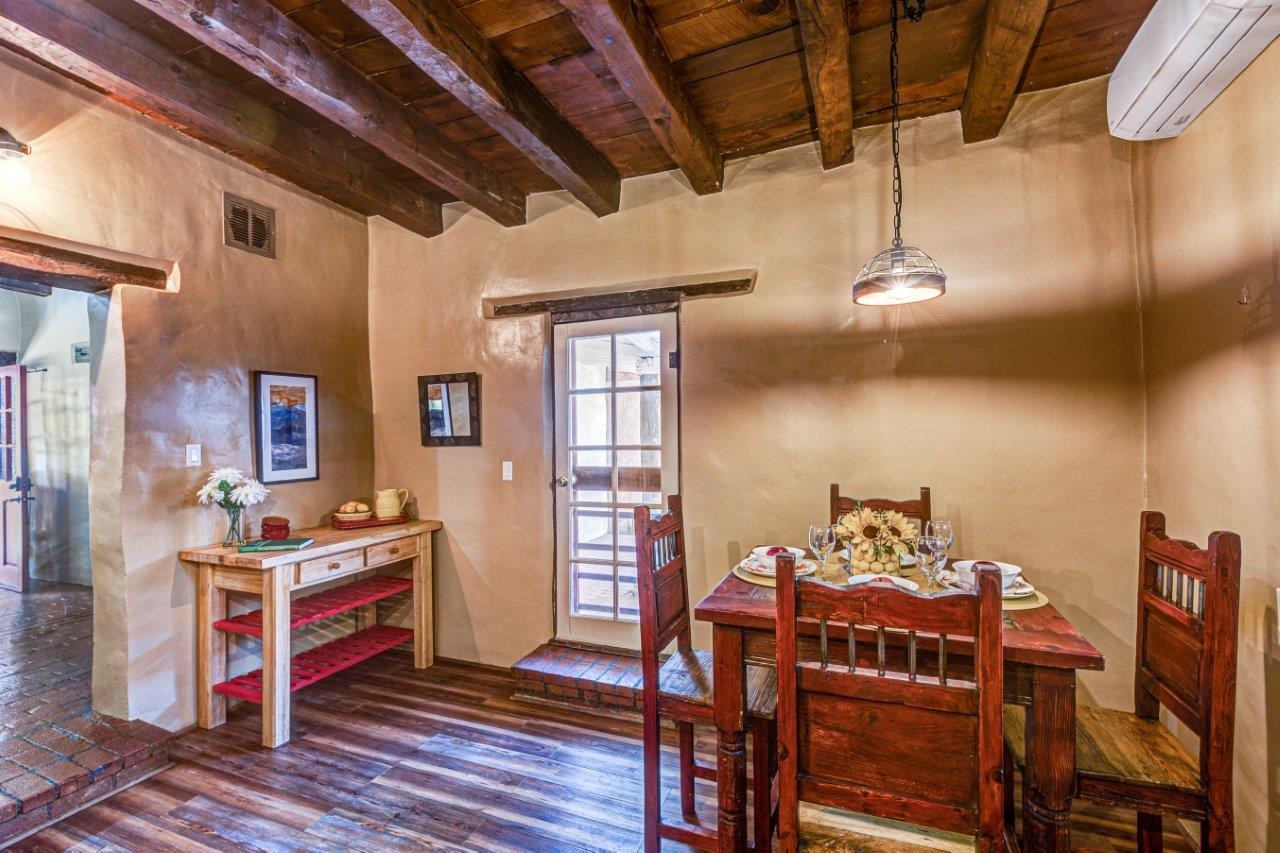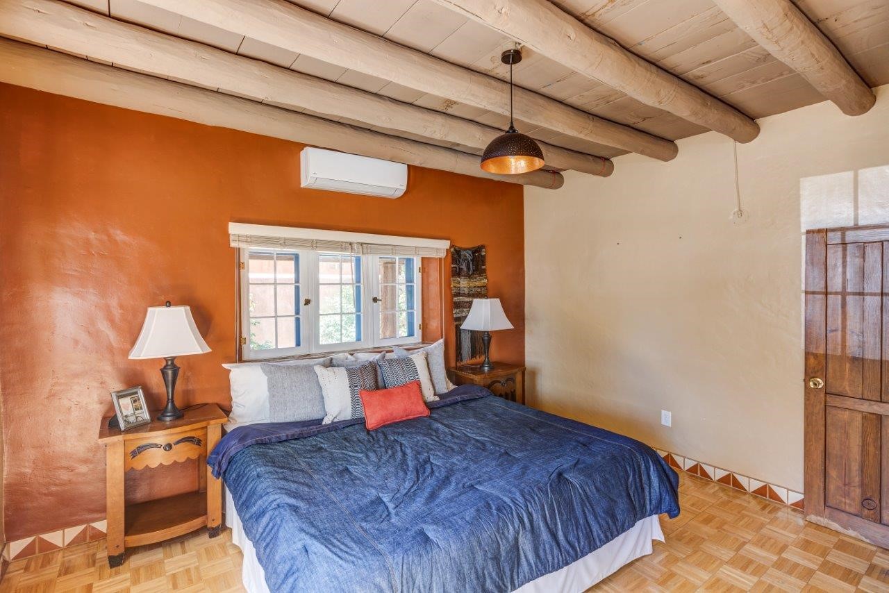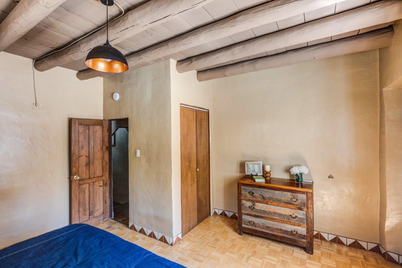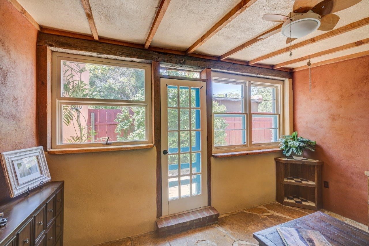 Quintessential adobe home within short proximity to the historic downtown Santa Fe plaza! Welcome to 534 1/2 West Alameda Street-a well-built home with a rustic flair that features many classic and attractive finishes throughout! From the hand crafted ceilings to the solid flagstone flooring, this home provides the ideal setting for the desirable living lifestyle you've been waiting for. Features include 3 bedrooms, 2 baths, 1,479 heated sqft, smooth plaster walls, custom built cabinetry, kiva fireplace, new wood stove, a ductless heating and cooling system and one of a kind hand-hewn, barn wood vigas/beams and lentils repurposed from a barn in Washington State circa early 1800's. There are several inviting and spacious outdoor spaces that are prime for entertaining and provide ideal areas for your future gardening desires. Some of the additional updates include new electric service meter panel and service line, reroofing in 2016, new stucco in 2018, stainless steel appliances and a complete renovation of the primary bathroom. Easy access to great walking/biking paths along the Santa Fe river. Pride of ownership abounds in this move-in-ready home!