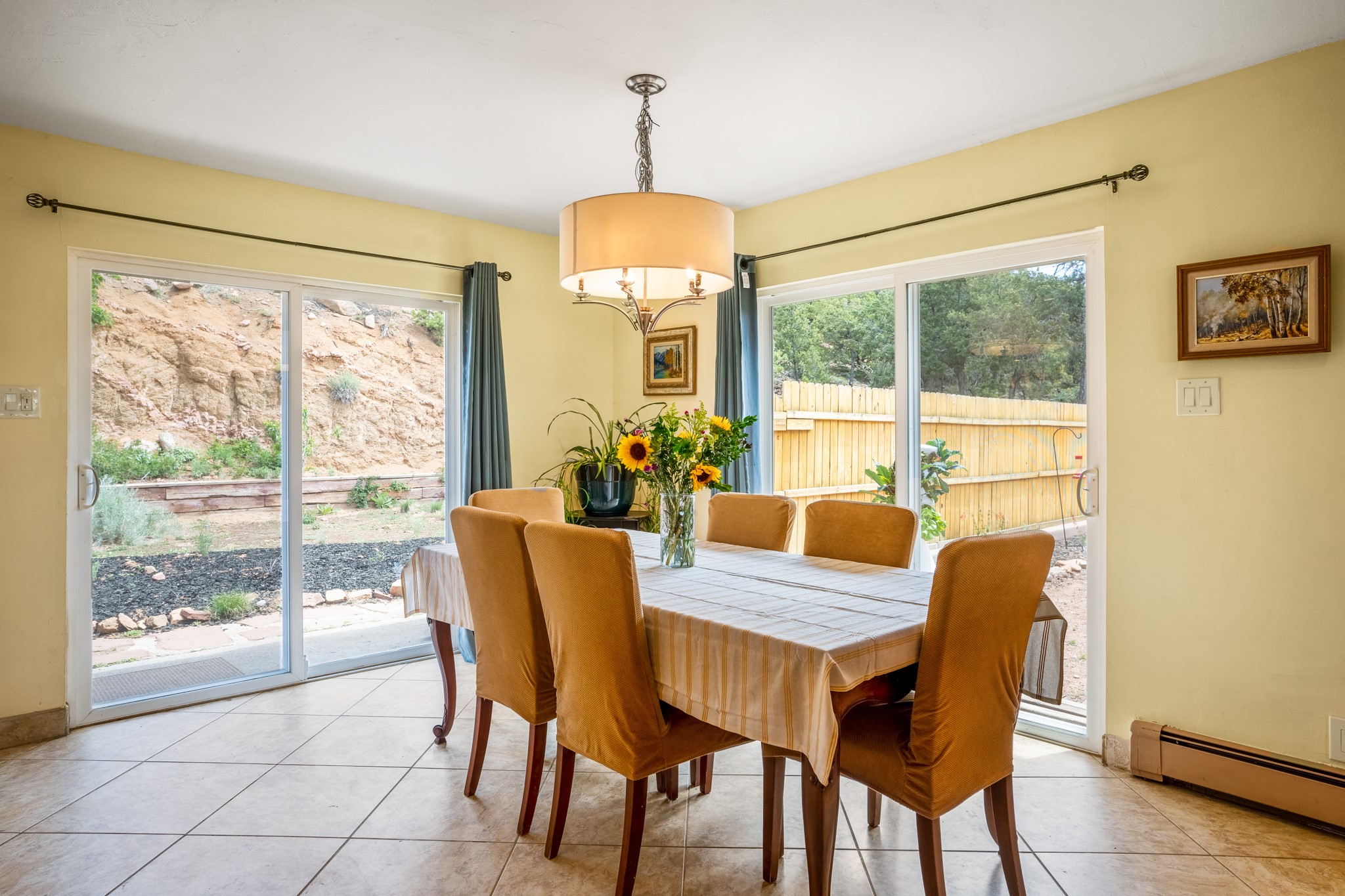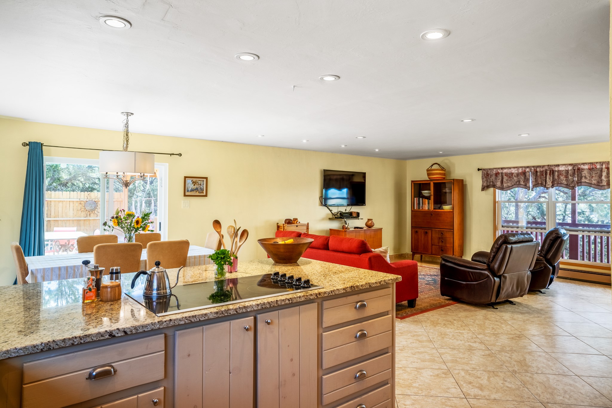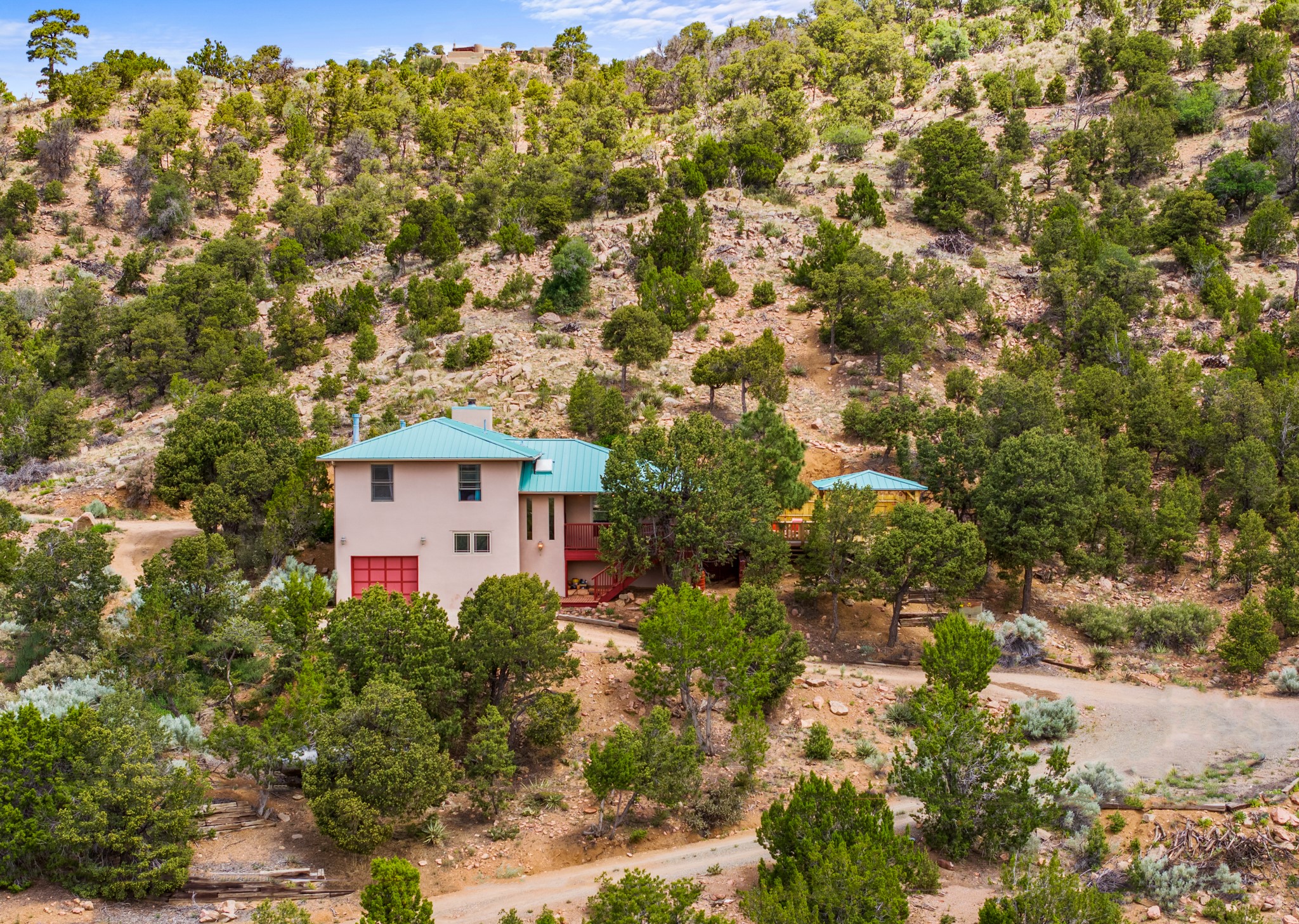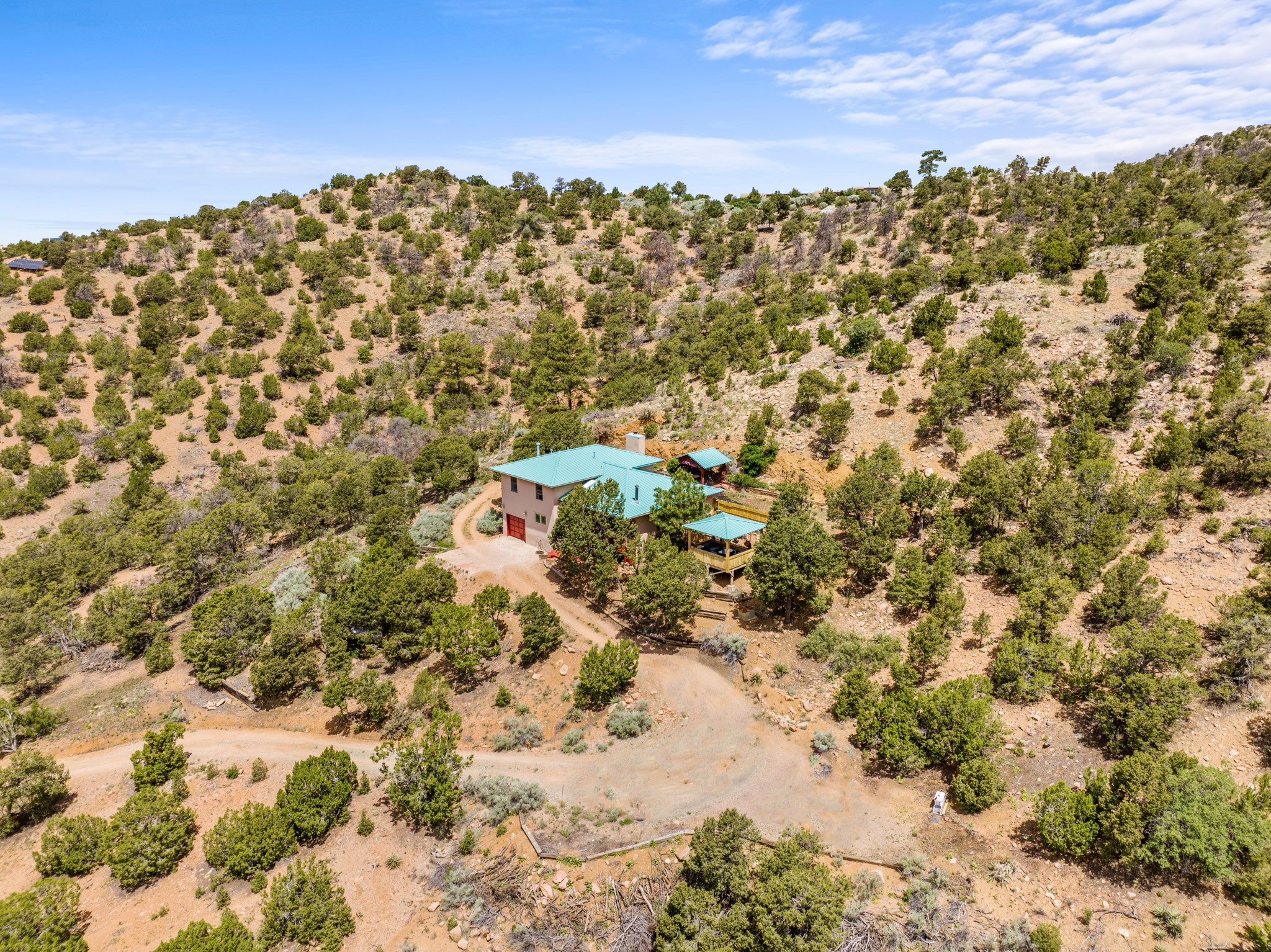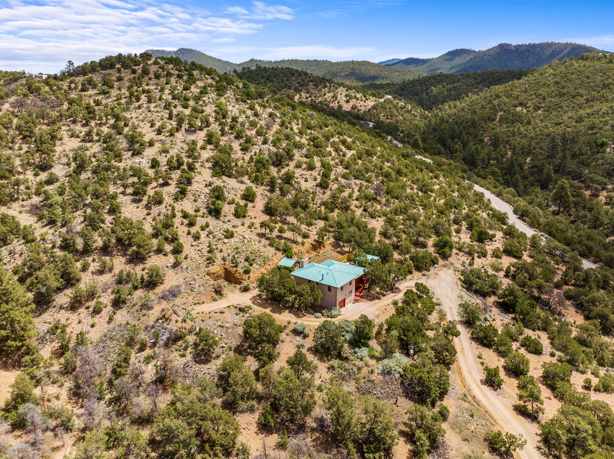 This home offers all the benefits that come along with being nestled among the pinon in the foothills ofSanta Fe. Deer are frequent visitors to the property, and a variety of other wildlife have been seen.Enjoy the view, dazzling night skies, peace and quiet while being only 15 minutes from the heart of SantaFe's plaza. The sleek and contemporary look of the home is complemented by its open floor plan, wherenatural light is plentiful in the living, dining, and kitchen areas.