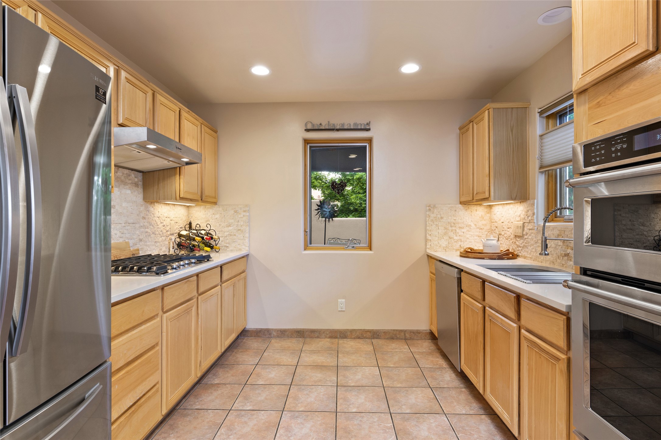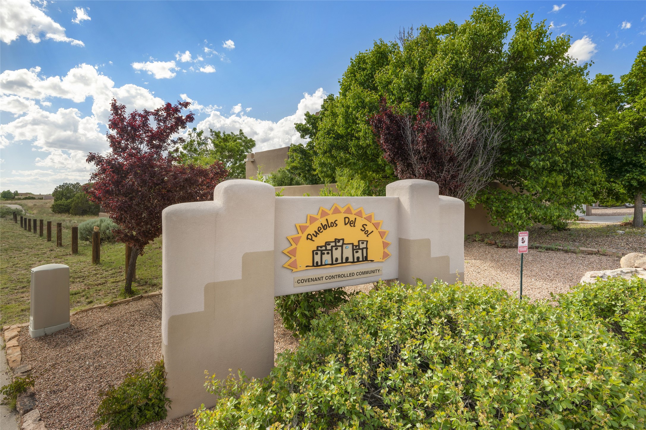 This immaculate residence, thoughtfully curated and lovingly maintained by its original owner can now be yours. Nestled in the coveted Pueblos Del Sol neighborhood, this remarkable home has been meticulously maintained. With freshly stucco, and a new roof (with a warranty) this property is like a brand new home. Immerse yourself in the authentic Santa Fe ambiance with artisan corbels, vigas, and a cozy kiva fireplace in the living space. The kitchen is a dream for culinary enthusiasts, featuring new appliances and an elegant white quartz countertop. You'll have the option of both a formal dining area and an informal breakfast bar, perfect for every dining occasion. This splendid home 3-bedroom, 3.5-bathroom residence is a masterpiece of comfort and style. Each bedroom boasts its own en-suite bathroom, offering unparalleled convenience and privacy. Radiant heating and easily maintainable tile floors ensure year-round comfort and simplicity.No detail has been spared in the meticulous updates throughout the home. The primary bathroom is a lavish sanctuary, featuring a luxurious soaking tub for moments of ultimate relaxation. Beyond the enchanting interior, this property sits on an exceptionally rare corner lot, meticulously landscaped to create outdoor living spaces designed to relish our delightful climate.Conveniently located, this home offers easy access to walking trails, restaurants, shopping, and top-notch schools. Discover the ultimate Pueblos Del Sol living experience in this unrivaled residence.