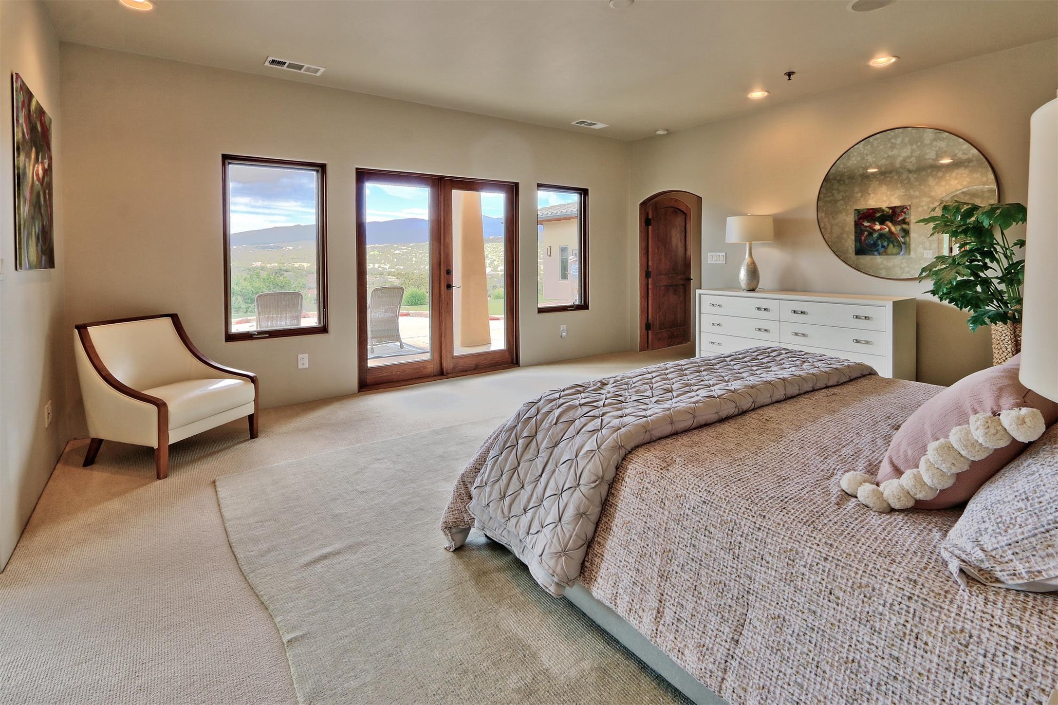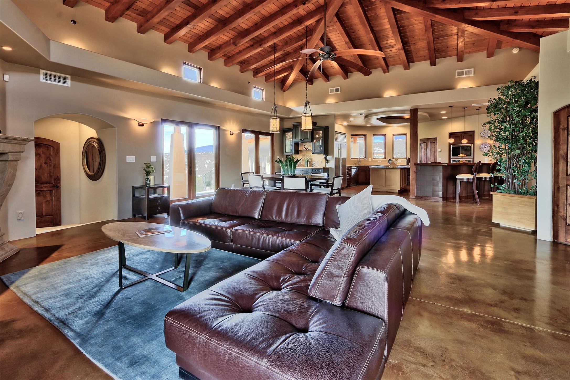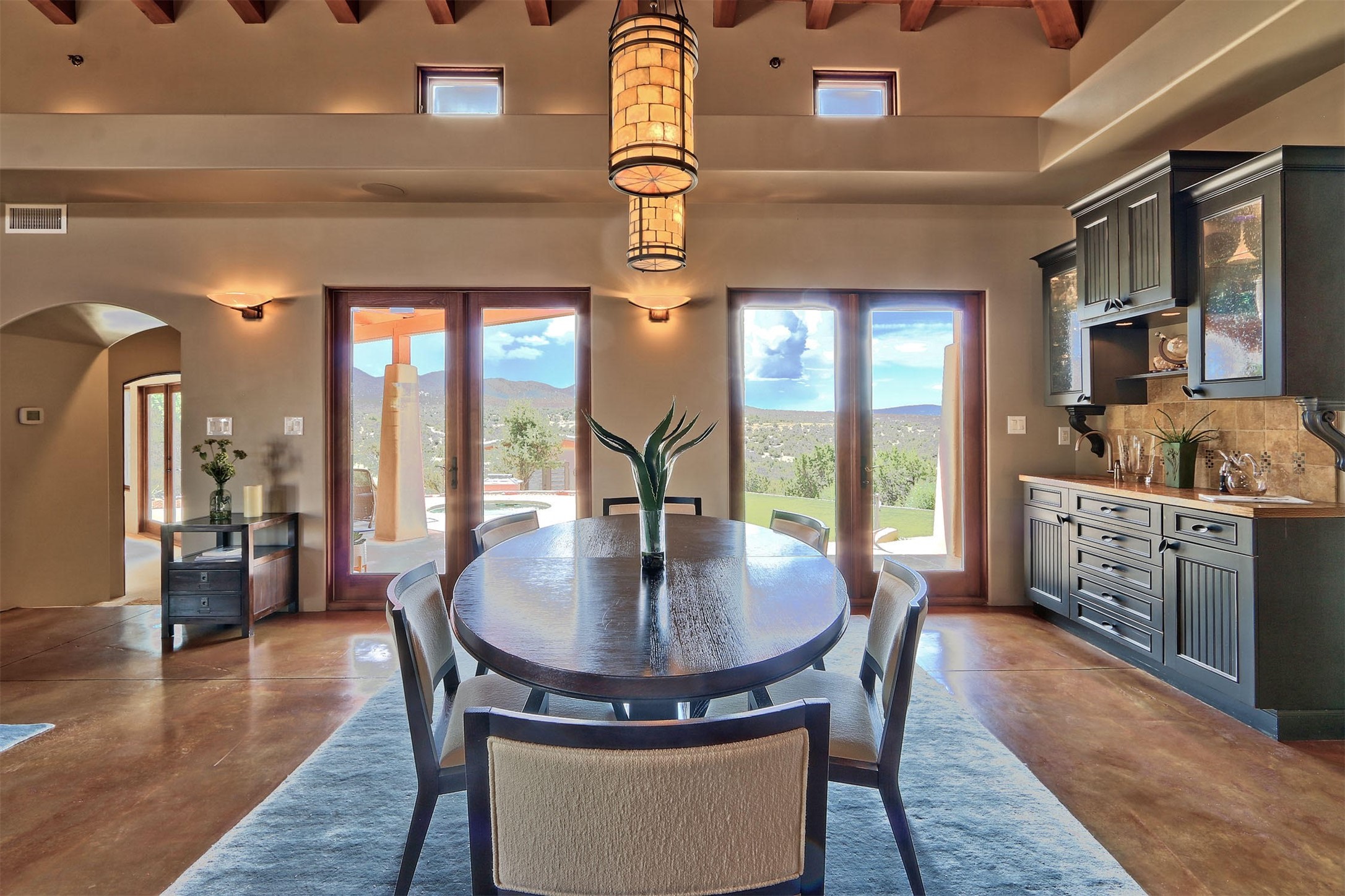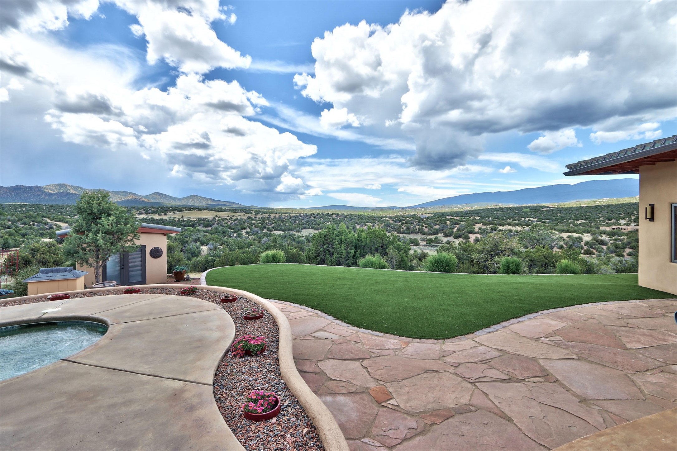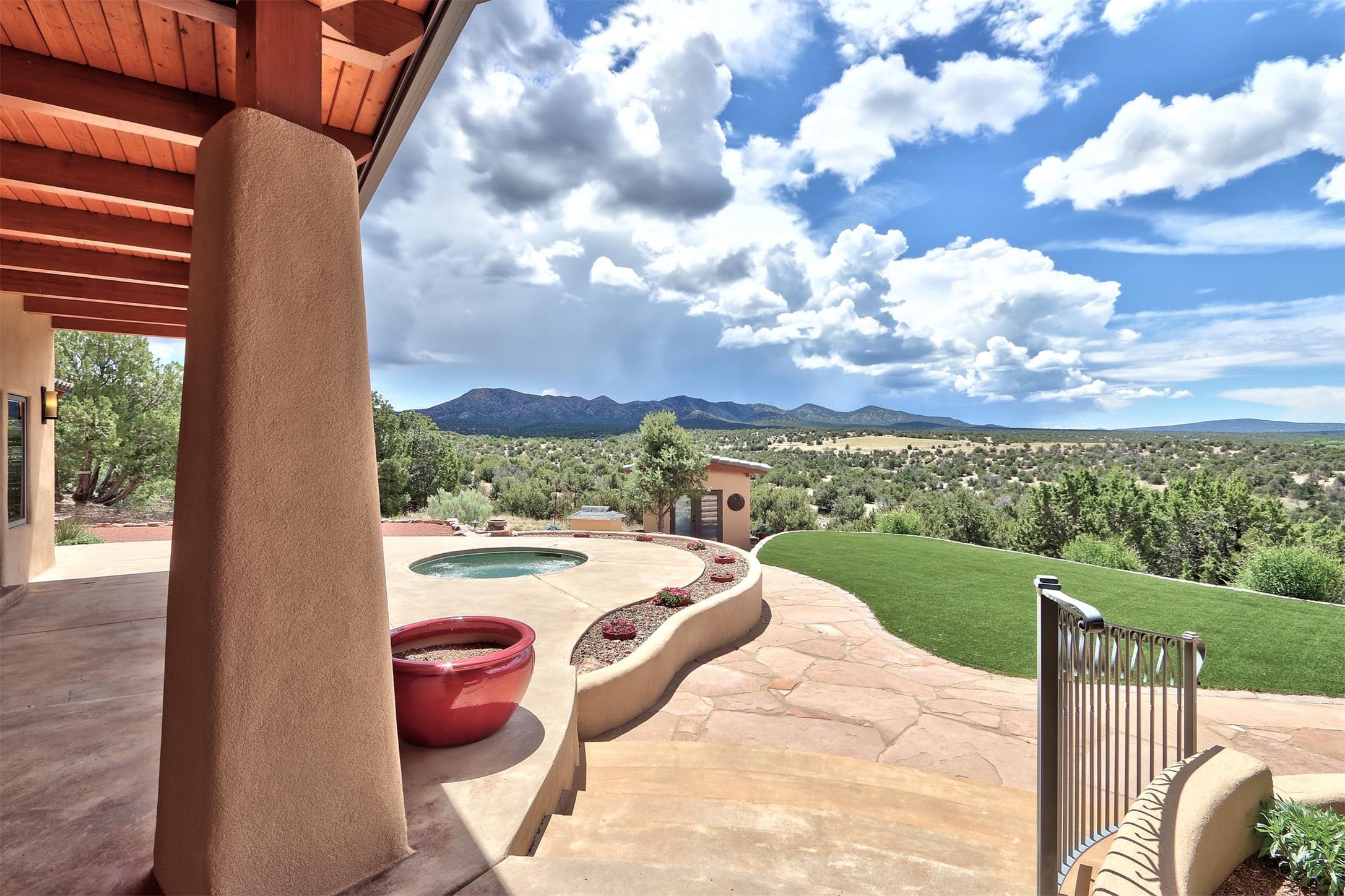 The Overlook is an exclusive, secure community located along the Turquoise Trail National Scenic Byway. An impressive entrance provides a manned gate house and camera system for peace of mind and security. This full custom built San Pedro Creek Overlook home offers spectacular mountain and vista views with quiet enjoyment and privacy. Home features include top grade finishes and fixtures throughout the home with attention to every elegant detail. The entertaining, friendly kitchen is open to living and dining areas. Enjoy the views from your own in-ground spa and deck. The oversized (1050 sf) garage with a drive through bay accommodates the charming 3 room casita. The amenities of this fabulous home are further enhanced by the private club house featuring a large, heated pool, spa, amphitheater, kitchen and dining areas. The abundant wildlife and birds are an additional bonus to complete the setting. The best of both cities are only a short 25 minutes to Albuquerque and 40 minutes to Santa Fe.