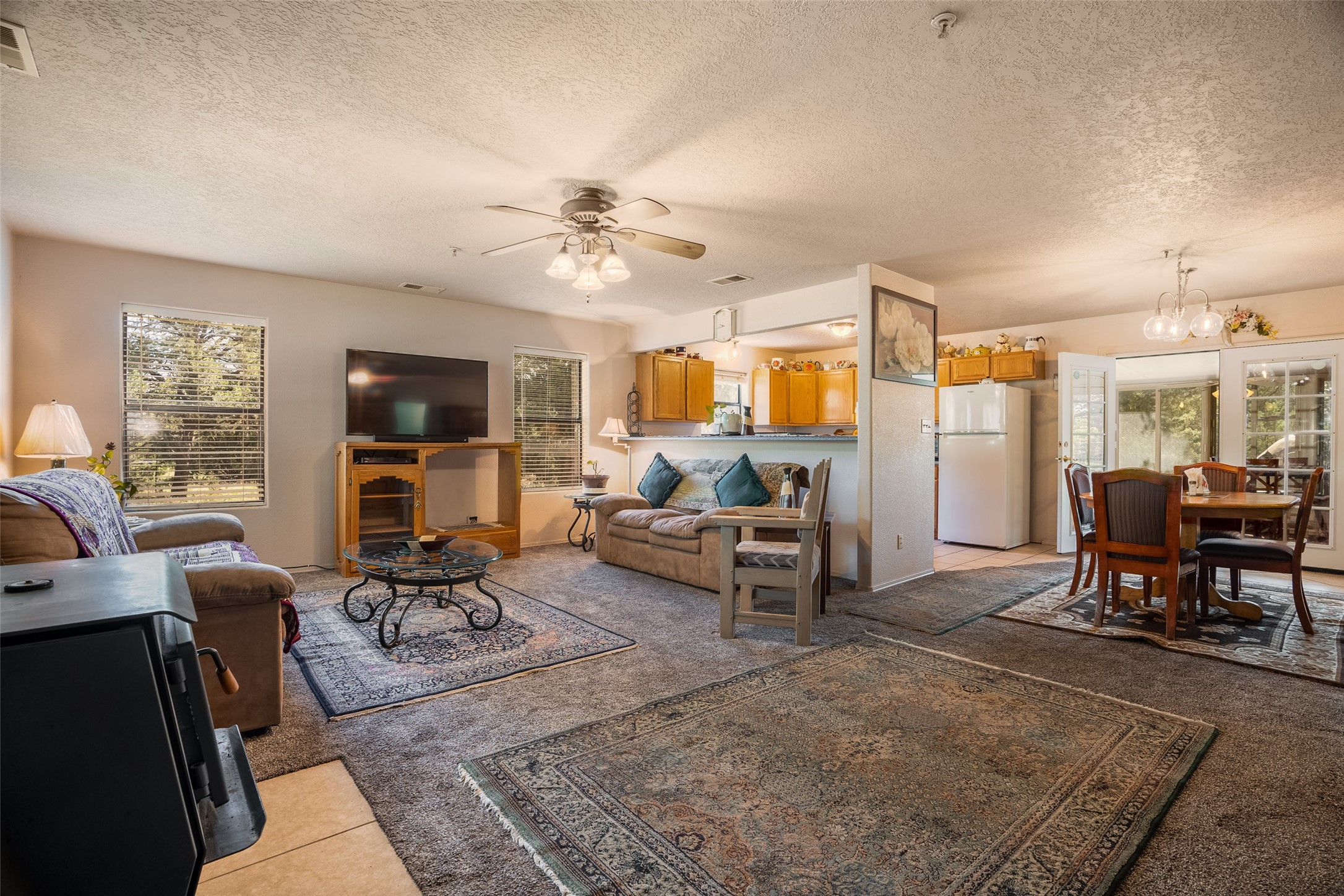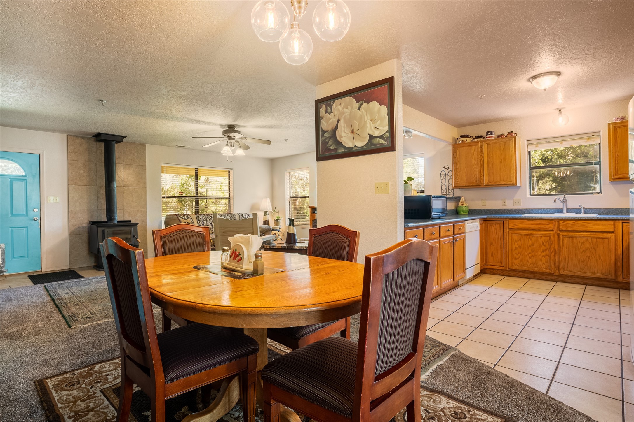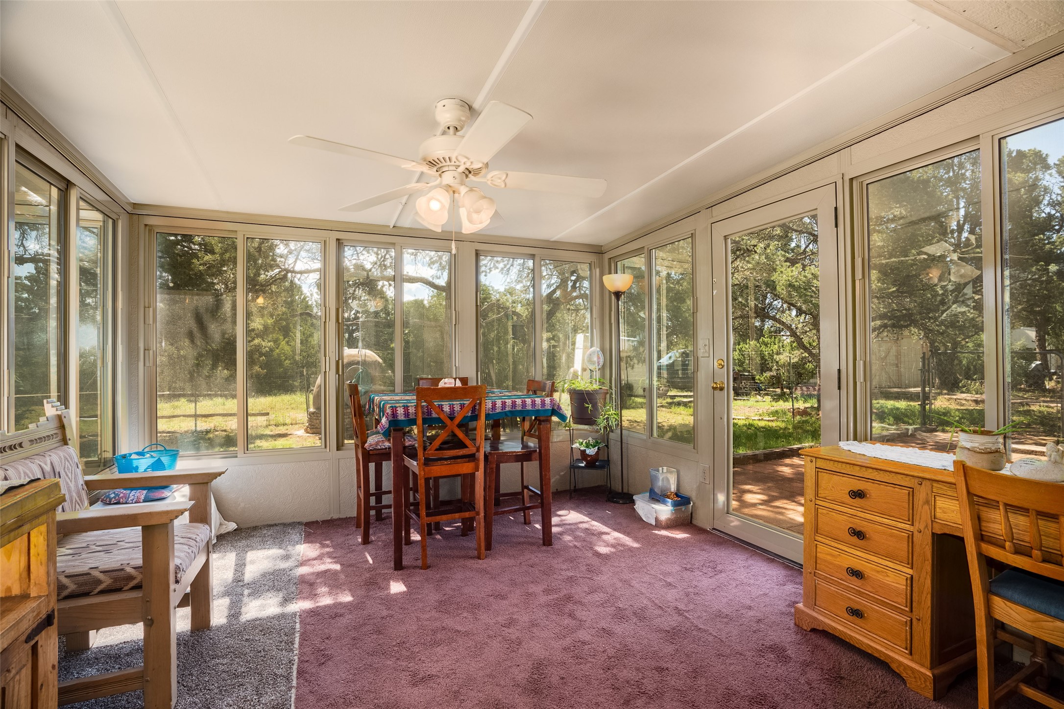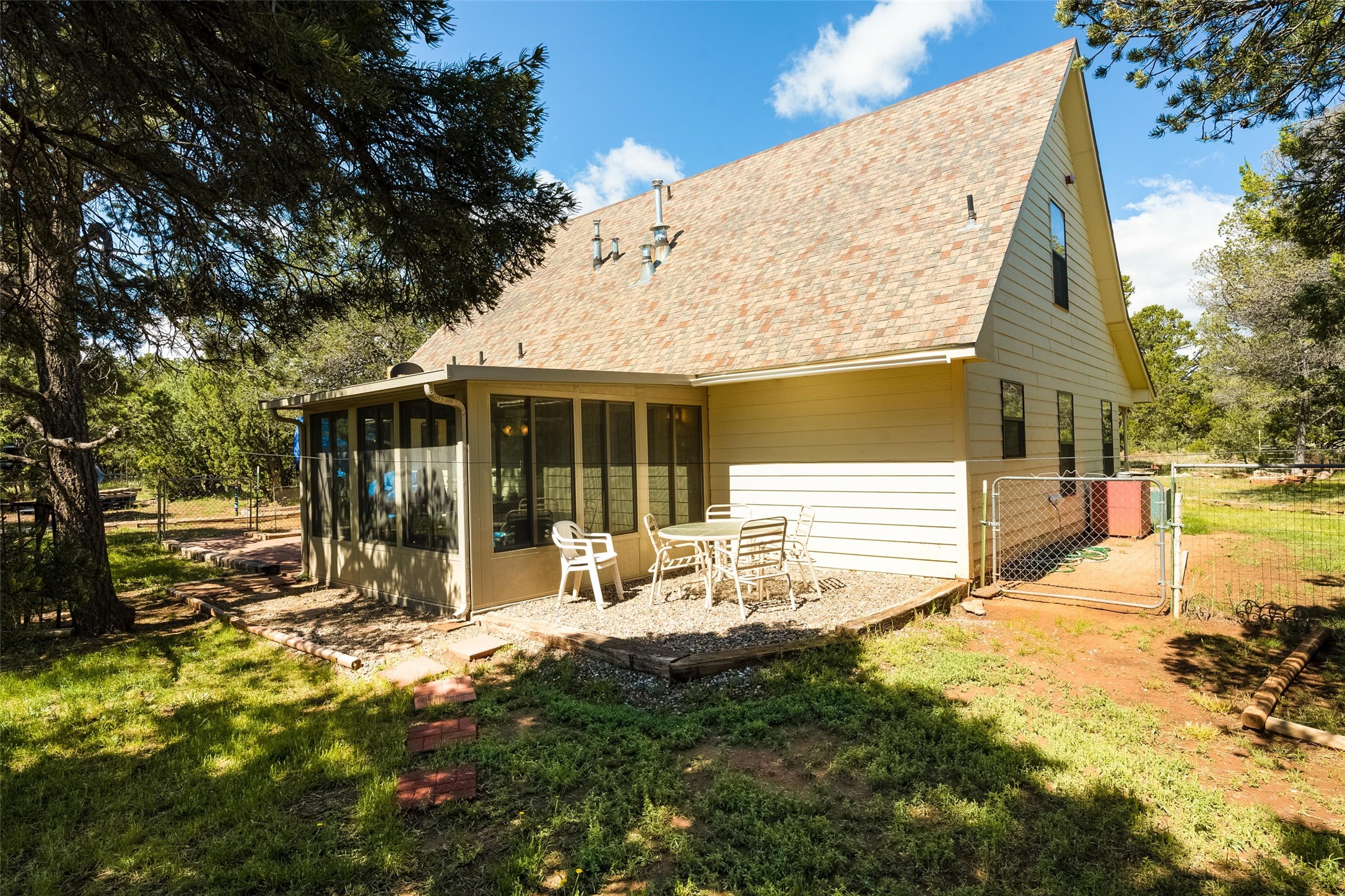Great house just off Hwy 50 before Pecos. 3 bedrooms, 3 baths, 1753 +/- sq ft, with 38' covered porch. Landscaped 1.27 +/- ac lot that affords strong Sangre views. Dog friendly fenced yard (7,400 +/- sqft), Grass terraced front yard, open concept Living/Dining/Kitchen. Master on main, 2 beds & full bath upstairs. Ample storage. 16'x10' Tuff shed, sprinkler system for interior fire proofing, New roof installed June 19, 2023. 30 minutes to Old Pecos Trail in Santa Fe.