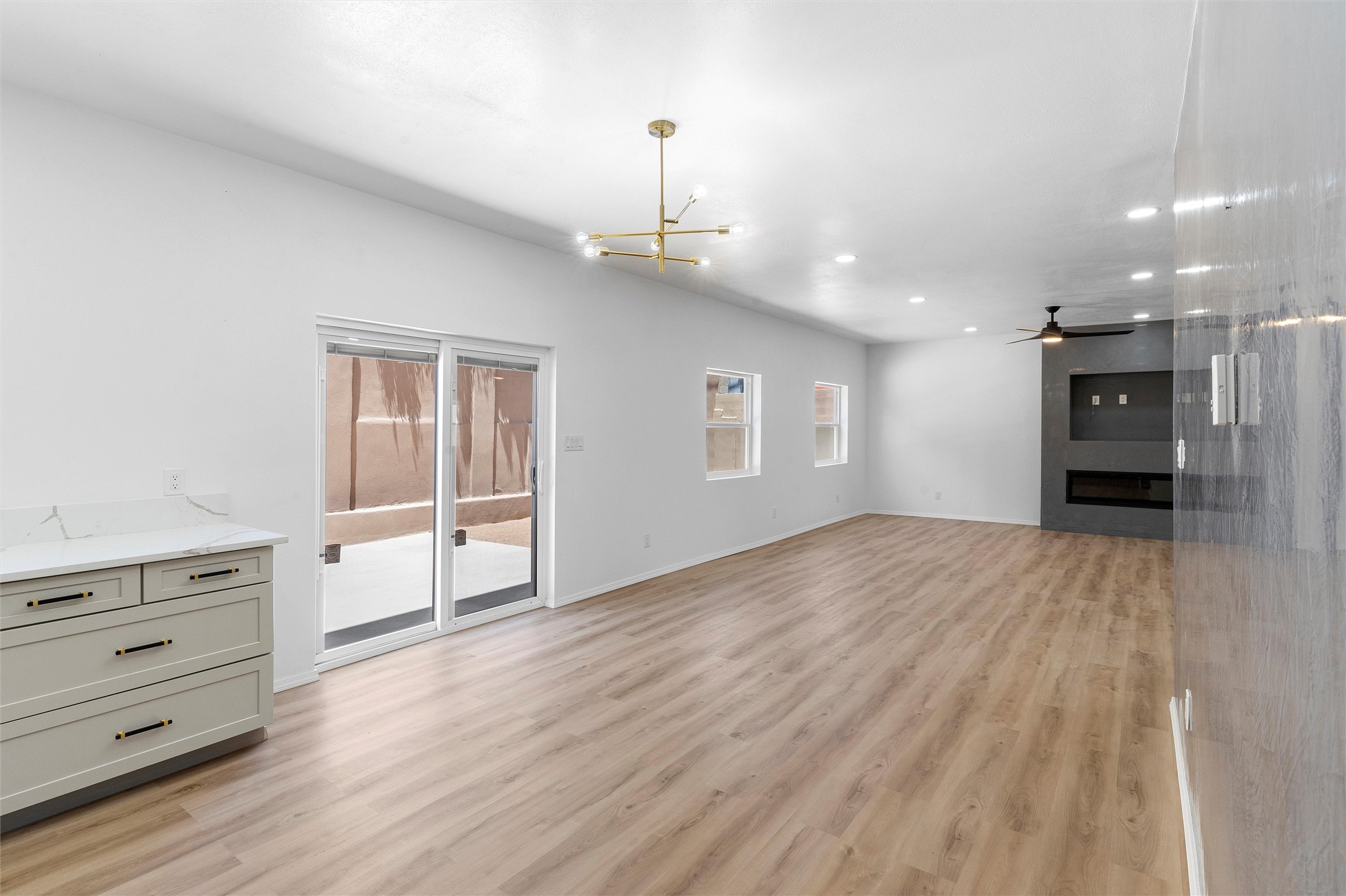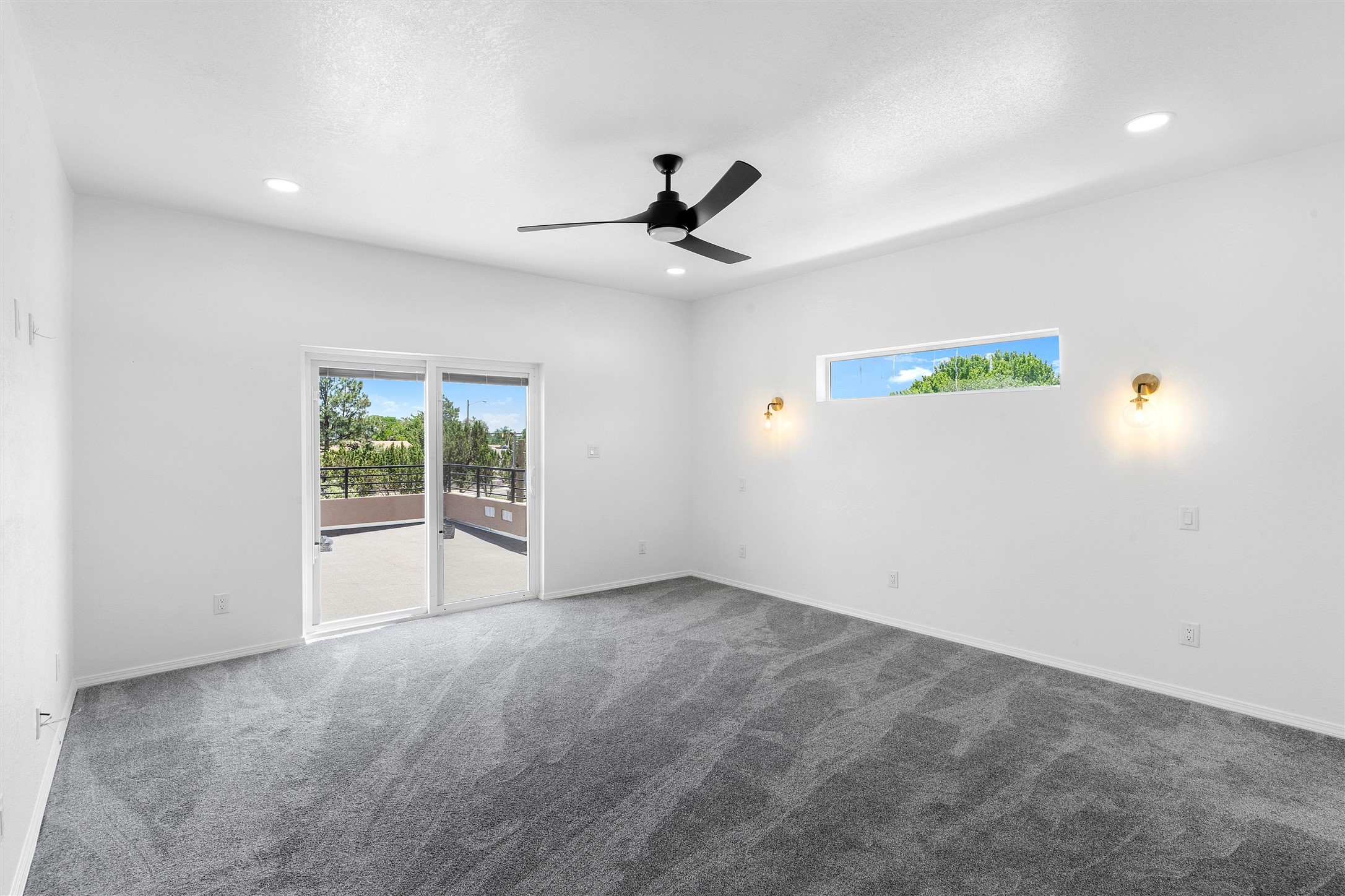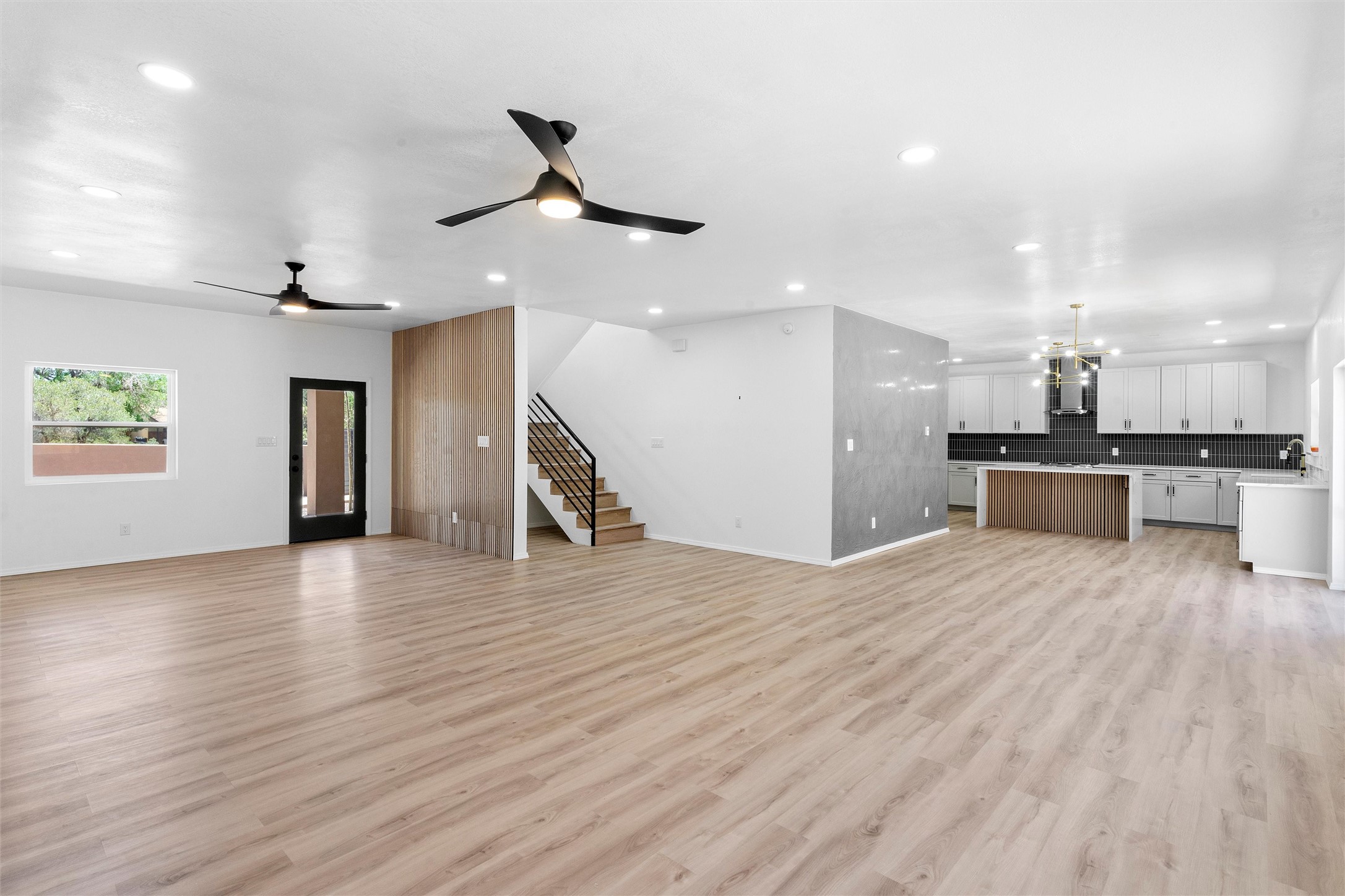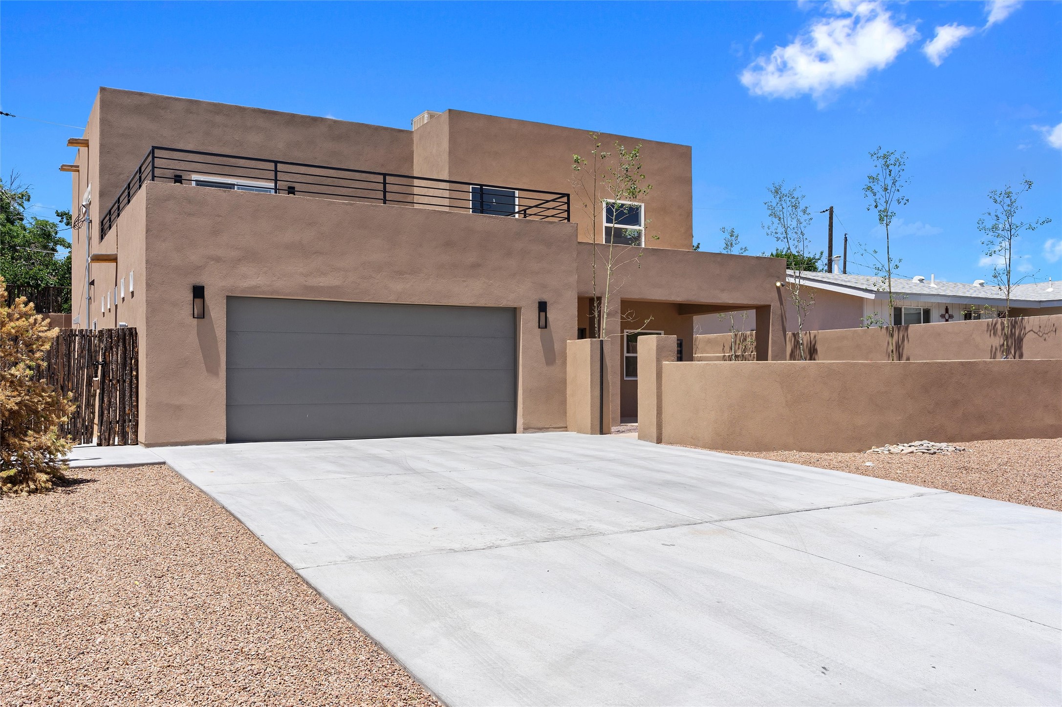 Offered under appraised value, this brand new custom built home presents a unique modern design, offering the perfect home for those seeking a sophisticated and luxurious lifestyle. This 3-bedroom, 2.5-bathroom house, showcases an open-concept layout that effortlessly combines style, functionality, and comfort. Step inside and be greeted by an abundance of natural light, illuminating the sleek lines and clean finishes throughout the home. The spacious living area serves as the centerpiece of the home and the carefully designed kitchen is a culinary enthusiast's dream, featuring stunning cabinetry, a walk-in pantry, quartz countertops and a large functional island for both meal preparation and casual dining. The chic primary bedroom offers a large walkout balcony with mountain views, walk-in closet, and an en-suite with a soaking tub, standing shower, and double sinks, which all together creates the perfect retreat to rejuvenate and recharge. Outside, the property features well manicured landscaping in the front and side yards and high privacy walls surround the home. The house is centrally located, offering convenient access to all Santa Fe has to offer. Don't miss this rare opportunity to own a new construction, modern masterpiece in Santa Fe.
