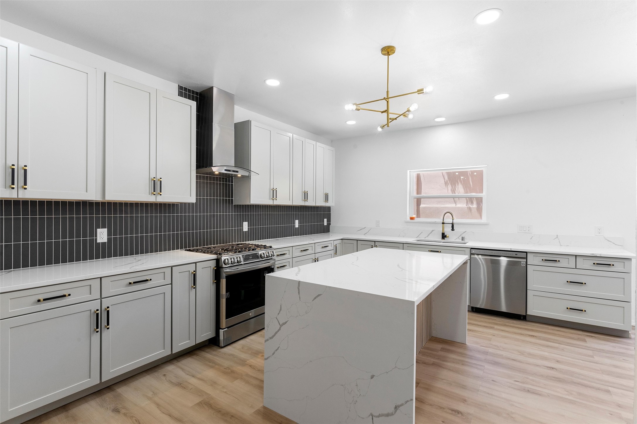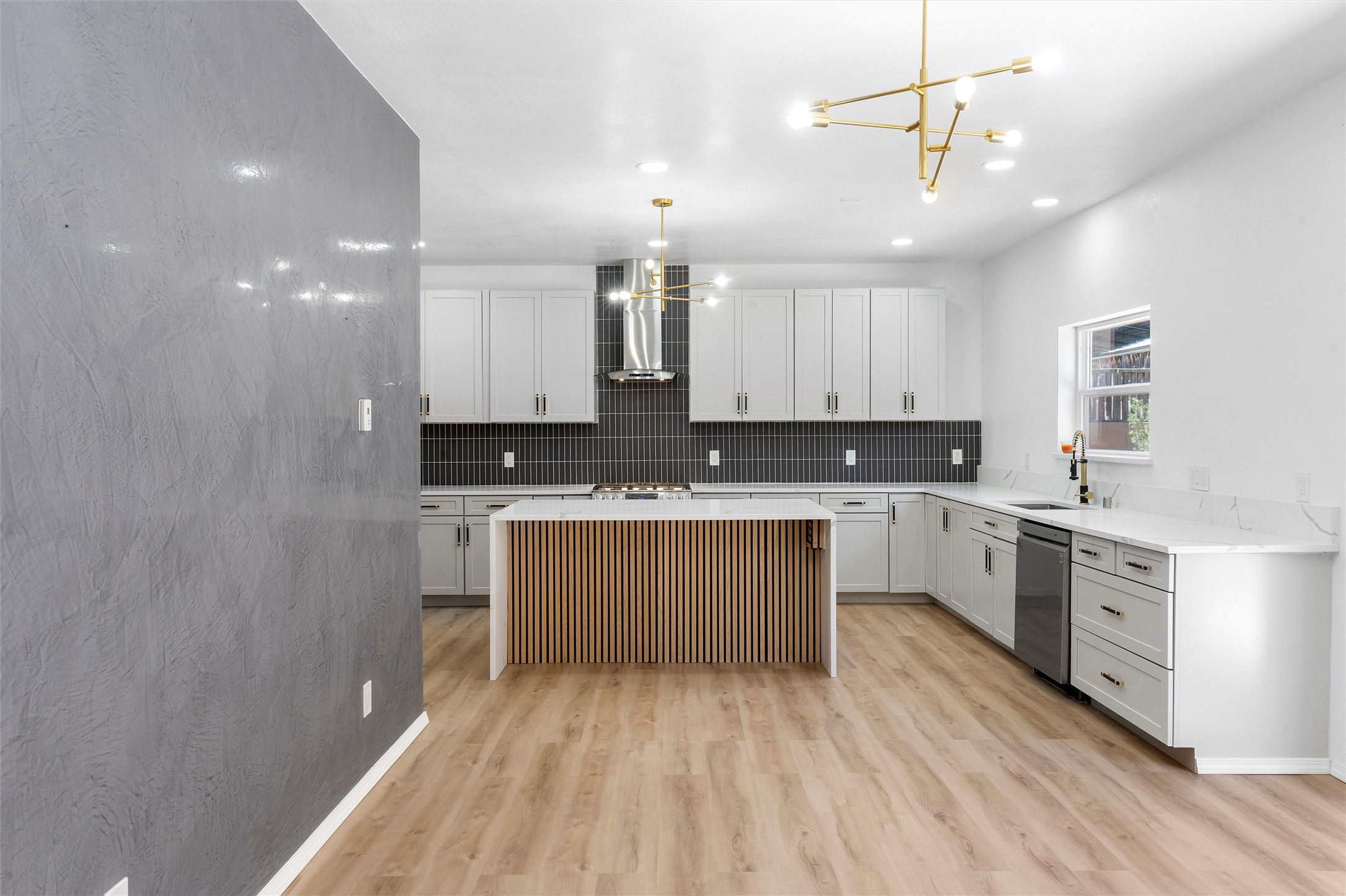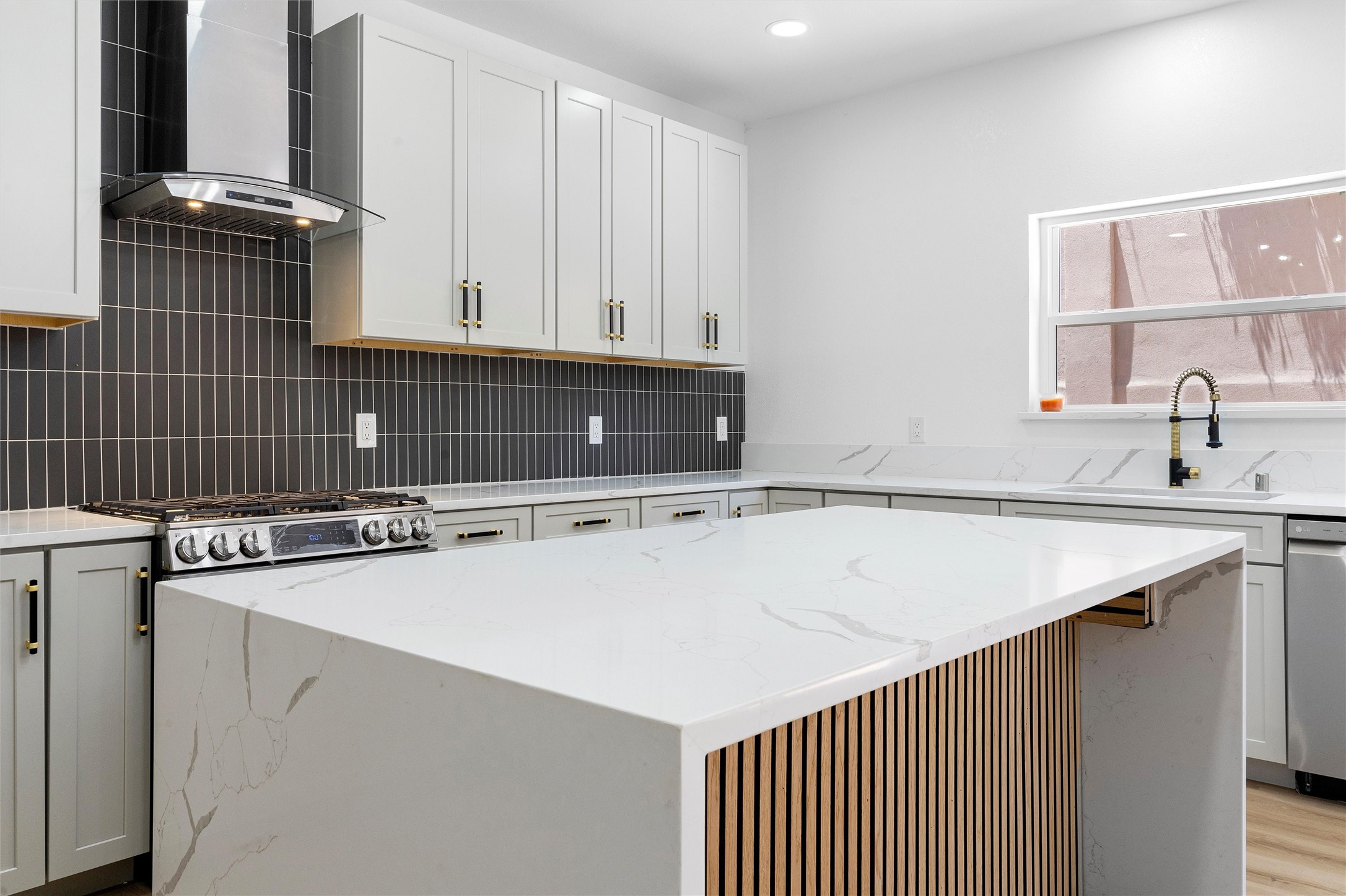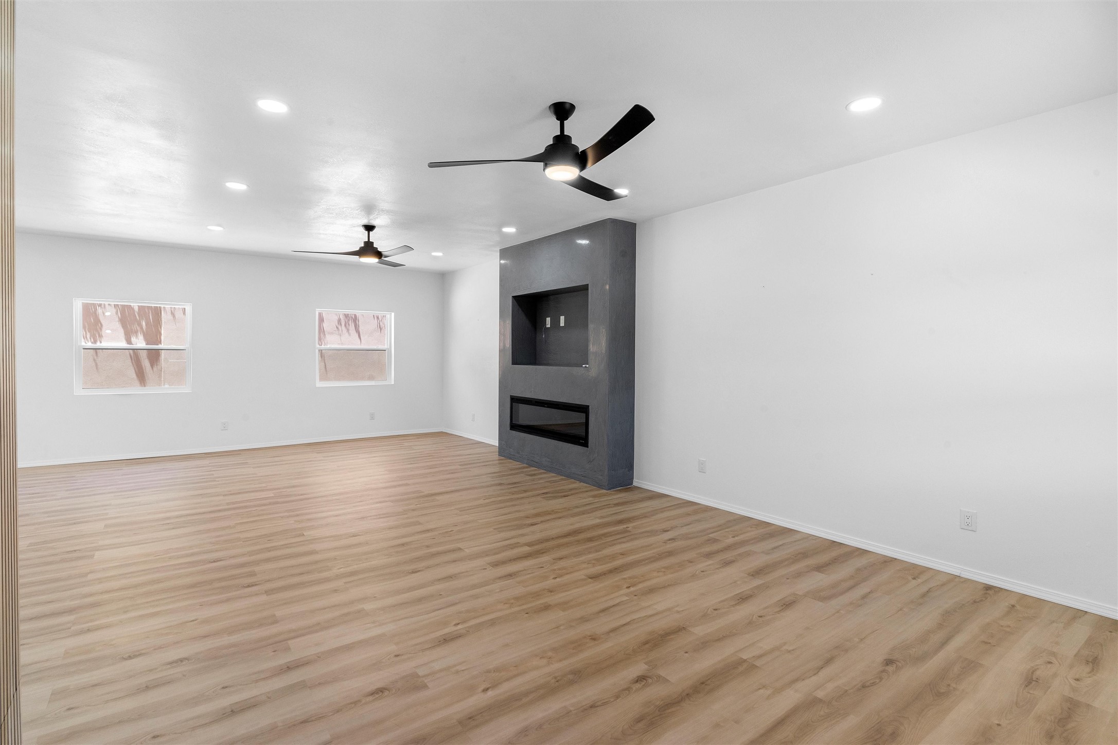 Offered under appraised value, this brand new custom built home presents a unique modern design, offering the perfect home for those seeking a sophisticated and luxurious lifestyle. This 3-bedroom, 2.5-bathroom house, showcases an open-concept layout that effortlessly combines style, functionality, and comfort. Step inside and be greeted by an abundance of natural light, illuminating the sleek lines and clean finishes throughout the home. The spacious living area serves as the centerpiece of the home and the carefully designed kitchen is a culinary enthusiast's dream, featuring stunning cabinetry, a walk-in pantry, quartz countertops and a large functional island for both meal preparation and casual dining. The chic primary bedroom offers a large walkout balcony with mountain views, walk-in closet, and an en-suite with a soaking tub, standing shower, and double sinks, which all together creates the perfect retreat to rejuvenate and recharge. Outside, the property features well manicured landscaping in the front and side yards and high privacy walls surround the home. The house is centrally located, offering convenient access to all Santa Fe has to offer. Don't miss this rare opportunity to own a new construction, modern masterpiece in Santa Fe.
