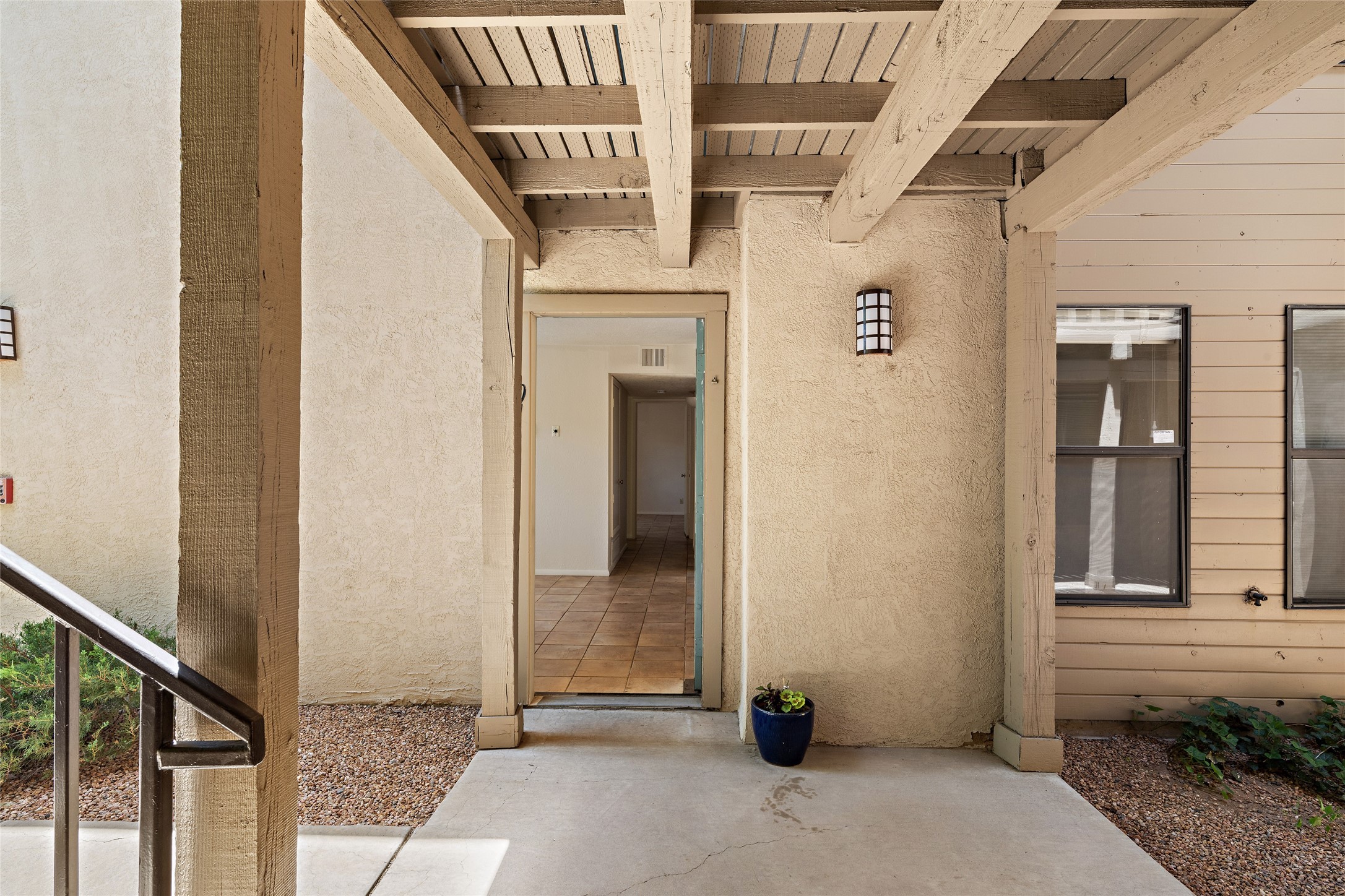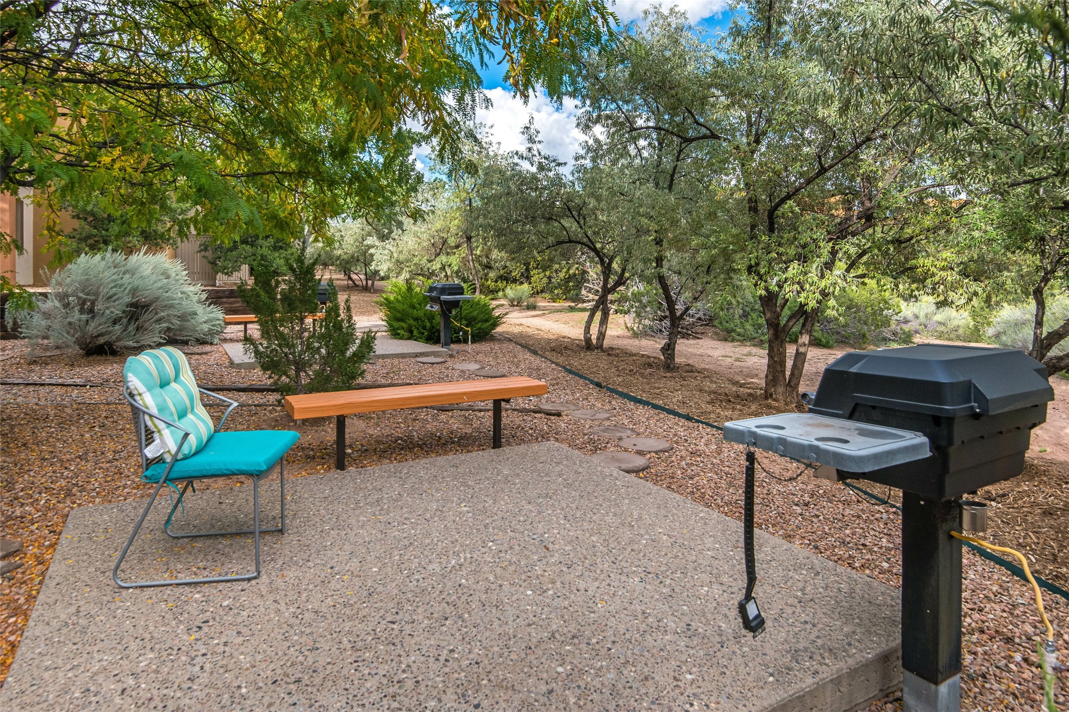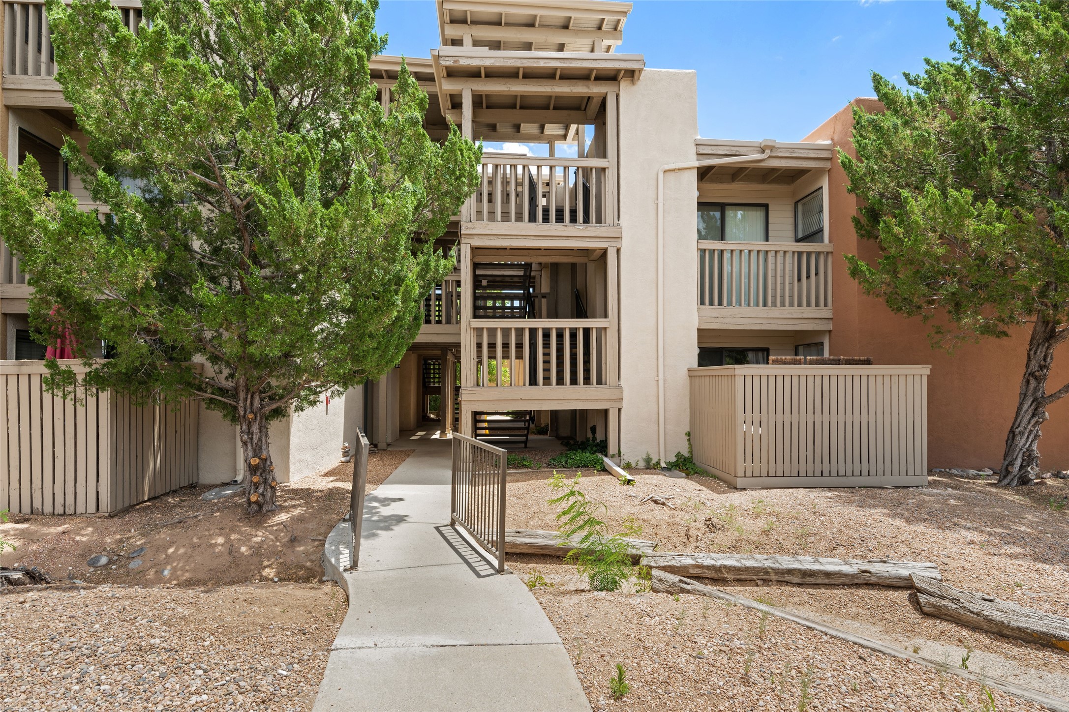 Light, bright, quiet, private, ground floor, end unit with uninterrupted, sky filled views, energizing morning light, and shelter from the afternoon sun in The Reserve, a gated, non-smoking condo community on 16 tree covered acres with adjoining nature trail access, just minutes north of the DeVargas Mall the Santa Fe Plaza and an easy commute to Los Alamos offers a heated outdoor pool and hot tub, a clean gym, large laundry facility, night time security, and a beautiful clubhouse. This awesome condo features ceramic tiled floors throughout, an updated kitchen, spacious closets, and a private patio. This is a prime unit in a prime location. Low maintenance; the roof, stucco, and landscaping are maintained by the HOA. And small pets are welcome! Call today for your private showing.