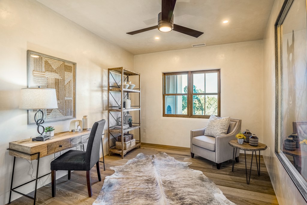 Exquisite taste marries traditional Southwestern charm in Casa Vista Larga. This gracious and elegant home was conceived and built by Hays Associates, Inc., a family-owned company founded in 1980. Casa Vista Larga's design includes beamed ceilings, three fireplaces, portals, wood floors, soft curved walls, plaster throughout, contemporary stone and tile finishes, and stunning views of the Jemez Mountains and the always spectacular Santa Fe sunsets. The primary suite features a soaking tub and generous closet with a nearby study/media room. The two guest rooms are designed with ensuite baths and plenty of storage. Main living areas with open concept-including a chef's kitchen, great room, and wet bar. They offer enticing spaces for entertaining with an easy flow out to a spacious covered patio. At 3600 square feet, Casa Vista Larga is comfortably scaled and thoughtfully constructed so as to take the best advantage of the land's panoramic vistas. The home is equipped with radiant floor heating, central air conditioning, and forced air heat for year-round comfort. Grounds feature trees, grasses and native plantings, a moss rock planter, flagstone walkways, a cocktail patio and a generous front courtyard perfect for outdoor living and gardening. The home is situated on 1.824 acres in Estates IV of the renowned Las Campanas region of Santa Fe. The Club at Las Campanas offers optional memberships to homeowners with amenities including restaurants, pools, a spa, and two Jack Nicklaus-designed golf courses. Casa Vista Larga is scheduled for completion in fall of 2023.