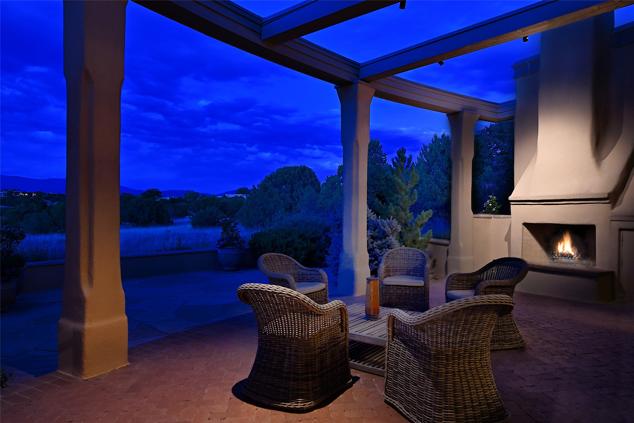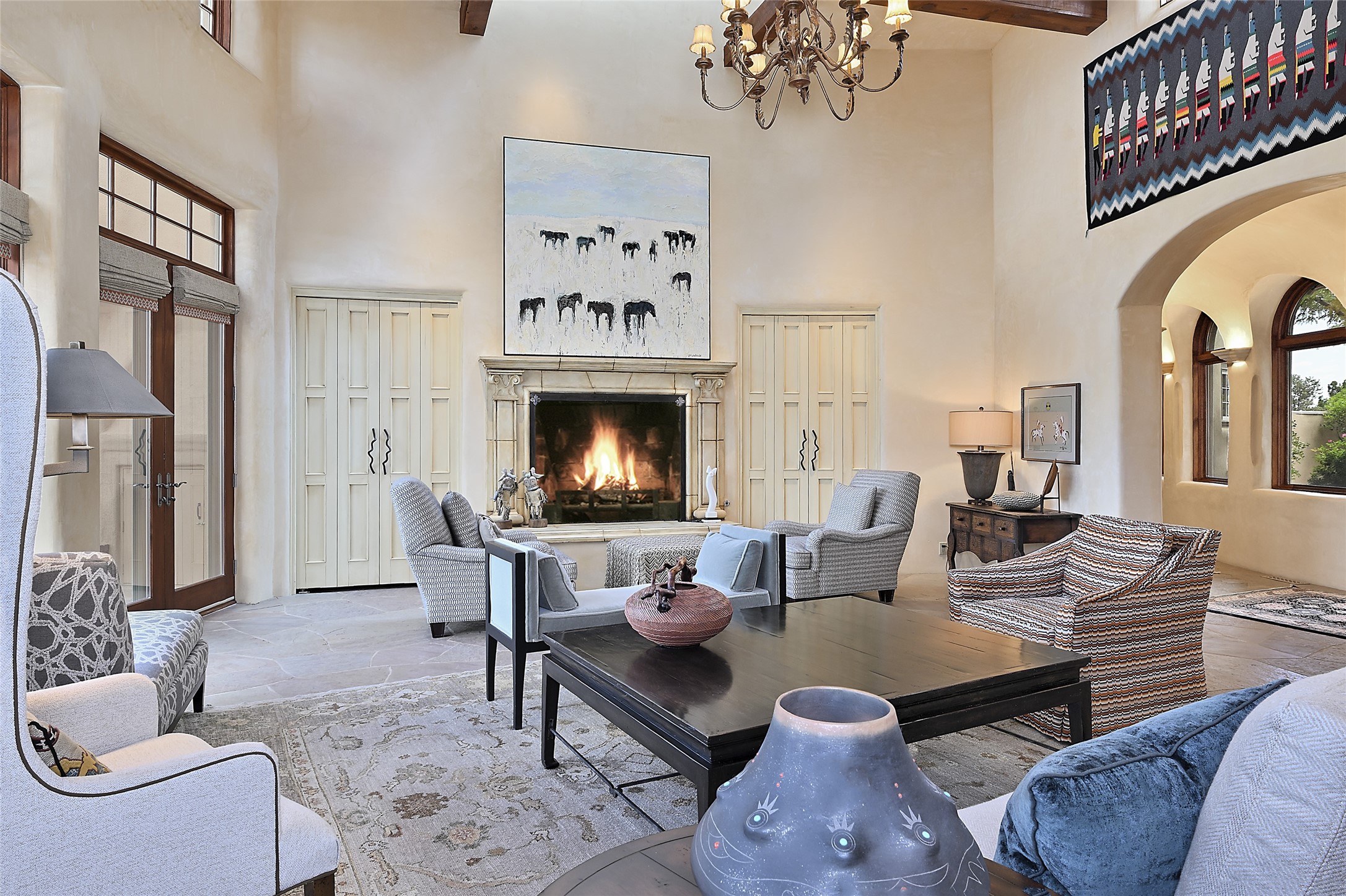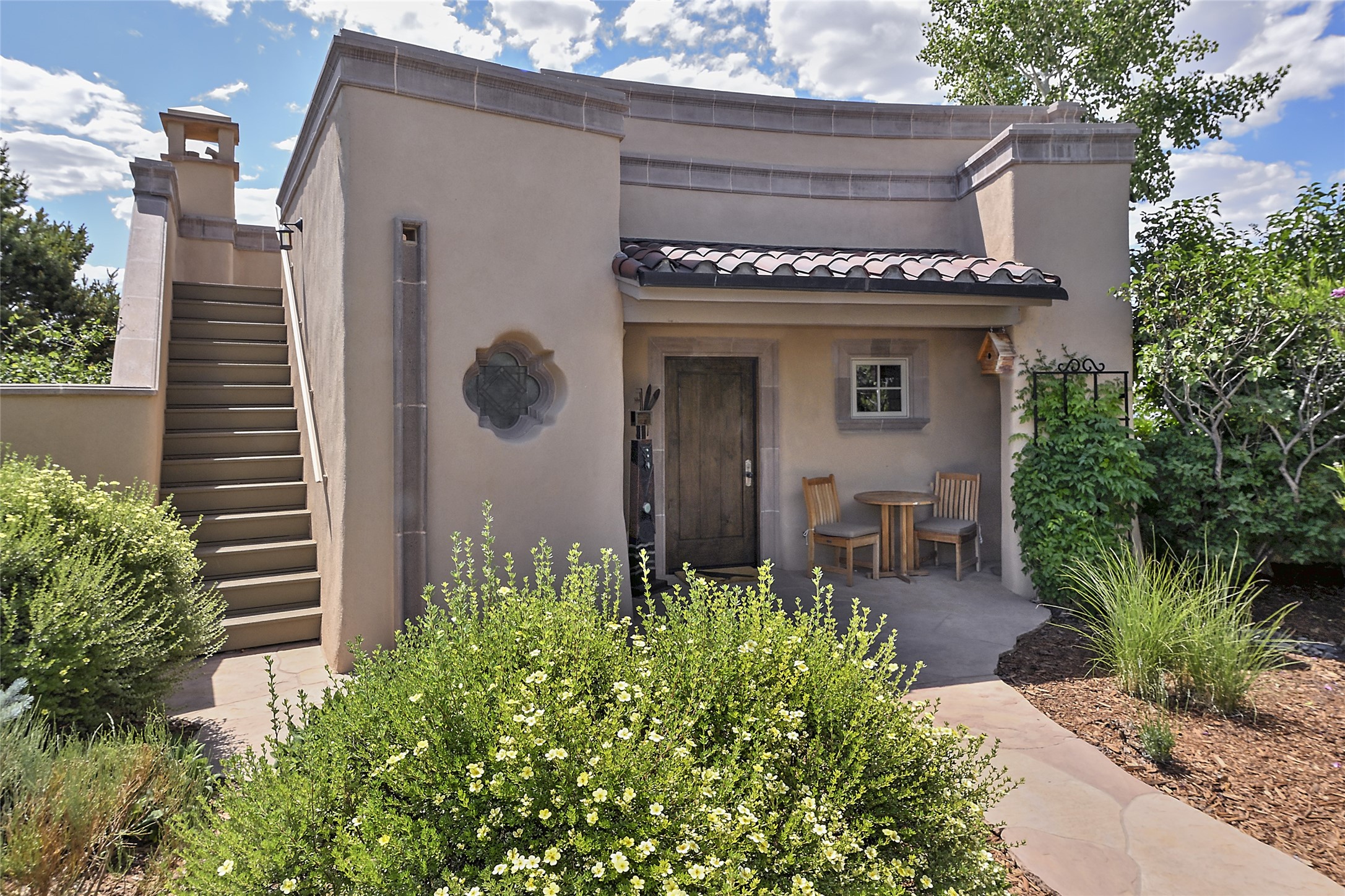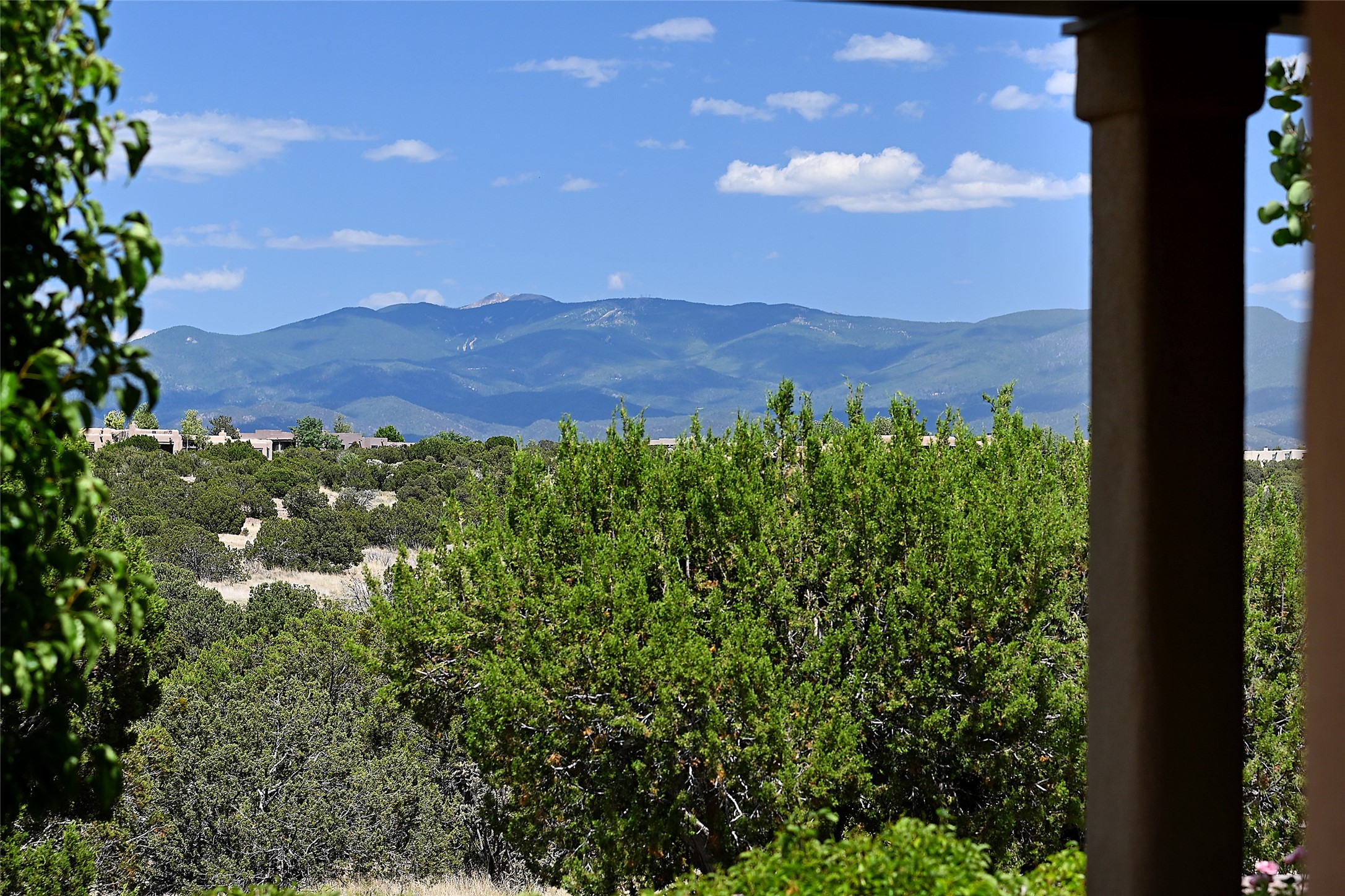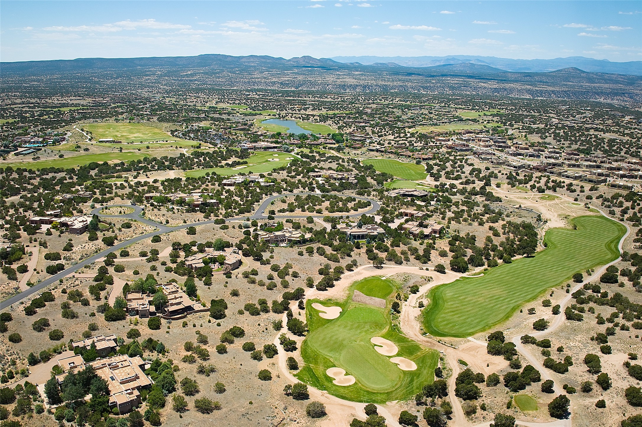 This remarkable residence boasts extraordinary views of the Sangre de Cristo mountains, providing a stunning backdrop from every vantage point. As you enter, you're immediately greeted by spacious living and dining areas that seamlessly blend with the meticulously designed gardens and surrounding landscape. Imagine relaxing on your private patio, marveling at the moonrise over the eastern mountain tops or the vibrant colors as the sun sets behind the mountains to the west. Picture yourself on winter days reading by the fire in the spacious and comfortable informal living area with the state-of-the-art kitchen steps away. The interior spaces are thoughtfully designed, with an emphasis on open layouts and large windows that invite natural light and create an atmosphere of comfort and tranquility. Reimagined by master builder Saye Construction, this home has been taken to extraordinary levels, ensuring the highest quality craftsmanship and meticulous attention to detail. This compound also features a separate guest house, providing ample space and privacy for visitors or family. The guest house mirrors the same level of luxury and comfort ensuring that guests feel pampered and at ease. Every detail of this home has been carefully crafted with stunning attention to detail, from the luxurious primary suite and two guest suites in the main home to the truly special guest house. Membership to the Club at Las Campanas is available but not required.