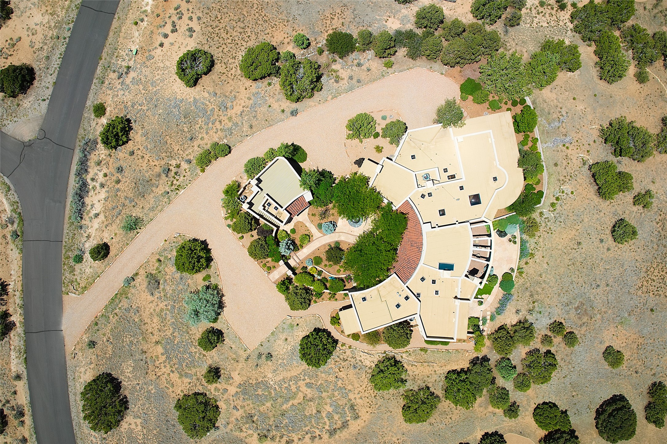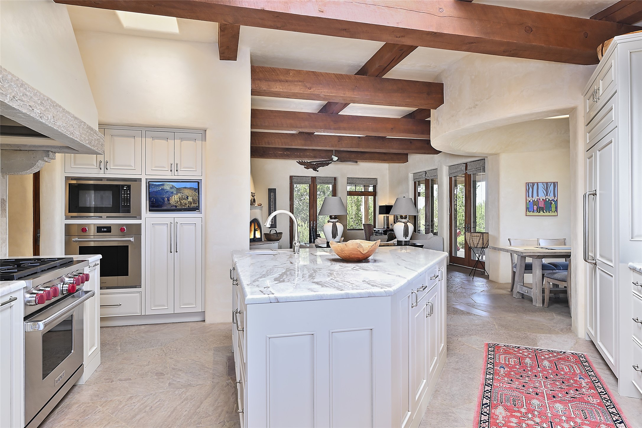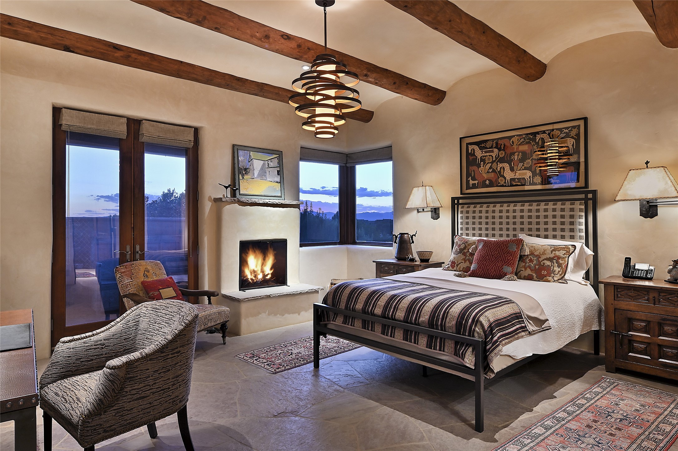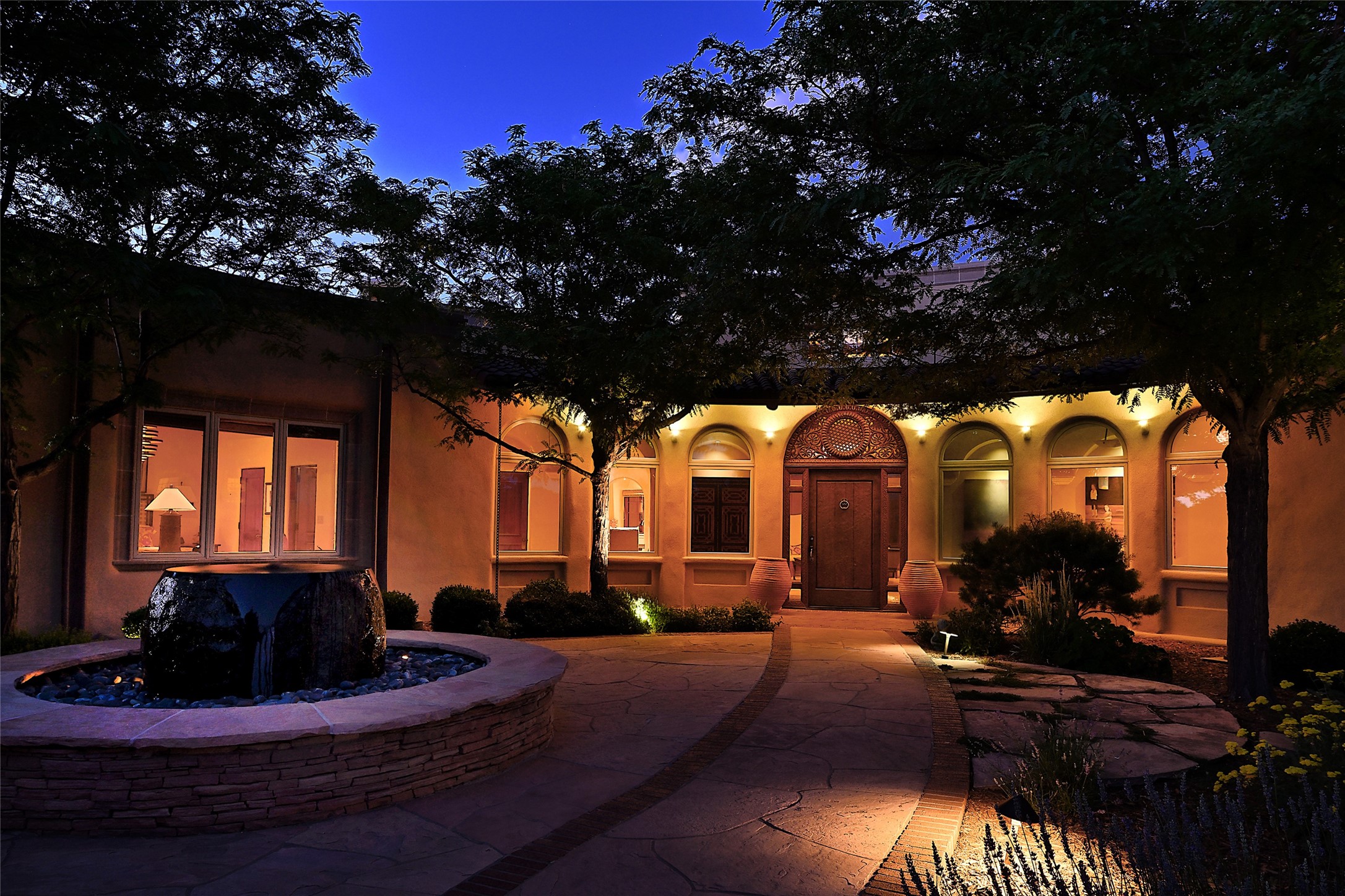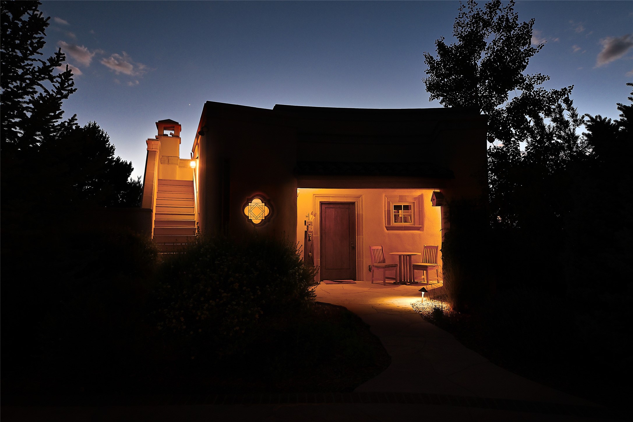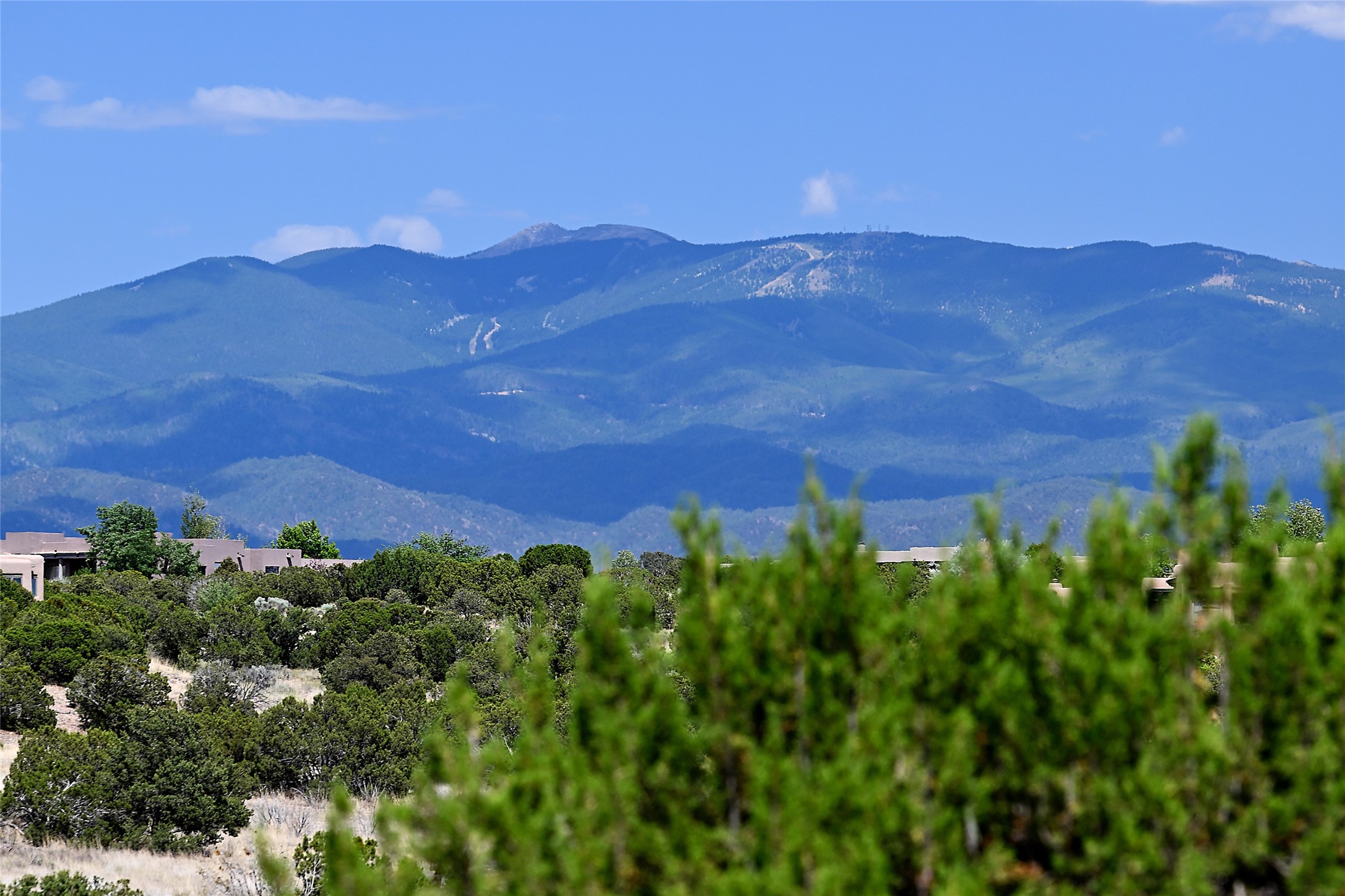 This remarkable residence boasts extraordinary views of the Sangre de Cristo mountains, providing a stunning backdrop from every vantage point. As you enter, you're immediately greeted by spacious living and dining areas that seamlessly blend with the meticulously designed gardens and surrounding landscape. Imagine relaxing on your private patio, marveling at the moonrise over the eastern mountain tops or the vibrant colors as the sun sets behind the mountains to the west. Picture yourself on winter days reading by the fire in the spacious and comfortable informal living area with the state-of-the-art kitchen steps away. The interior spaces are thoughtfully designed, with an emphasis on open layouts and large windows that invite natural light and create an atmosphere of comfort and tranquility. Reimagined by master builder Saye Construction, this home has been taken to extraordinary levels, ensuring the highest quality craftsmanship and meticulous attention to detail. This compound also features a separate guest house, providing ample space and privacy for visitors or family. The guest house mirrors the same level of luxury and comfort ensuring that guests feel pampered and at ease. Every detail of this home has been carefully crafted with stunning attention to detail, from the luxurious primary suite and two guest suites in the main home to the truly special guest house. Membership to the Club at Las Campanas is available but not required.