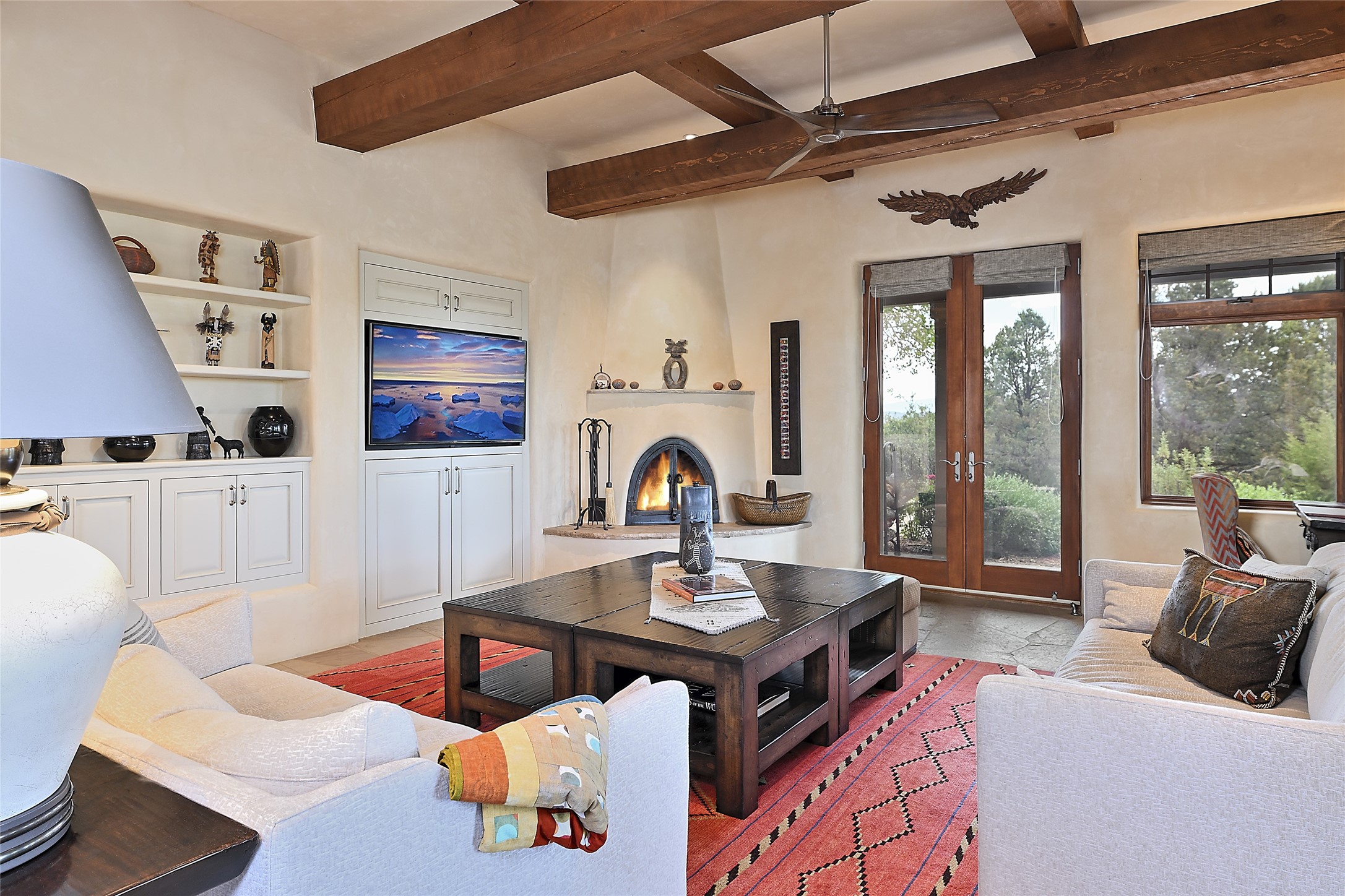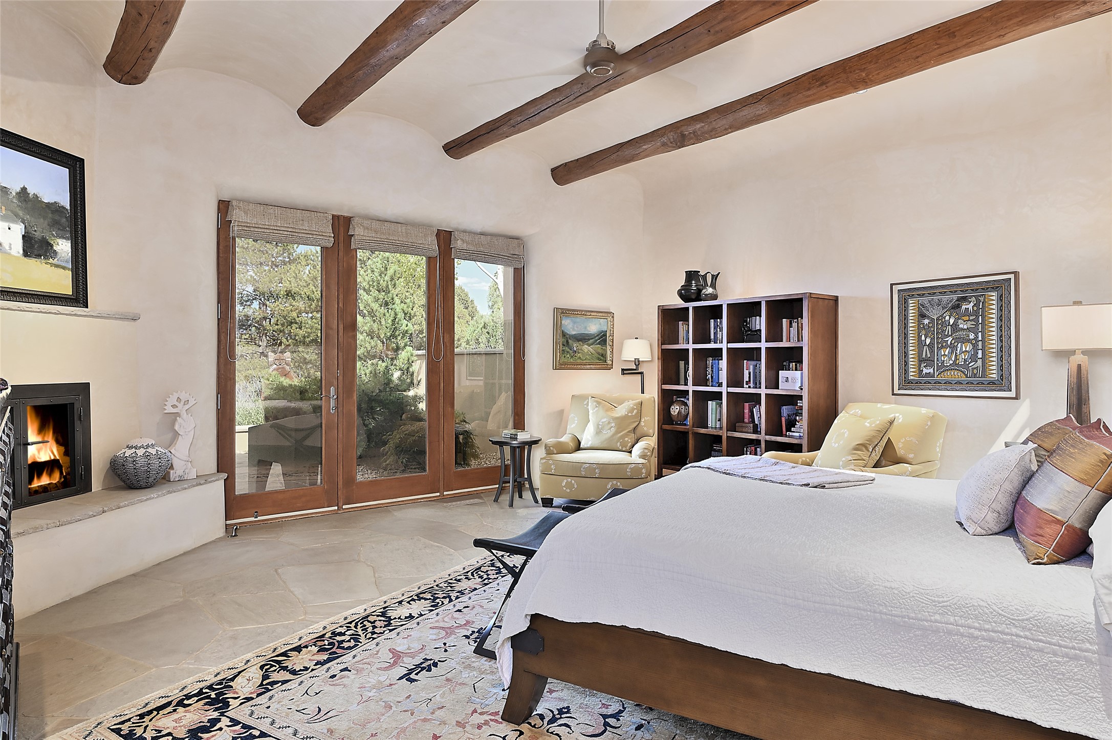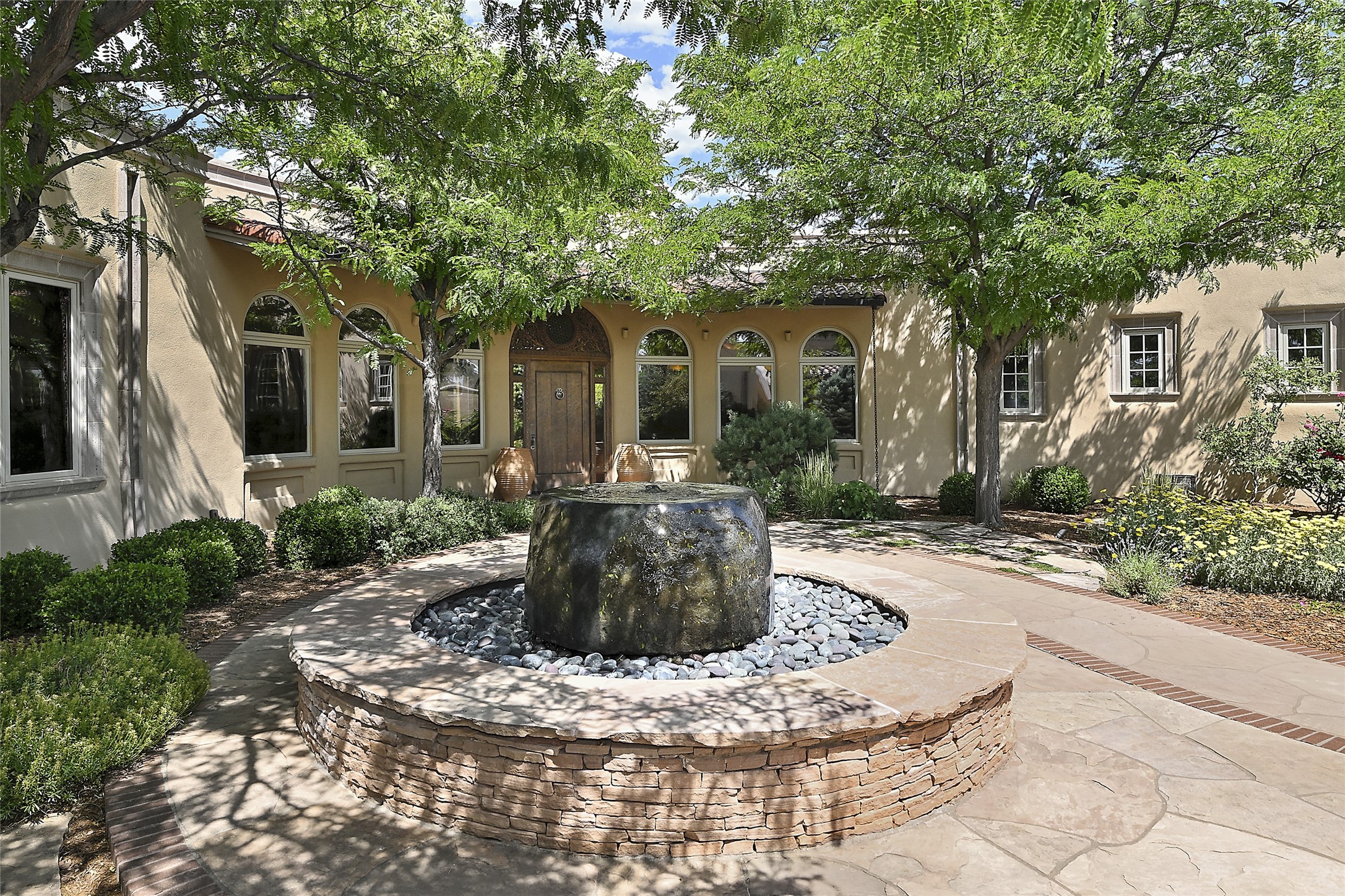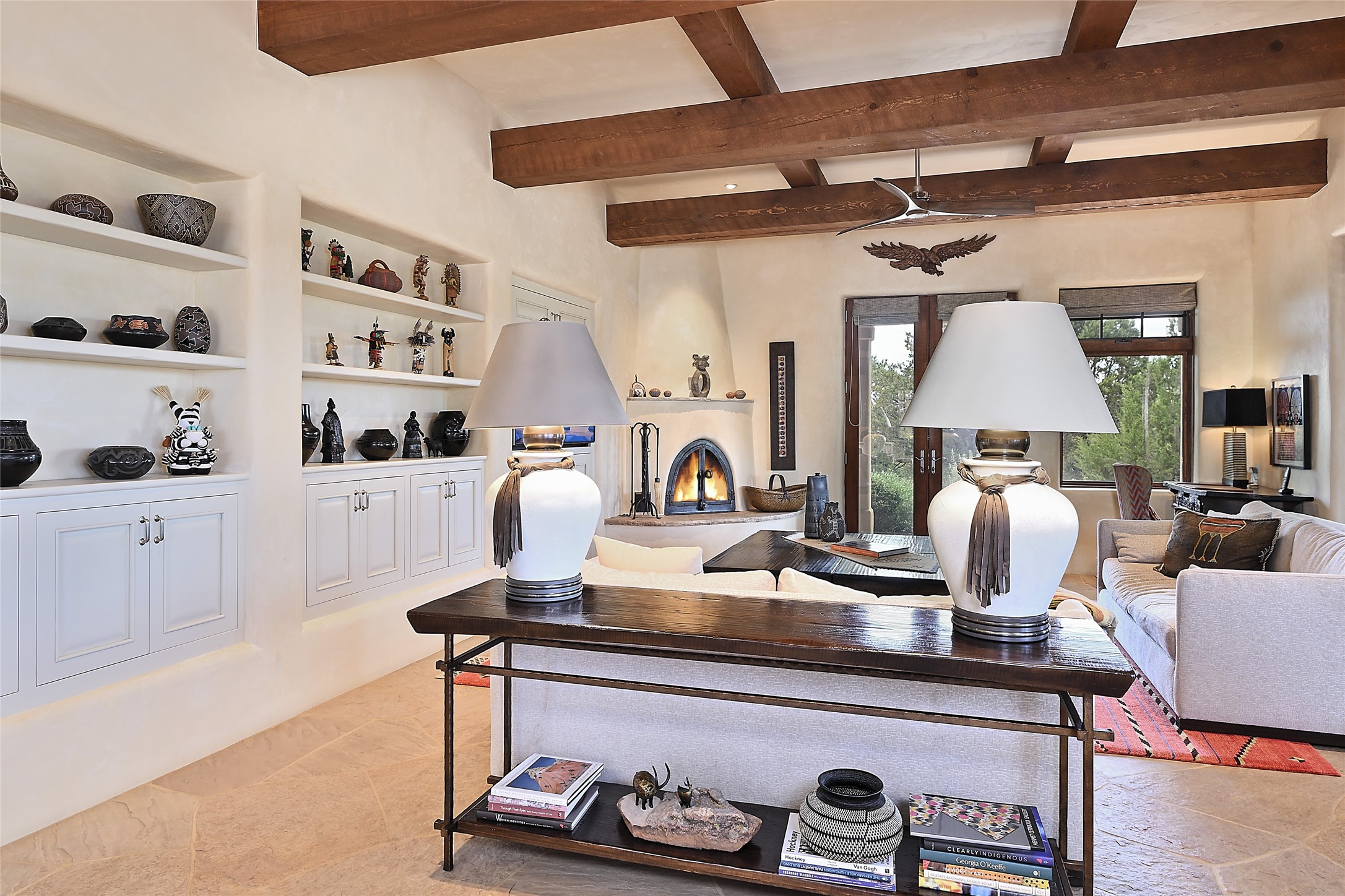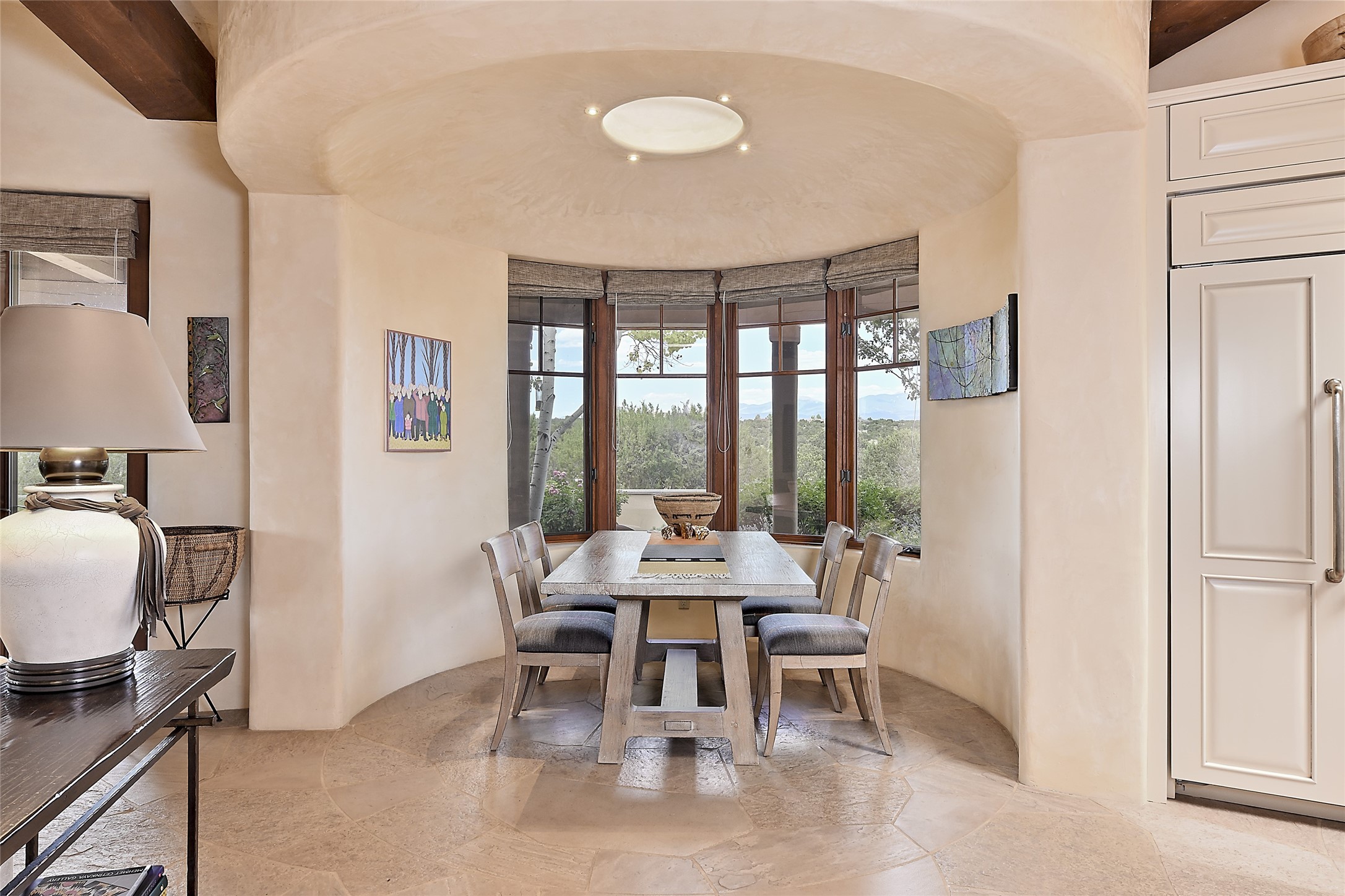 This remarkable residence boasts extraordinary views of the Sangre de Cristo mountains, providing a stunning backdrop from every vantage point. As you enter, you're immediately greeted by spacious living and dining areas that seamlessly blend with the meticulously designed gardens and surrounding landscape. Imagine relaxing on your private patio, marveling at the moonrise over the eastern mountain tops or the vibrant colors as the sun sets behind the mountains to the west. Picture yourself on winter days reading by the fire in the spacious and comfortable informal living area with the state-of-the-art kitchen steps away. The interior spaces are thoughtfully designed, with an emphasis on open layouts and large windows that invite natural light and create an atmosphere of comfort and tranquility. Reimagined by master builder Saye Construction, this home has been taken to extraordinary levels, ensuring the highest quality craftsmanship and meticulous attention to detail. This compound also features a separate guest house, providing ample space and privacy for visitors or family. The guest house mirrors the same level of luxury and comfort ensuring that guests feel pampered and at ease. Every detail of this home has been carefully crafted with stunning attention to detail, from the luxurious primary suite and two guest suites in the main home to the truly special guest house. Membership to the Club at Las Campanas is available but not required.