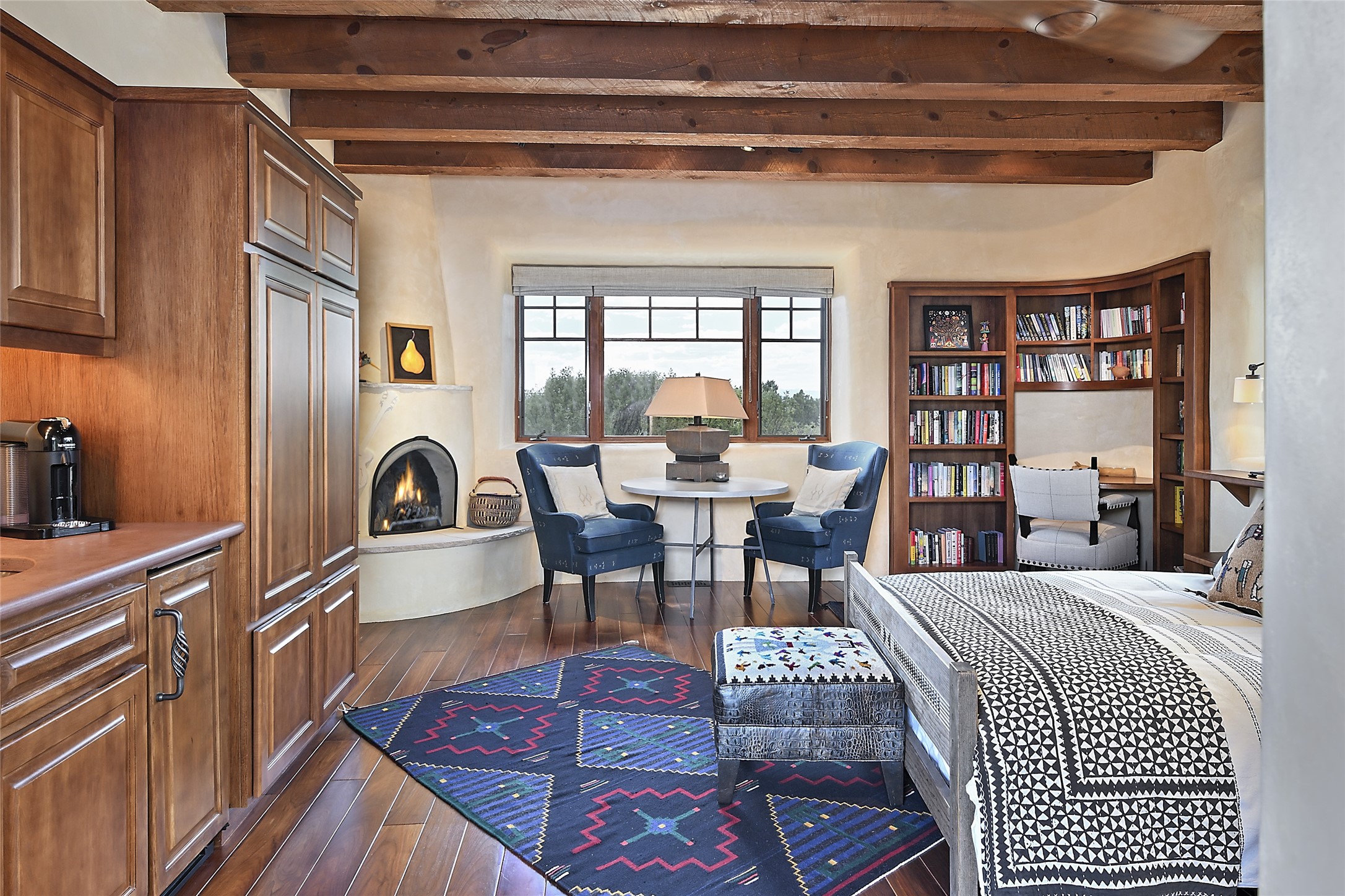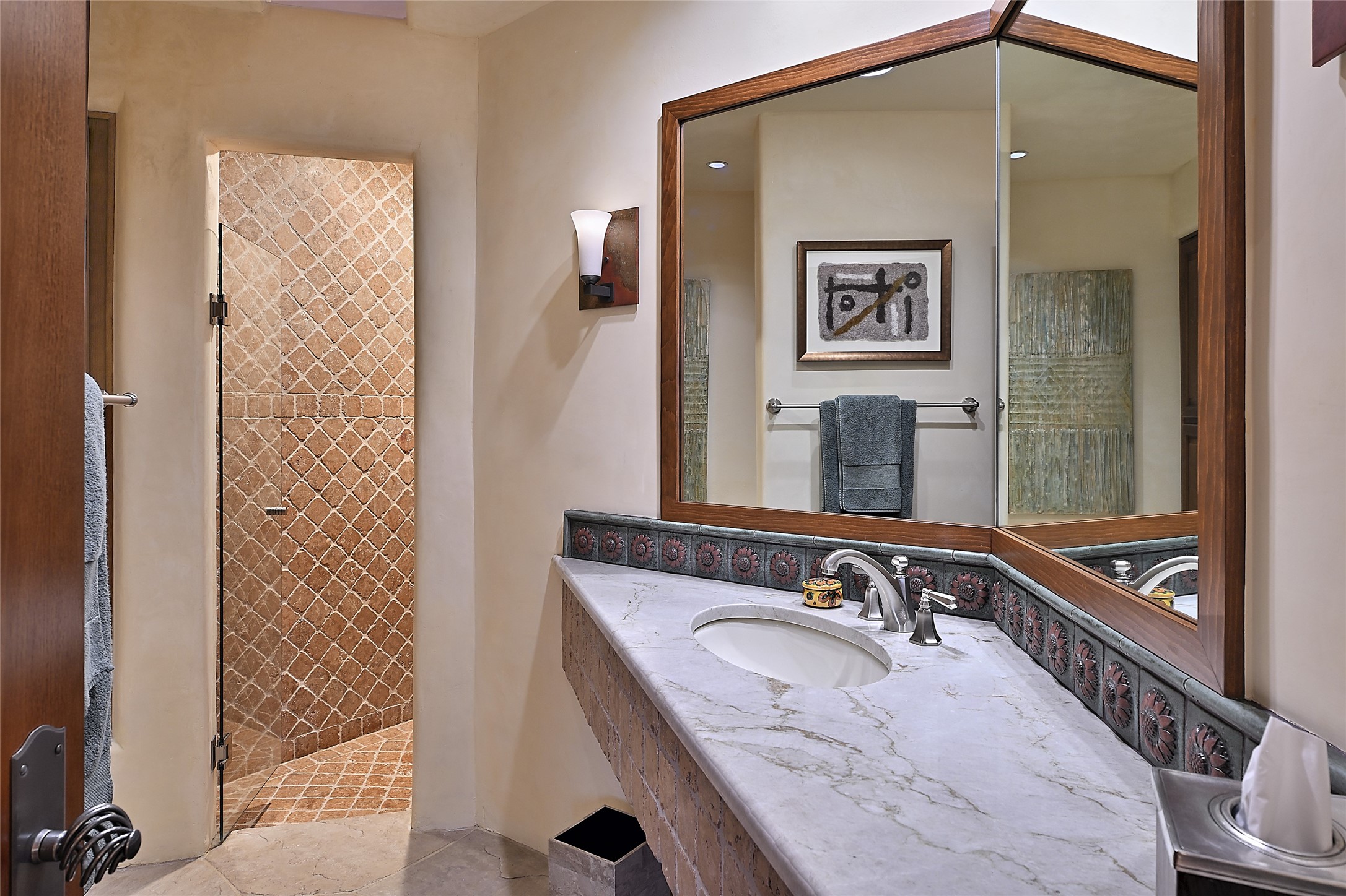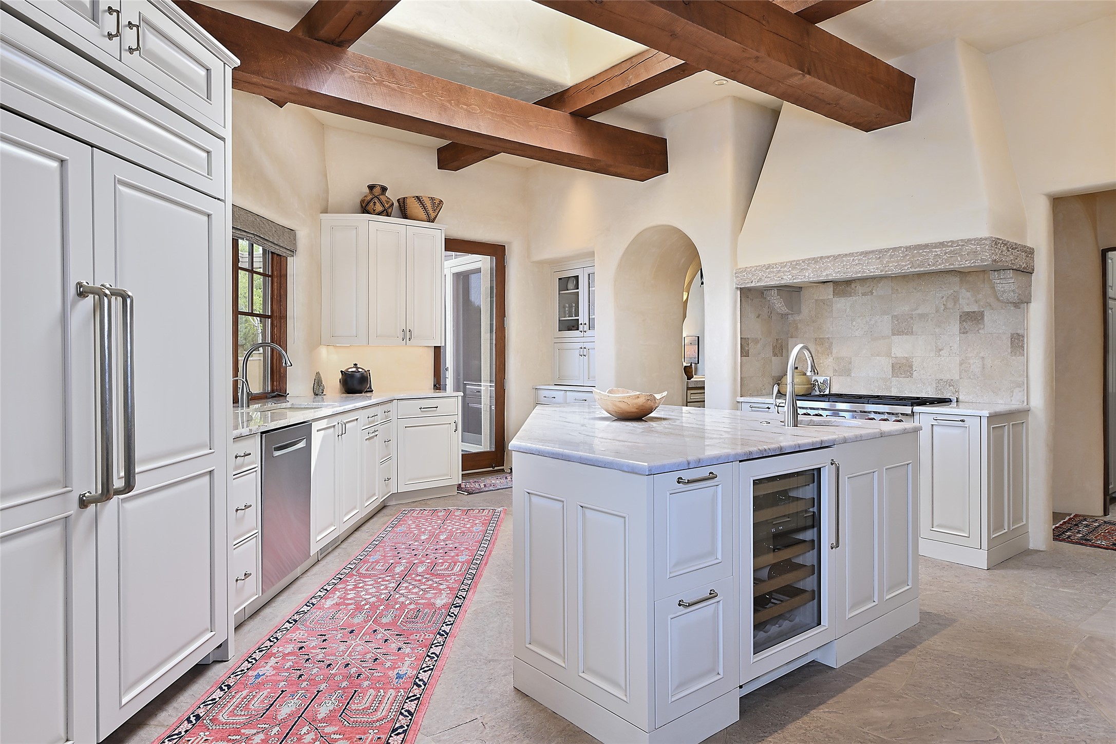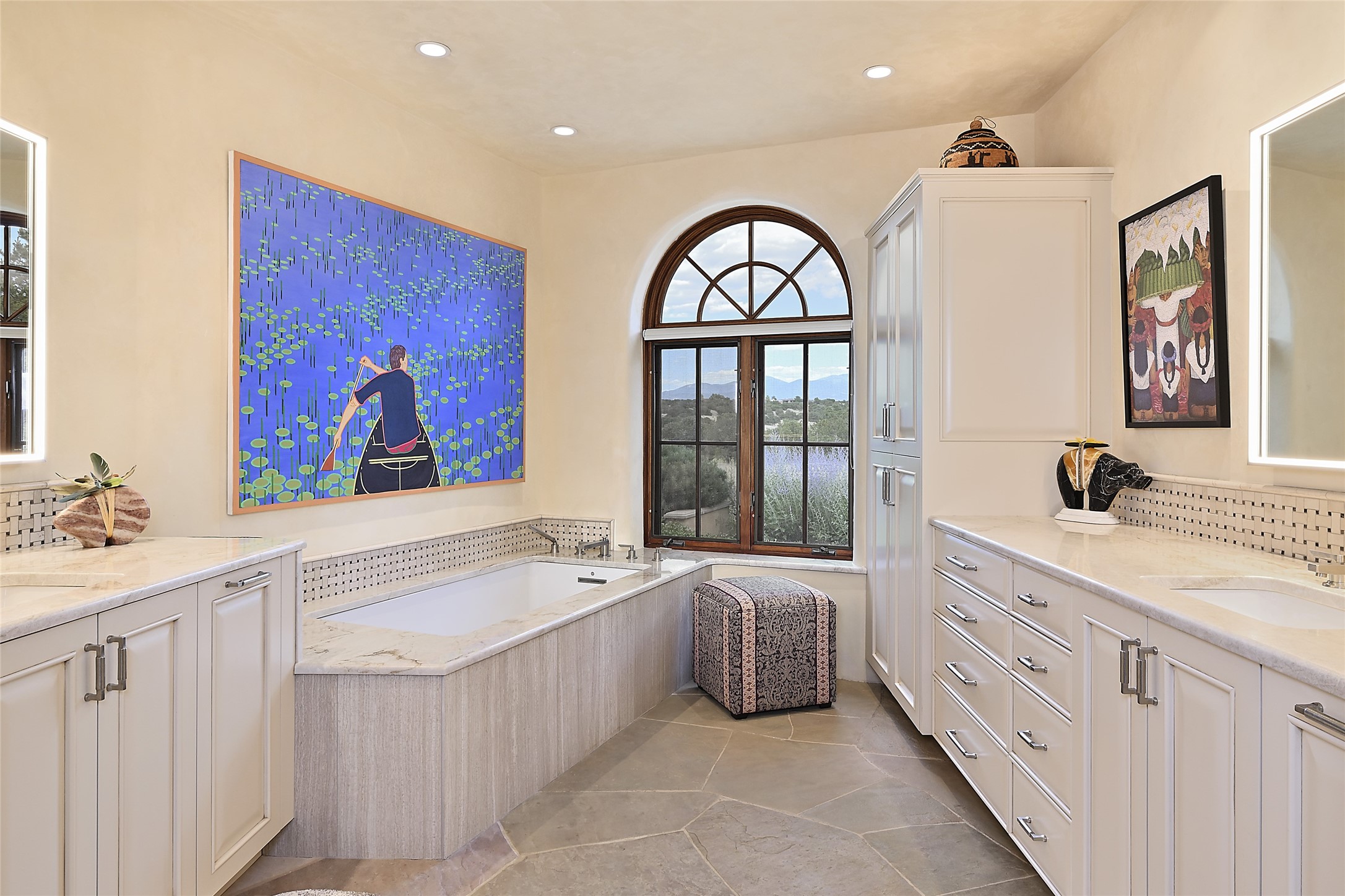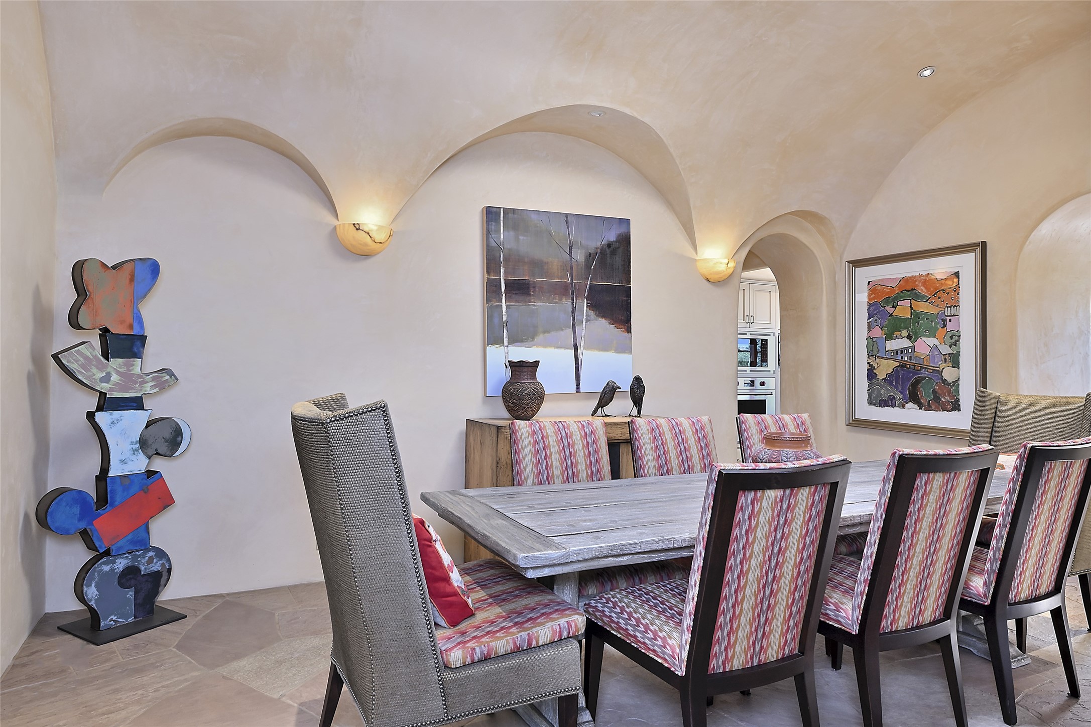 This remarkable residence boasts extraordinary views of the Sangre de Cristo mountains, providing a stunning backdrop from every vantage point. As you enter, you're immediately greeted by spacious living and dining areas that seamlessly blend with the meticulously designed gardens and surrounding landscape. Imagine relaxing on your private patio, marveling at the moonrise over the eastern mountain tops or the vibrant colors as the sun sets behind the mountains to the west. Picture yourself on winter days reading by the fire in the spacious and comfortable informal living area with the state-of-the-art kitchen steps away. The interior spaces are thoughtfully designed, with an emphasis on open layouts and large windows that invite natural light and create an atmosphere of comfort and tranquility. Reimagined by master builder Saye Construction, this home has been taken to extraordinary levels, ensuring the highest quality craftsmanship and meticulous attention to detail. This compound also features a separate guest house, providing ample space and privacy for visitors or family. The guest house mirrors the same level of luxury and comfort ensuring that guests feel pampered and at ease. Every detail of this home has been carefully crafted with stunning attention to detail, from the luxurious primary suite and two guest suites in the main home to the truly special guest house. Membership to the Club at Las Campanas is available but not required.