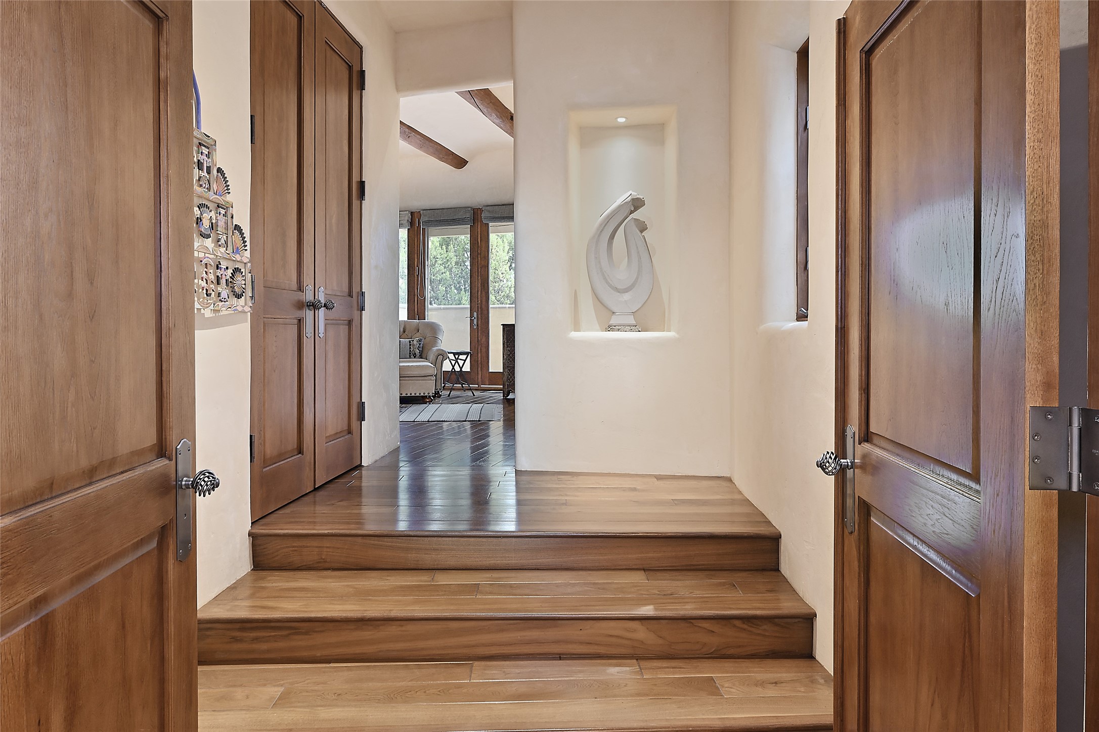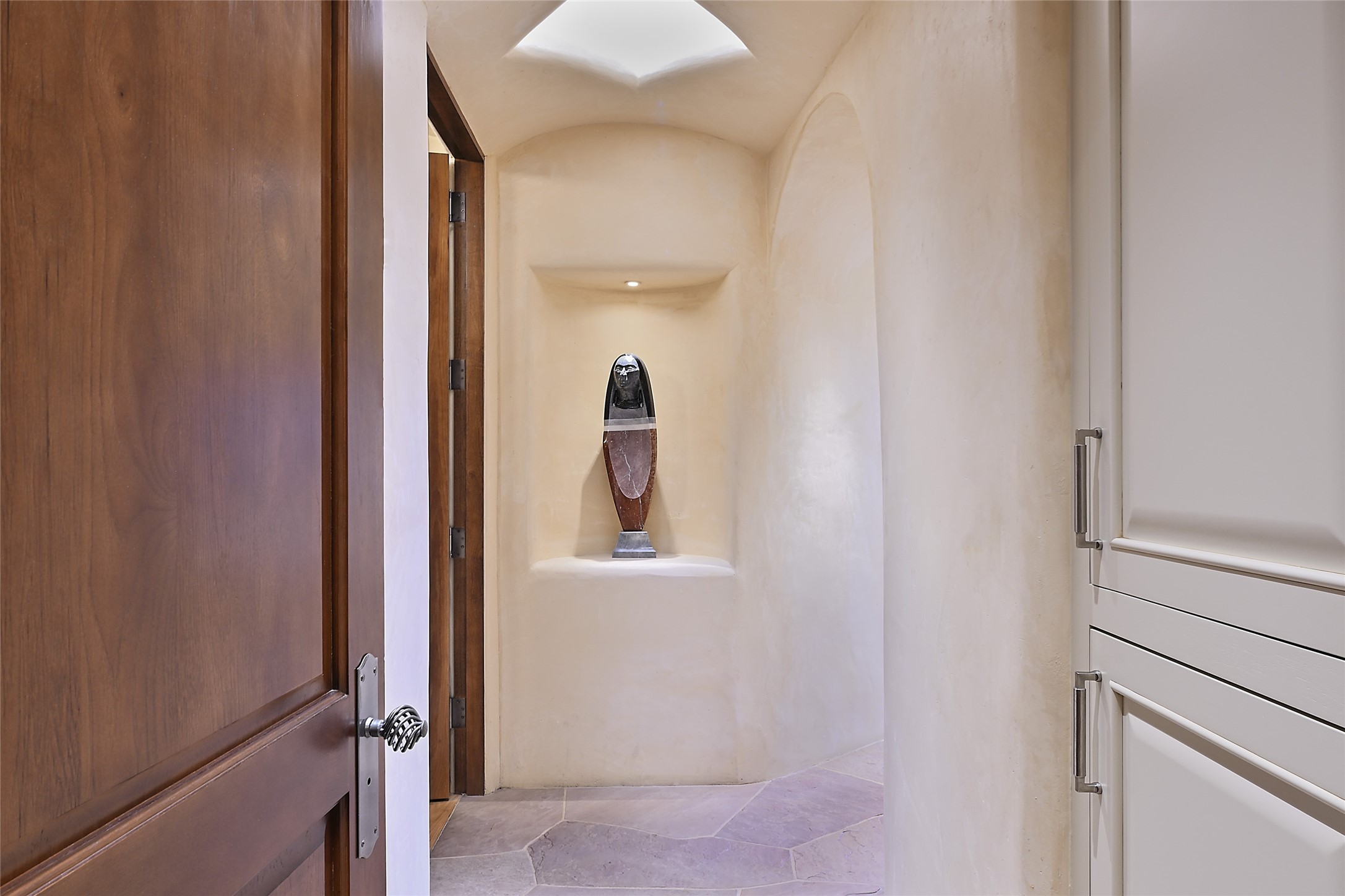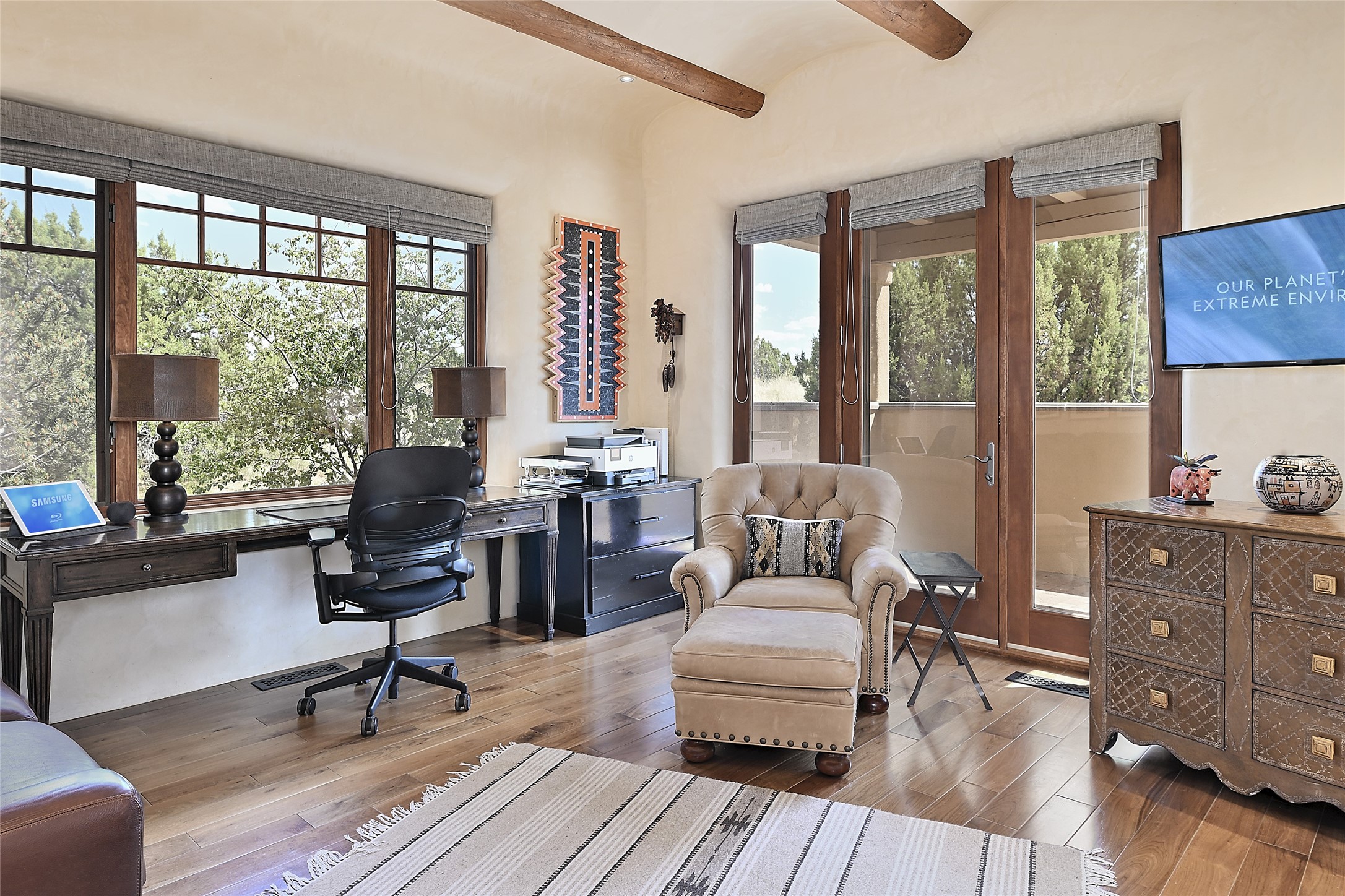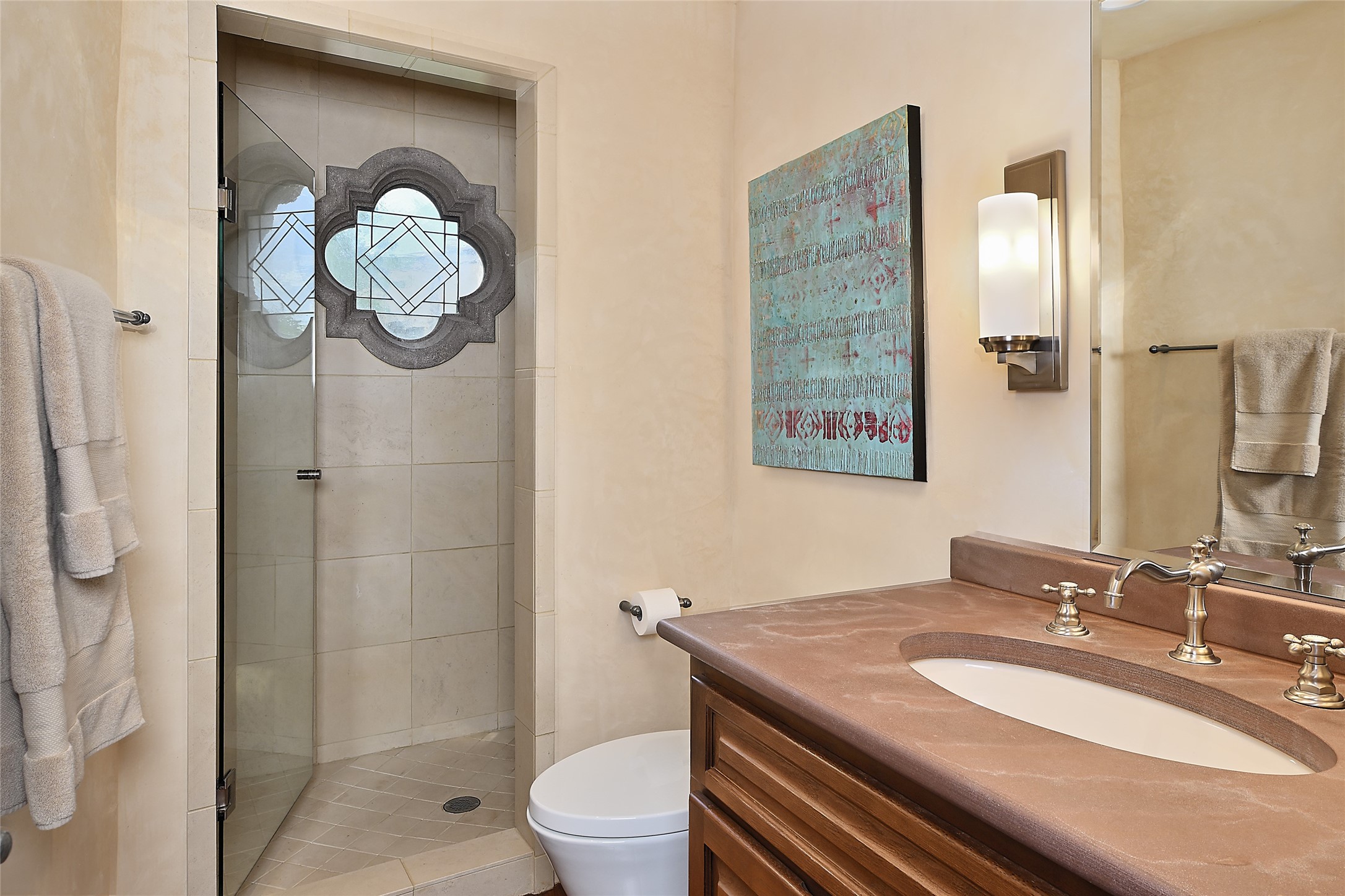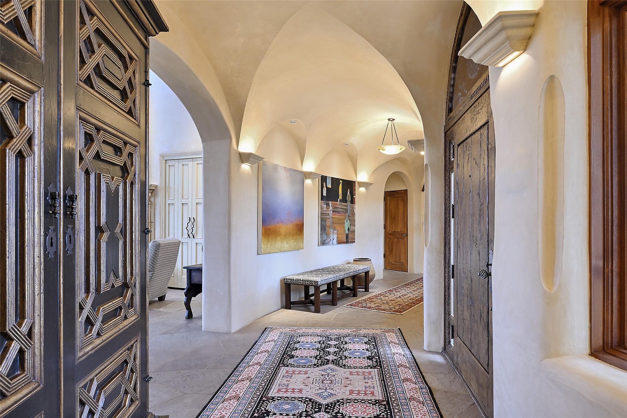 This remarkable residence boasts extraordinary views of the Sangre de Cristo mountains, providing a stunning backdrop from every vantage point. As you enter, you're immediately greeted by spacious living and dining areas that seamlessly blend with the meticulously designed gardens and surrounding landscape. Imagine relaxing on your private patio, marveling at the moonrise over the eastern mountain tops or the vibrant colors as the sun sets behind the mountains to the west. Picture yourself on winter days reading by the fire in the spacious and comfortable informal living area with the state-of-the-art kitchen steps away. The interior spaces are thoughtfully designed, with an emphasis on open layouts and large windows that invite natural light and create an atmosphere of comfort and tranquility. Reimagined by master builder Saye Construction, this home has been taken to extraordinary levels, ensuring the highest quality craftsmanship and meticulous attention to detail. This compound also features a separate guest house, providing ample space and privacy for visitors or family. The guest house mirrors the same level of luxury and comfort ensuring that guests feel pampered and at ease. Every detail of this home has been carefully crafted with stunning attention to detail, from the luxurious primary suite and two guest suites in the main home to the truly special guest house. Membership to the Club at Las Campanas is available but not required.