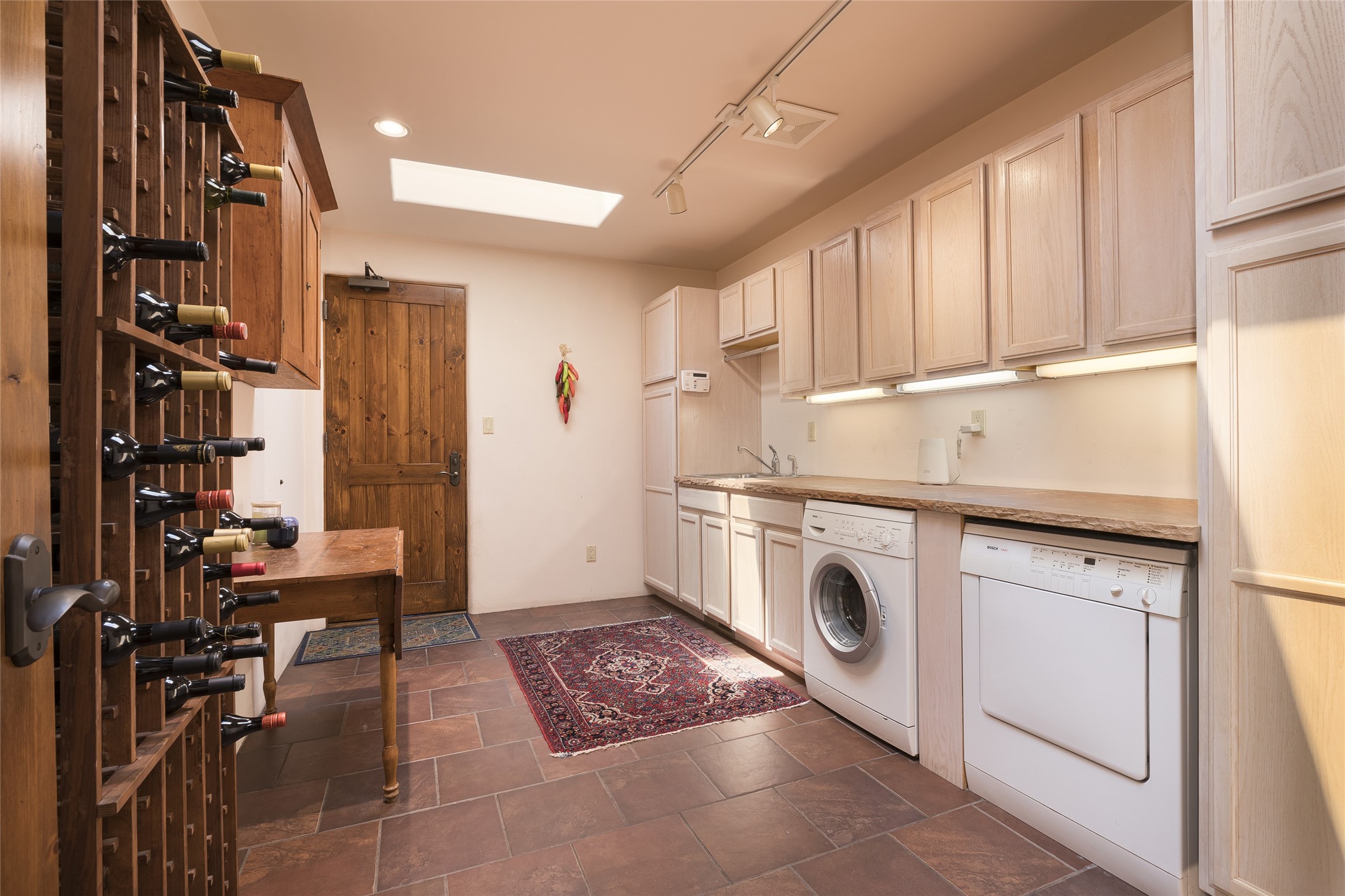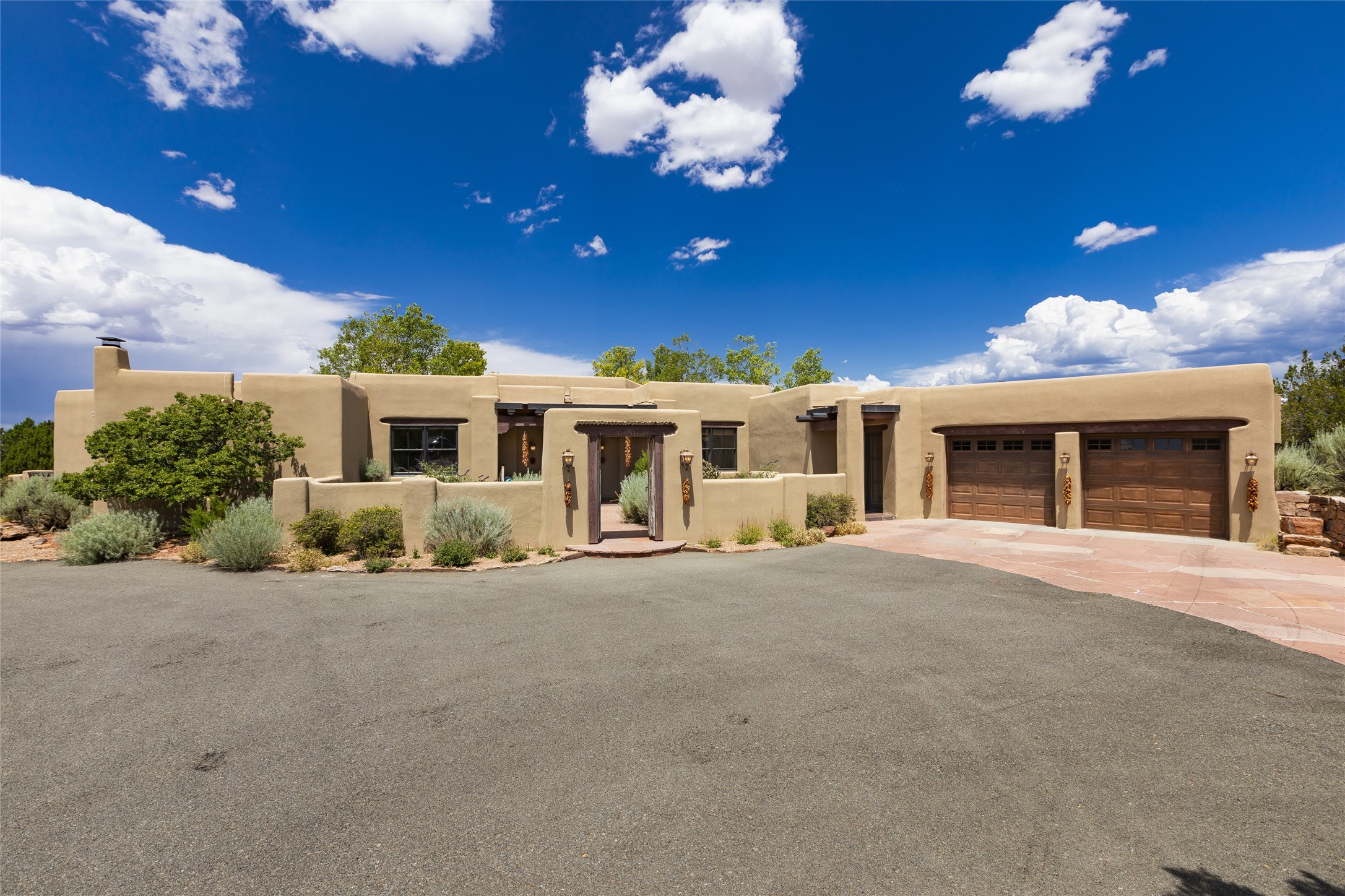 Timeless Santa Fe architecture, spectacular Sangre de Cristo and Jemez Mountain views, and superior outdoor living areas are celebrated at this exciting residence built by renowned builder, Michael Kern. Centrally located within the master planned community of Las Campanas, minutes to the Plaza and The Club at Las Campanas, this exquisite home impresses with exceptional design and the highest level of craftsmanship throughout. Designed to embrace the ultimate Santa Fe lifestyle, this quality single level home offers an excellent separation of space, with a private owner's suite complete with a fireplace, portal access, a tranquil spa-like bath with a jetted tub, dual vanities, walk-in shower and a large walk-in closet. Guests enjoy their own separate guest wing complete with two ensuite bedrooms with Sangre De Cristo Mountain views, private portals and separate entrances. Located off the front entrance is a well-appointed office or ideal fourth bedroom, with custom built-in cabinetry and courtyard views. The spacious chef's kitchen, ideal for entertaining, delights with luxury appliances including a 6-burner gas range with a griddle and double ovens, a free-standing island, and a breakfast bar, all of which open to the spacious living room with a grand fireplace, dining room, and all outdoor living areas. The outdoor living experience is enhanced by deep surround portals, a park-like setting, fully enclosed front and back walled courtyards with an outdoor built-in BBQ, water feature, and expansive back outdoor dining with views of the Sangre de Cristo Mountains. Luxury finishes include plaster walls, rich wood ceiling accents with vigas and corbels throughout, 22 skylights, and rare old-world craftsmanship throughout this one of kind residence. The owner's Equity Golf Membership to The Club at Las Campanas is available for purchase on a separate bill of sale.