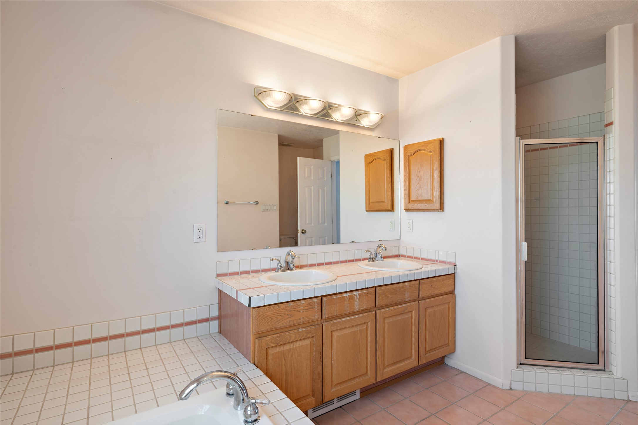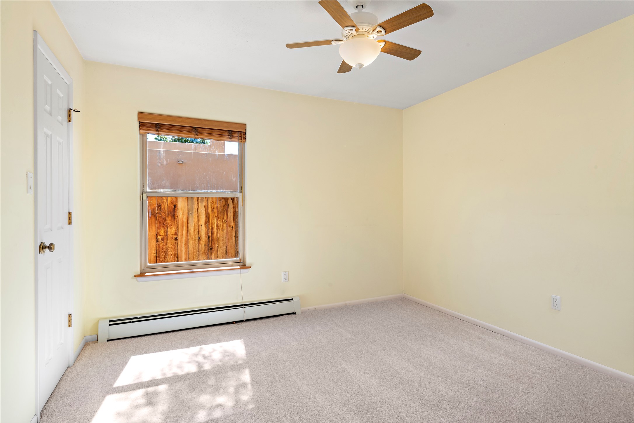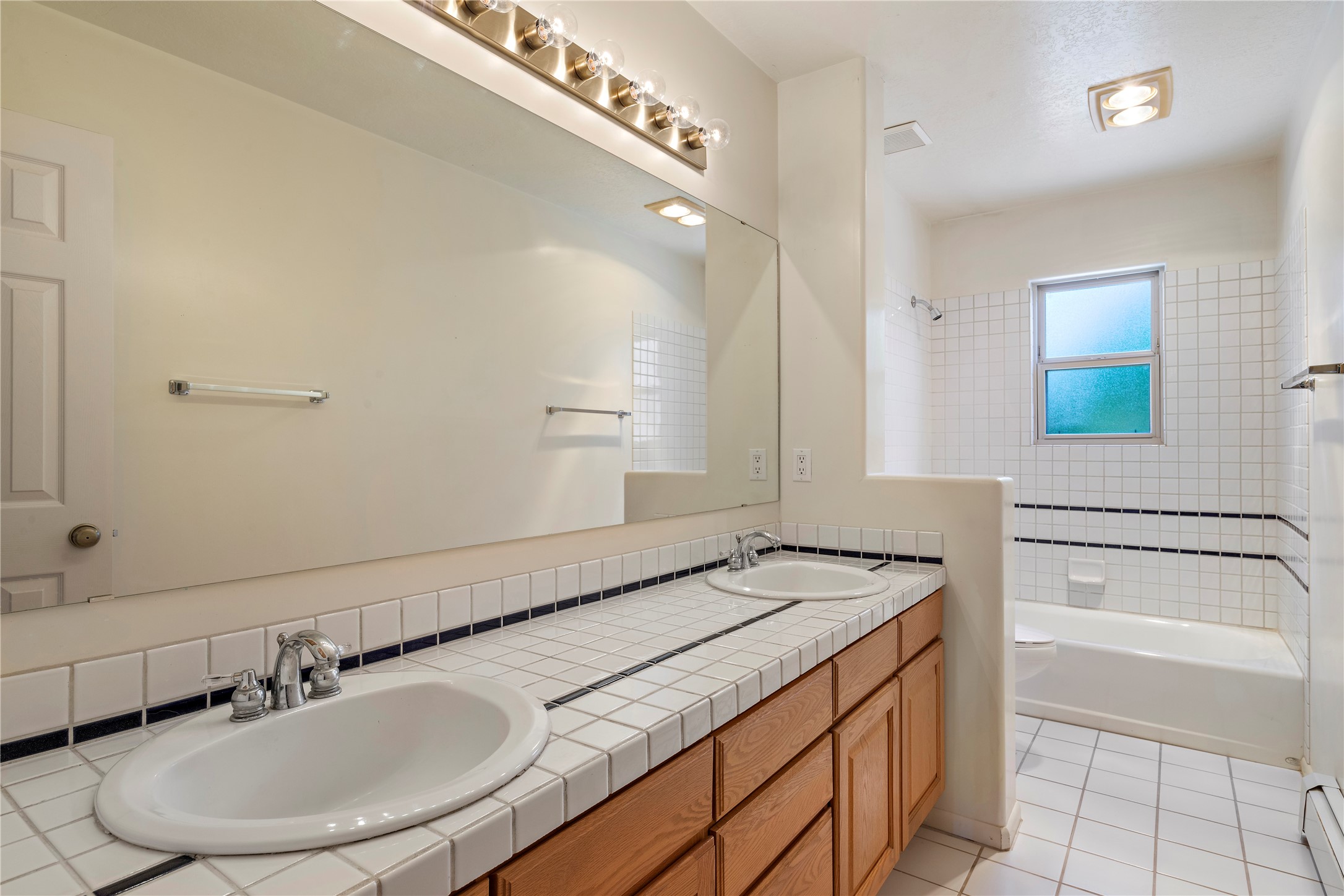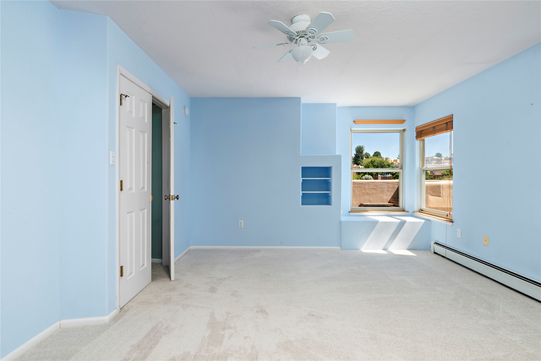 Good cheer abounds in this light-filled, Chapman-built home in Pueblos del Sol. Traditional touches such as Saltillo tile, nichos, a corner kiva and handsome vigas ground the home in Southwestern style, while the tall ceilings and many windows keep the overall feeling light and airy. The tidy kitchen is outfitted with granite countertops, stainless steel appliances, a brand-new gas stove, and plenty of storage. The Primary Suite has a walk-in closet, window seat, and ensuite bath with separate tub and shower. The adjacent office accesses a deck making the upper story a true, private retreat. Low-maintenance landscaping in front and rear includes mature trees and a fully-fenced backyard that backs up to open space. Enhanced with all new carpet, evaporative cooling and many sweet details, this custom home is not-too-close to the highway and near miles of walking trails.