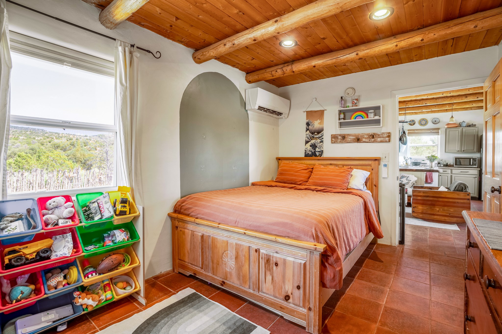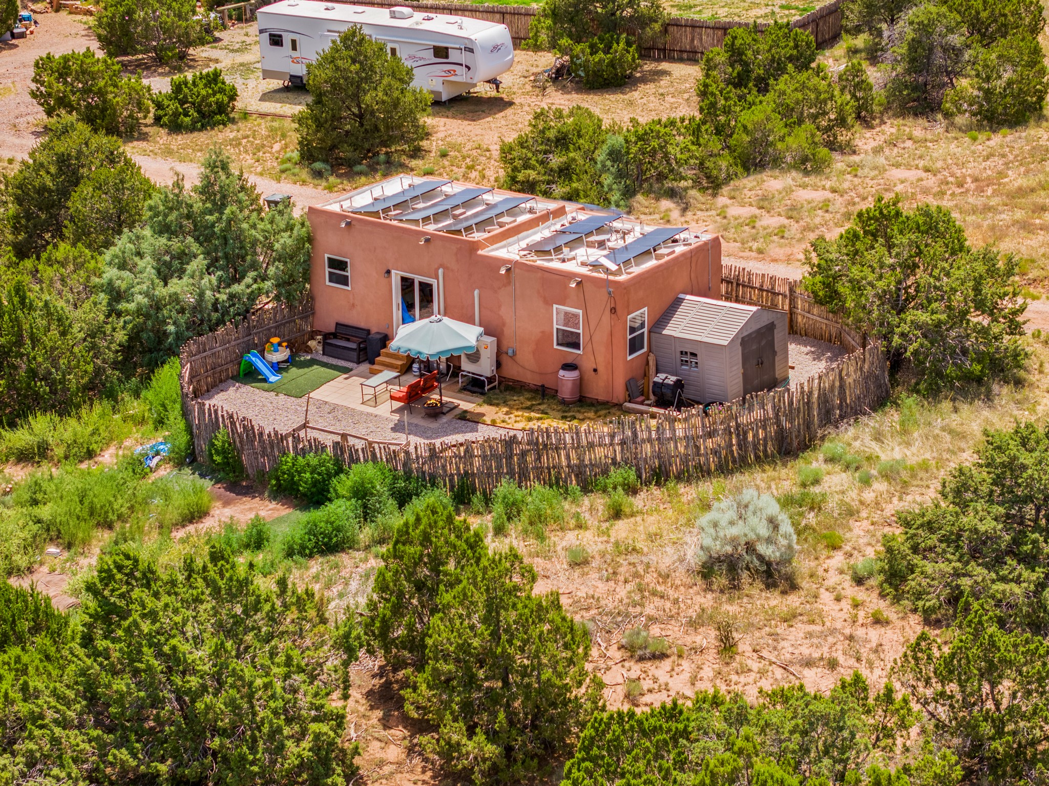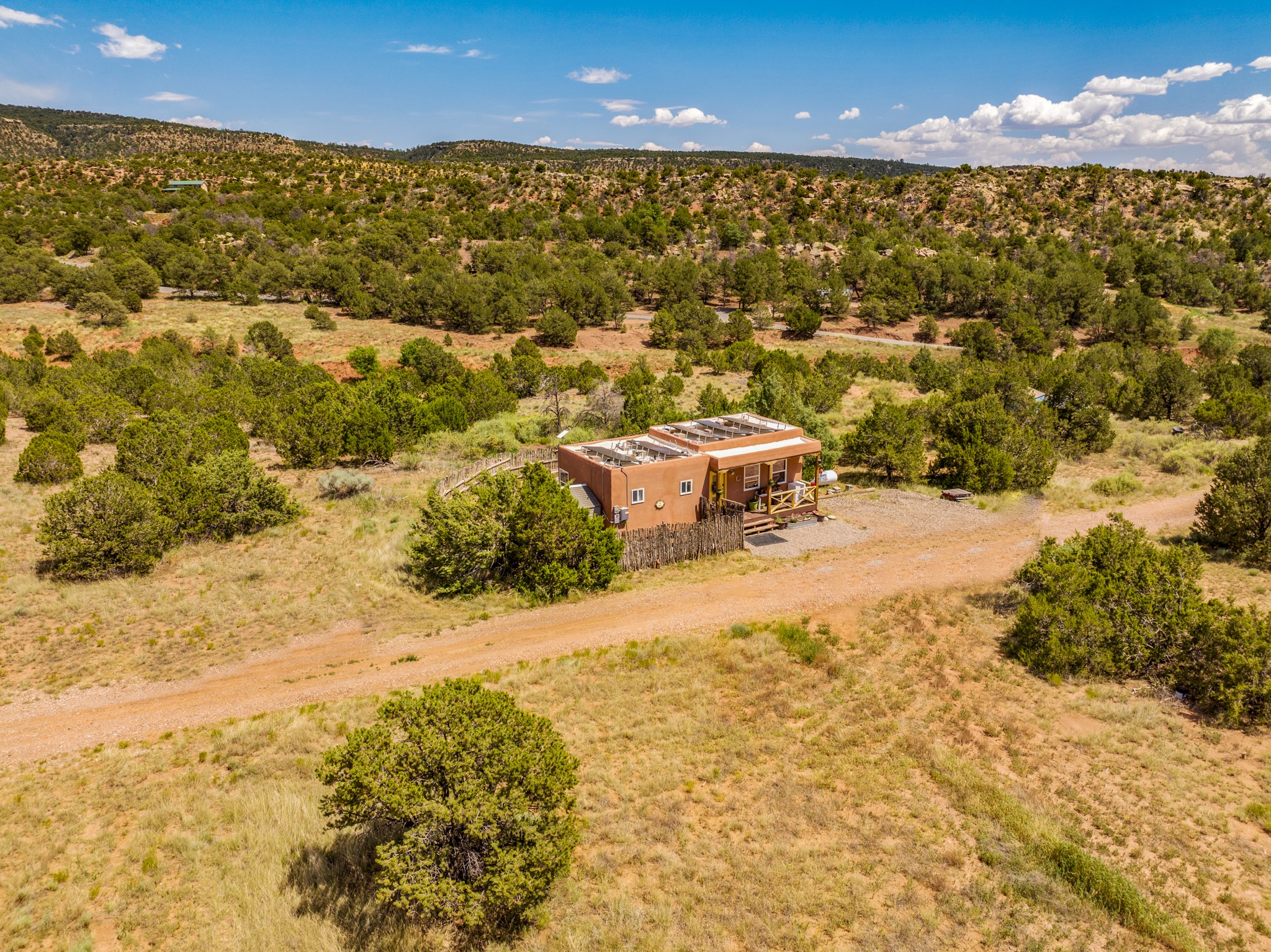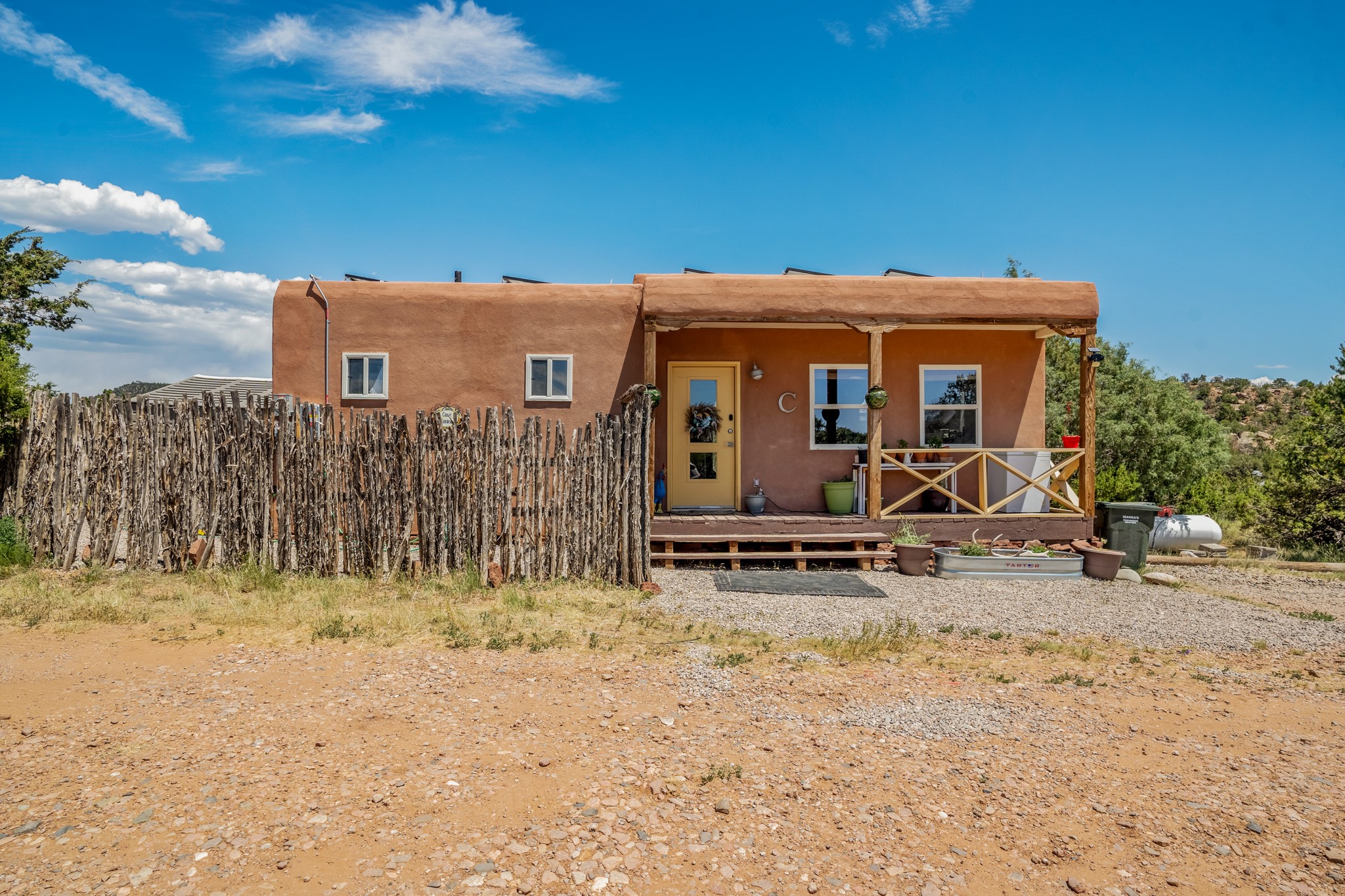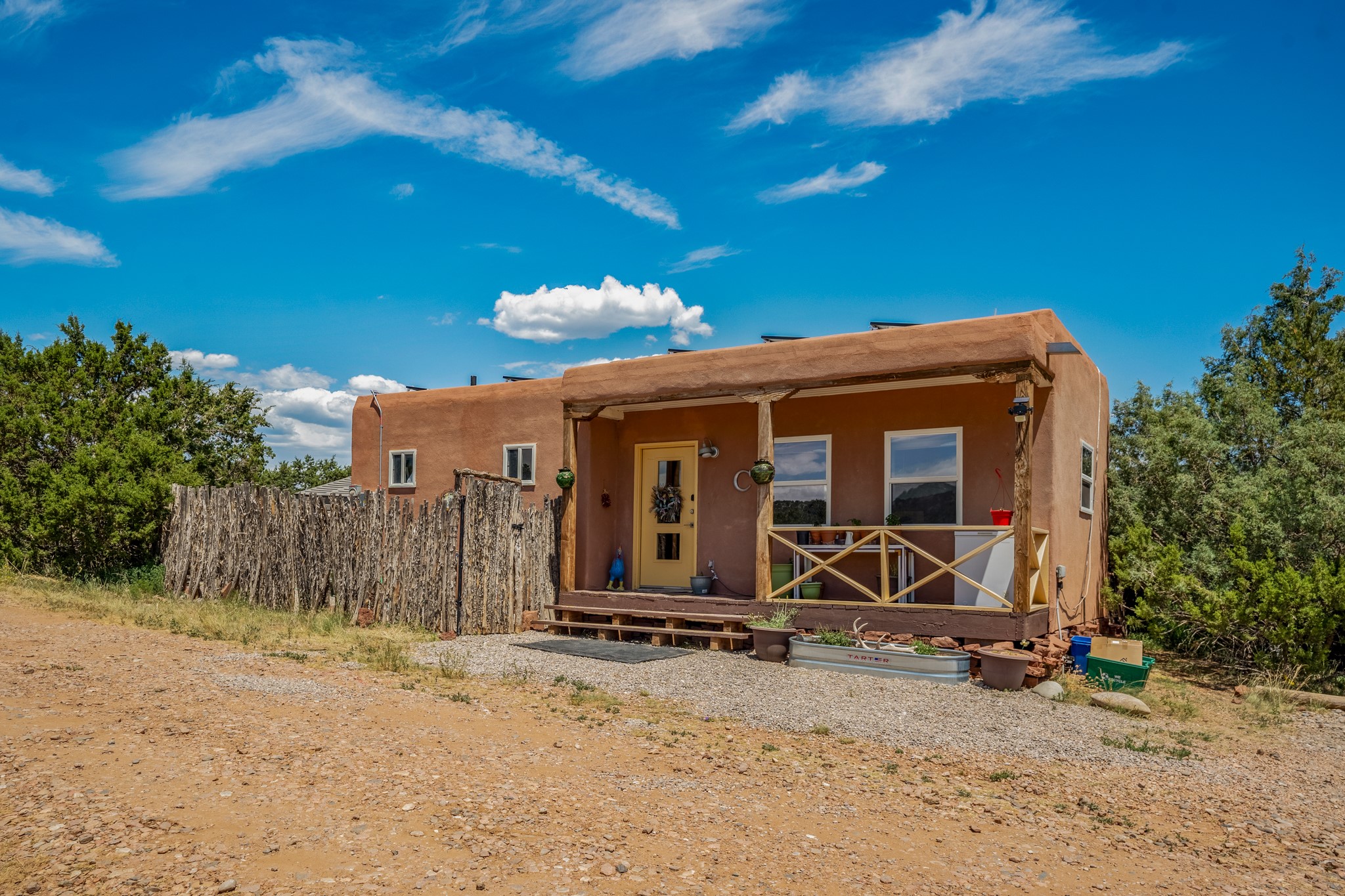 A Charming Casita on 5 acres in beautiful Canoncito adjacent Pecos National Historical Park open space with views that are here to stay! One bedroom, one bathroom with tile floors and vigas, covered front porch. New solar system and mini-split units. Newly landscaped latilla fenced backyard with garden and 3 storage sheds. Artesian well with new pump is shared with 2 neighboring properties on Ranchos Canoncito. Live in this eventual investment property while building your dream home. Horses are allowed. Miles of hiking trails on El Dorado Community Prese. rve. A 10 minute drive to Santa Fe restaurants and amenities, come enjoy the peaceful surroundings of this home and land.