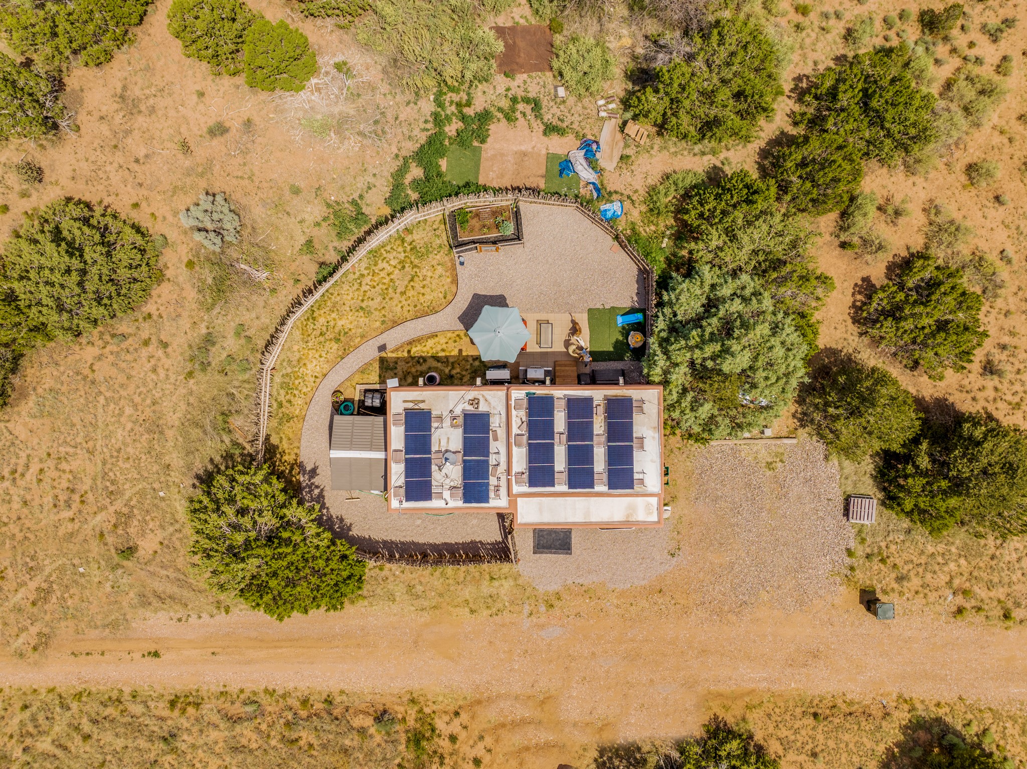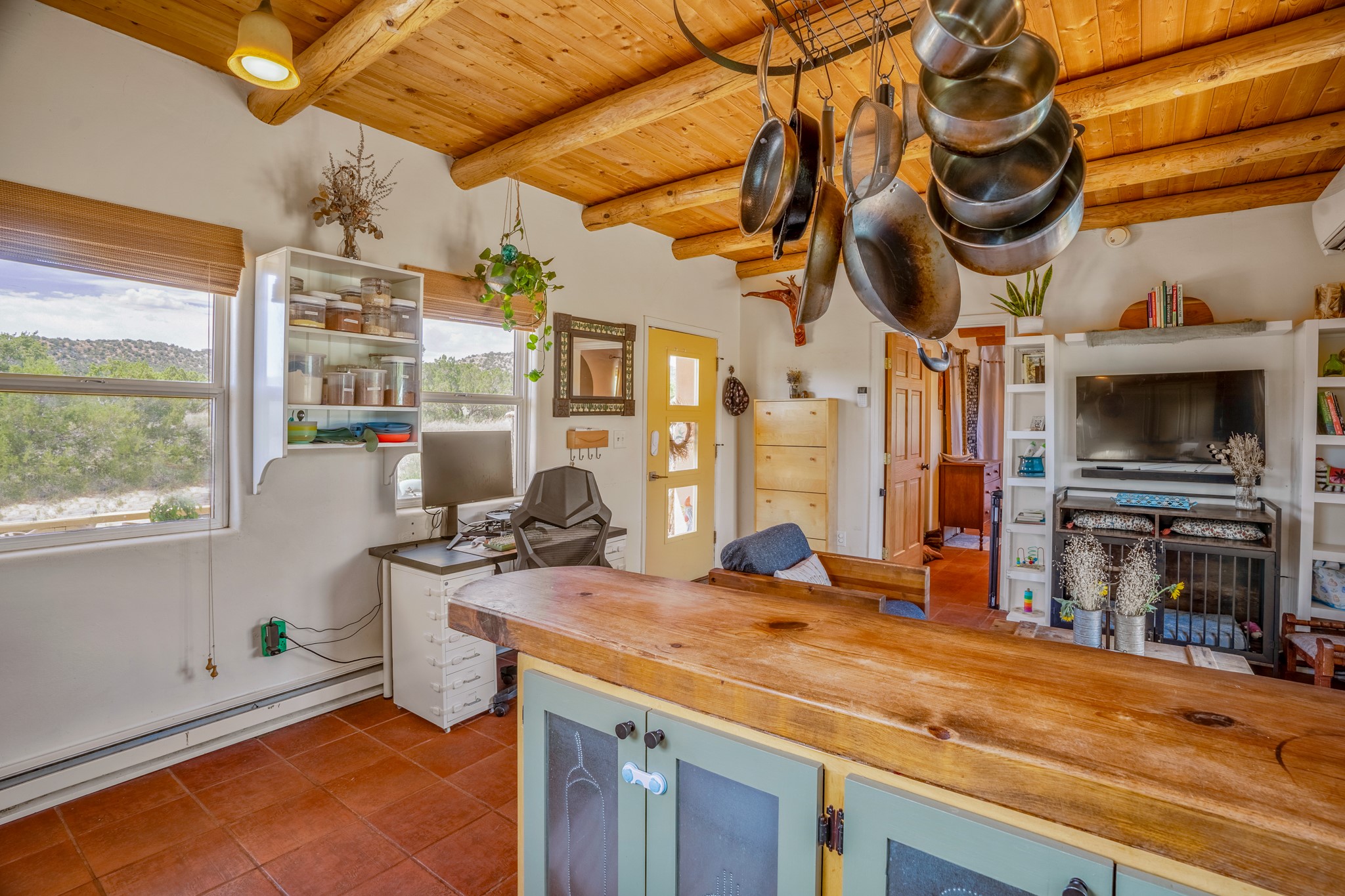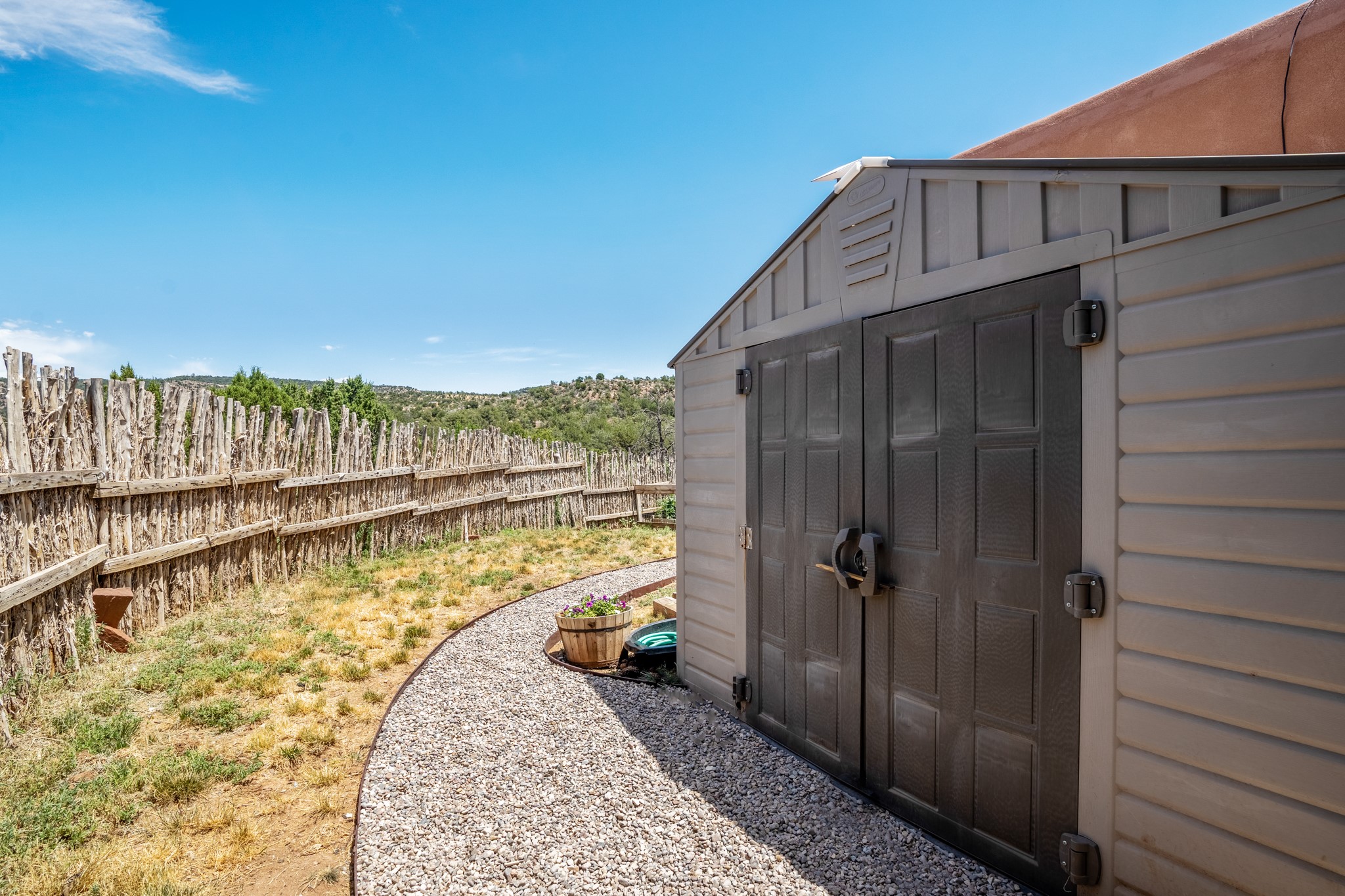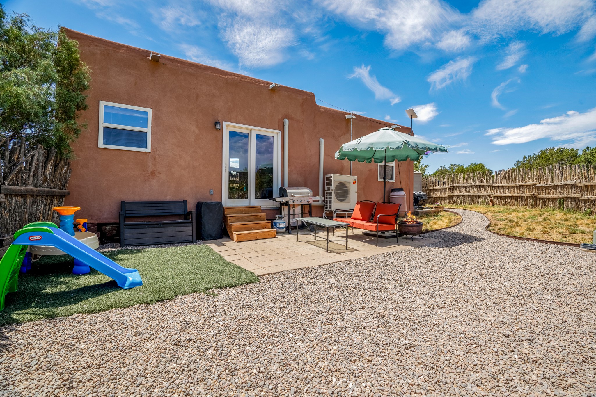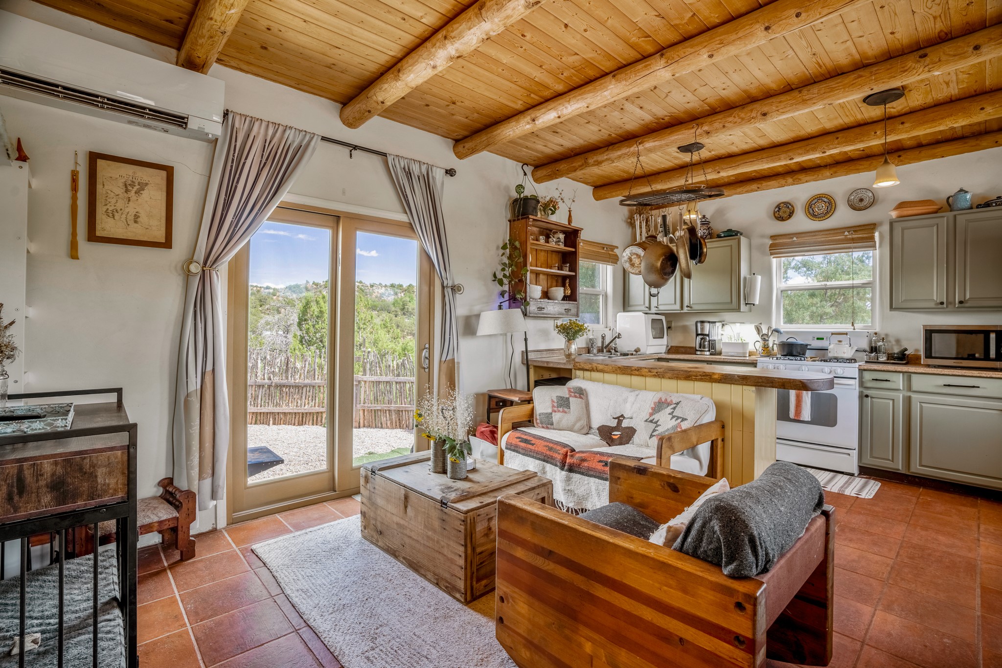 A Charming Casita on 5 acres in beautiful Canoncito adjacent Pecos National Historical Park open space with views that are here to stay! One bedroom, one bathroom with tile floors and vigas, covered front porch. New solar system and mini-split units. Newly landscaped latilla fenced backyard with garden and 3 storage sheds. Artesian well with new pump is shared with 2 neighboring properties on Ranchos Canoncito. Live in this eventual investment property while building your dream home. Horses are allowed. Miles of hiking trails on El Dorado Community Prese. rve. A 10 minute drive to Santa Fe restaurants and amenities, come enjoy the peaceful surroundings of this home and land.
