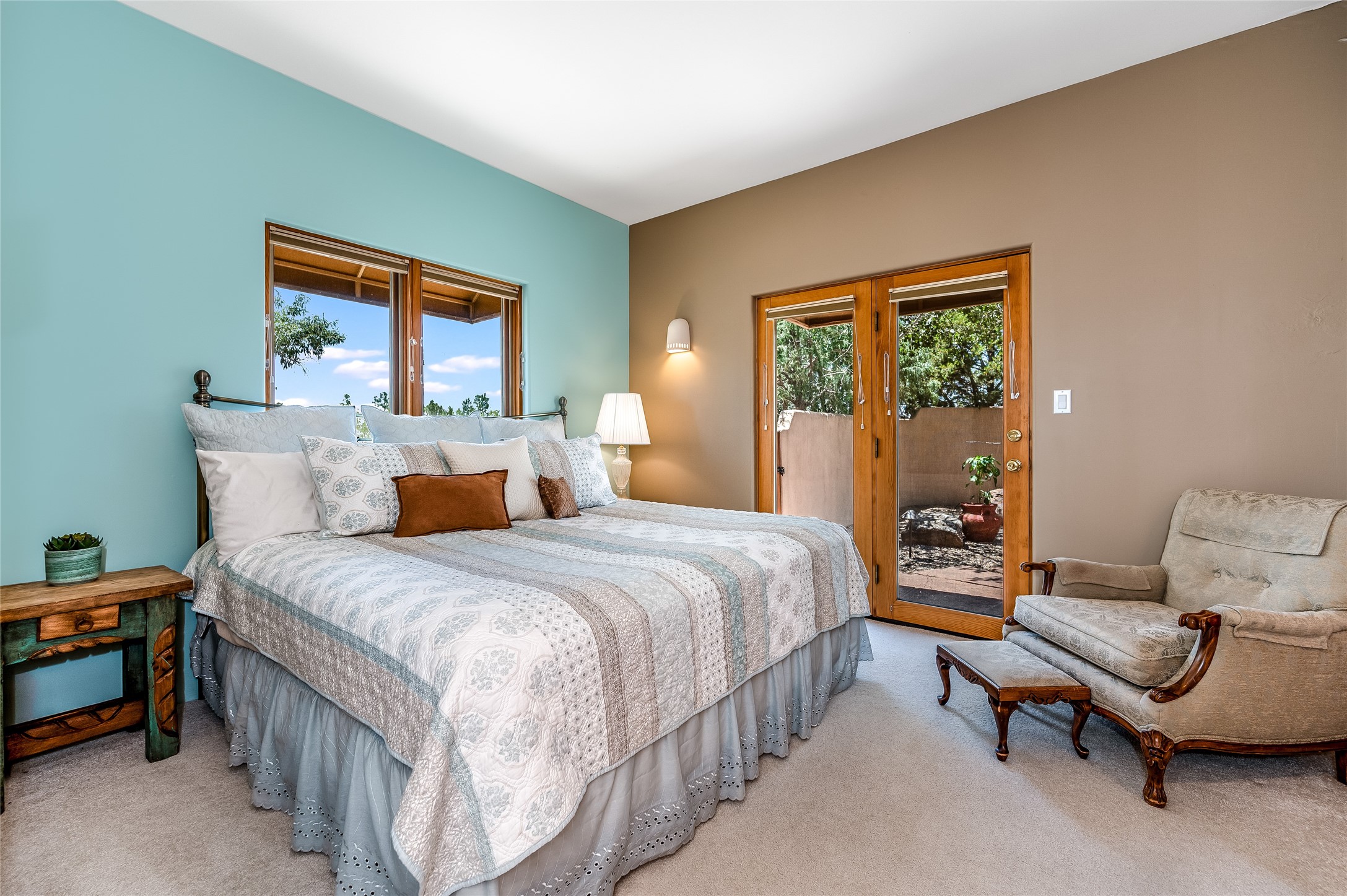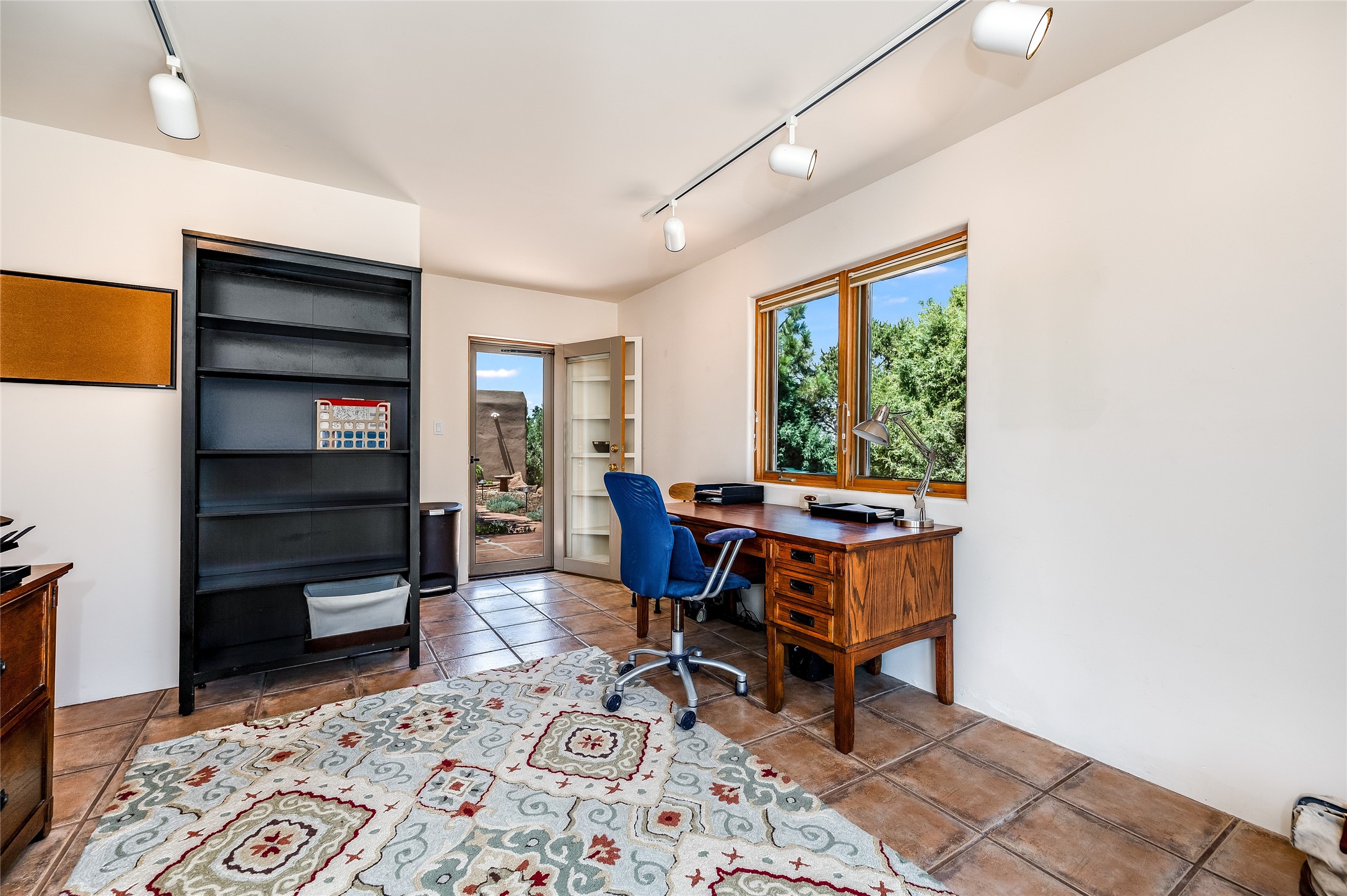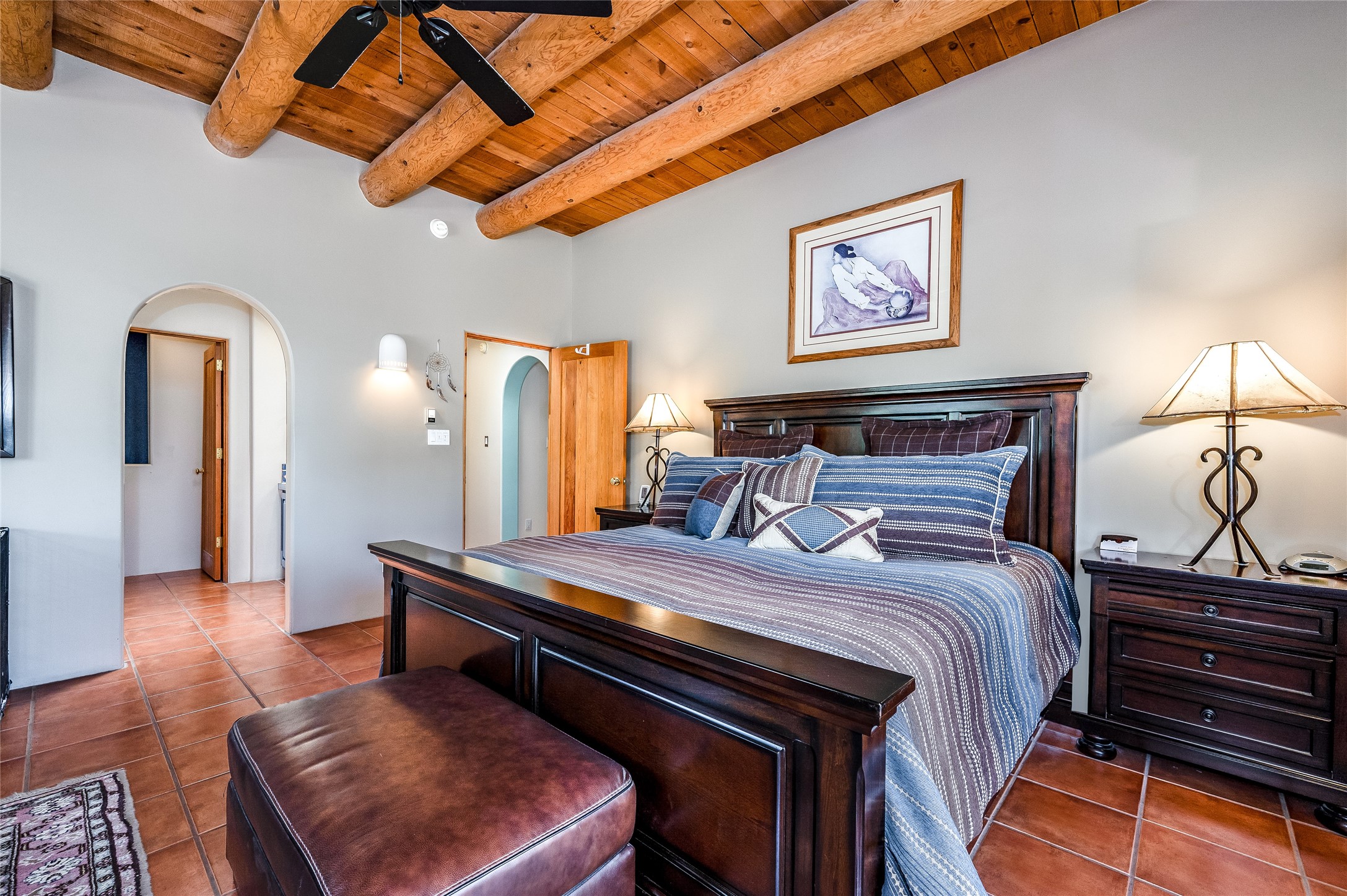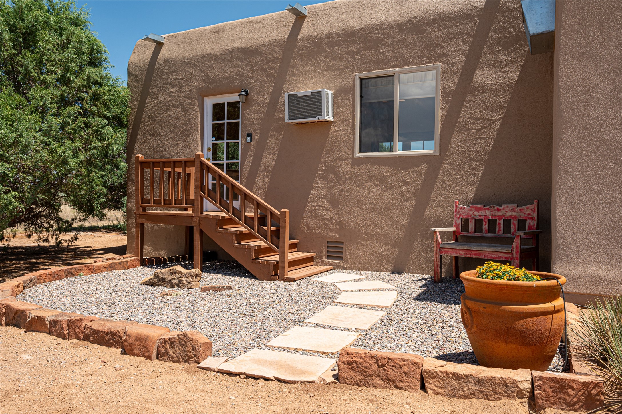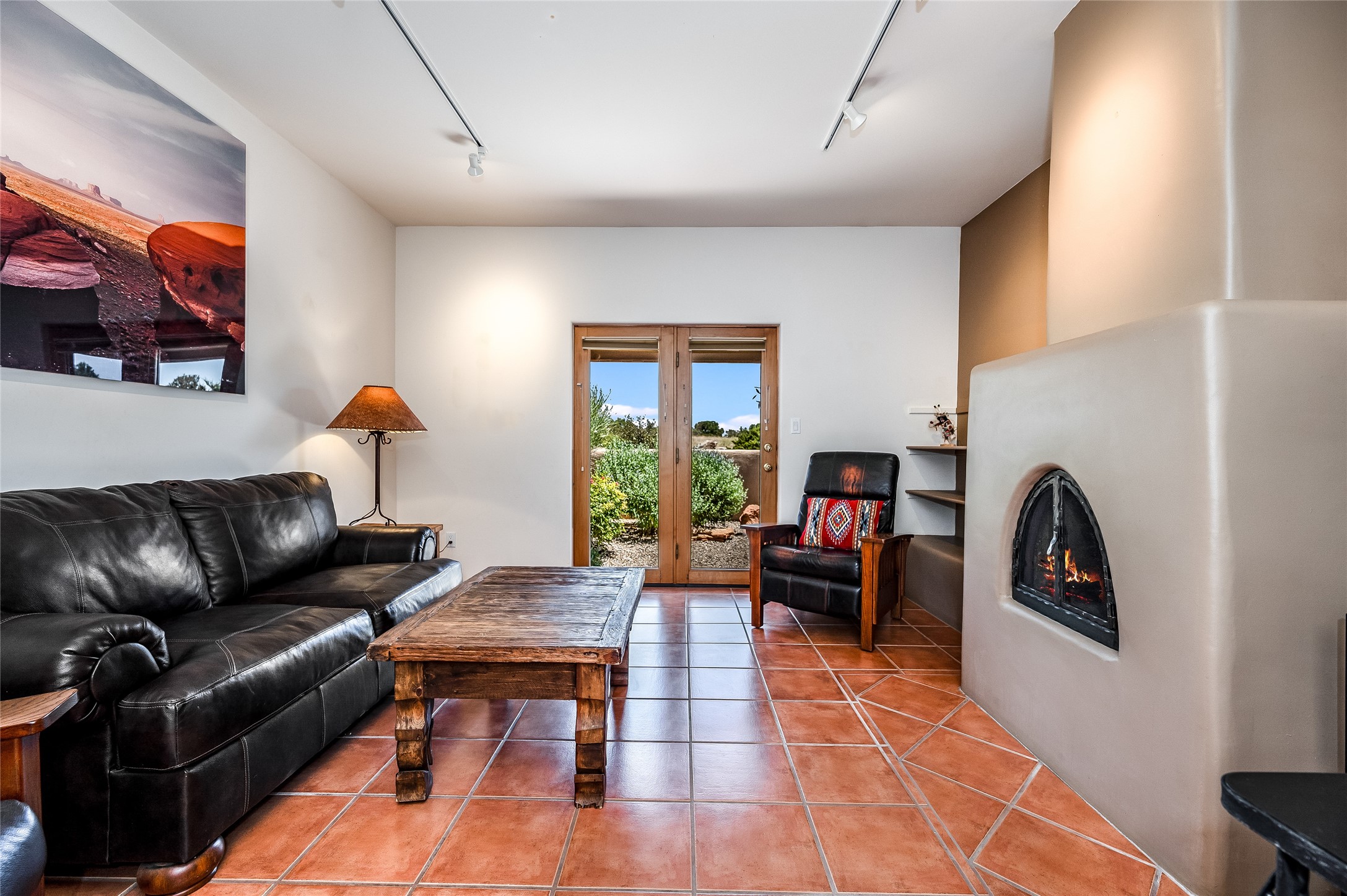 A quiet elegance and ambient symmetry flows throughout this exquisite Eldorado home. It is a shining example of pueblo contemporary design custom built by Adobeworks Inc. An open plan, split 3 bedroom plus lovely den/library with Rumford style central fireplace. Spacious living room with high viga ceilings, gleaming Saltillo floors and traditional kiva fireplace. Spacious kitchen with pantry and informal dining lead out onto a large shady portal. The main house includes over 2470 sq.ft plus a heated studio with half bath plus a 2 car finished garage. Beautifully maintained and surrounded by mature lovingly cared for walled gardens create private relaxing spaces. There is a walkway leading to a lovely remodeled and expanded 762 sq.ft casita which will delight your guests and family visitors. The home and casita share fabulous mountain views and yet delightfully private and peaceful. On one and half acres this home accesses all that Eldorado amenities offer plus local shopping, library, restaurants and open trails yet only minutes into Santa Fe. A must see!