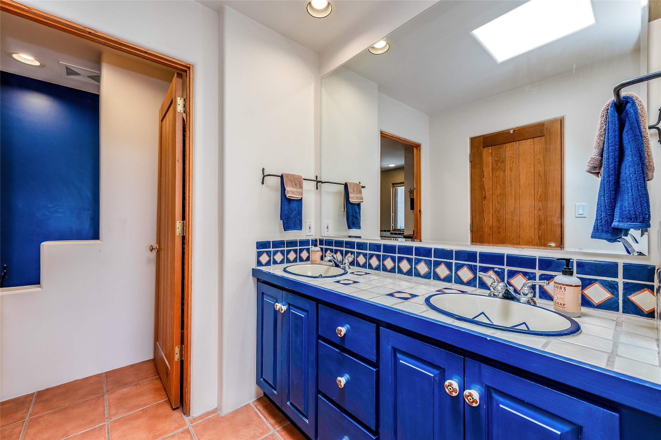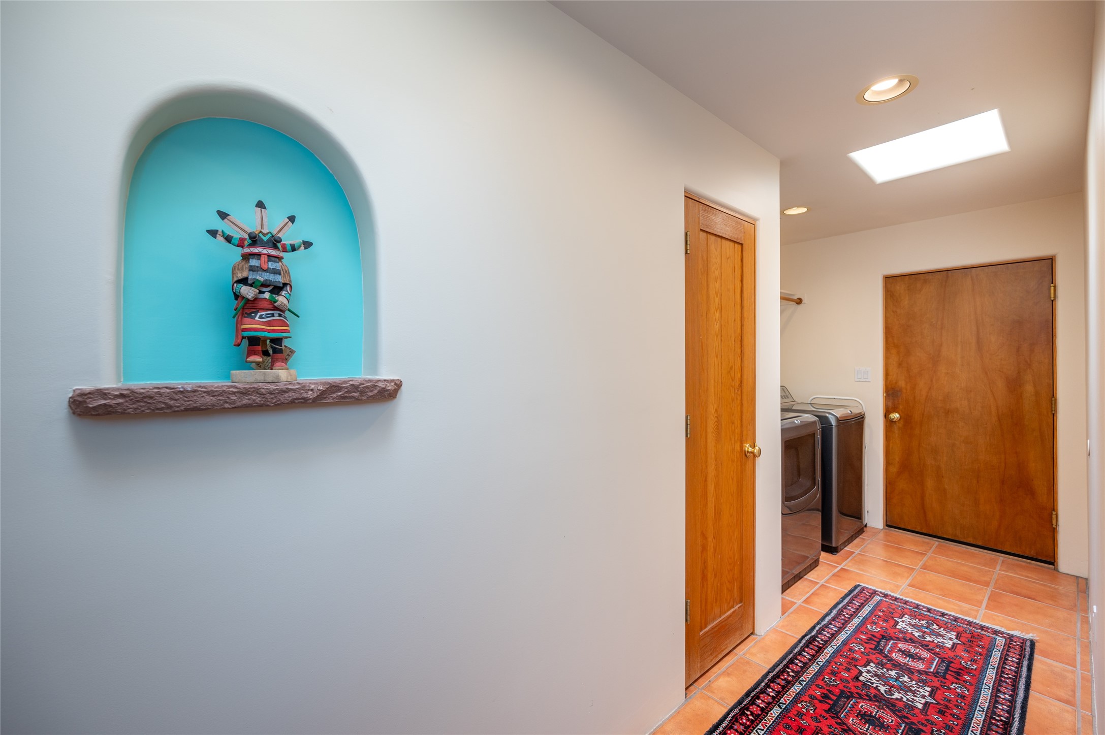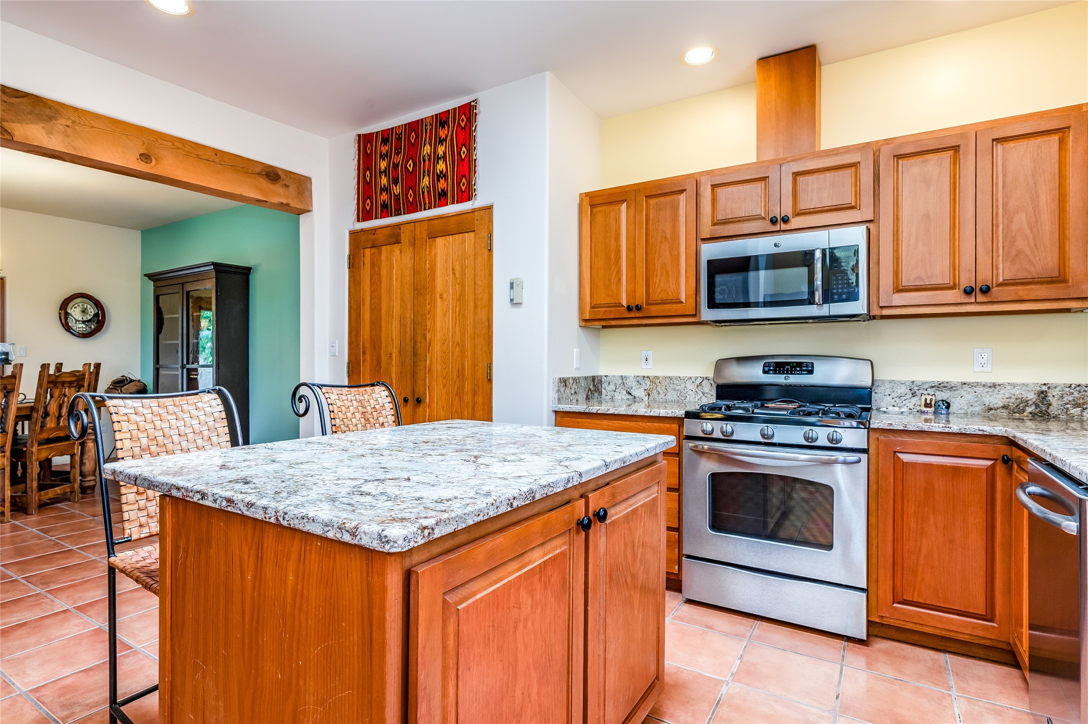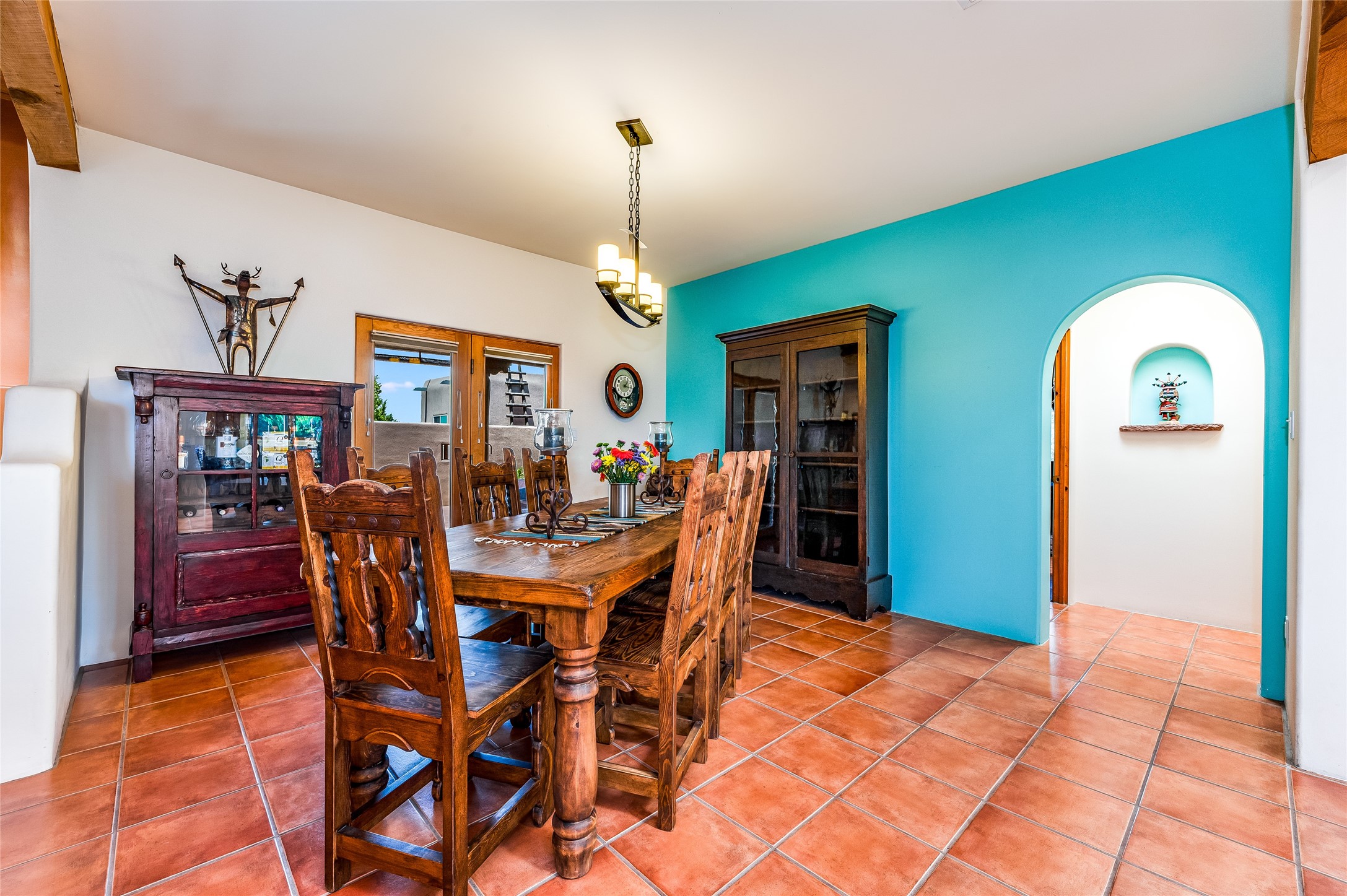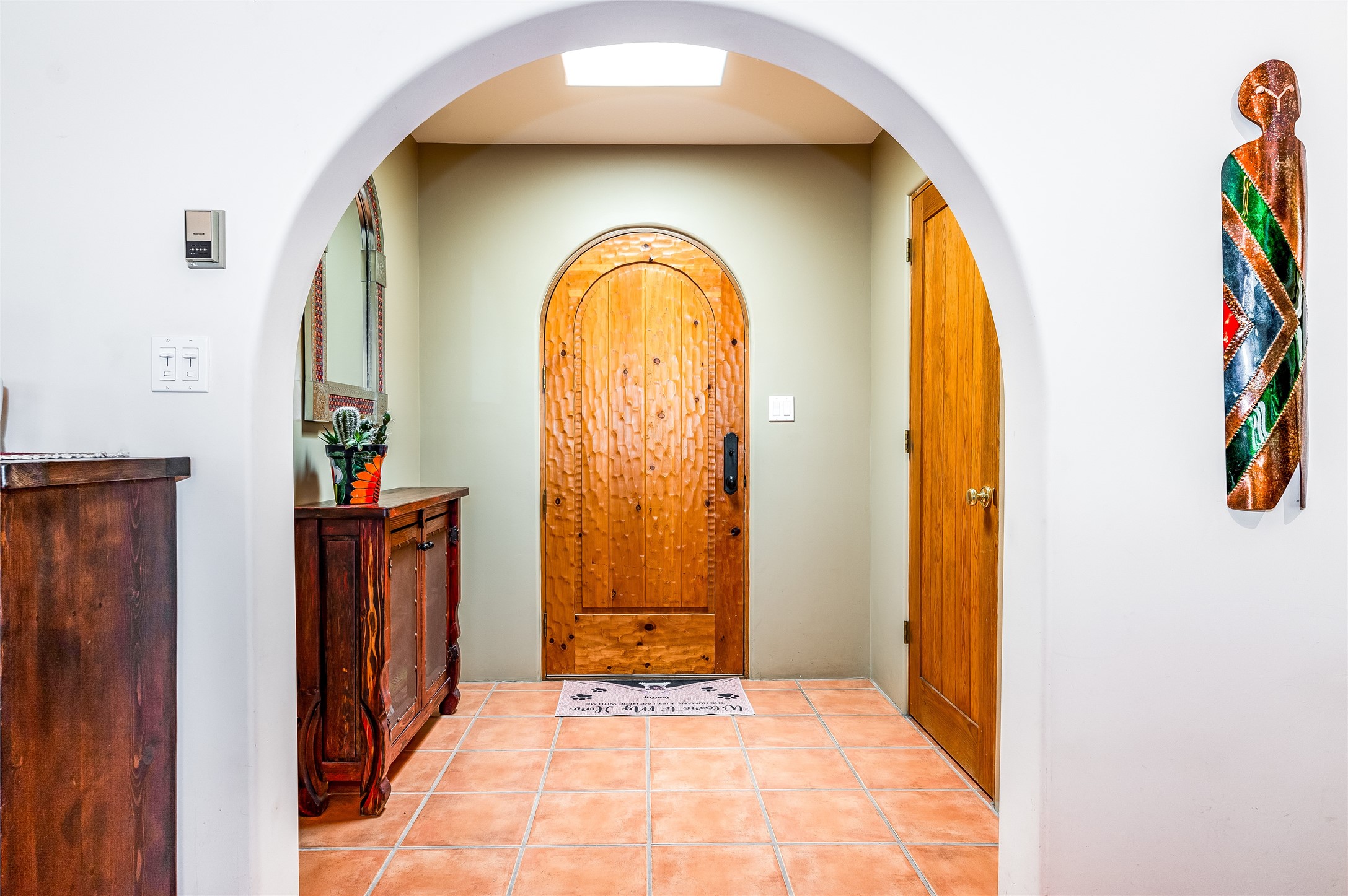 A quiet elegance and ambient symmetry flows throughout this exquisite Eldorado home. It is a shining example of pueblo contemporary design custom built by Adobeworks Inc. An open plan, split 3 bedroom plus lovely den/library with Rumford style central fireplace. Spacious living room with high viga ceilings, gleaming Saltillo floors and traditional kiva fireplace. Spacious kitchen with pantry and informal dining lead out onto a large shady portal. The main house includes over 2470 sq.ft plus a heated studio with half bath plus a 2 car finished garage. Beautifully maintained and surrounded by mature lovingly cared for walled gardens create private relaxing spaces. There is a walkway leading to a lovely remodeled and expanded 762 sq.ft casita which will delight your guests and family visitors. The home and casita share fabulous mountain views and yet delightfully private and peaceful. On one and half acres this home accesses all that Eldorado amenities offer plus local shopping, library, restaurants and open trails yet only minutes into Santa Fe. A must see!