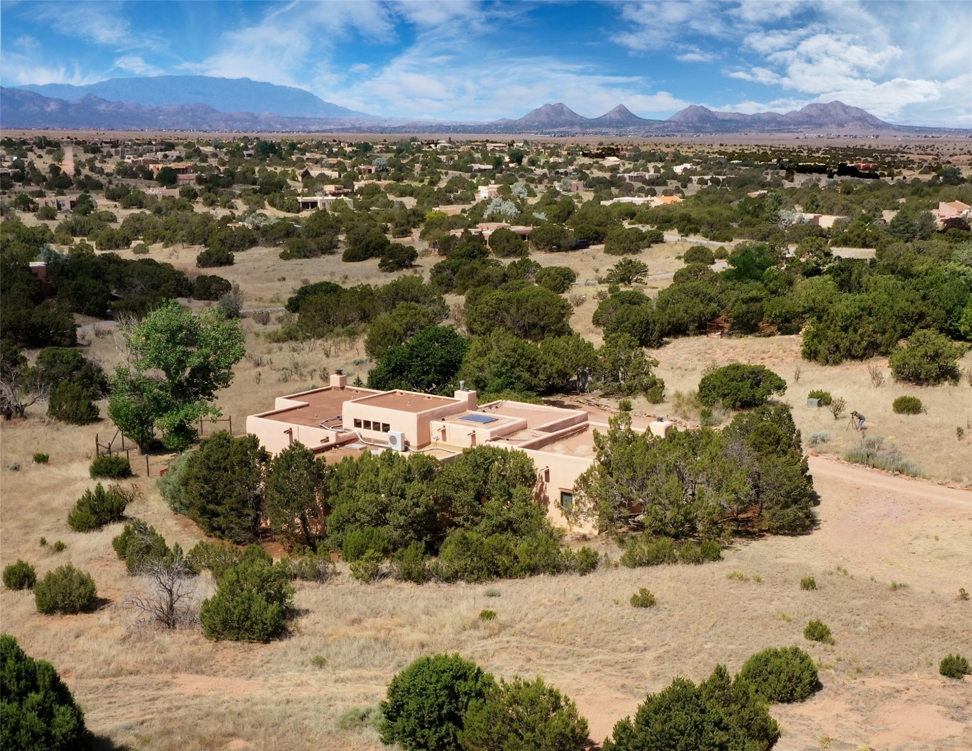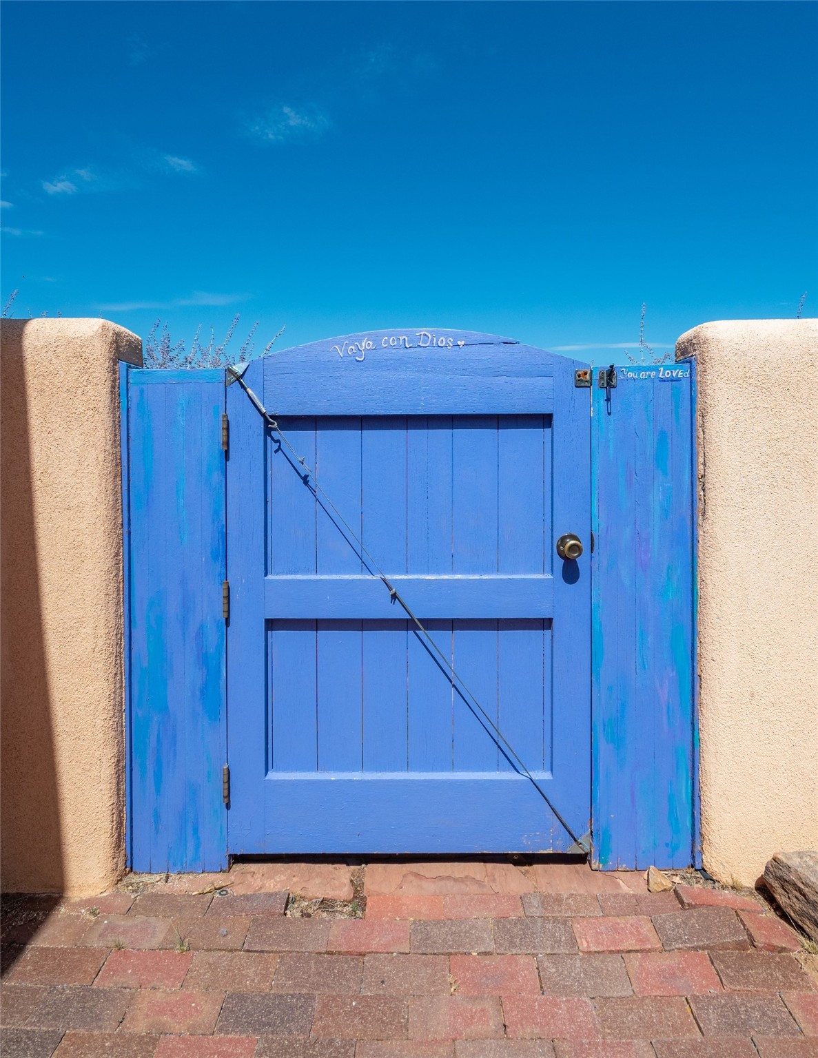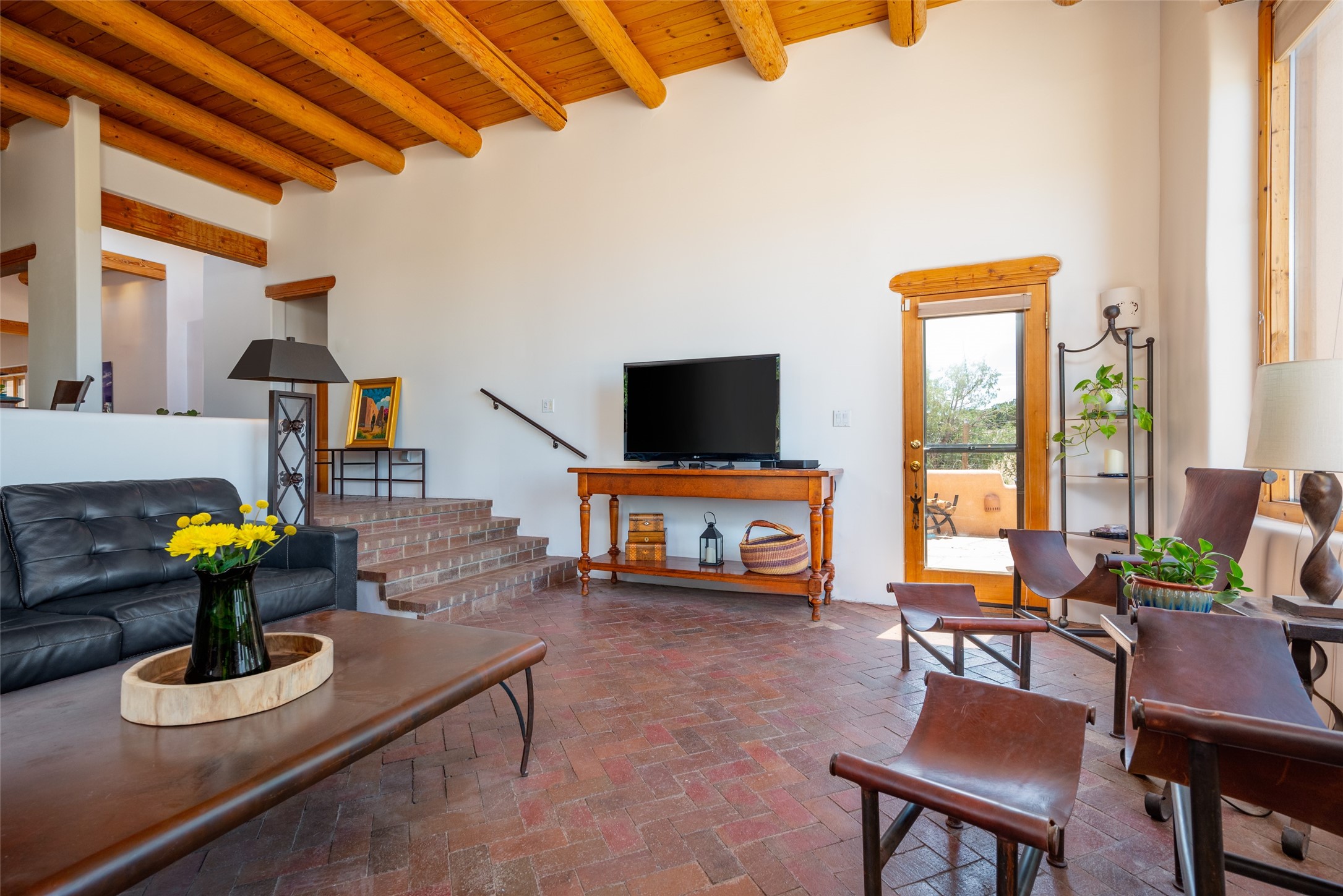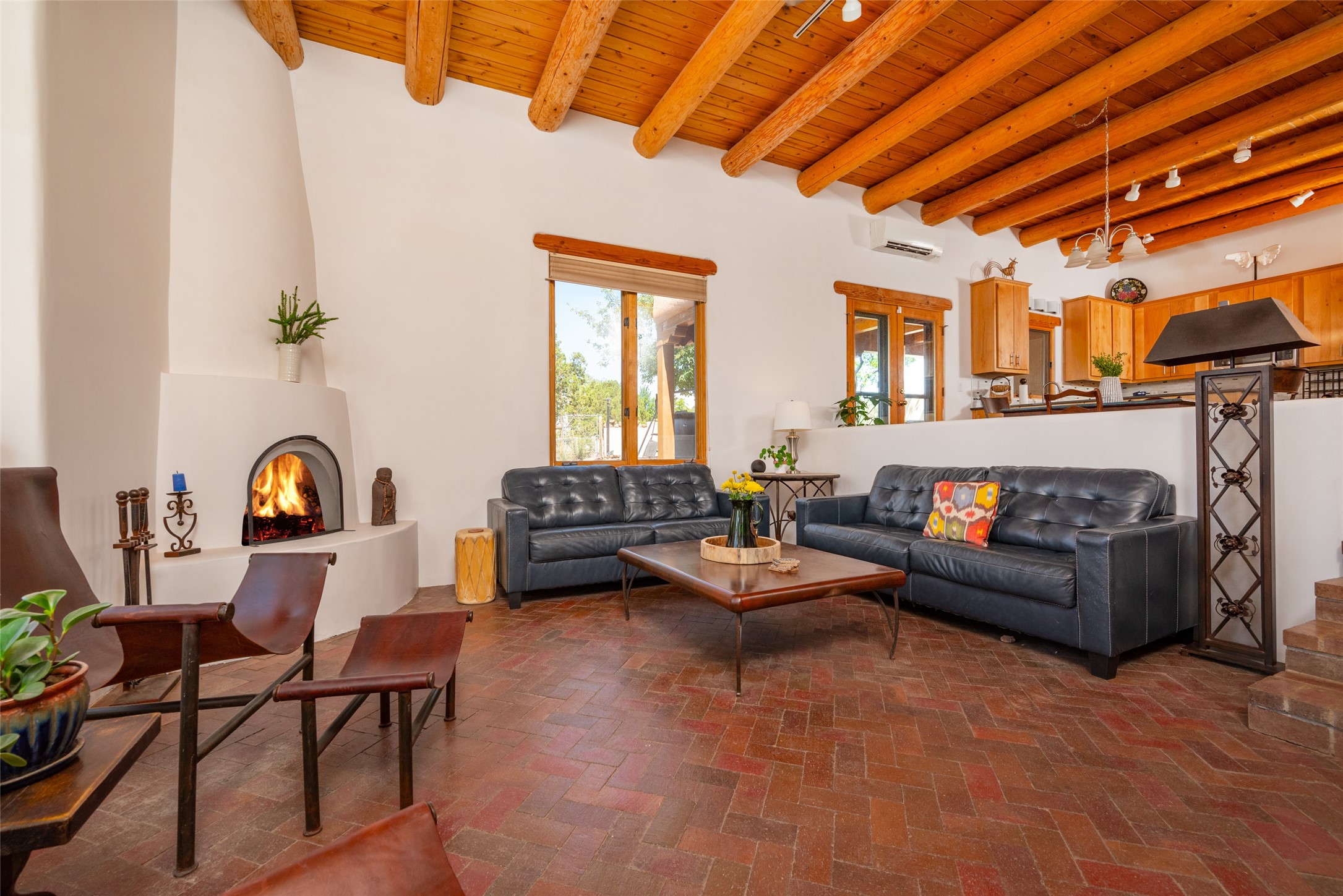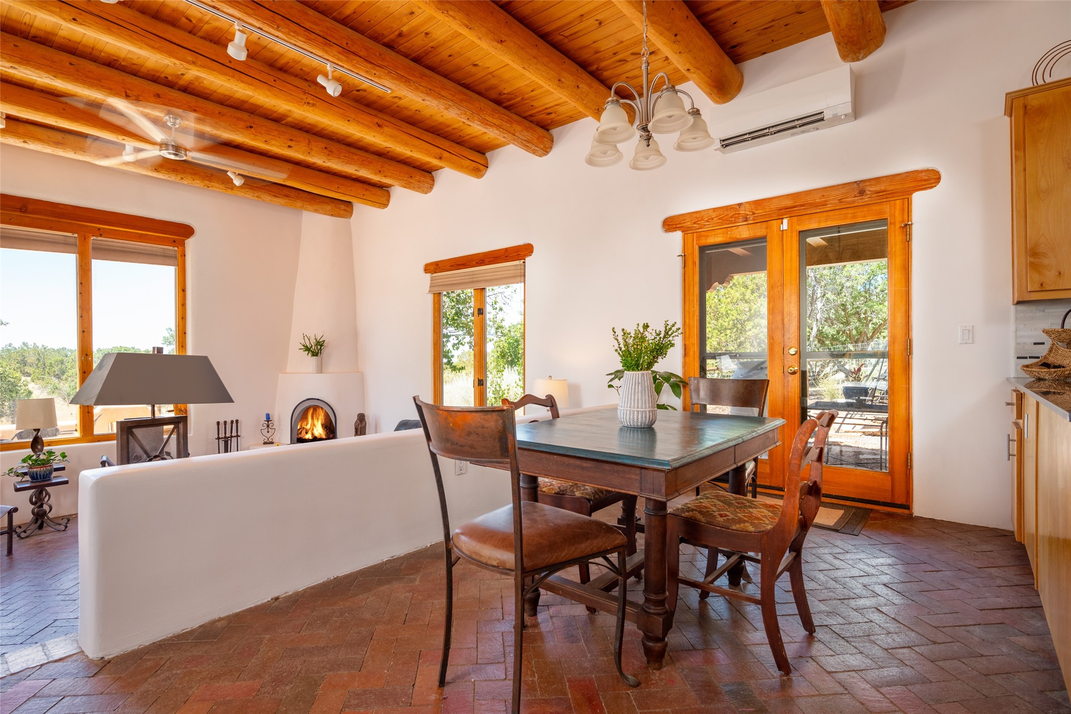 Enter the peaceful front courtyard, continue through the vintage Mexican carved doors into the dramatic entry with soaring ceilings This beautiful Eldorado home was built around 1991 . The previous owners added an addition to create a master bedroom with kiva fireplace. The home has brick floors throughout, large windows to take in the views and 2 additional courtyard spaces for outside enjoyment. The kitchen has been remodeled. There is great separation between the 4 bedrooms and 3 baths, with a choice of which bedroom you want to be the master, both lead to a courtyard. Don't miss this beautiful home.