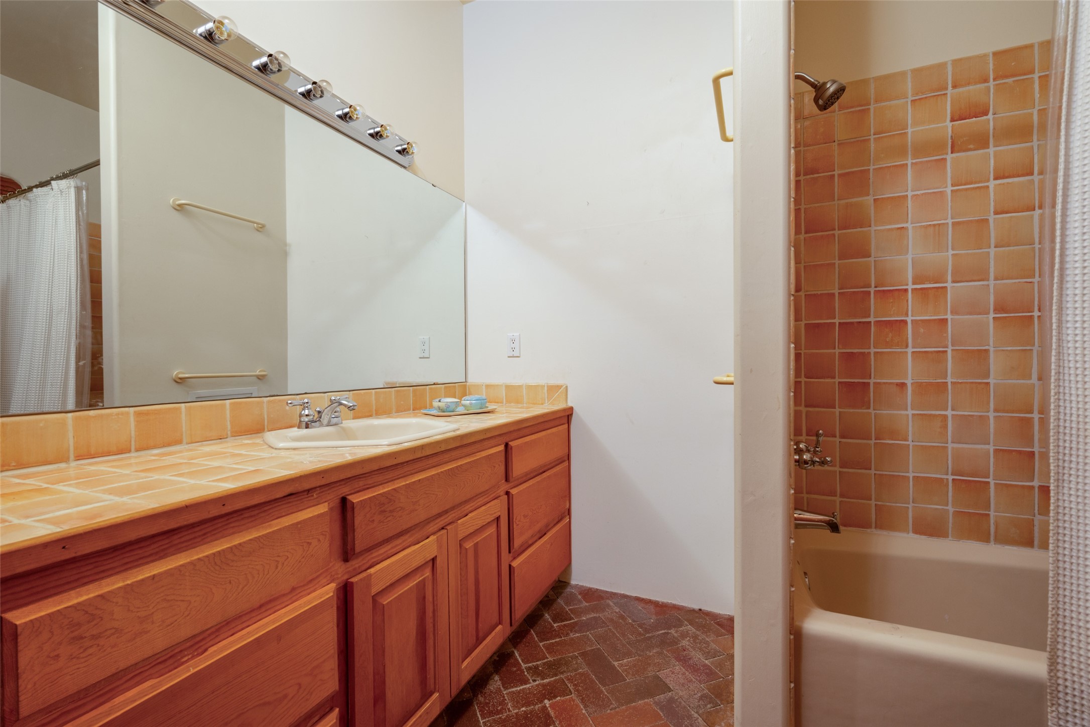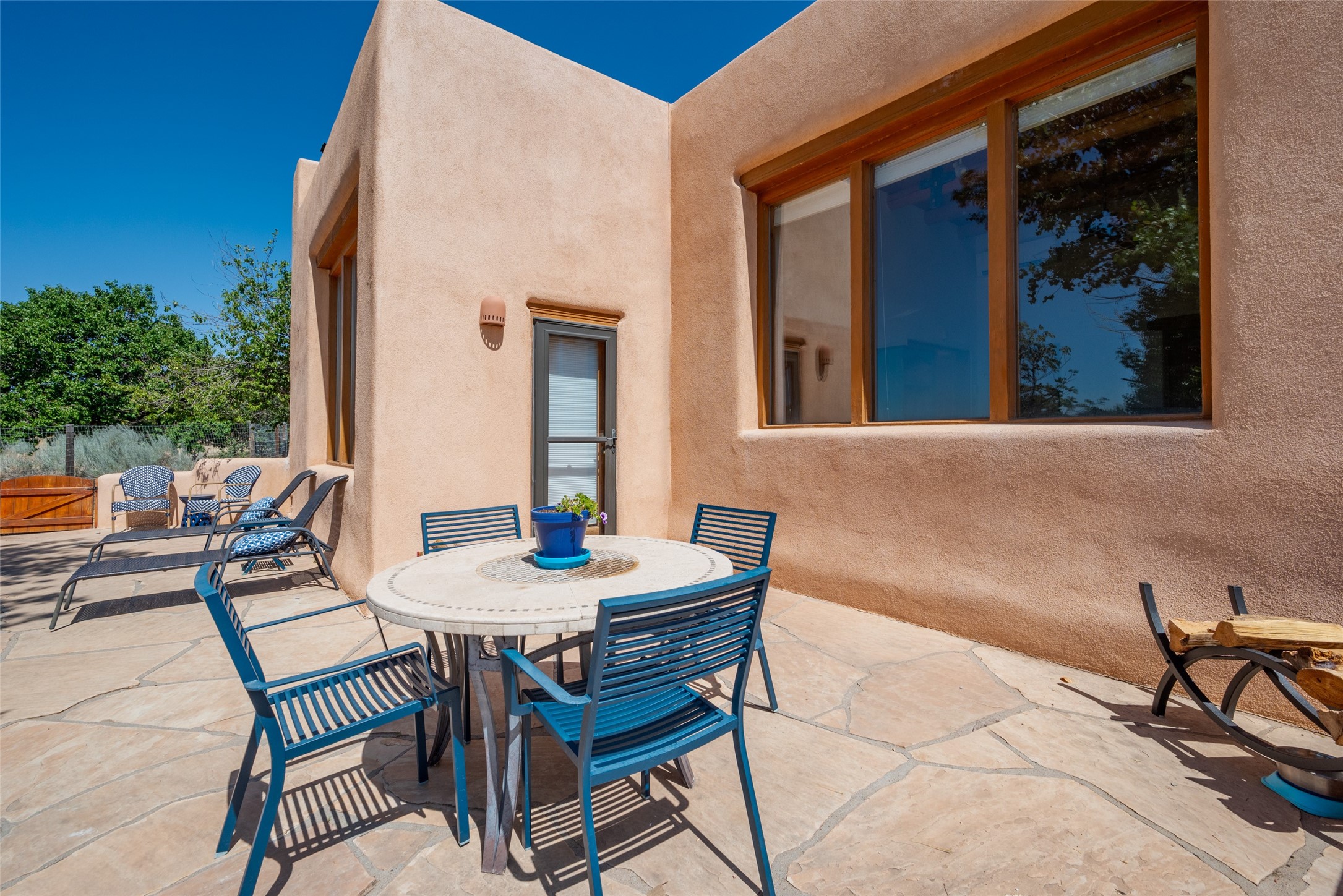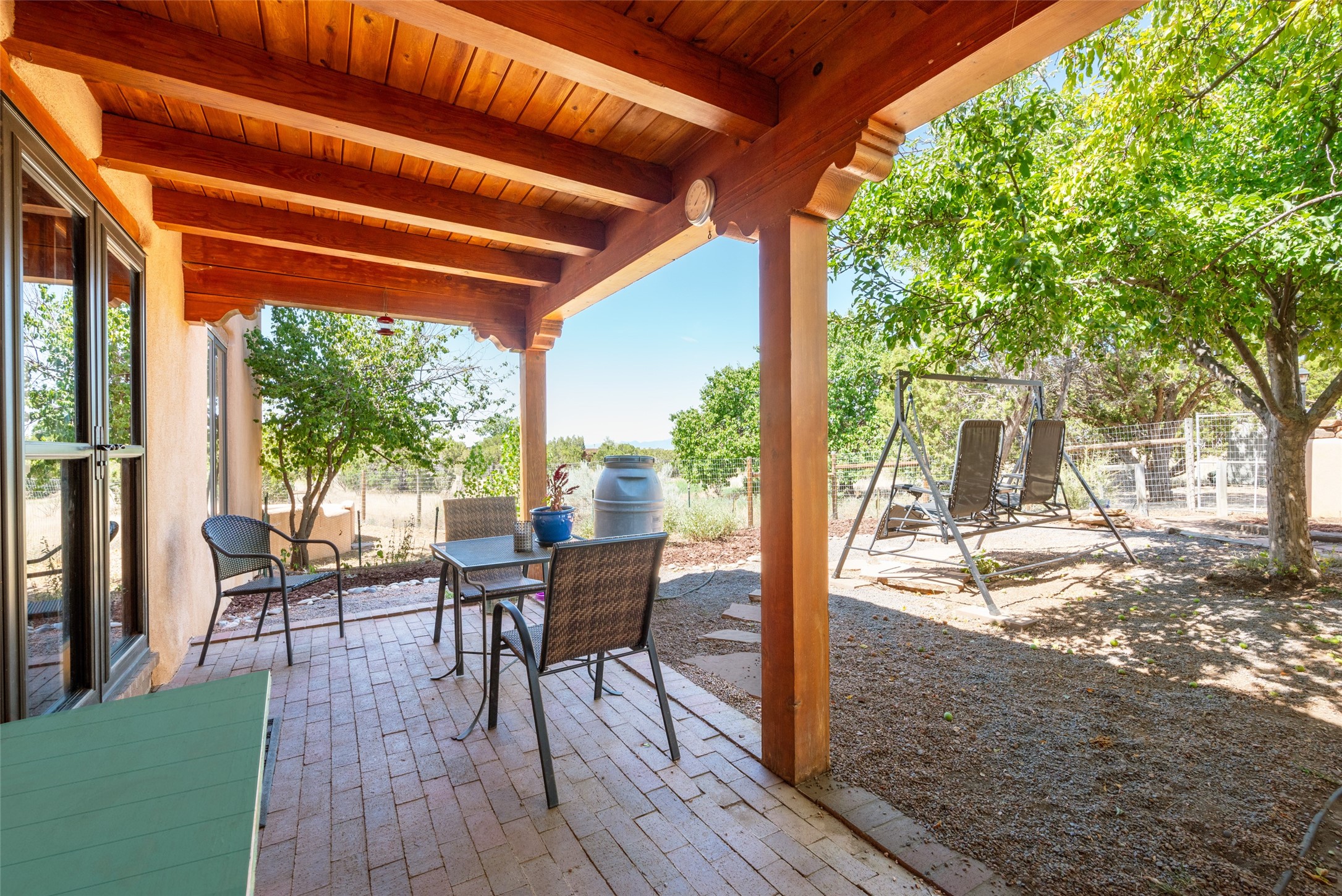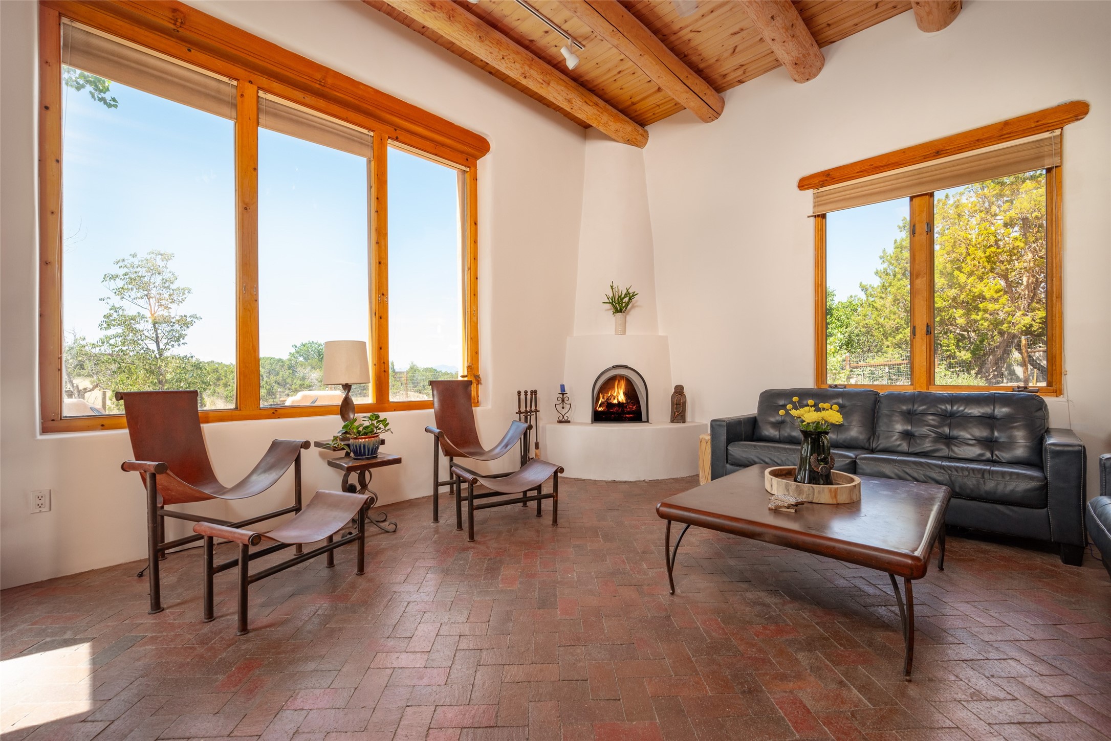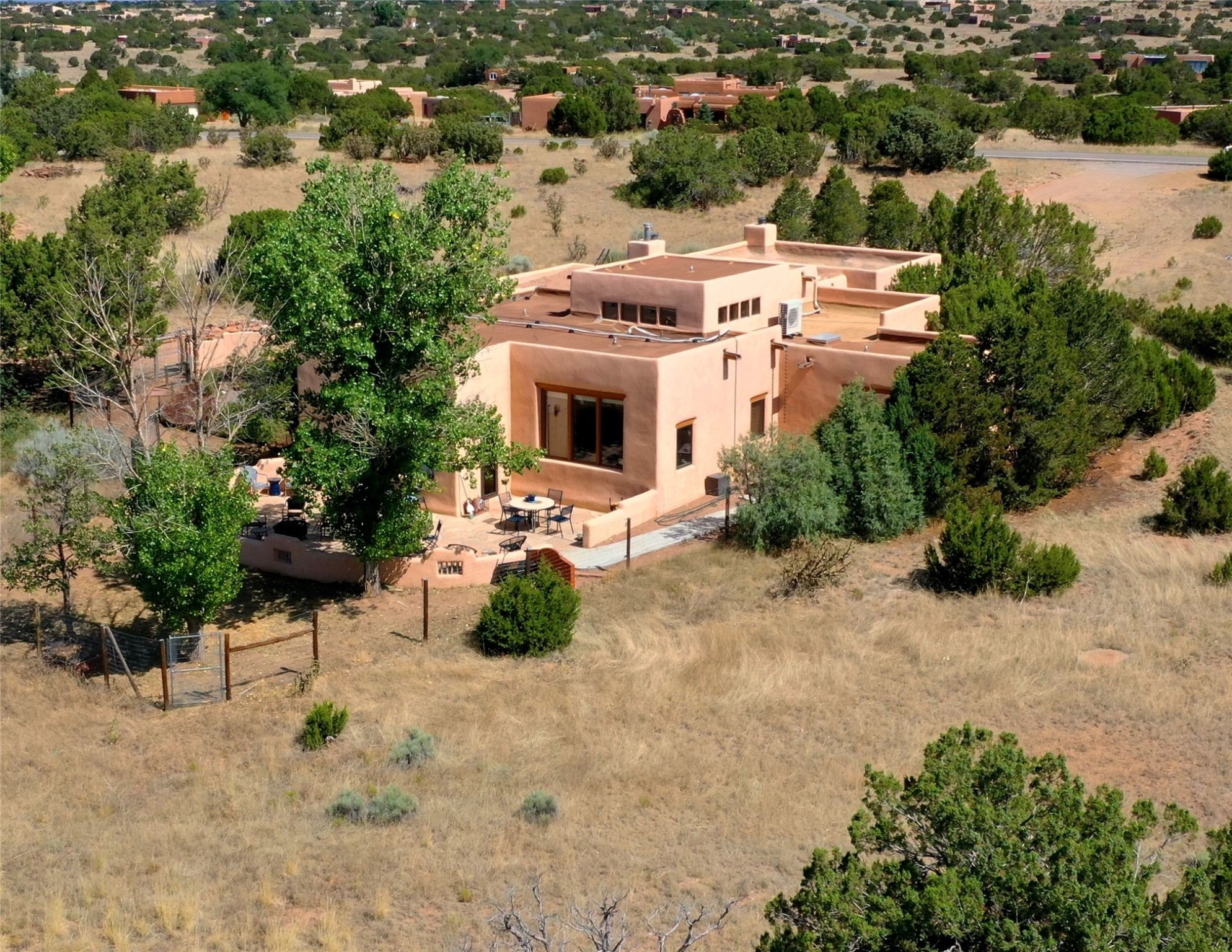 Enter the peaceful front courtyard, continue through the vintage Mexican carved doors into the dramatic entry with soaring ceilings This beautiful Eldorado home was built around 1991 . The previous owners added an addition to create a master bedroom with kiva fireplace. The home has brick floors throughout, large windows to take in the views and 2 additional courtyard spaces for outside enjoyment. The kitchen has been remodeled. There is great separation between the 4 bedrooms and 3 baths, with a choice of which bedroom you want to be the master, both lead to a courtyard. Don't miss this beautiful home.