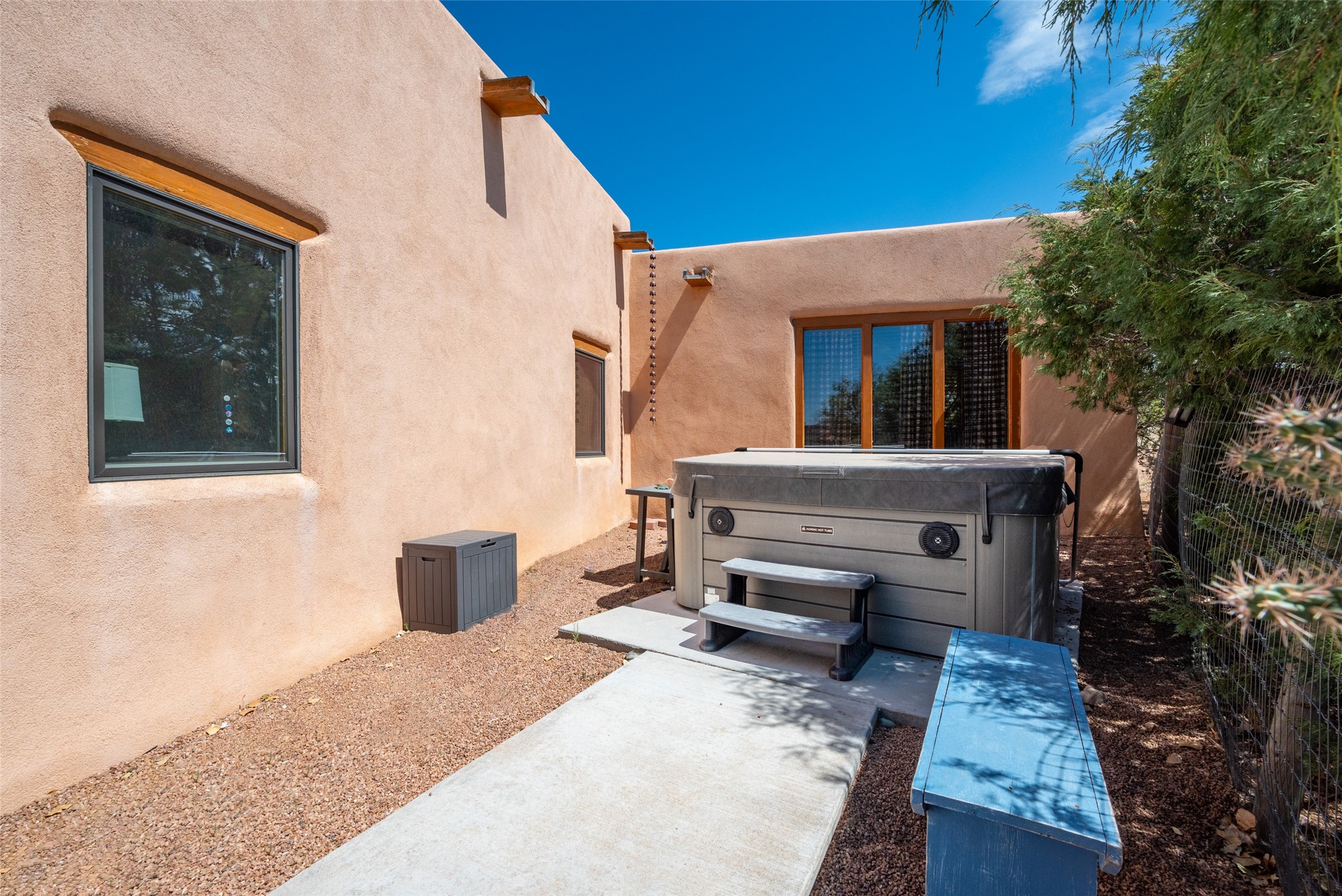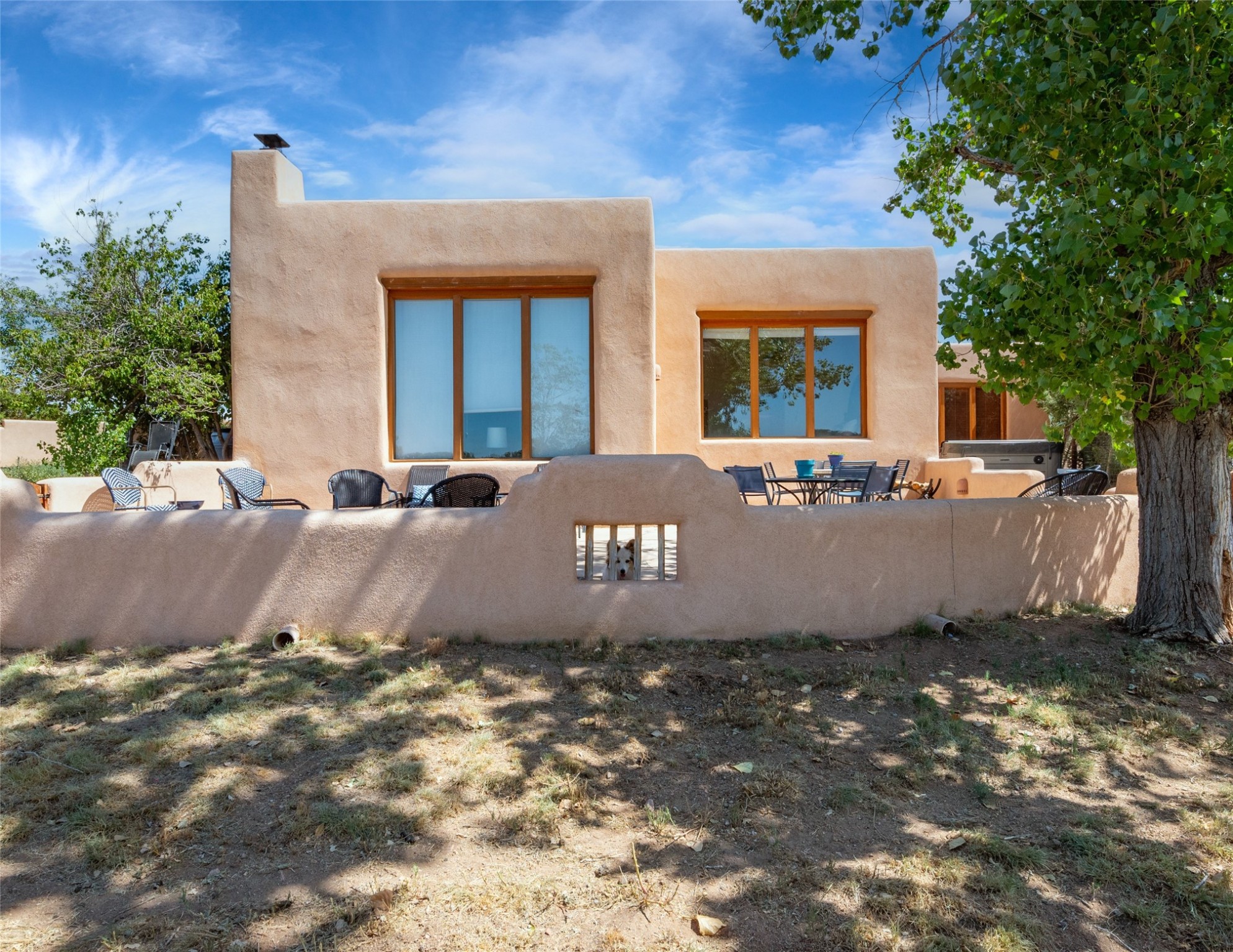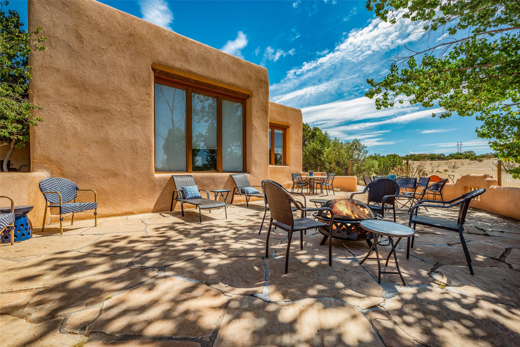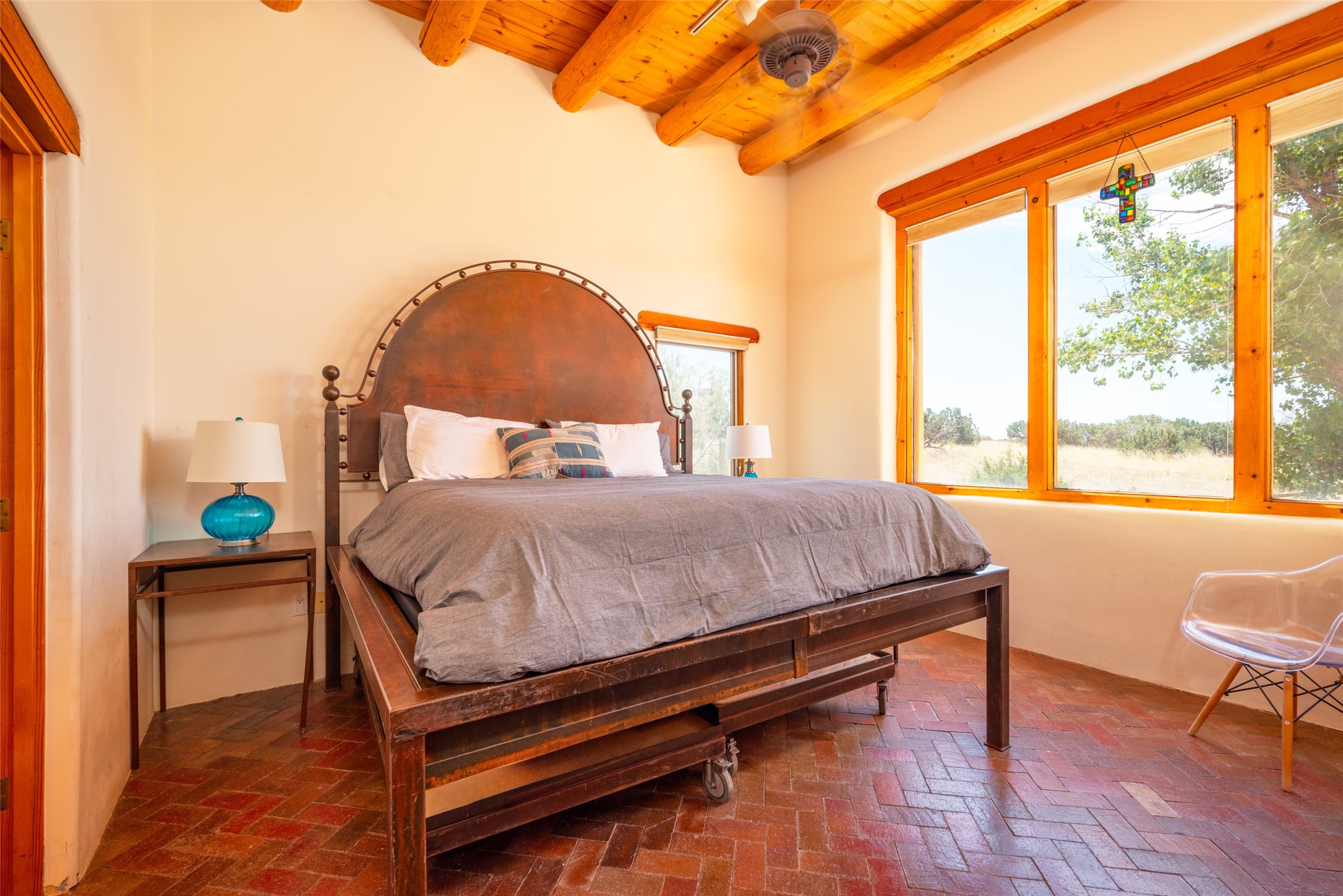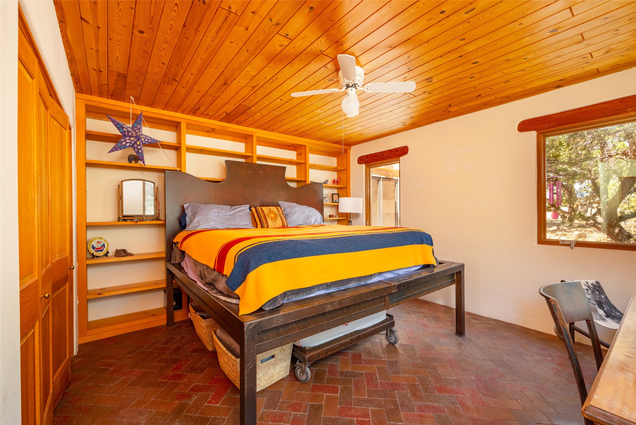 Enter the peaceful front courtyard, continue through the vintage Mexican carved doors into the dramatic entry with soaring ceilings This beautiful Eldorado home was built around 1991 . The previous owners added an addition to create a master bedroom with kiva fireplace. The home has brick floors throughout, large windows to take in the views and 2 additional courtyard spaces for outside enjoyment. The kitchen has been remodeled. There is great separation between the 4 bedrooms and 3 baths, with a choice of which bedroom you want to be the master, both lead to a courtyard. Don't miss this beautiful home.