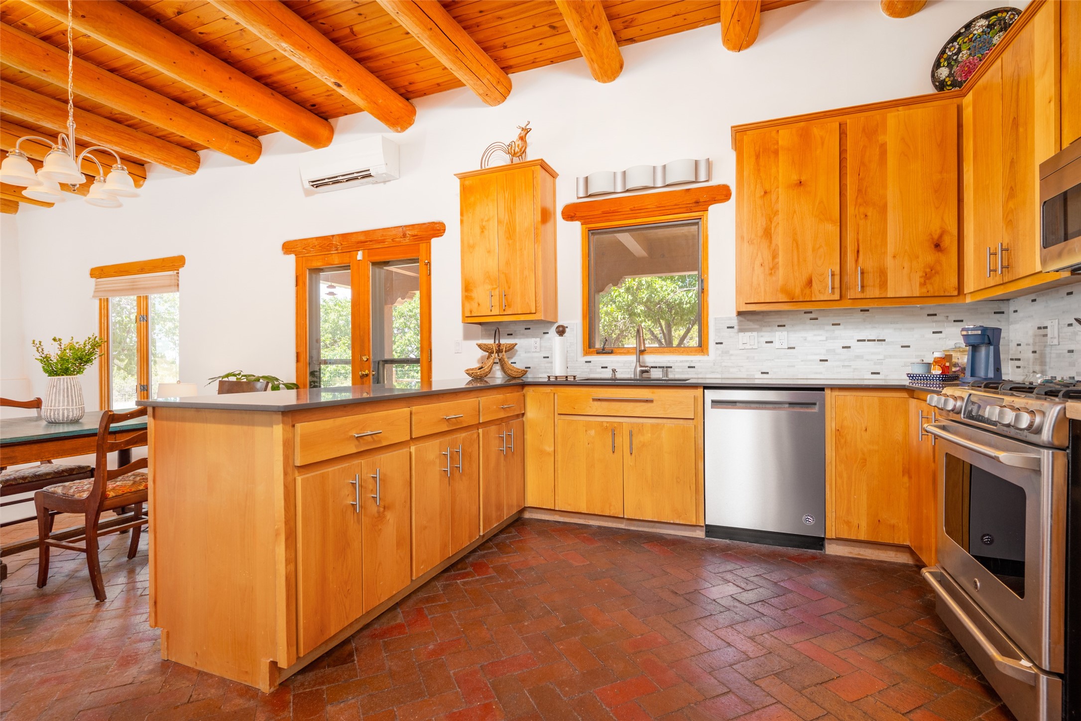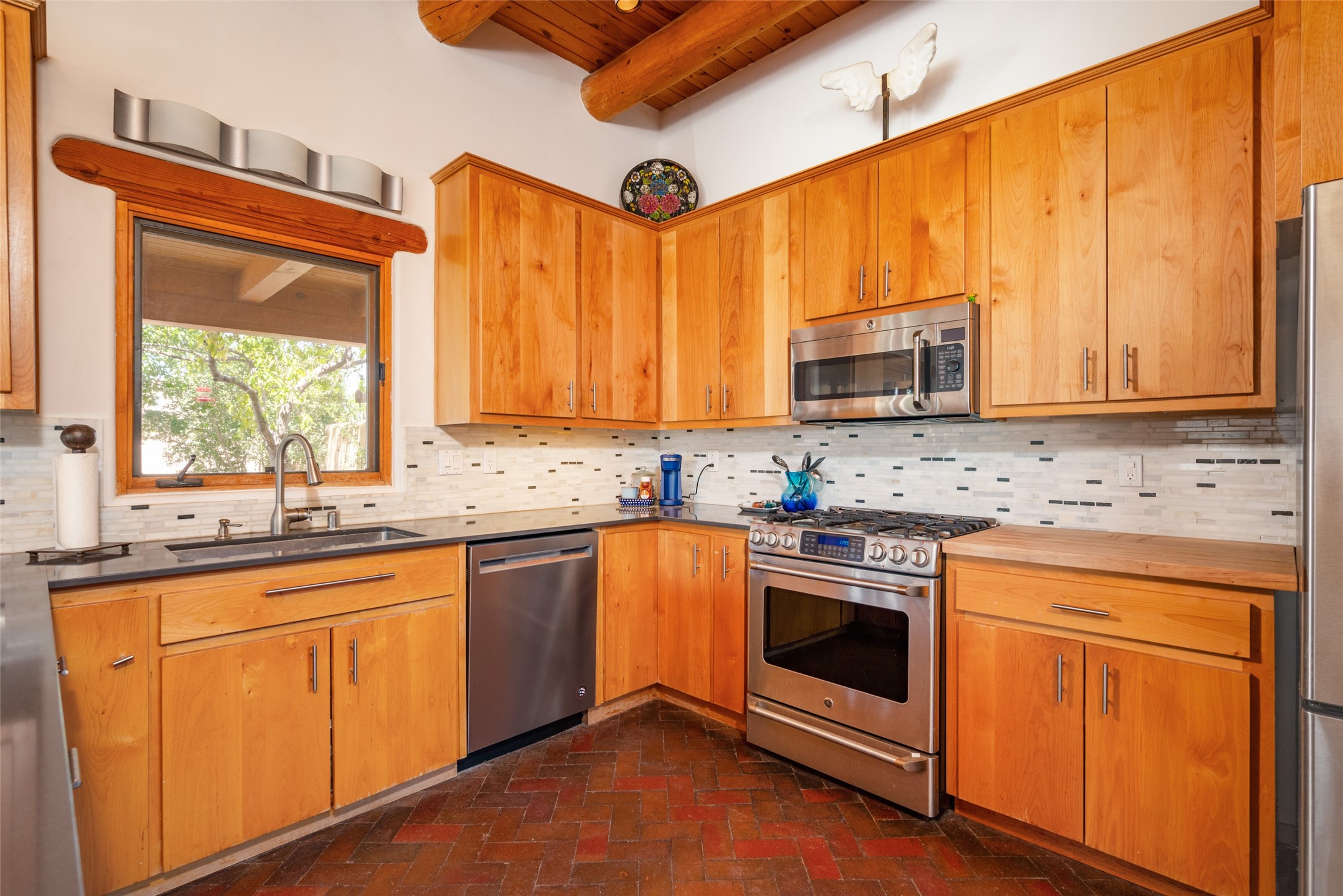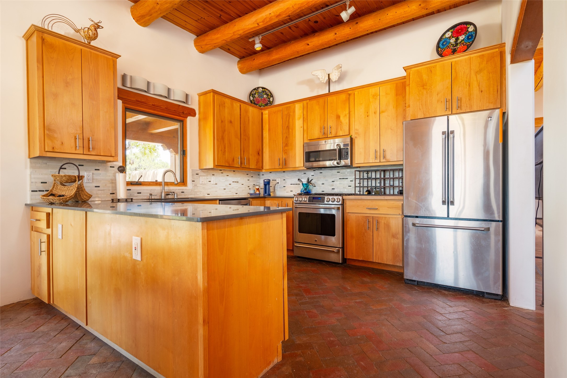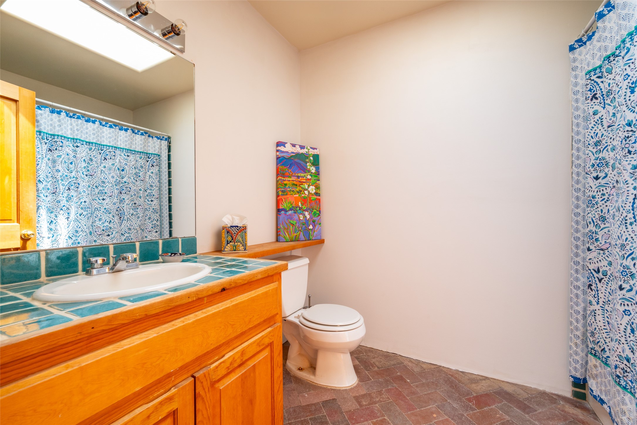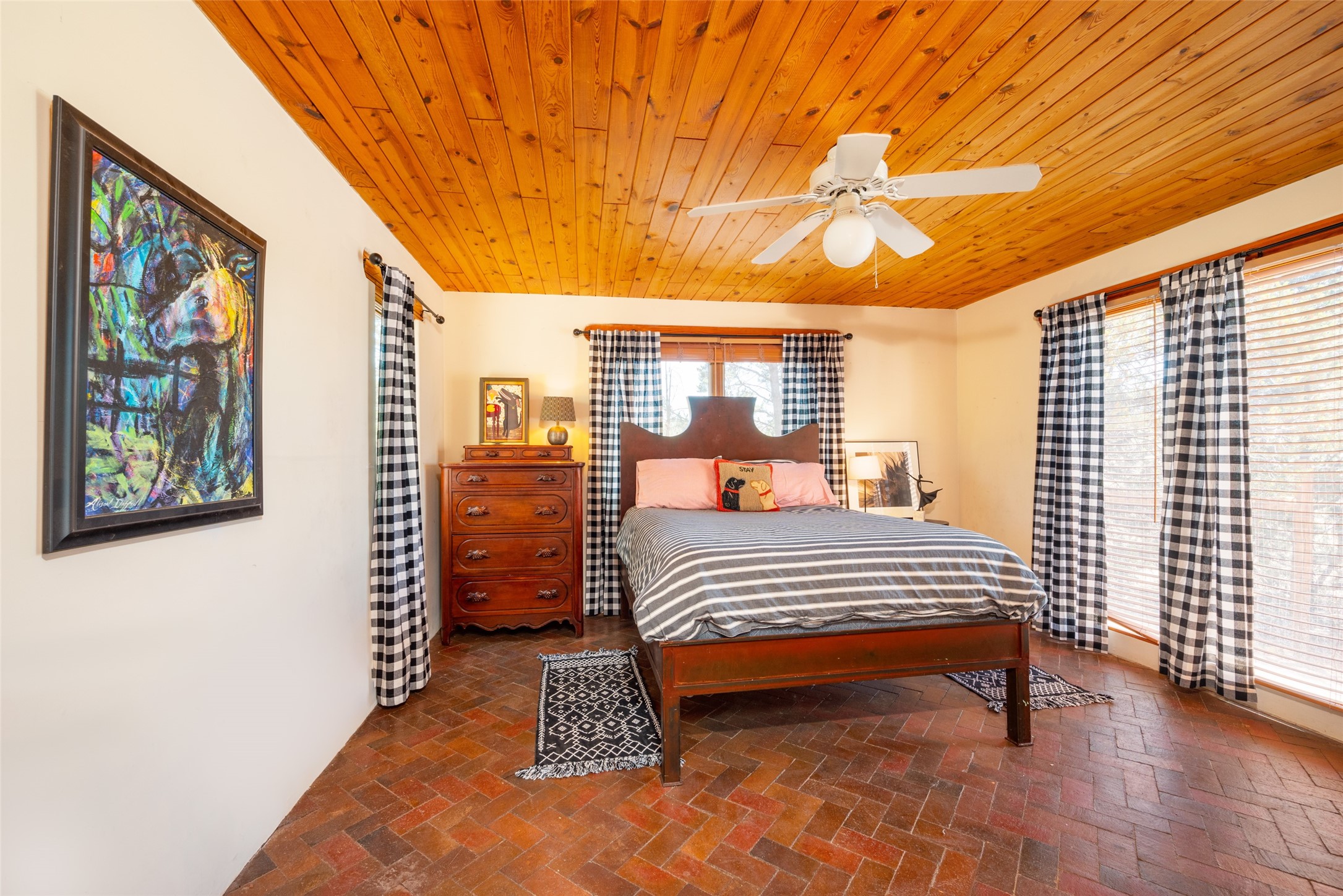 Enter the peaceful front courtyard, continue through the vintage Mexican carved doors into the dramatic entry with soaring ceilings This beautiful Eldorado home was built around 1991 . The previous owners added an addition to create a master bedroom with kiva fireplace. The home has brick floors throughout, large windows to take in the views and 2 additional courtyard spaces for outside enjoyment. The kitchen has been remodeled. There is great separation between the 4 bedrooms and 3 baths, with a choice of which bedroom you want to be the master, both lead to a courtyard. Don't miss this beautiful home.