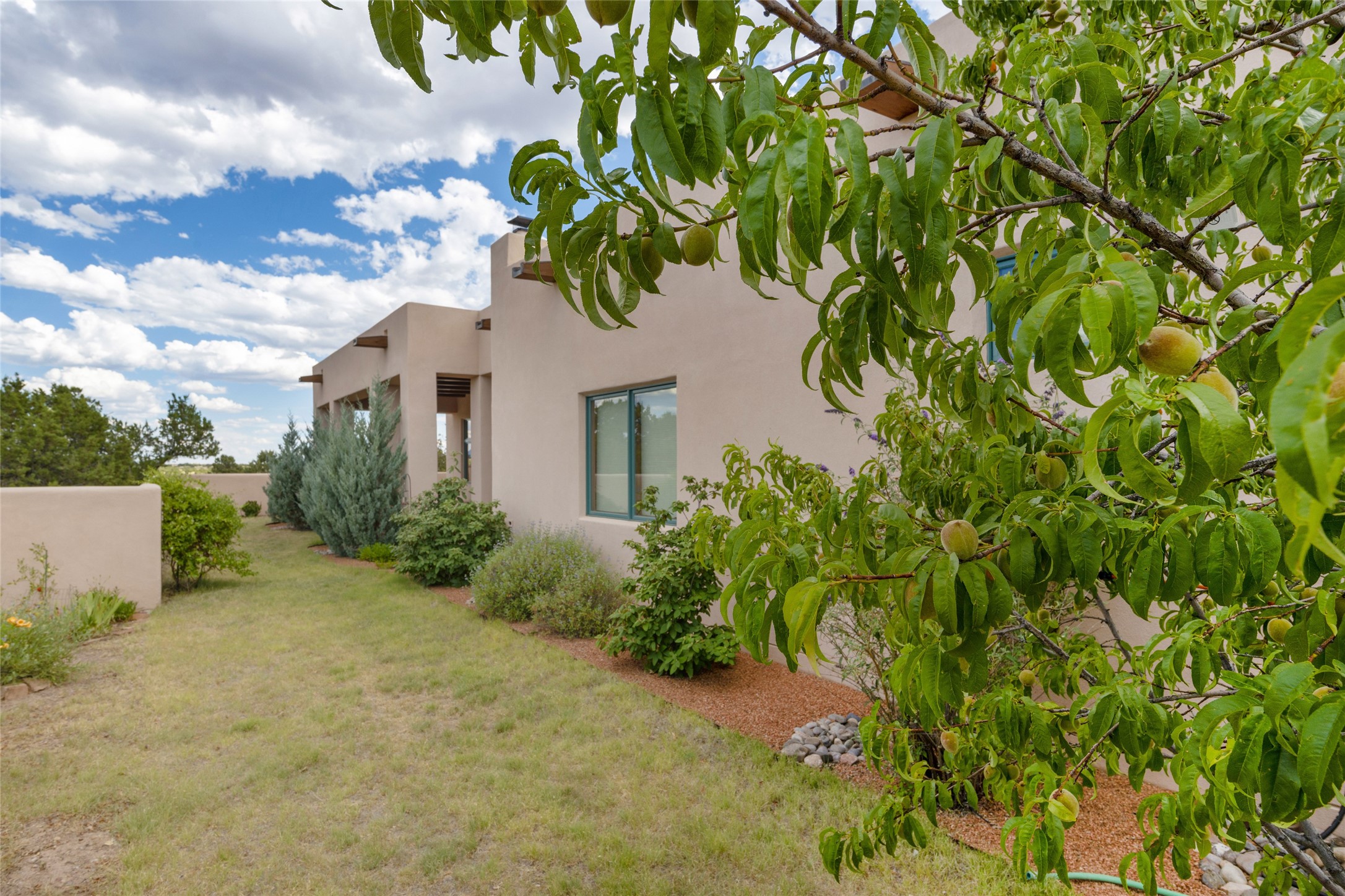 This thoughtfully designed, custom-built home with beautiful views of the Sangre de Cristo Mountains is located in the Sierra Rosa Loop enclave on a private cul-de-sac in Las Campanas. Owner-built and lightly lived-in, the property has been meticulously maintained. A lovely landscaped entrance entrance welcomes visitors to a front vestibule and beckons entry to the open living/dining area with high ceilings and access to the outdoor east facing portal. The large gourmet kitchen is complete with high-end appliances and a large center island, ideal for entertaining, and opens to the family area and north-facing portal with a miniature practice putting green. The separation of the primary bedroom and guest bedroom wings is ideal. Located off the family area is an office and the generous primary bedroom/spa bath with a large walk-in closet and convenient to the laundry room. The guest wing is on the opposite side of the home and each guest bedroom is ensuite with a shared breakfast bar area. Outdoor spaces are irrigated with manicured landscaping and there are partial views to the Jemez Mountains. 15 minutes to the Sante Fe Plaza and the Santa Fe Airport. Memberships to the Club at Las Campanas are optional and available for purchase upon approval.
