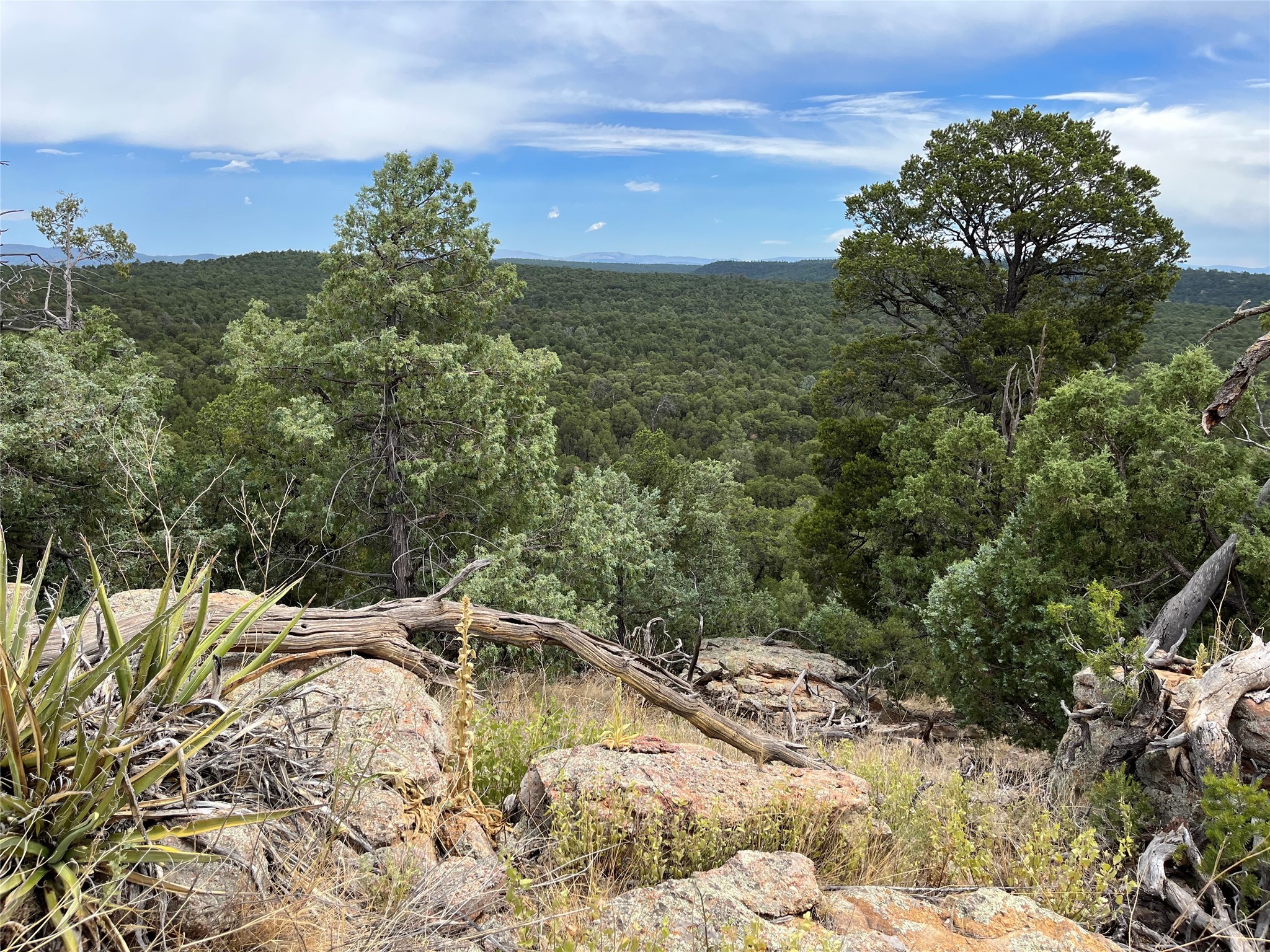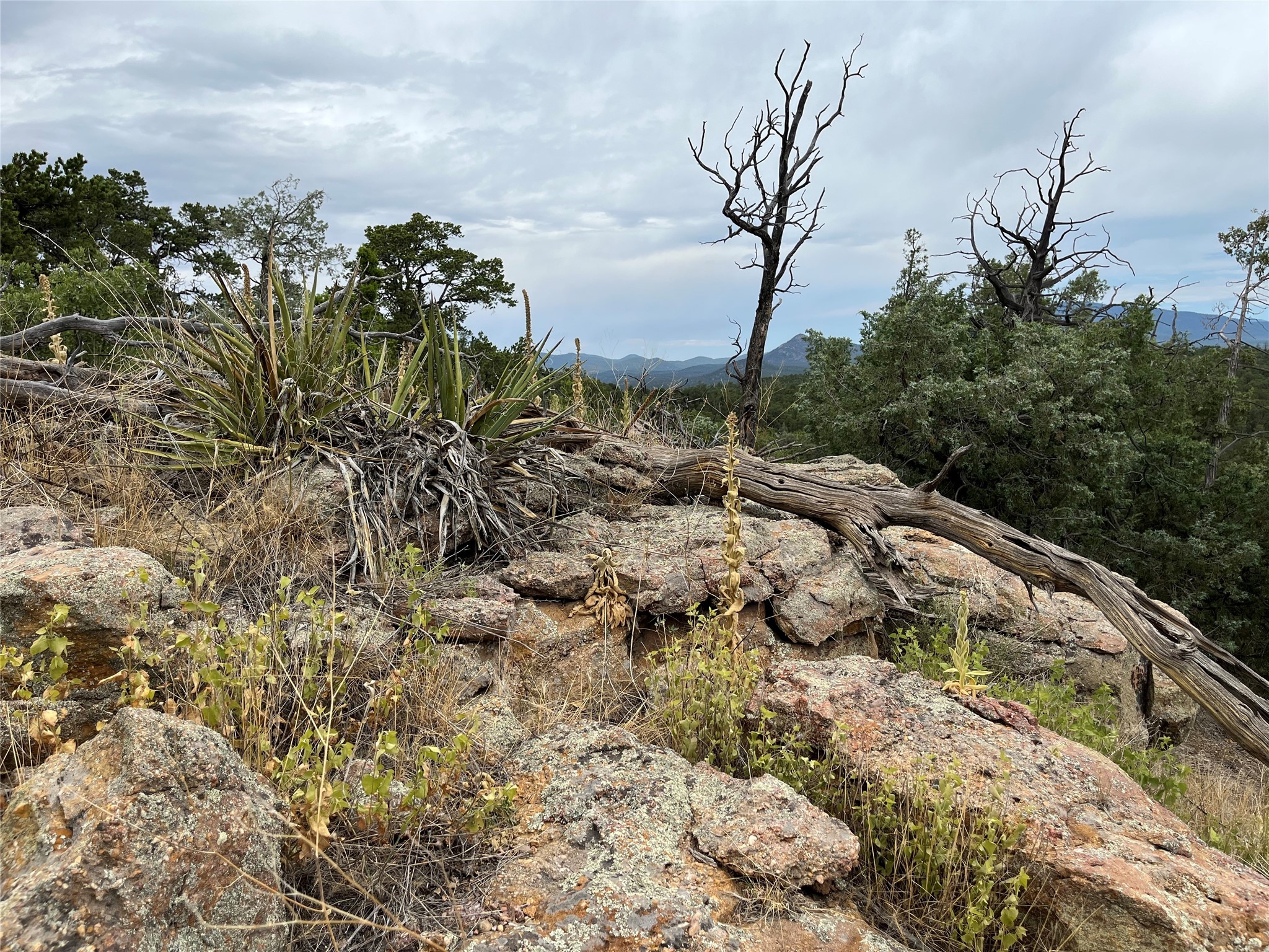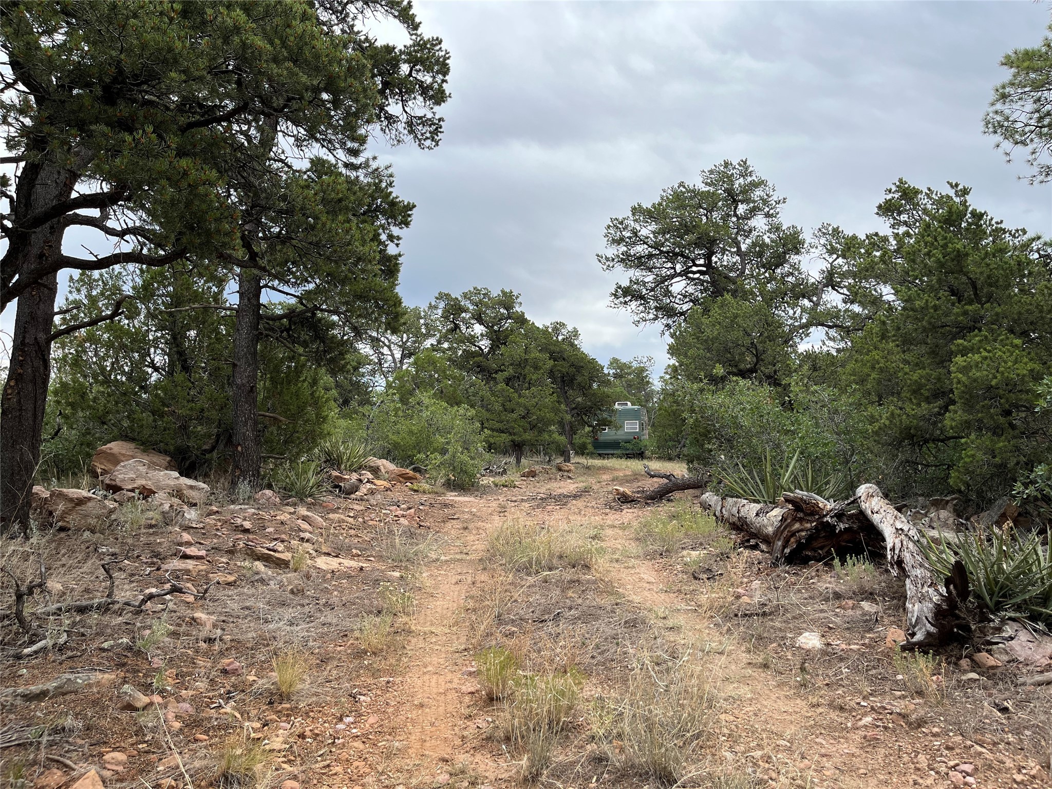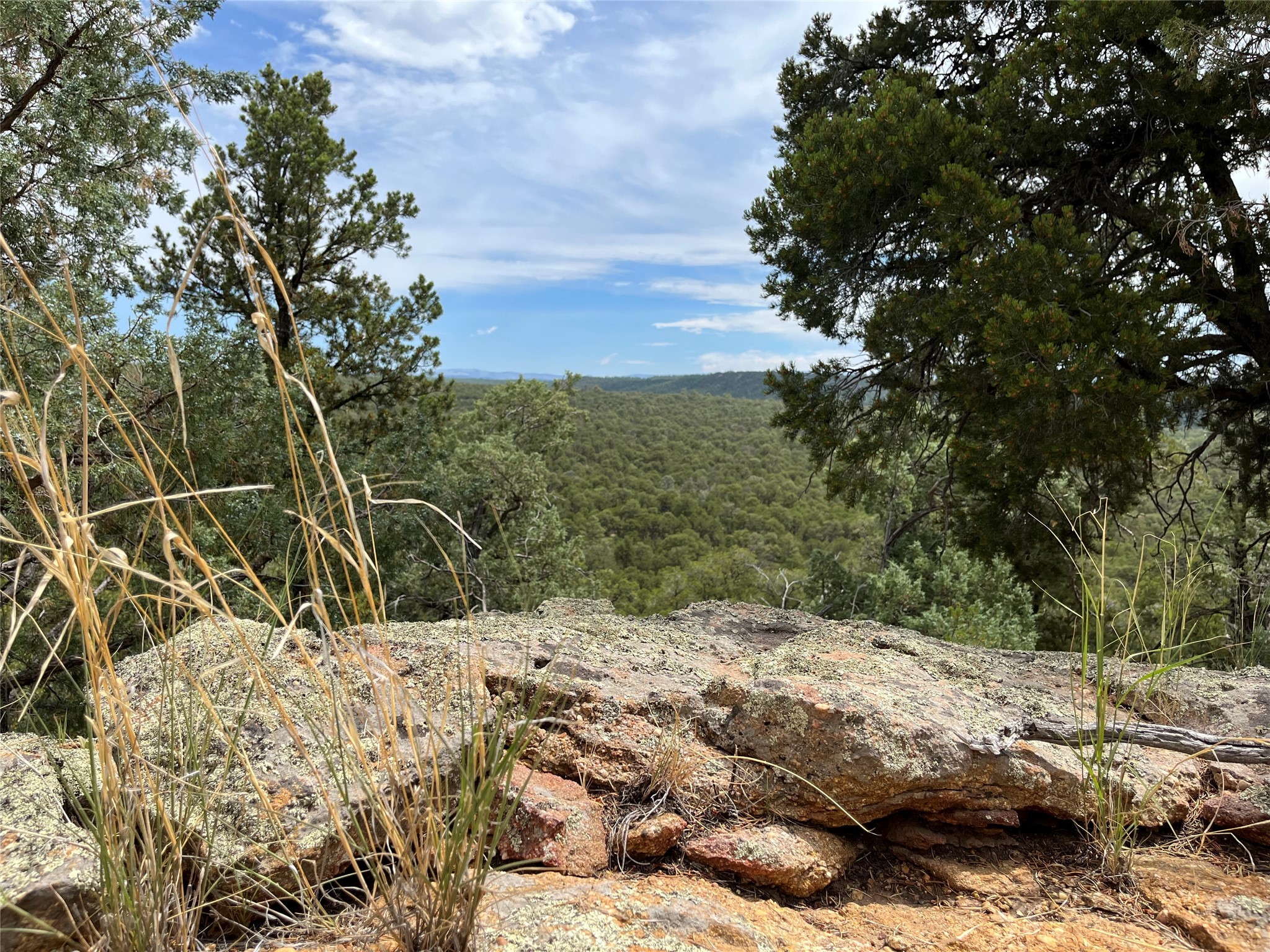 La Tierra Del Alba (Land of the Sunrise). Come and become one with nature where wildlife, nature, and stunning night skies collide creating a private refuge on this stunning 40 acre mountain top property with mature tree cover and wonderful rock-outcroppings. This property has some stunning panoramic views of the mountains and vistas in a park-like setting. Approximately 18 miles to Santa Fe or a 25 minute drive! Borders National Forest! Seller will convey property with a $3,000 water well siting study showing two possible sites for wells in addition to a modest trailer and composting toilet to begin your next adventure.