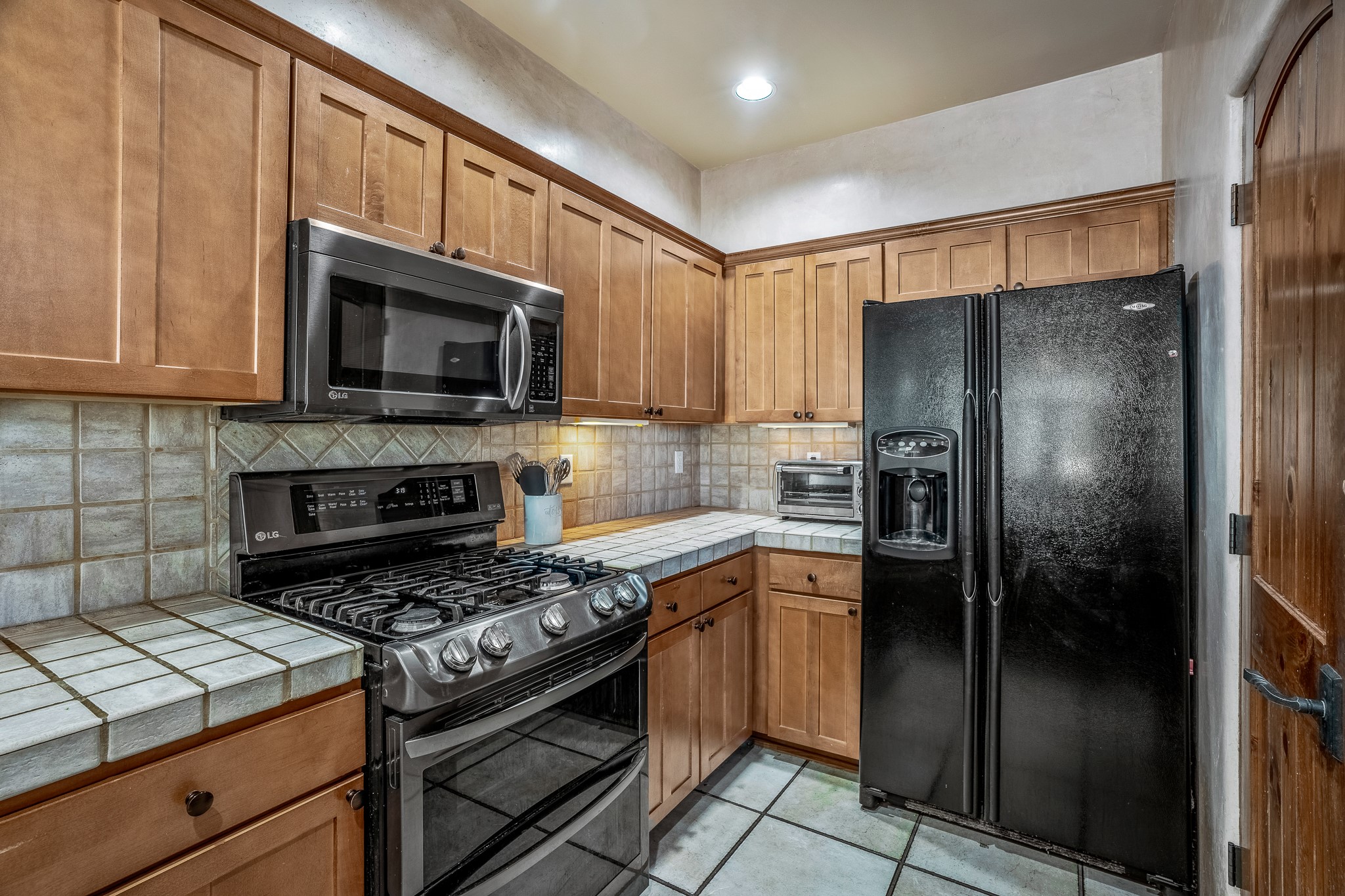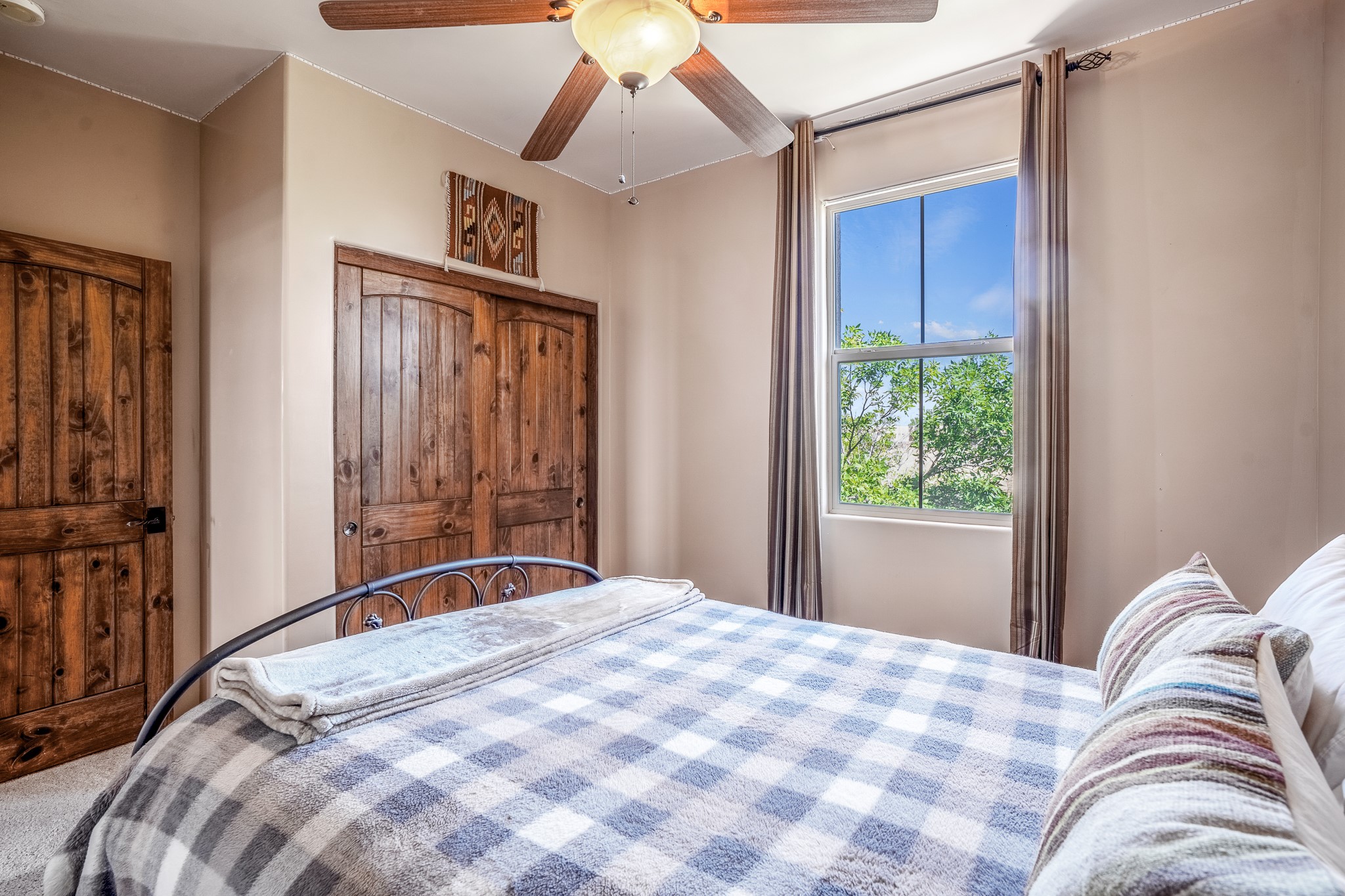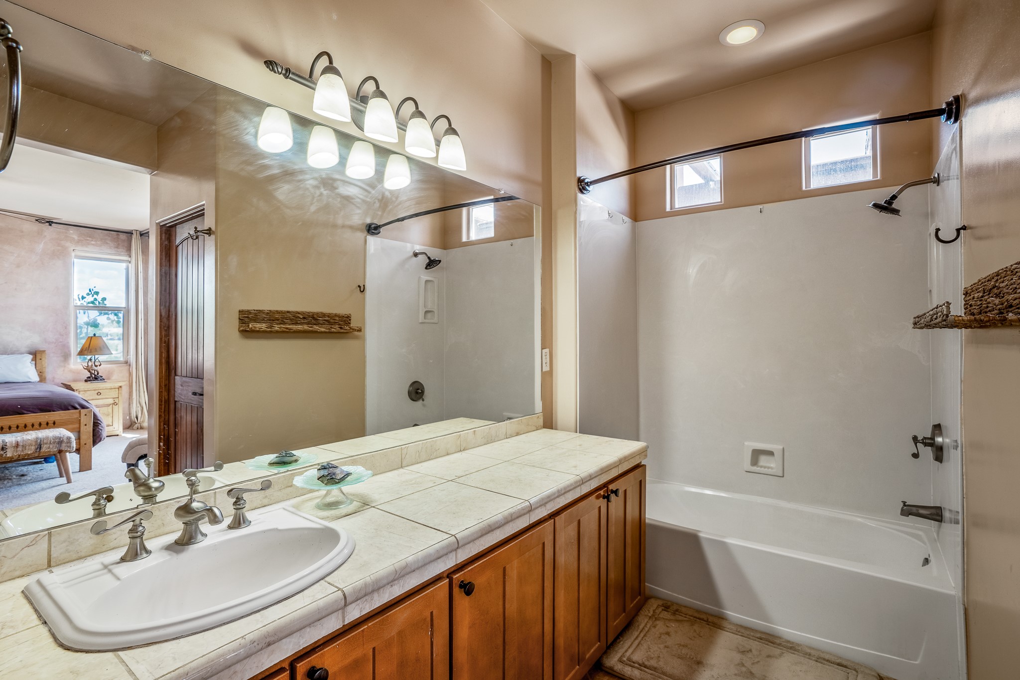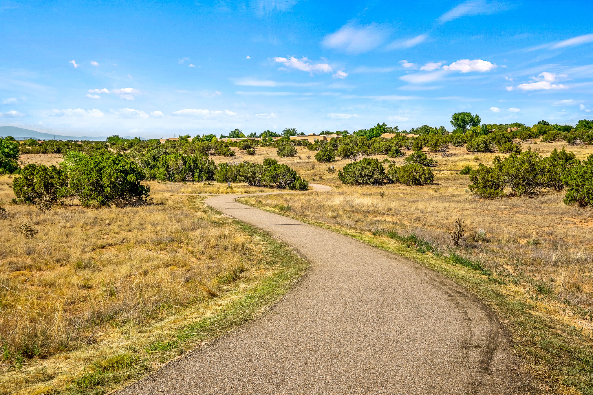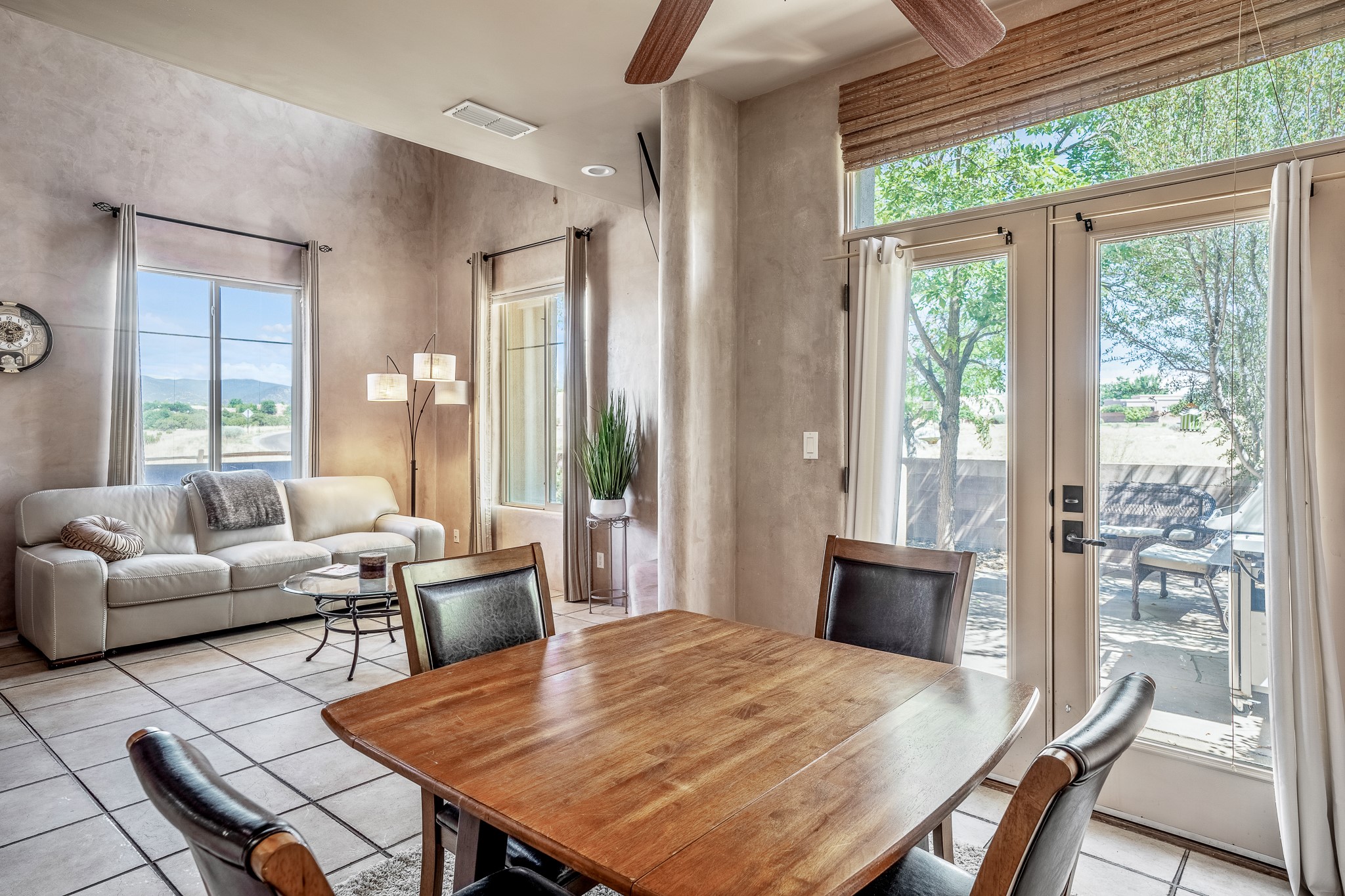 Enchanting townhome in Rancho Viejo with superior finishes and superb VIEWS. This end-unit beauty in move-in ready condition has all the southwestern charm you seek in a peaceful community minutes from downtown Santa Fe. High ceilings are accentuated by round vigas with tongue & groove planks in rich wood tones while gleaming plaster walls, a corner kiva fireplace and wrought iron staircase add to the grace and elegance of this showpiece. Large windows capture mountain views in every level and allow natural light to fill the interior spaces. The open concept living, dining and kitchen areas with an easy flow between the inside and outdoor courtyards. An office and powder room on the main level add convenience and functionality. Fabulous views can be enjoyed from every window, displaying multiple mountain ranges, and boasts gorgeous sunrises and sunsets. A large upstairs deck adjoining the owner's suite brings the outdoors right inside. A second bedroom and hallway bath is sure to make guests feel at home. Other features include an attached 2-car garage, multiple flagstone patios, and recent re-roof. A groomed trail system through miles of open space, is a cyclist/walker/runner's dream. HOA dues cover most of exterior maintenance and repairs. Come see for yourself!