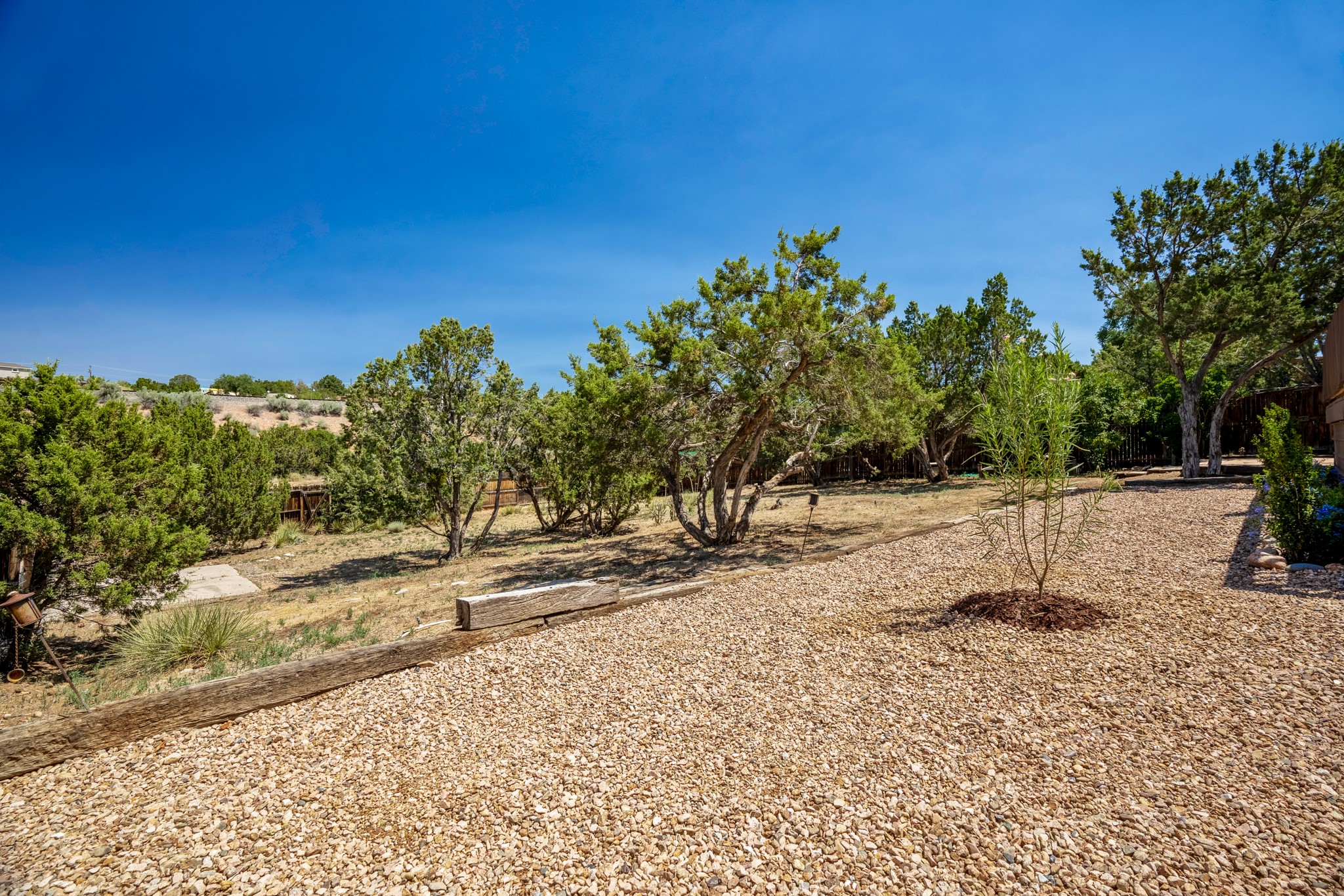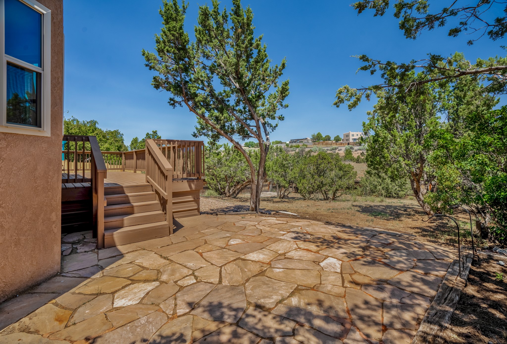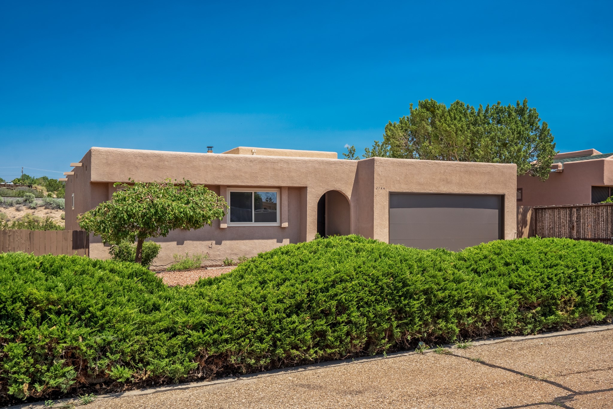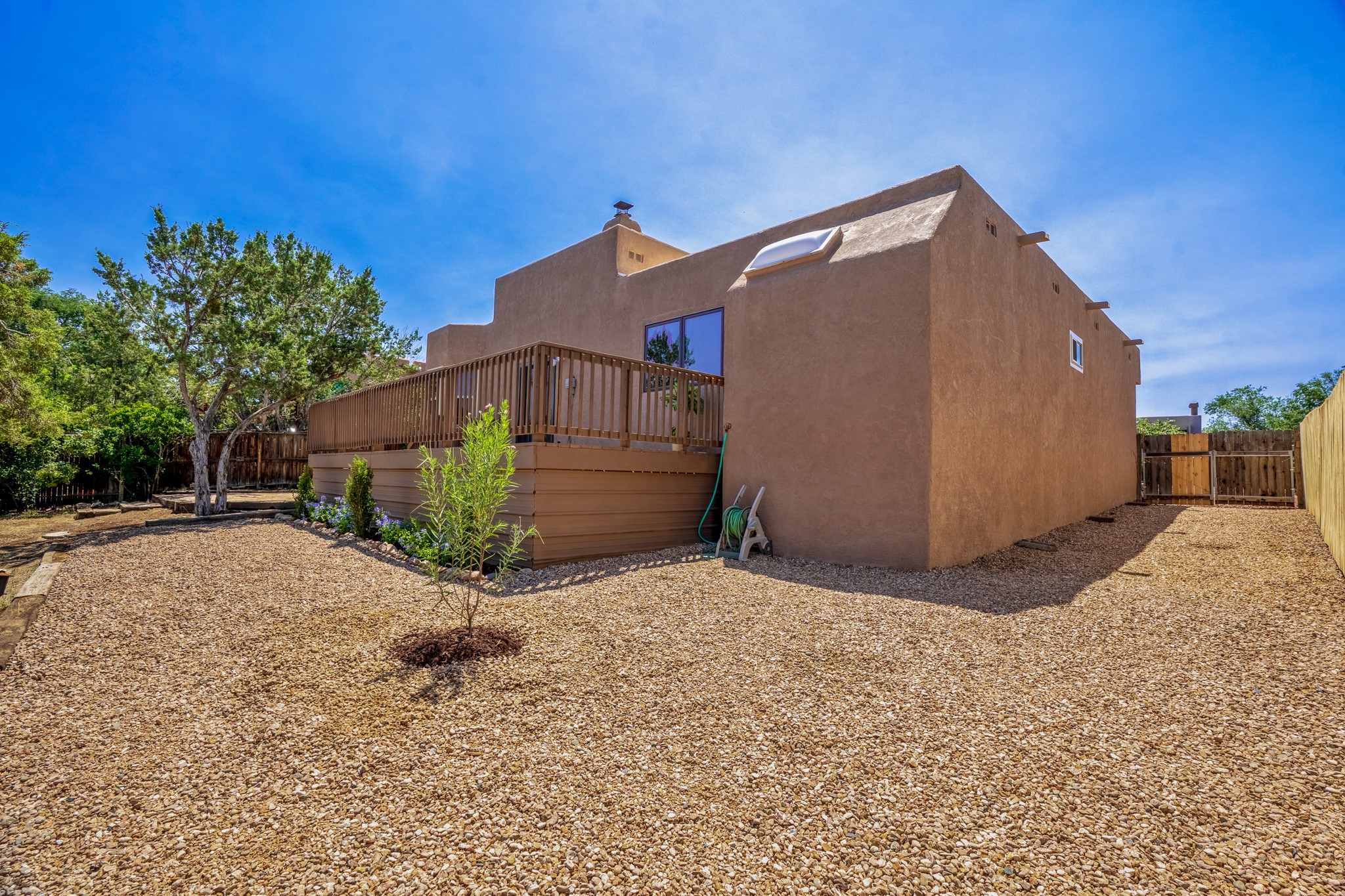Stylish home located in Candelero Subdivision beautifully updated. Views, Granite Countertops, Saltillo Floors, Formal Dining area, Custom Beams, Kiva Fireplace. All New/Upgraded AC, Garage Door-Keypad & Motor, 12X30 Deck, SS Gas Range, Microwave, Interior/ Exterior Lighting & Fixtures, Paint, 2 Skylights & 11 Windows. HVAC 2021, TPO Roof & Water Heater 2022. Primary suite offers dual sinks, abundant natural lighting, & a generous walk-in closet w/builtins.New landscaping & drip system, a expansive, exceptional private outdoor space for relaxation, recreation, entertaining, ample storage, No HOA, & a 2 car garage finished. Unbeatable location to Rail Runner Station, Historic Plaza, Parks/Trails, Hiking-Biking, Restaurants, Shopping,Hospitals, Schools, I-25, Airport & Albuquerque.